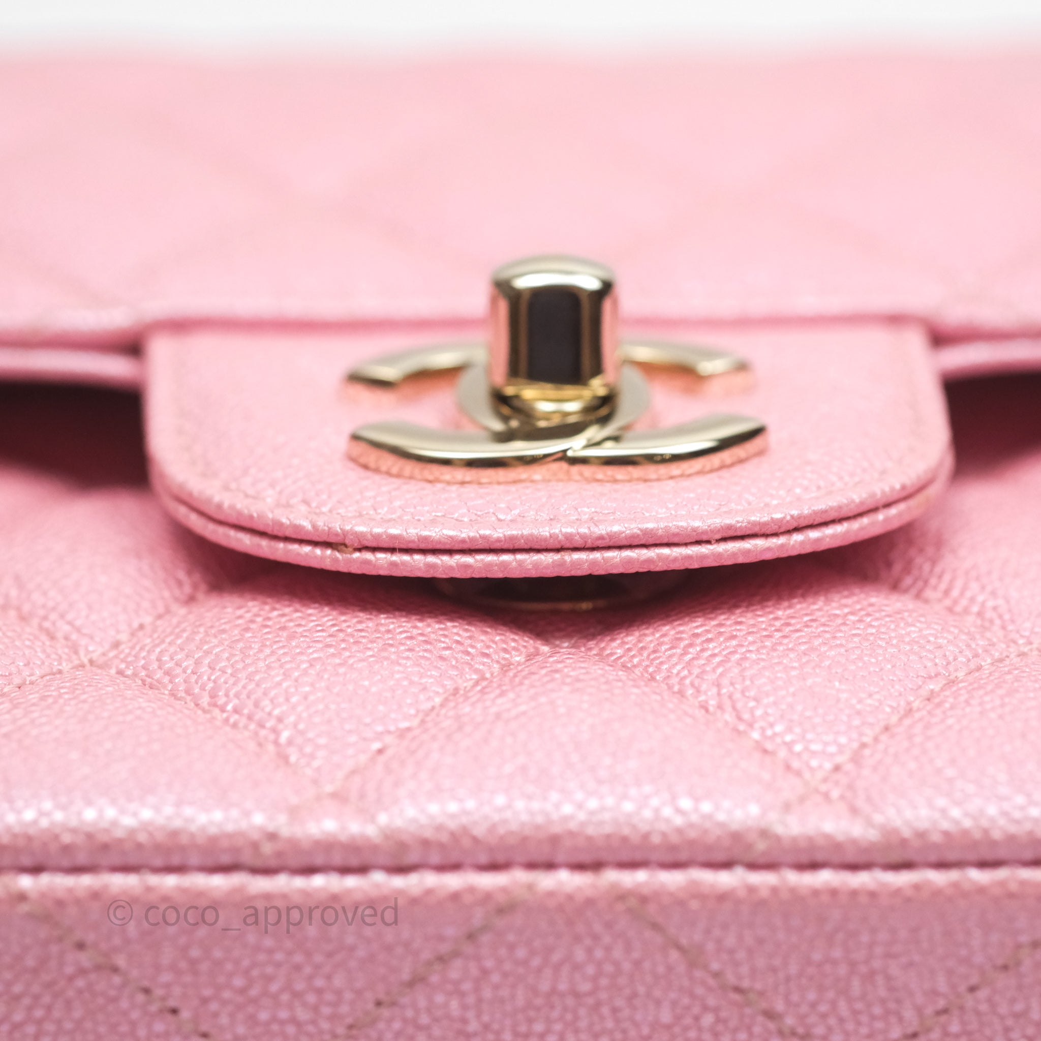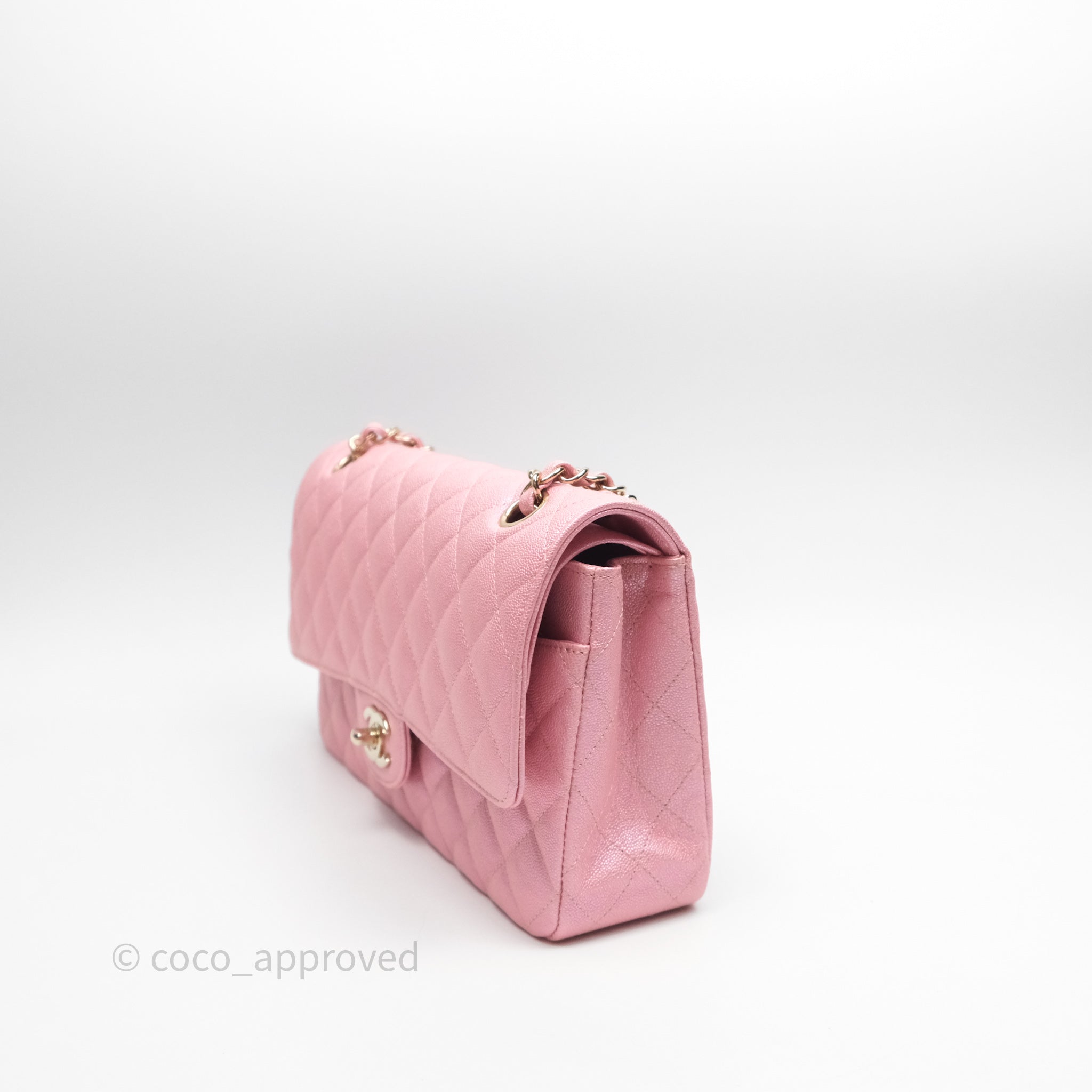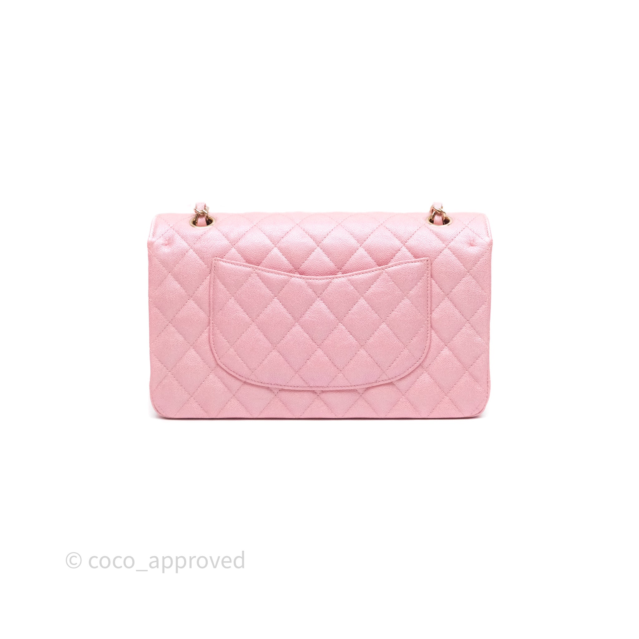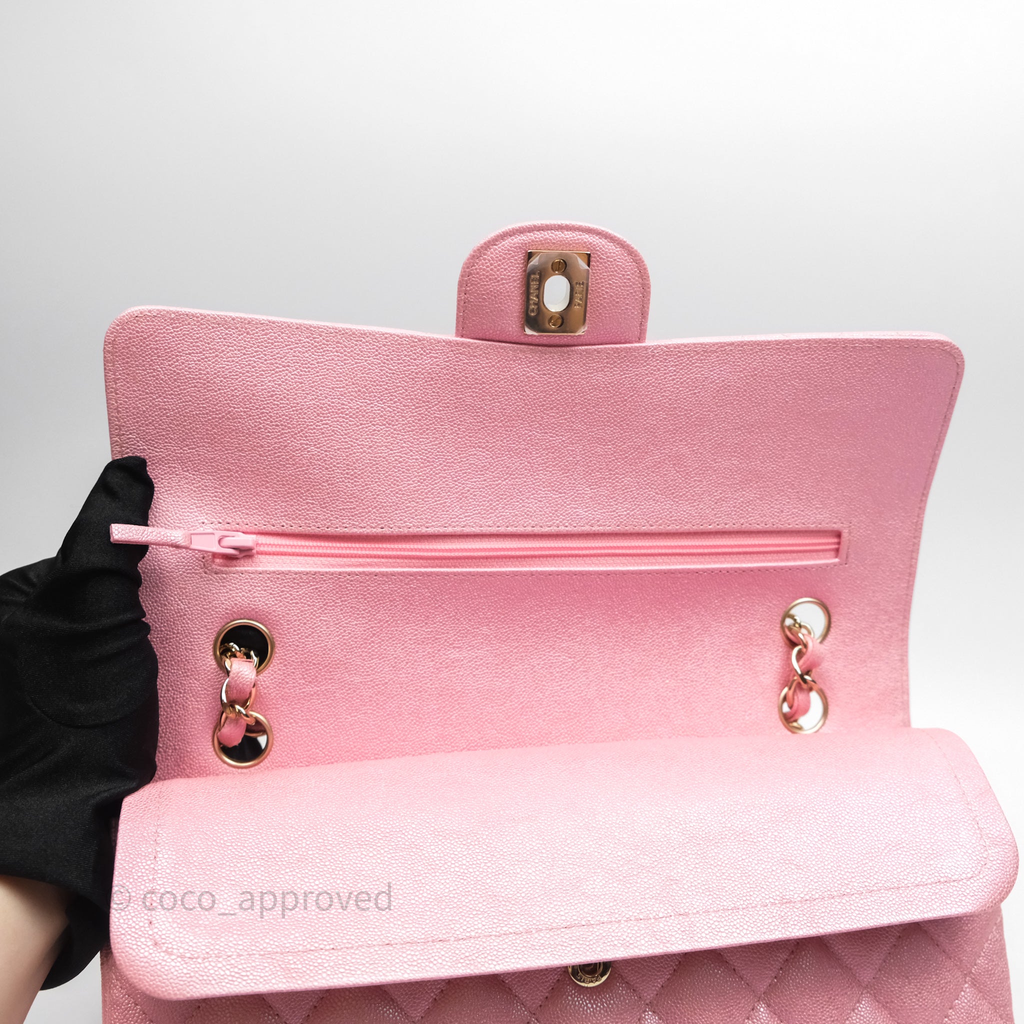 Chanel Quilted Classic M/L Medium Flap Iridescent Pink Caviar Gold Hardware 19S