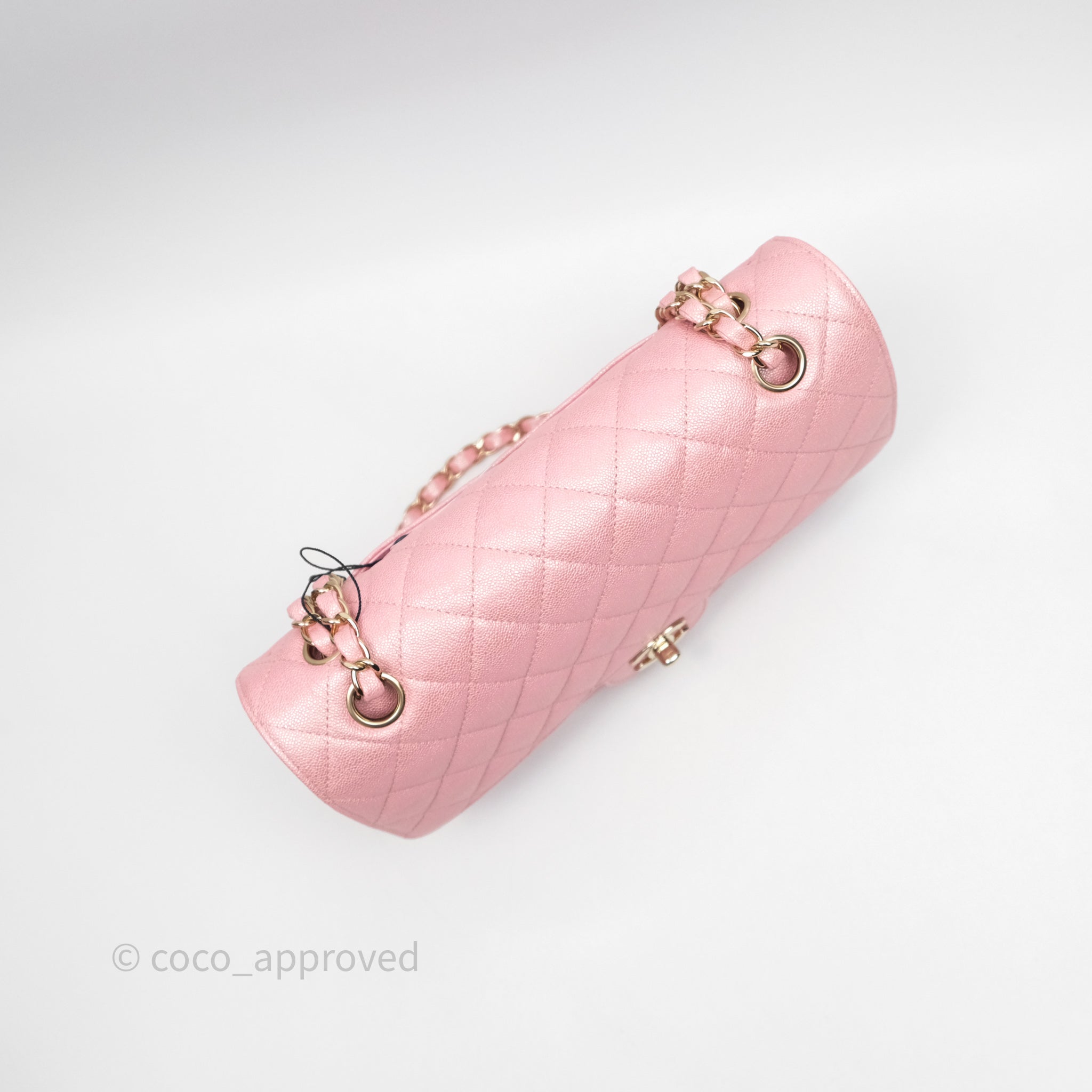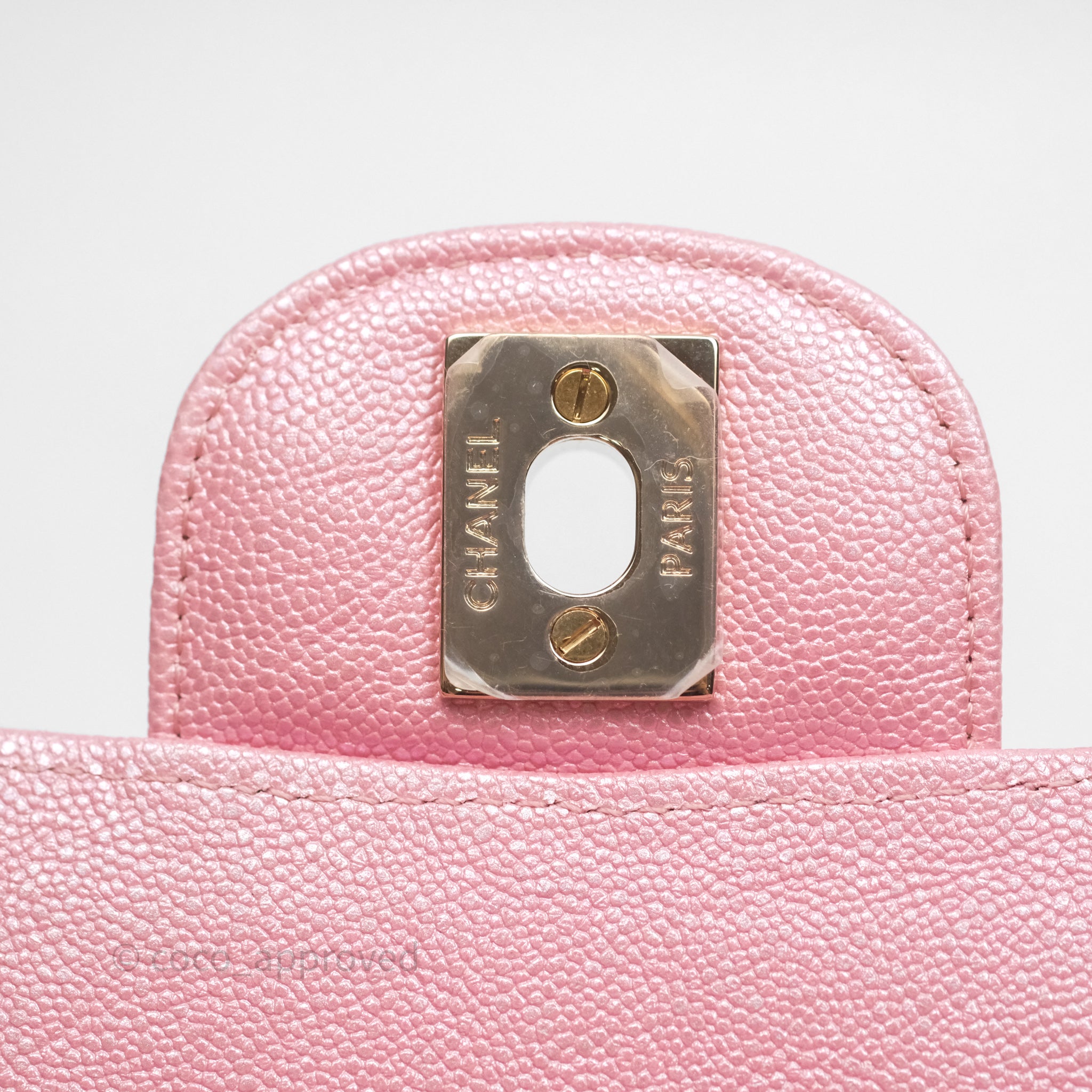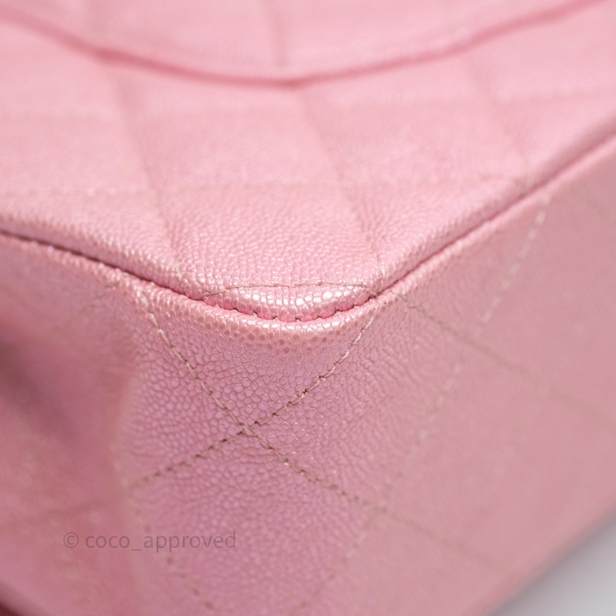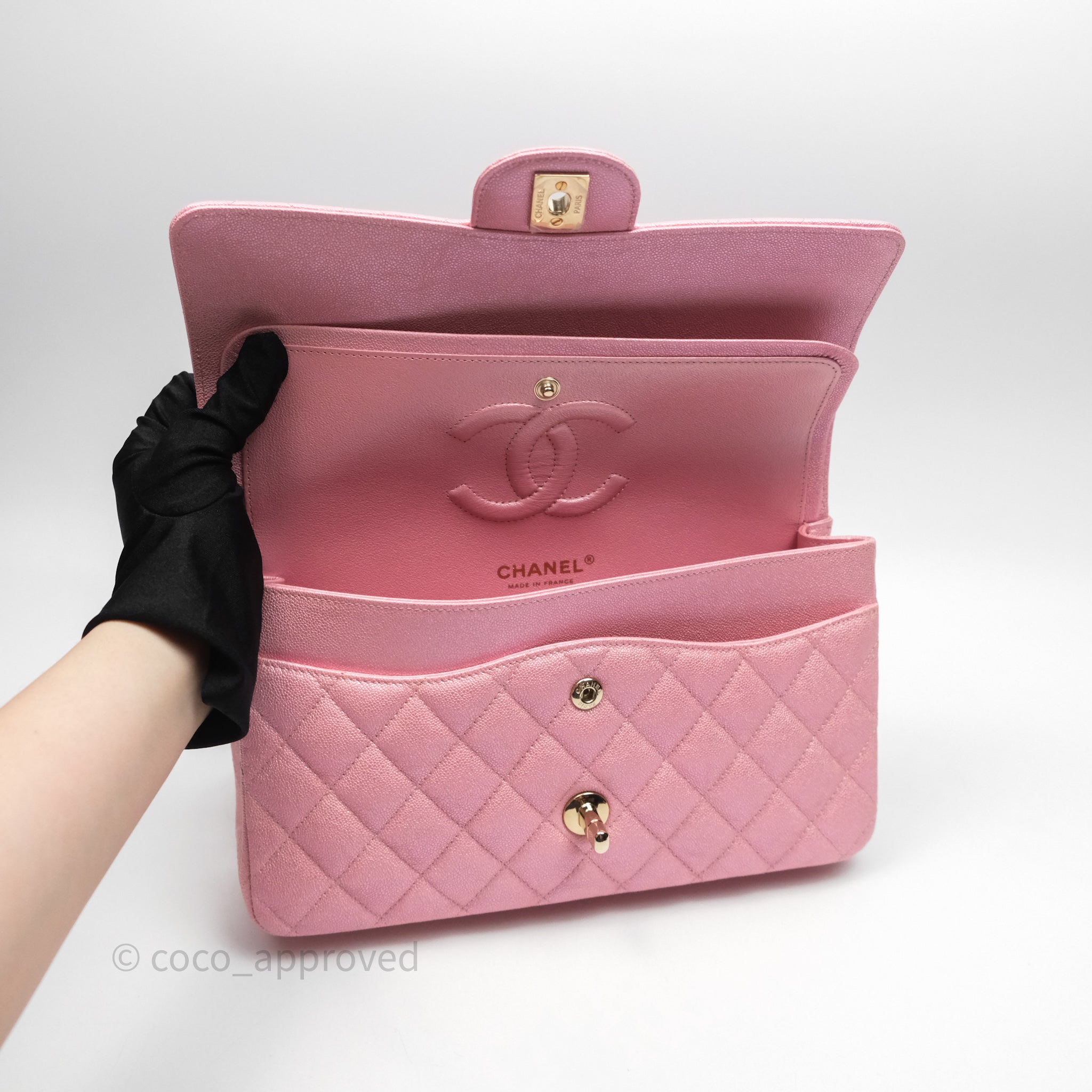 Chanel Quilted Classic M/L Medium Flap Iridescent Pink Caviar Gold Hardware 19S