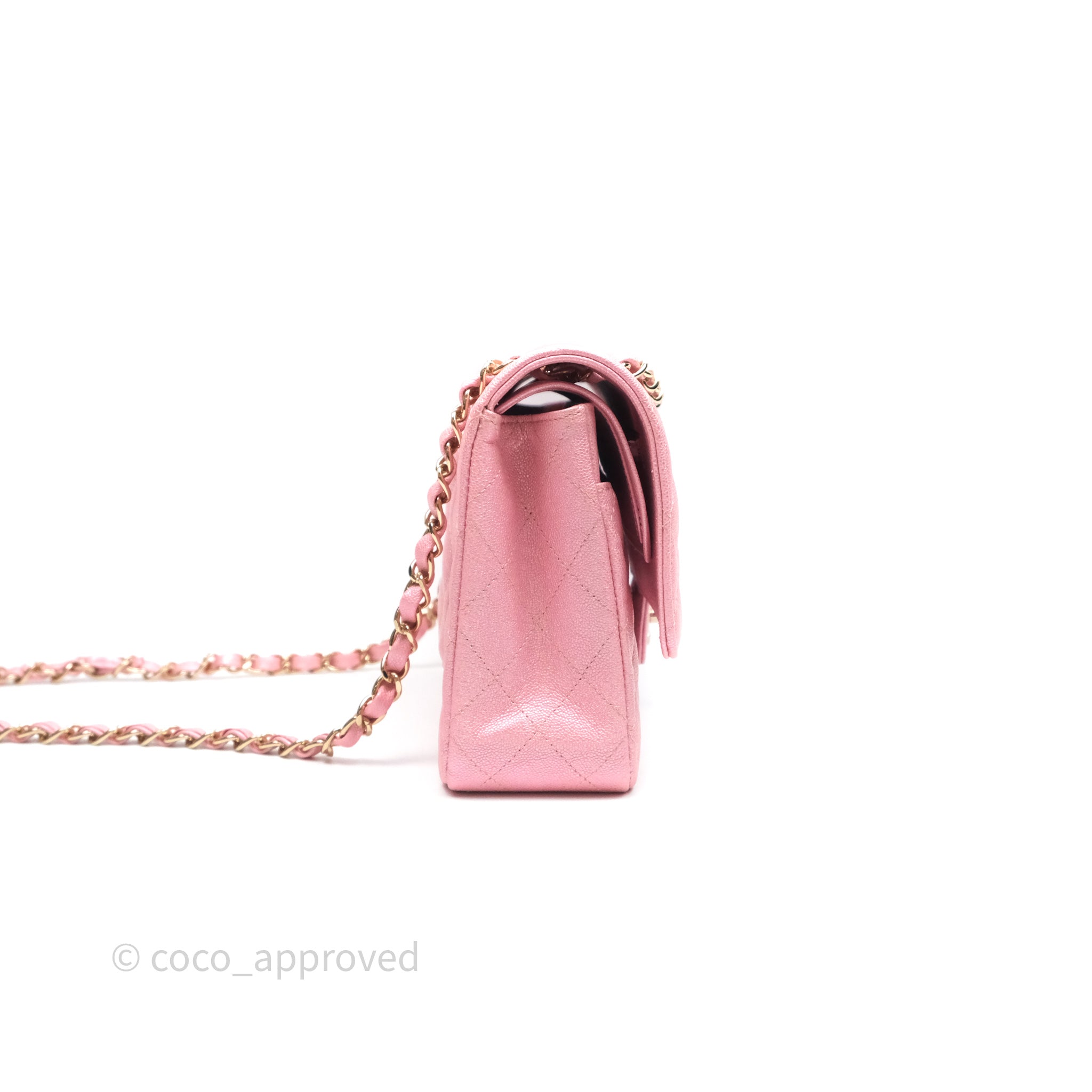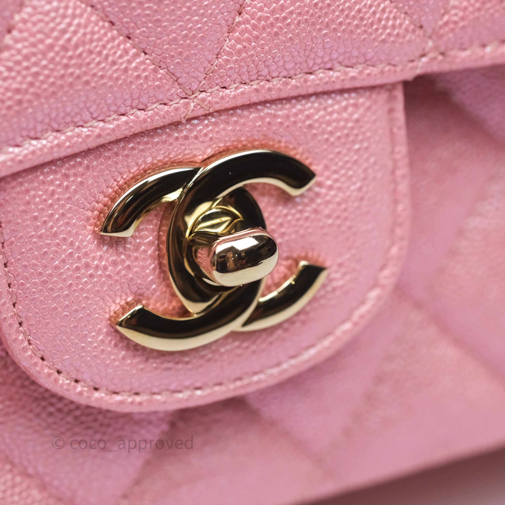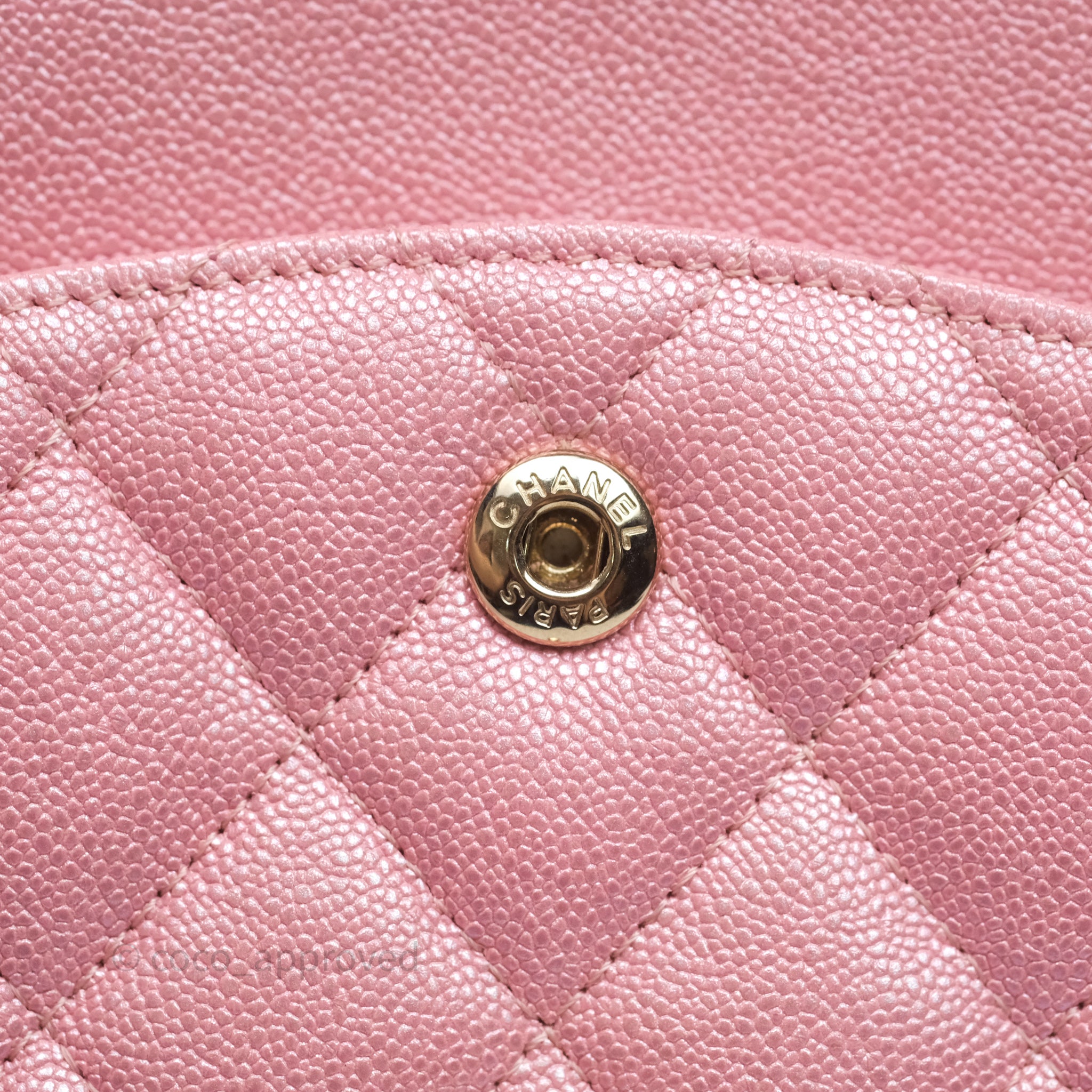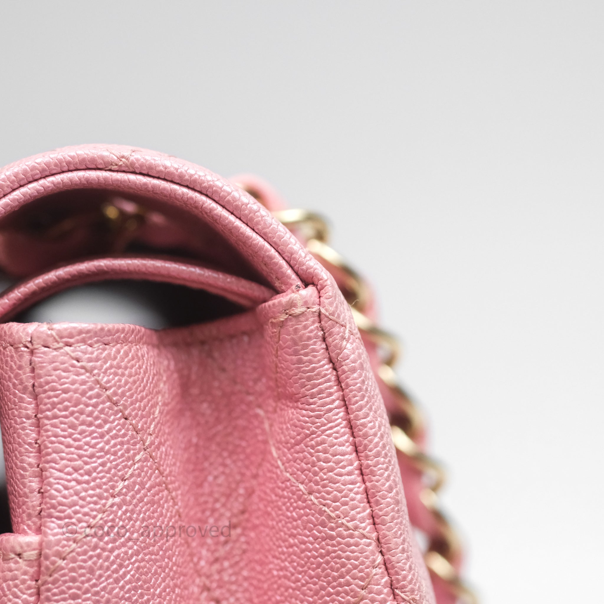 Chanel Quilted Classic M/L Medium Flap Iridescent Pink Caviar Gold Hardware 19S