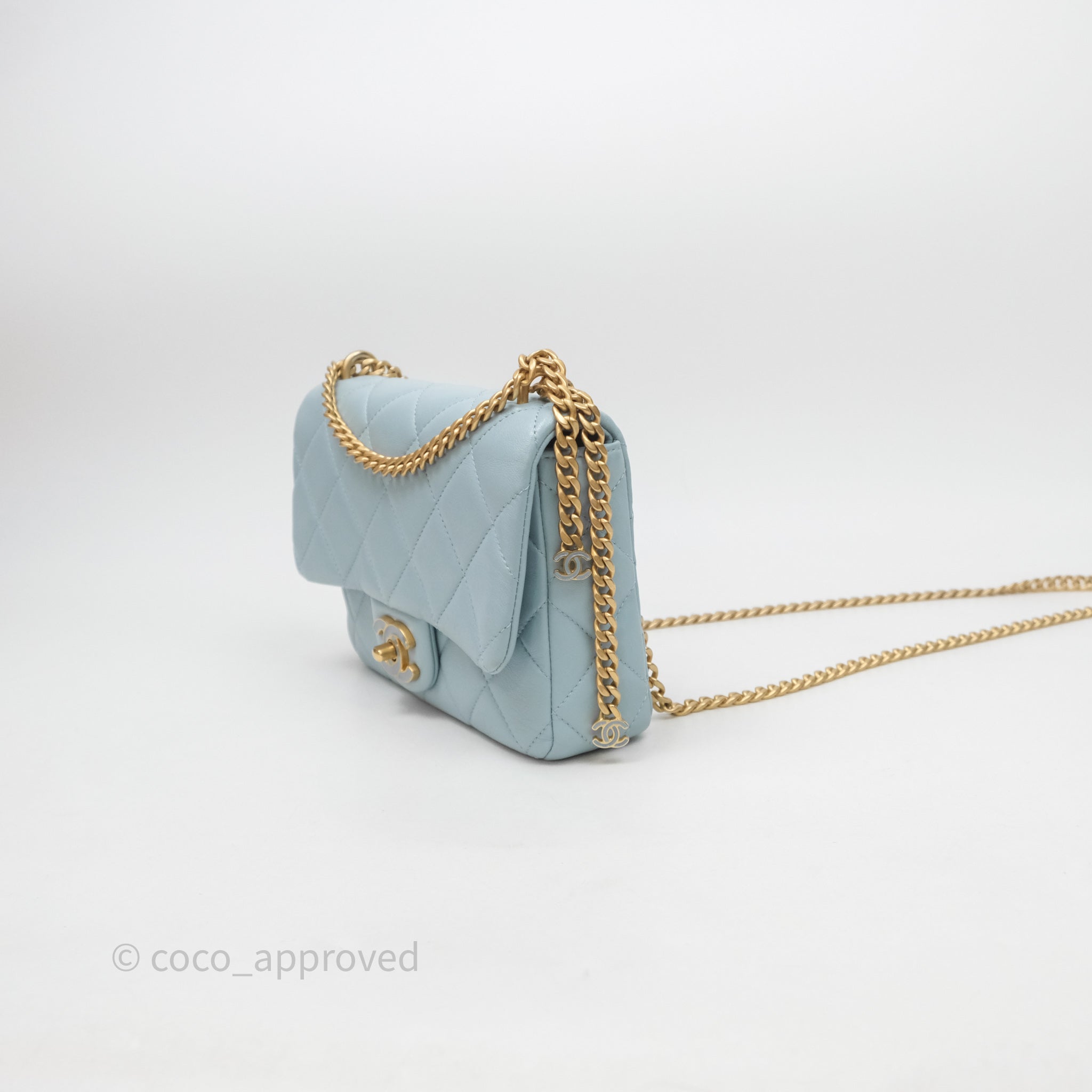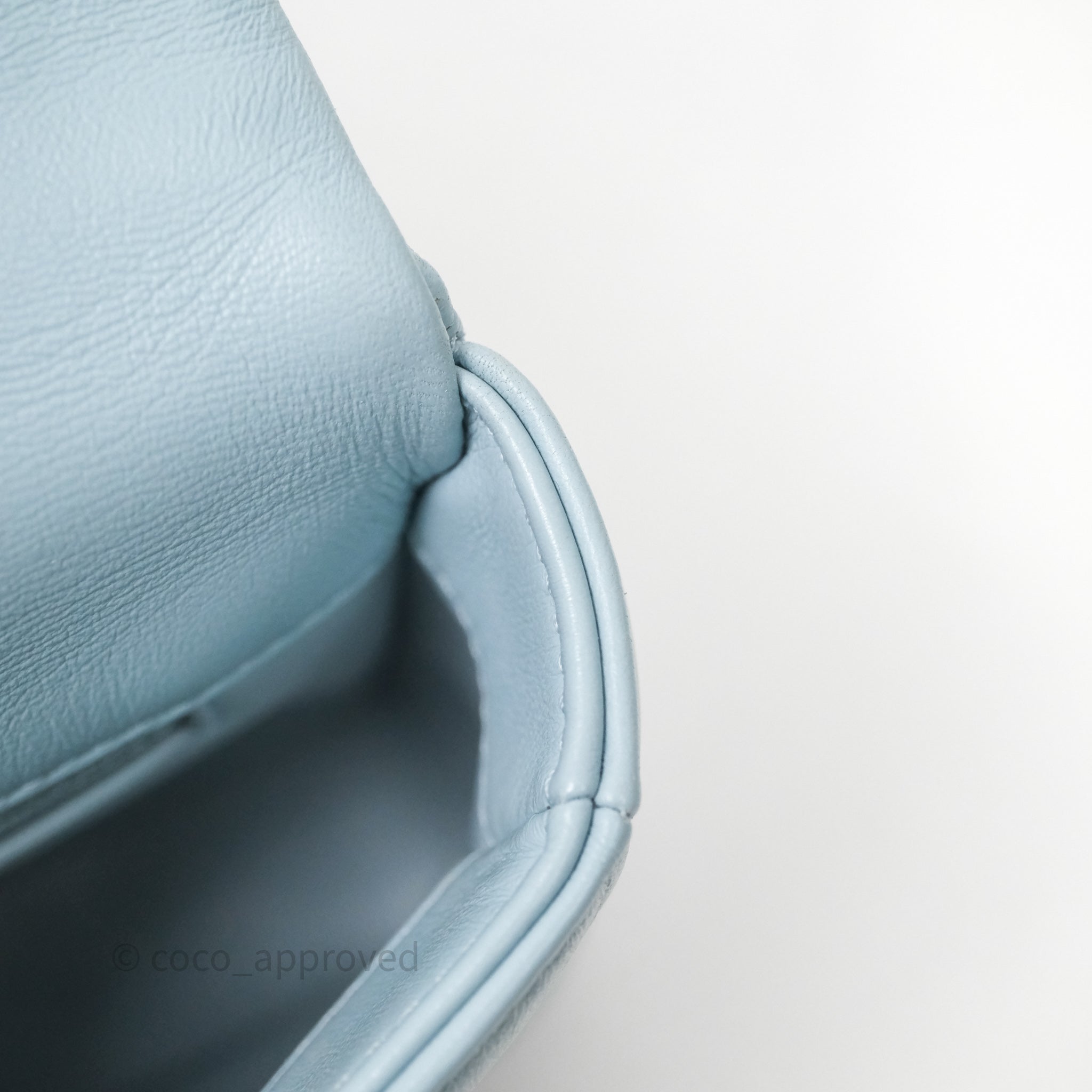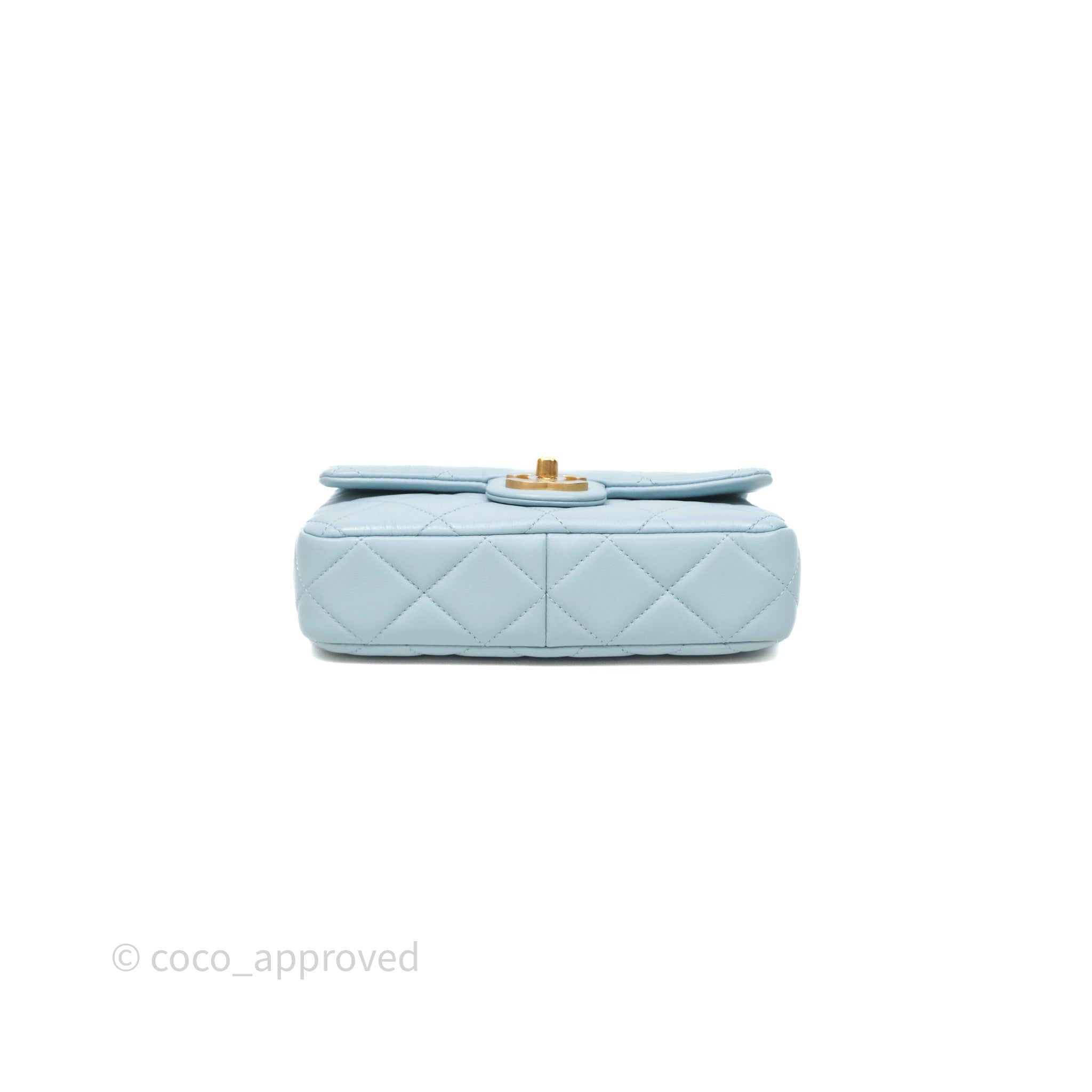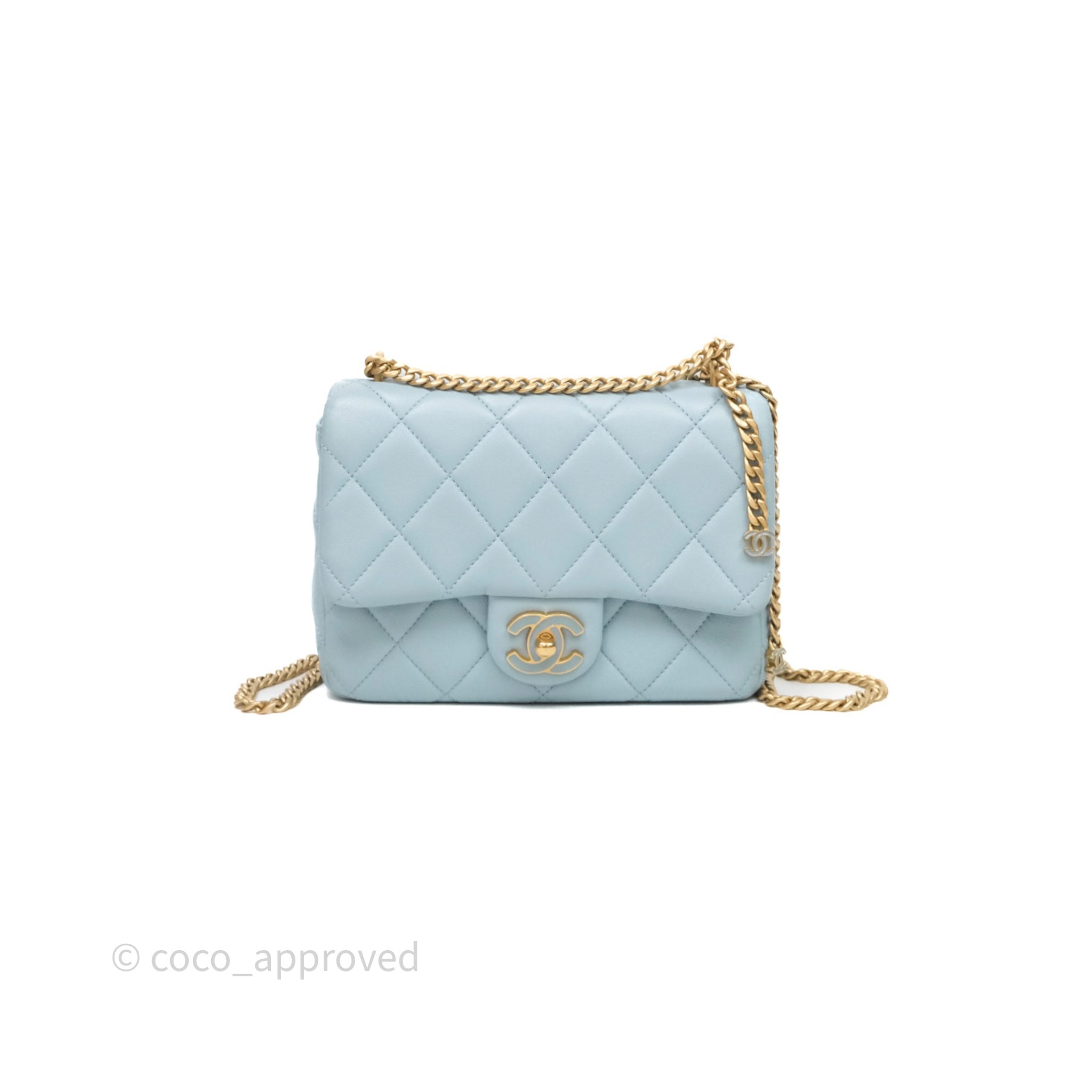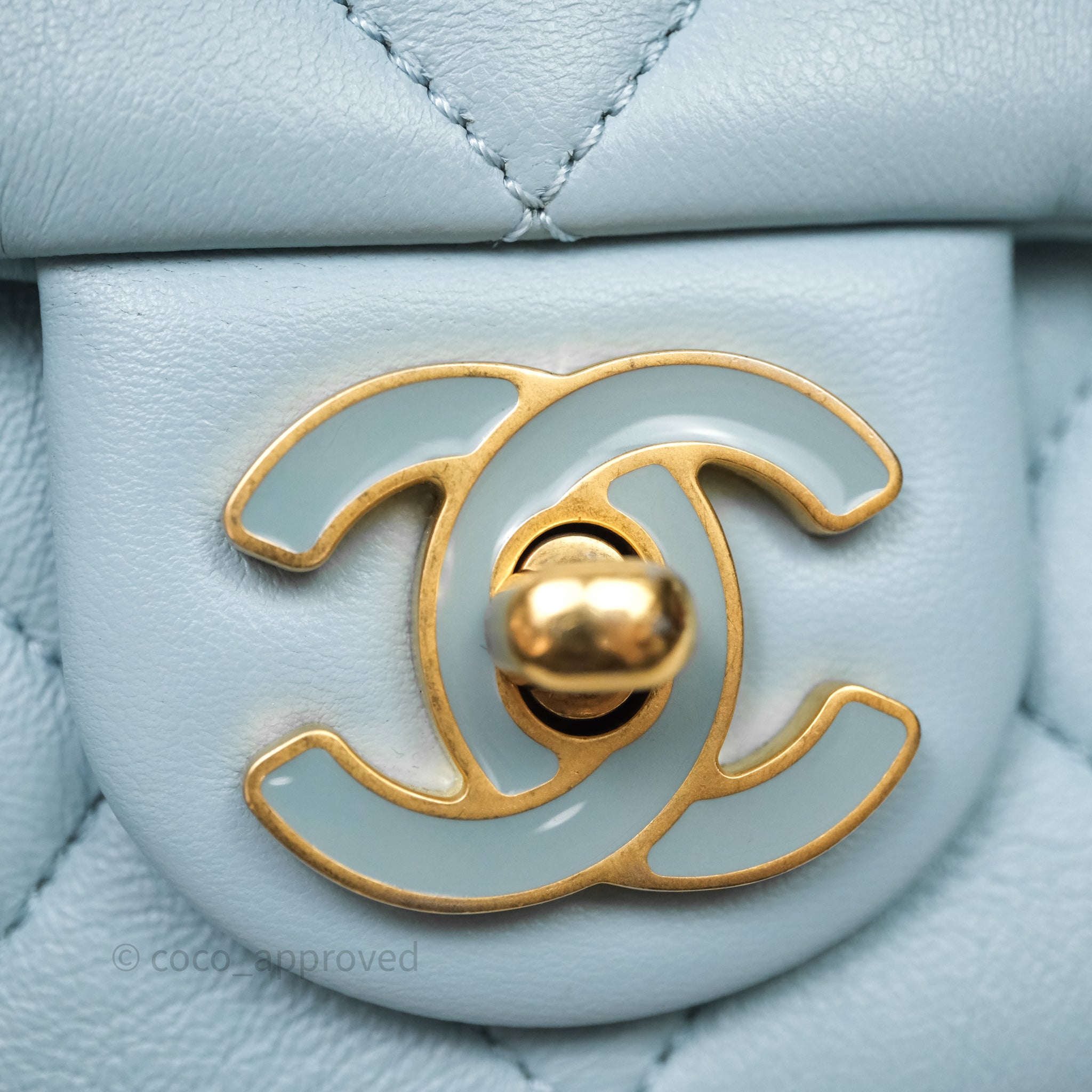 Chanel Quilted Enamel Pending CC Small Square Flap Baby Blue Lambskin
