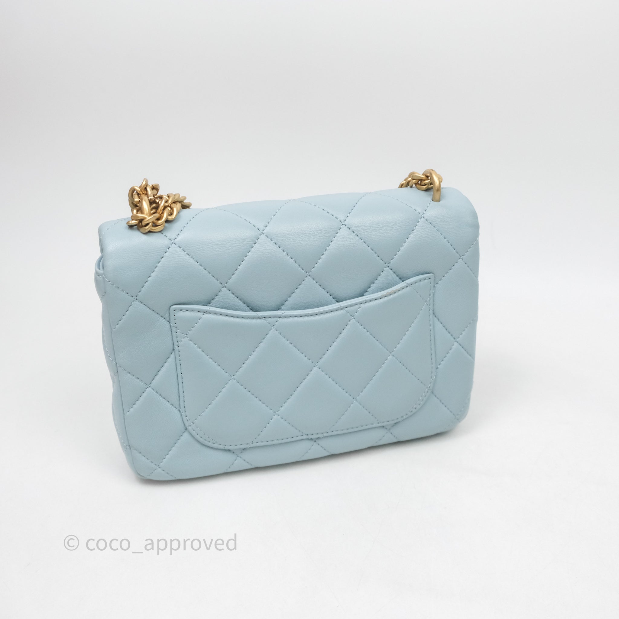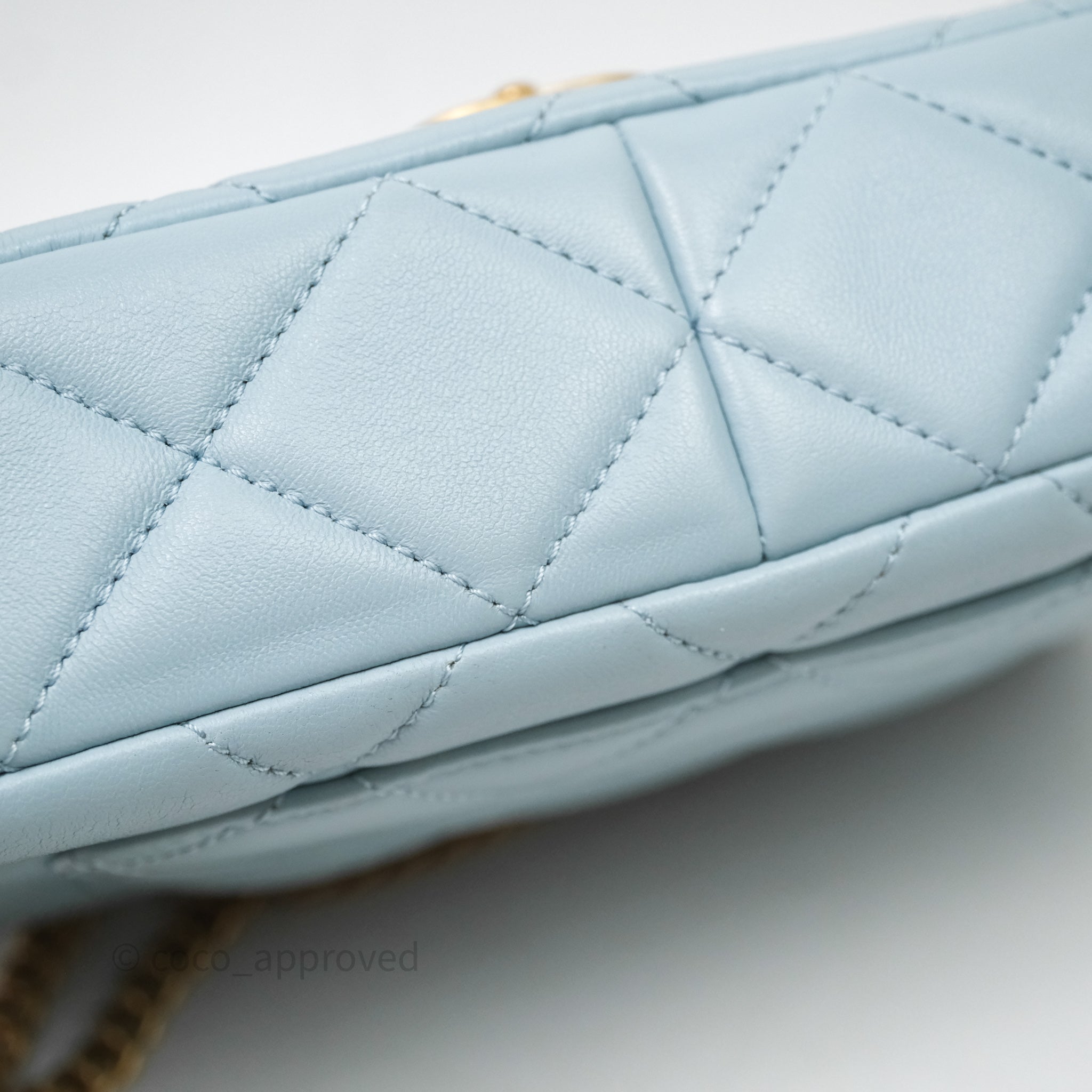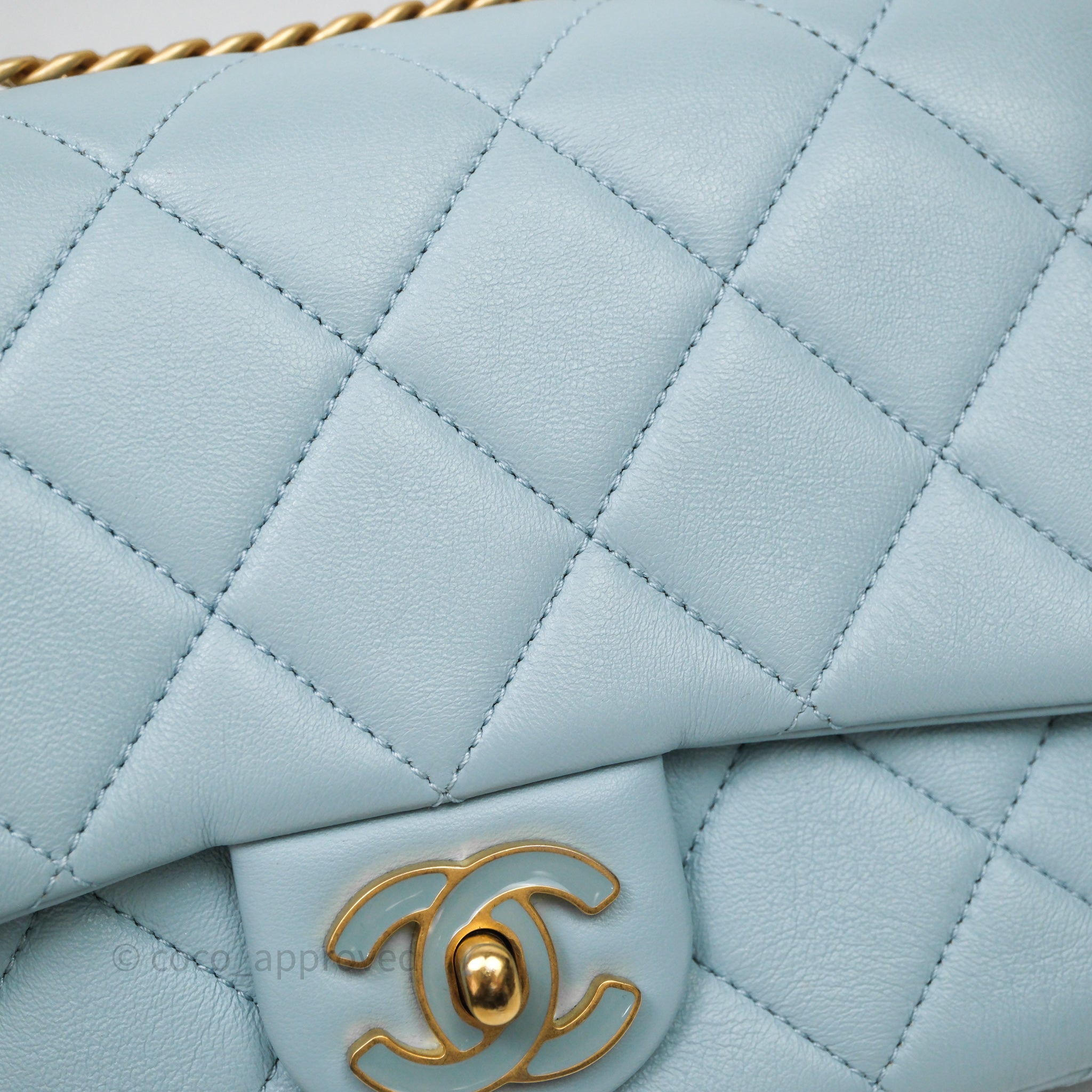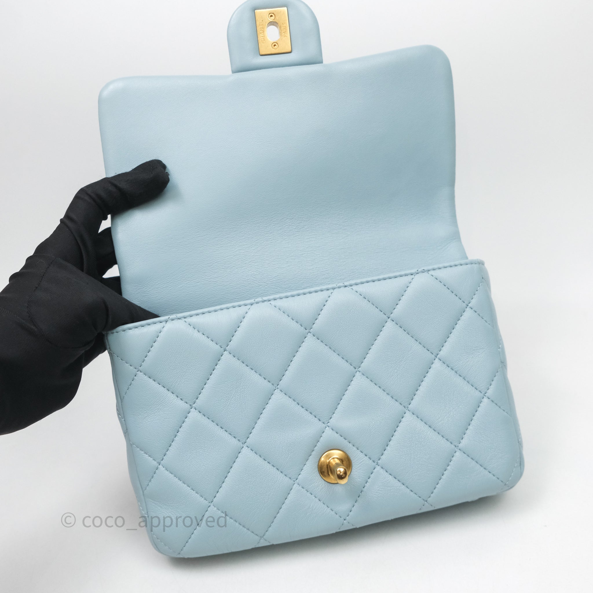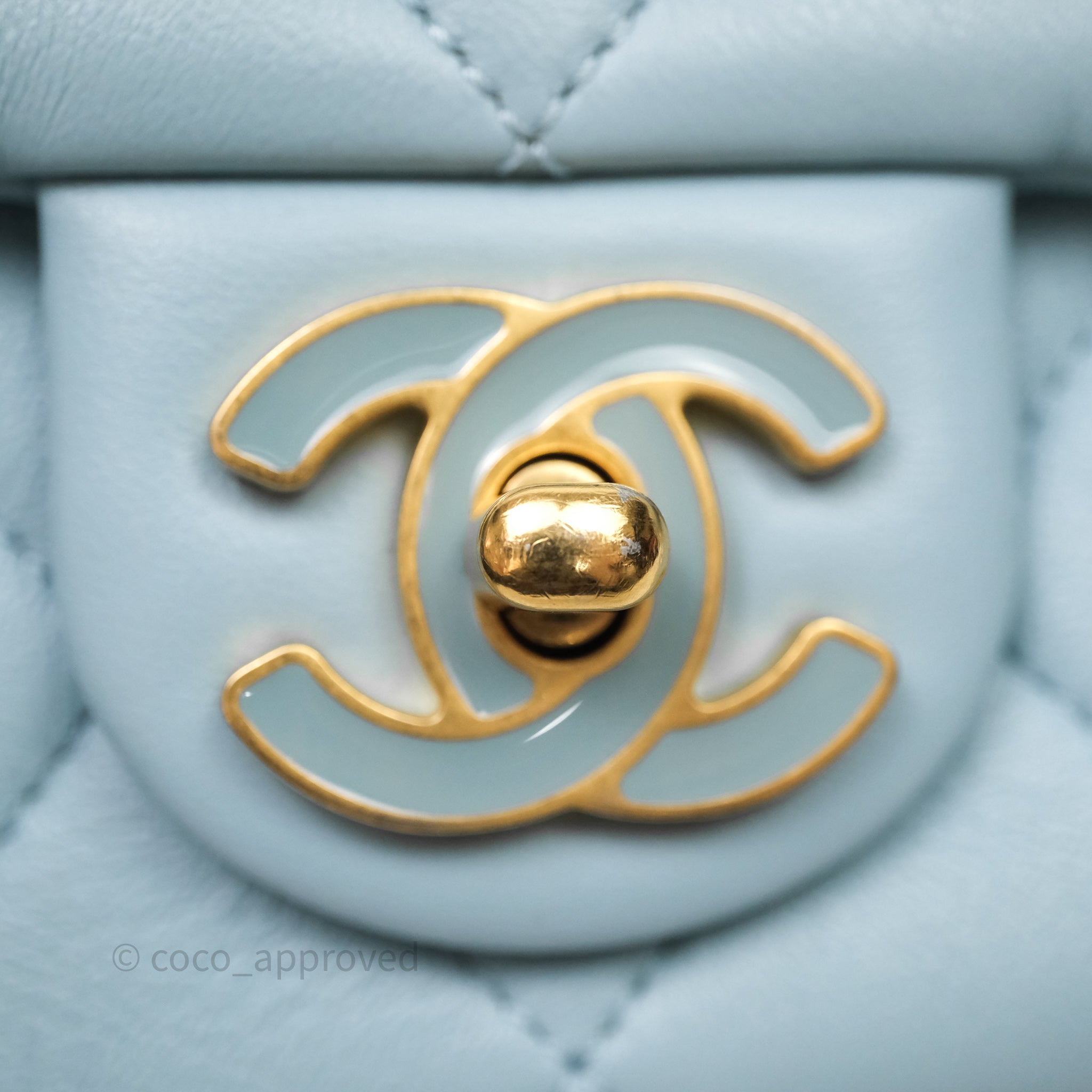 Chanel Quilted Enamel Pending CC Small Square Flap Baby Blue Lambskin