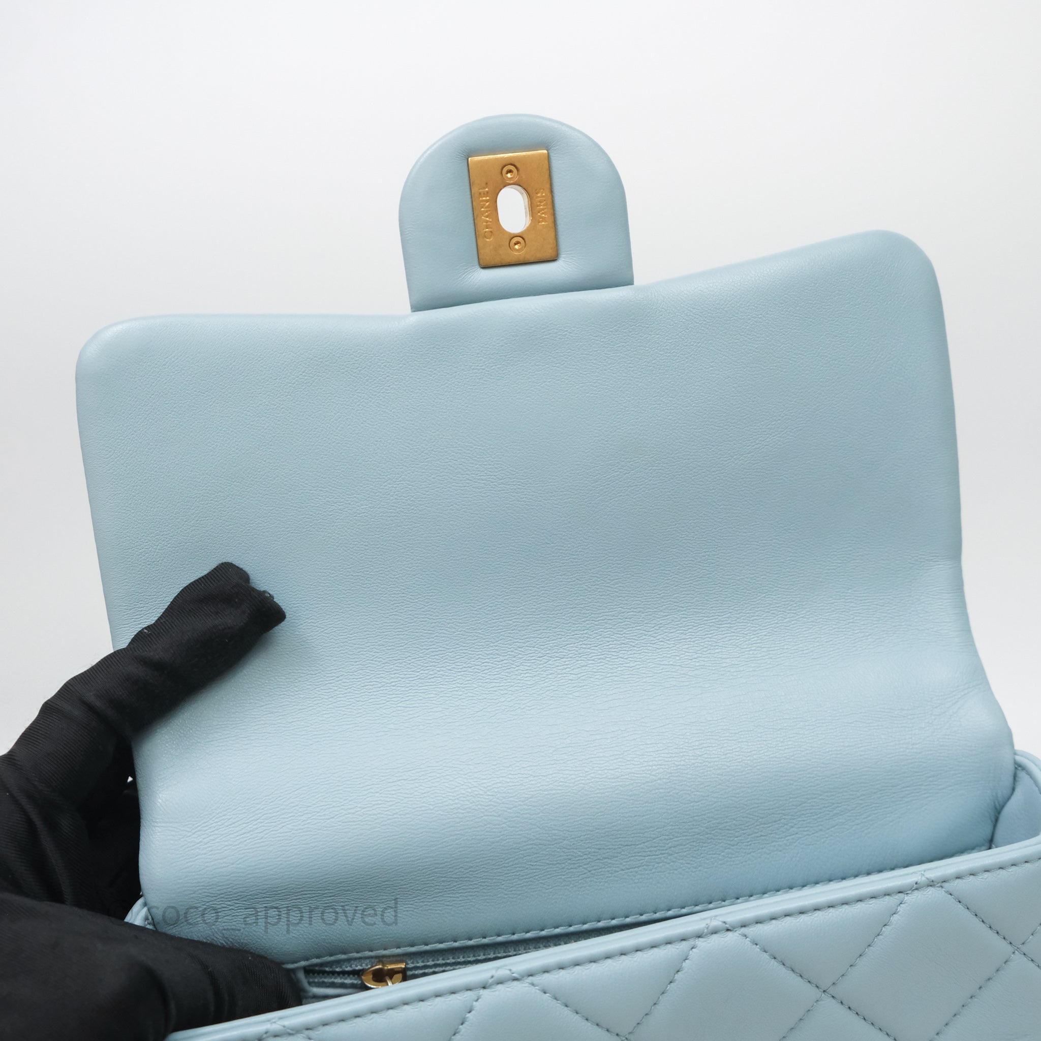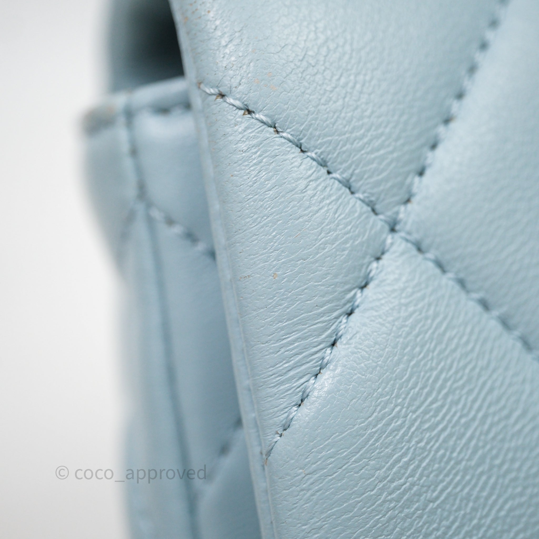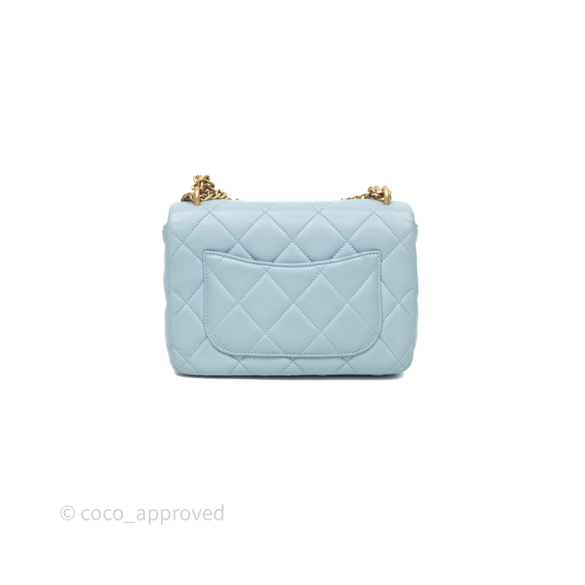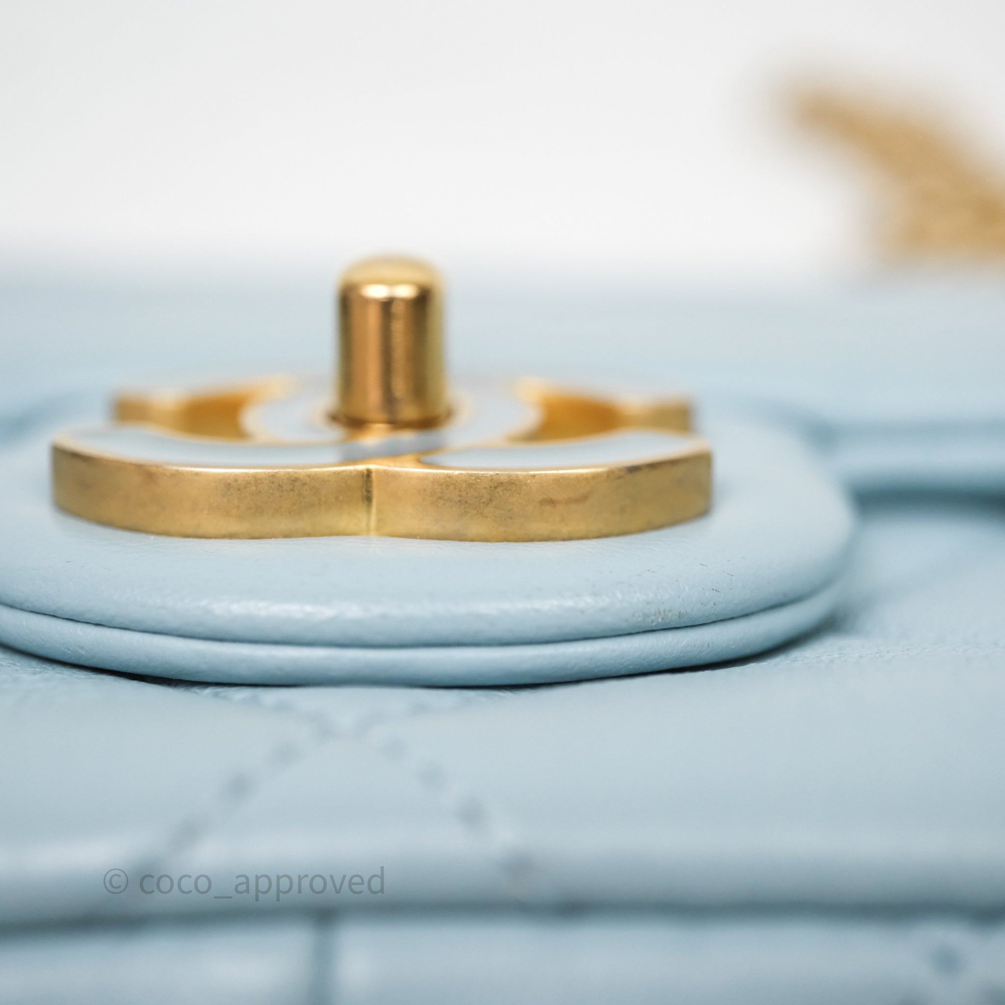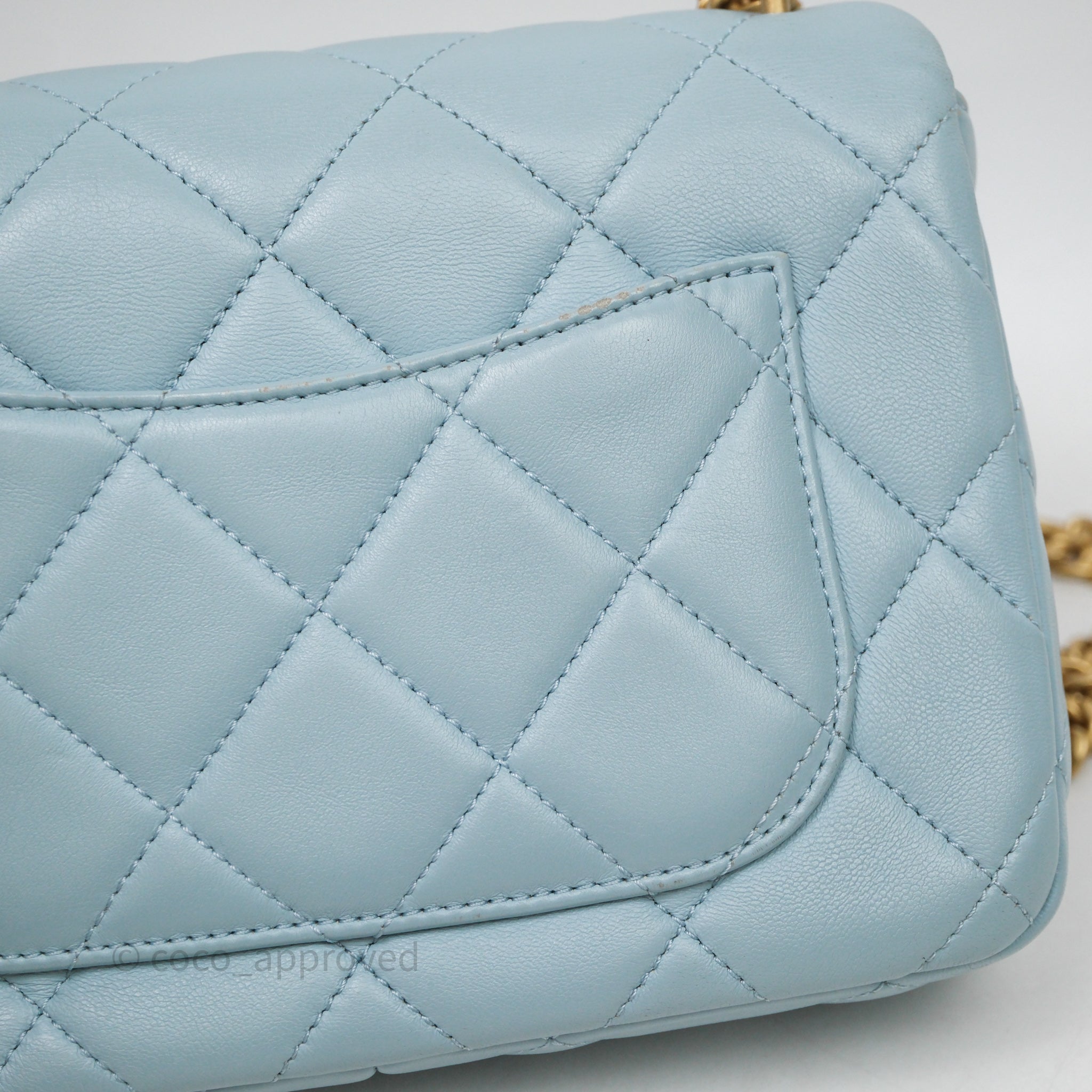 Chanel Quilted Enamel Pending CC Small Square Flap Baby Blue Lambskin