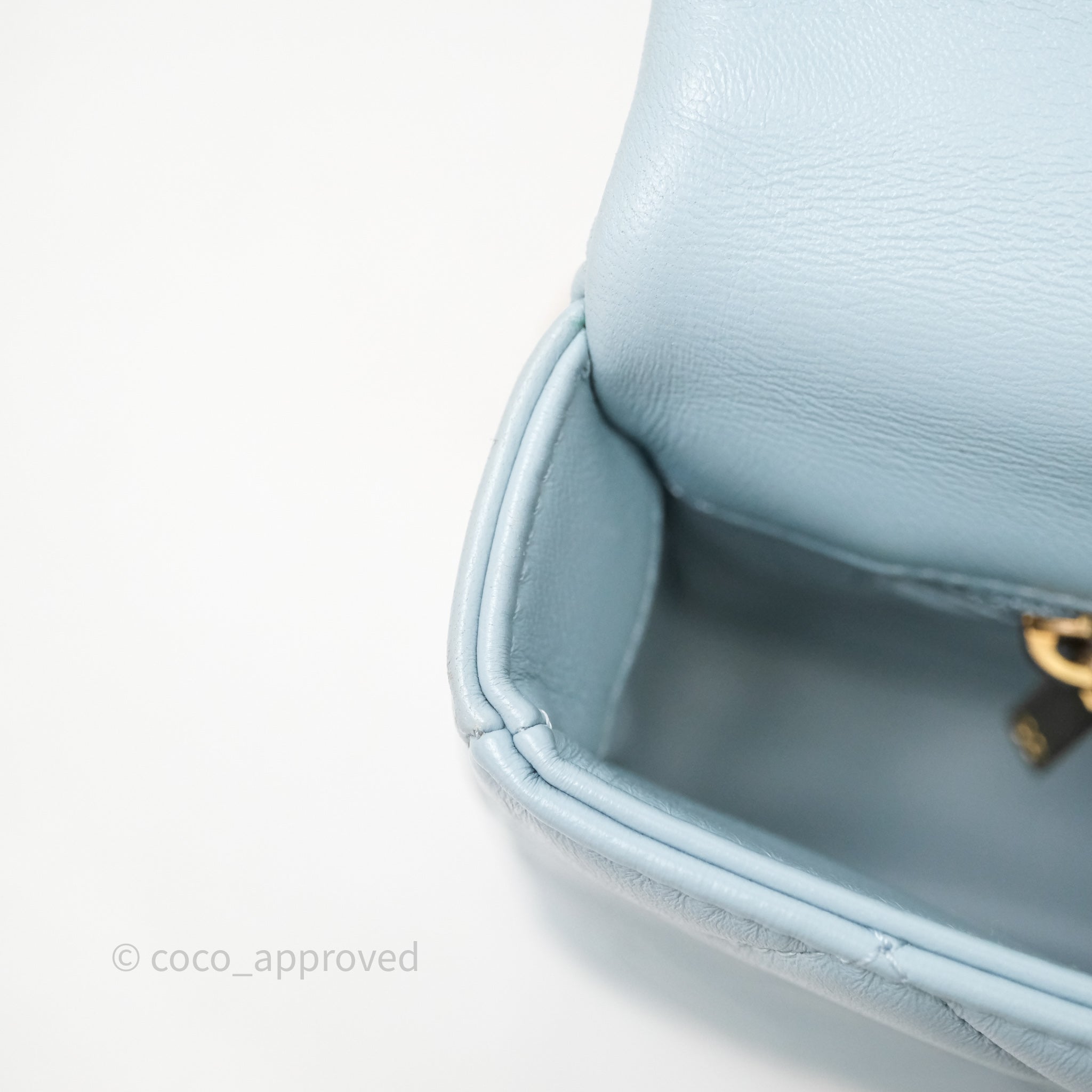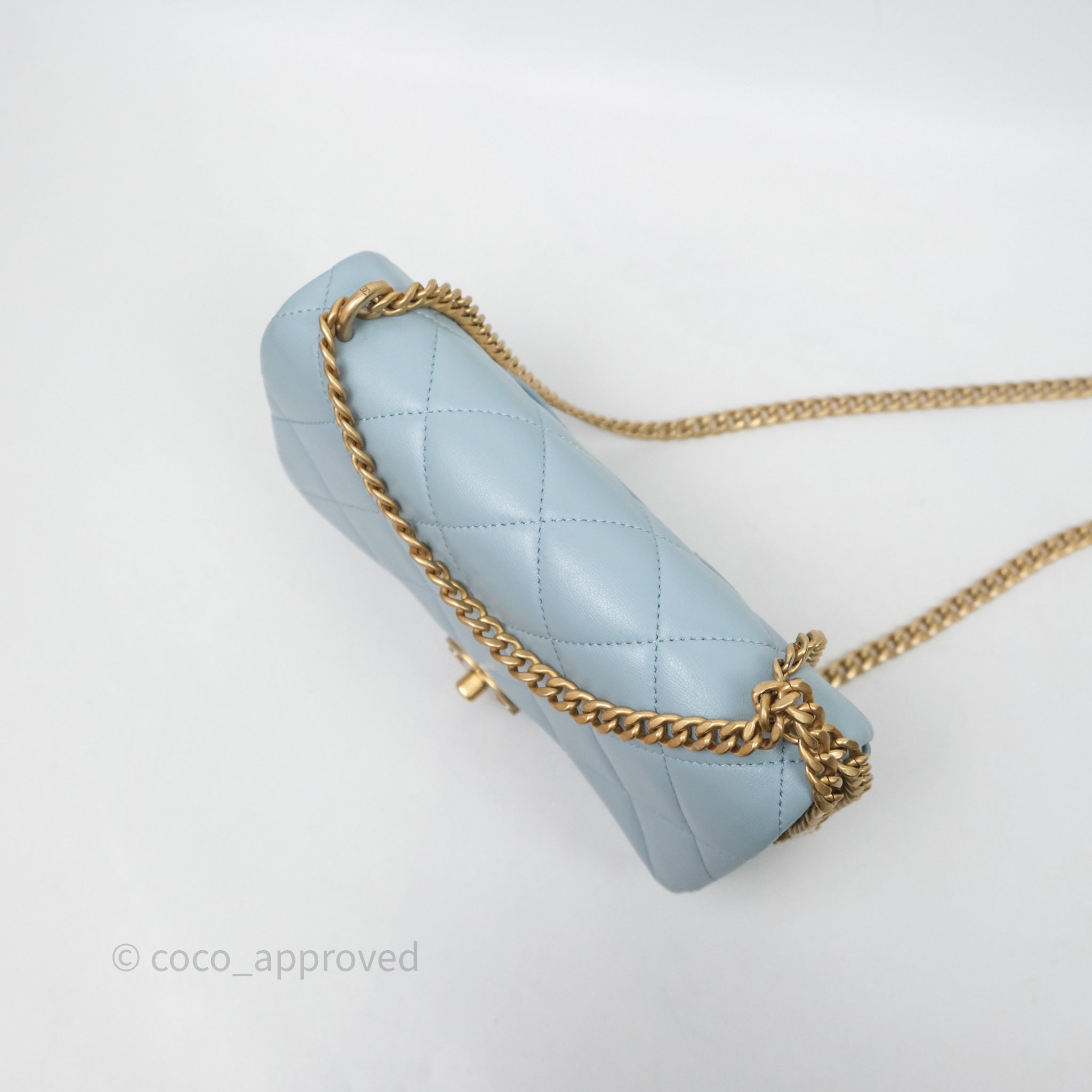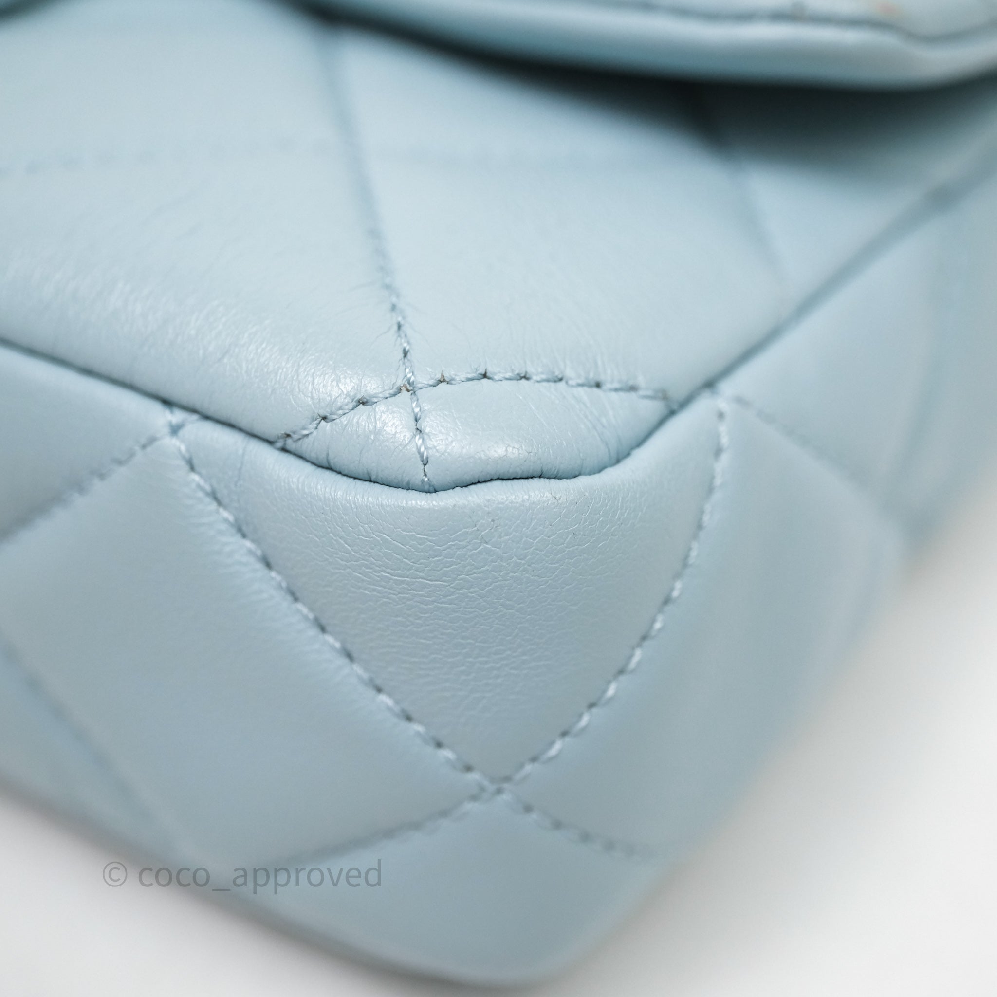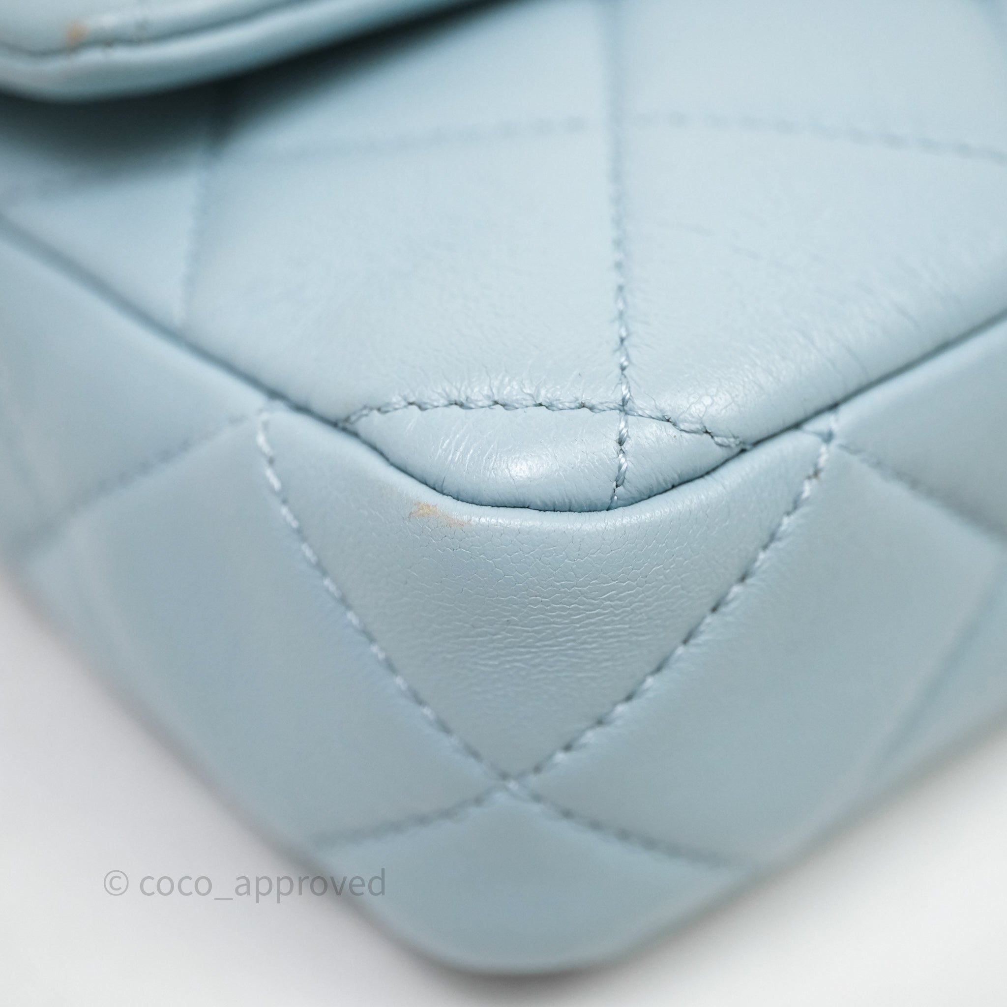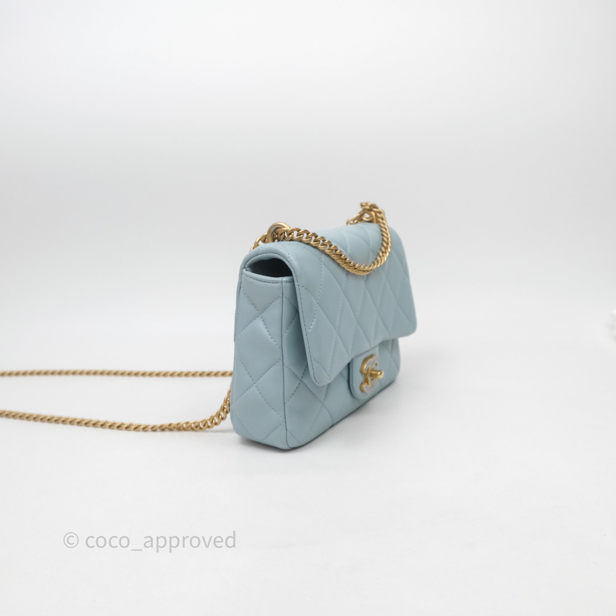 Chanel Quilted Enamel Pending CC Small Square Flap Baby Blue Lambskin