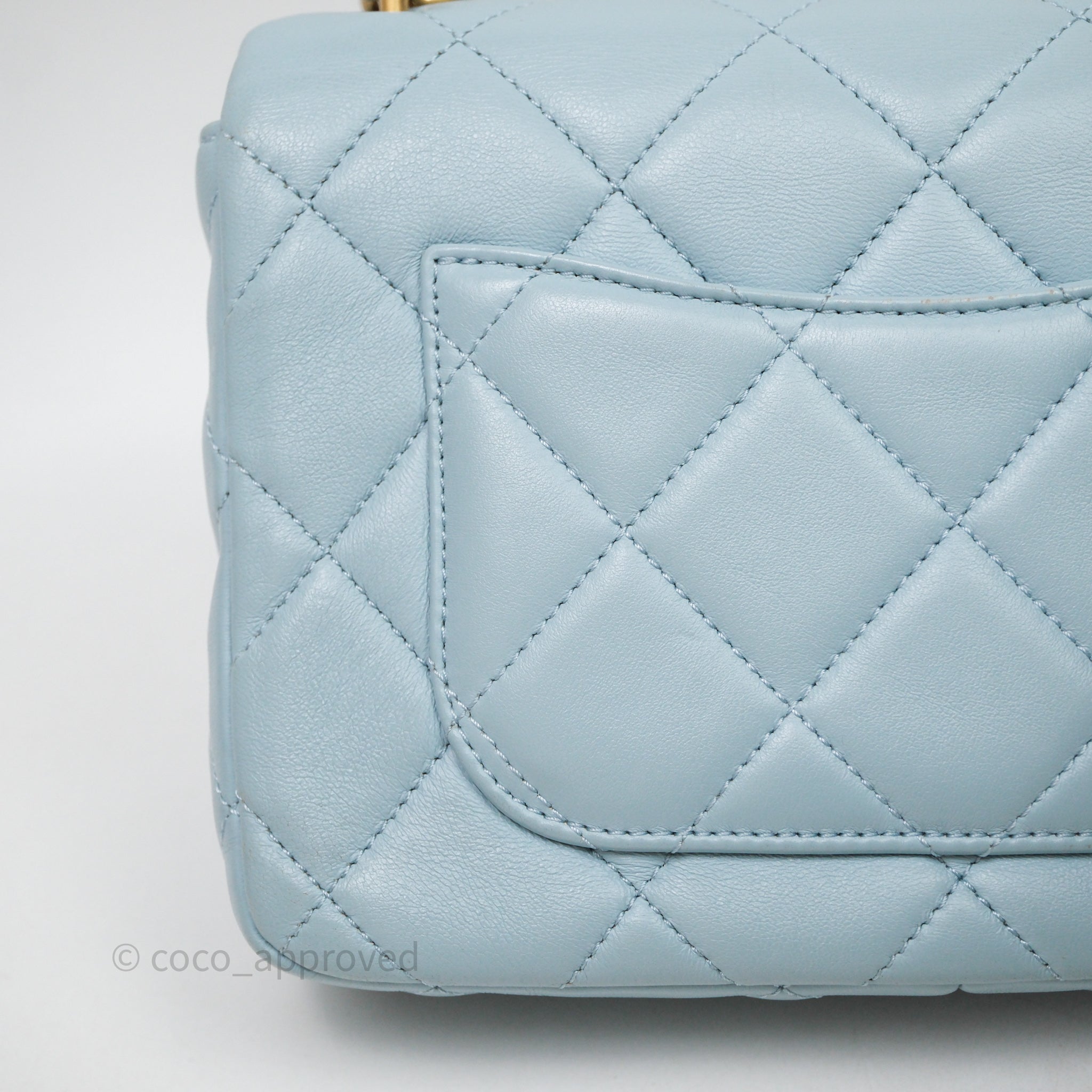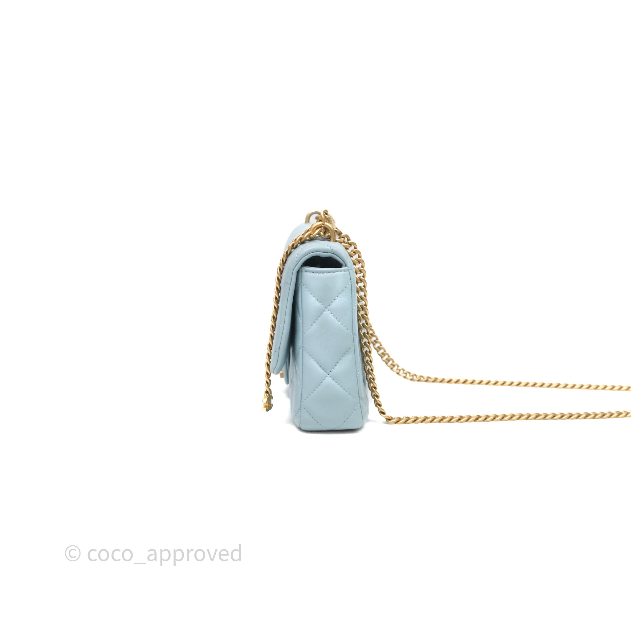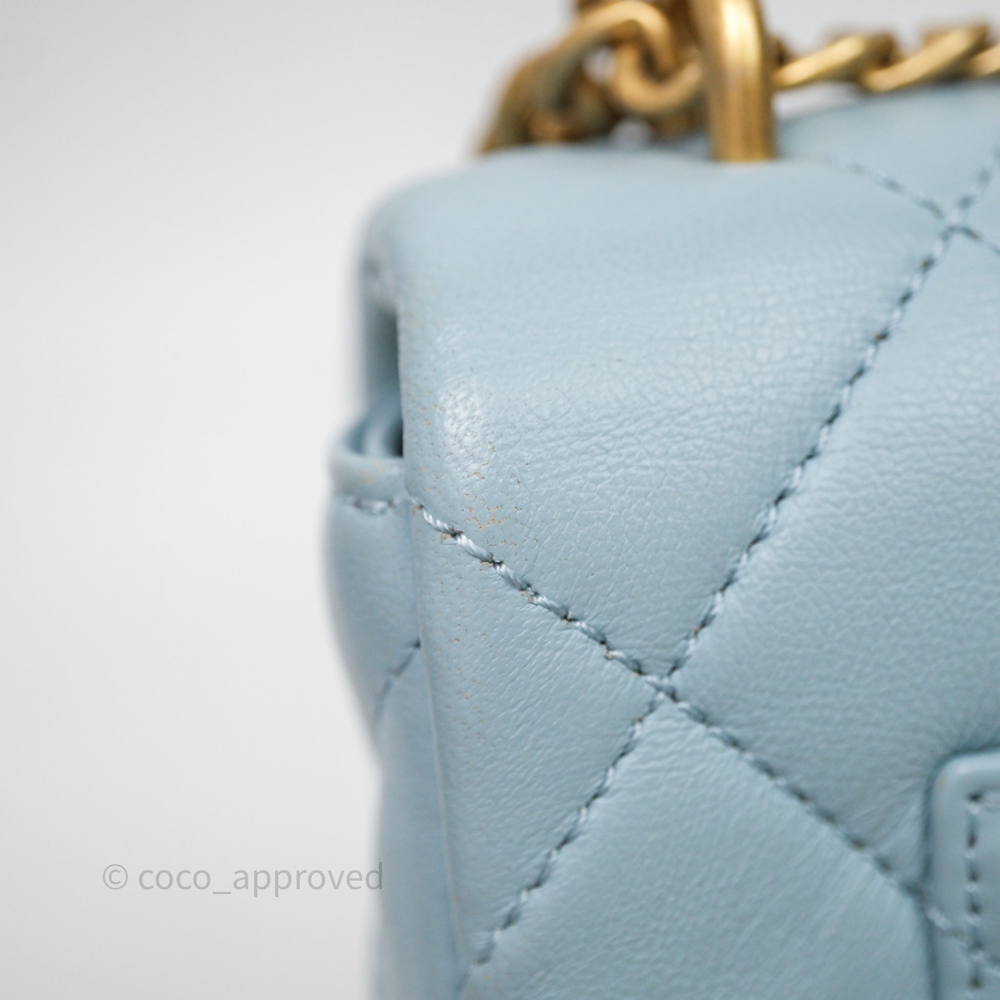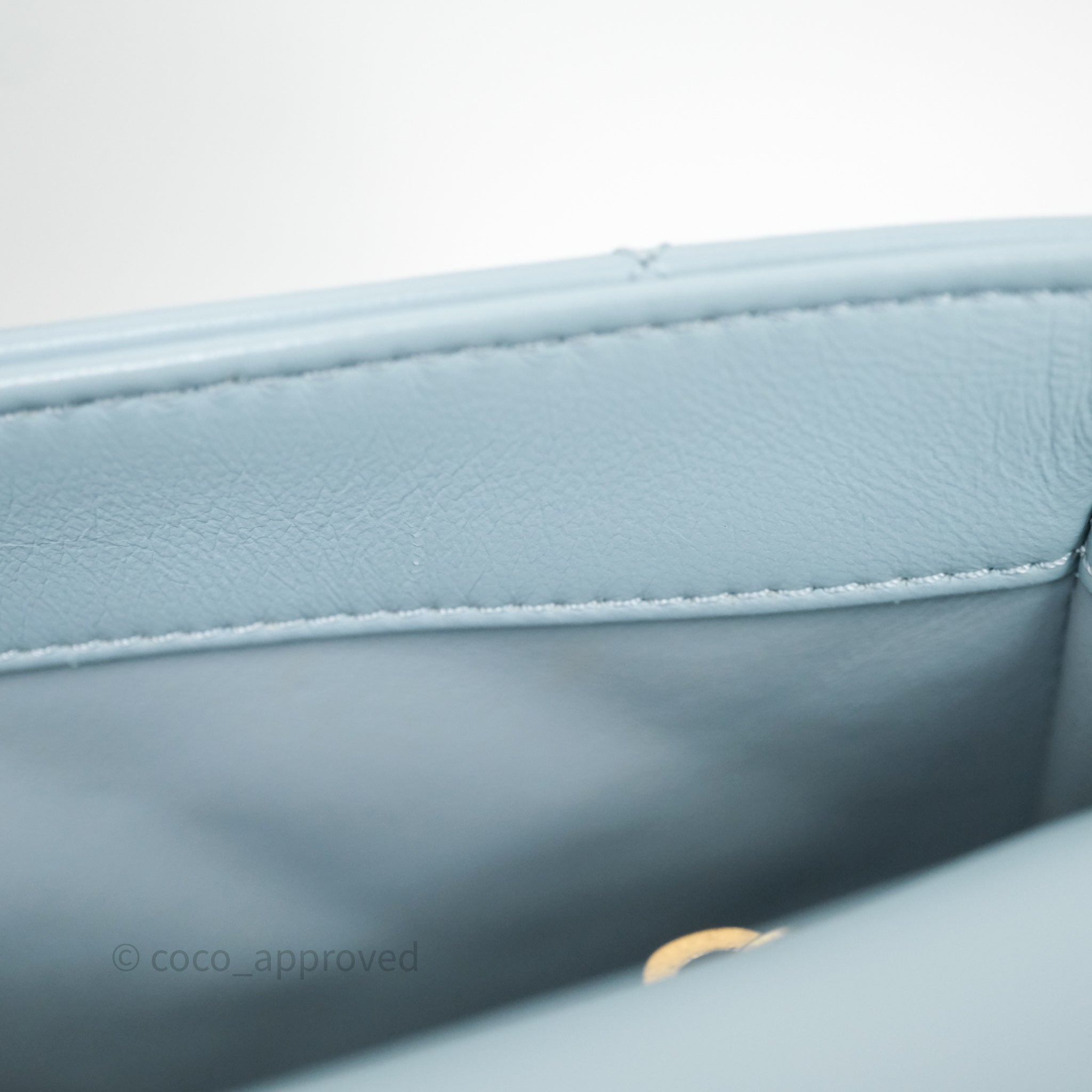 Chanel Quilted Enamel Pending CC Small Square Flap Baby Blue Lambskin