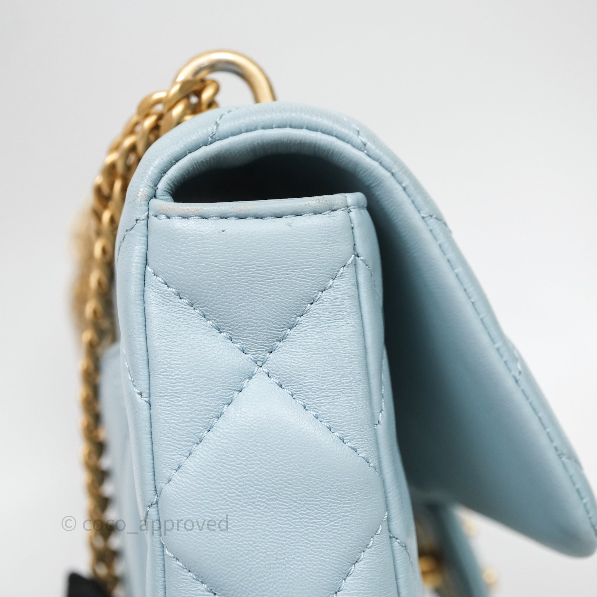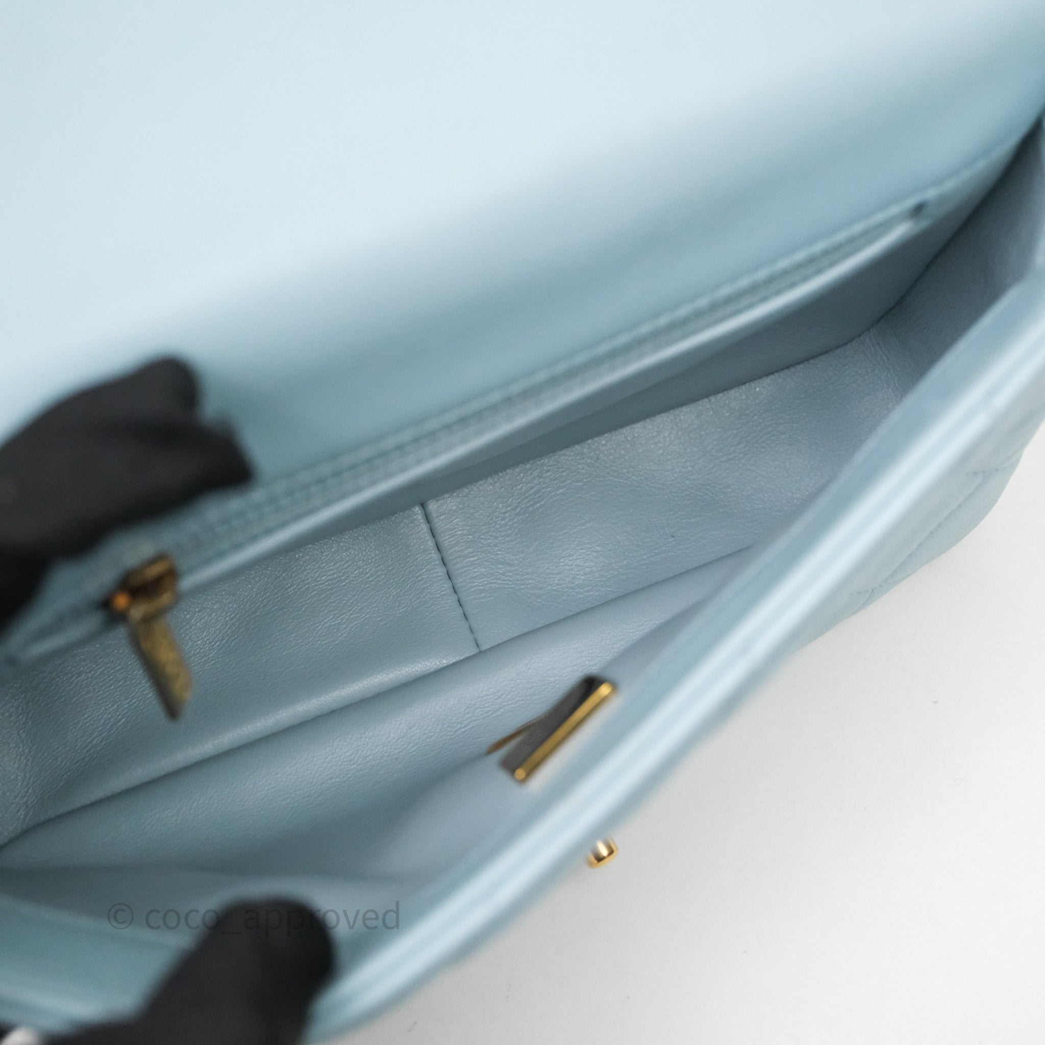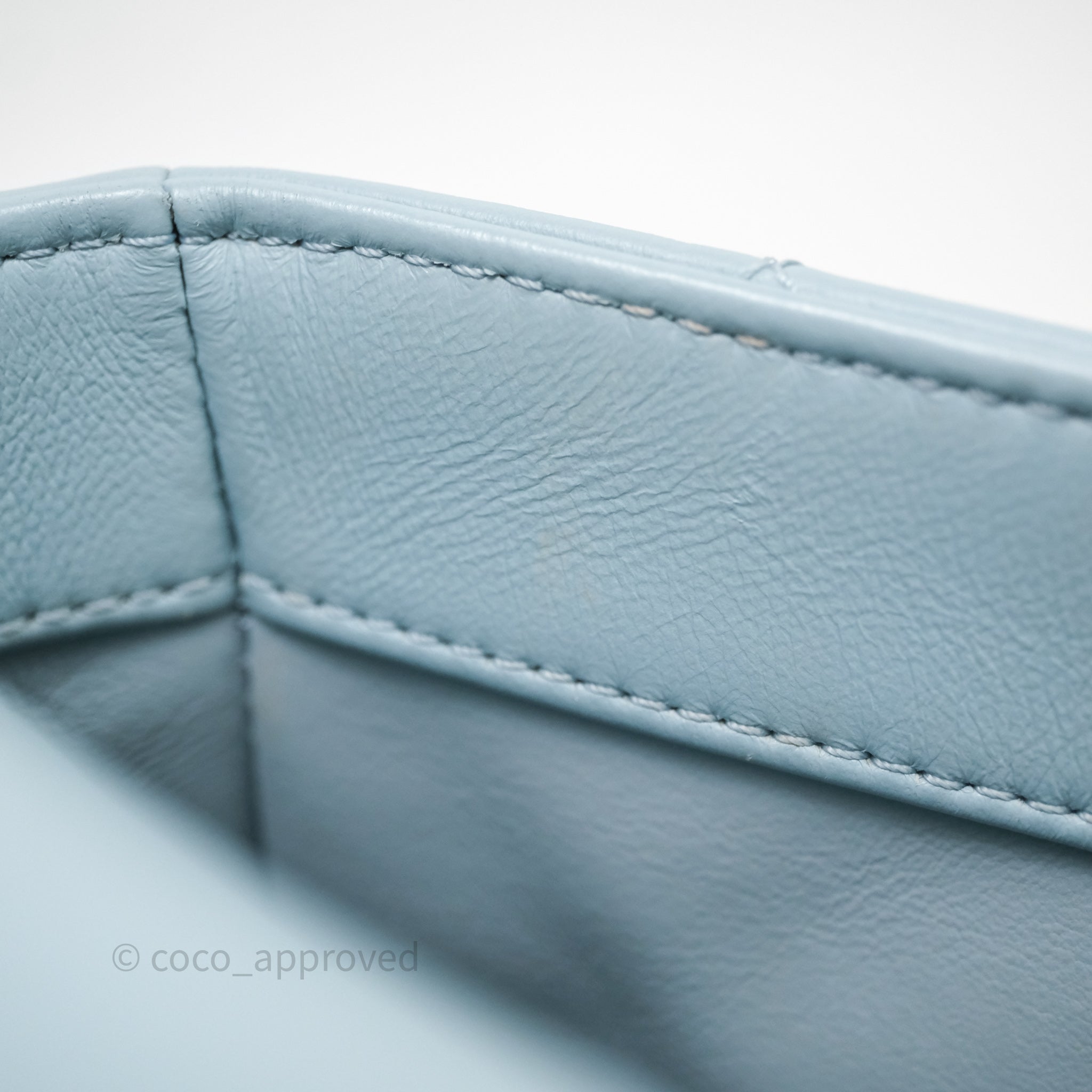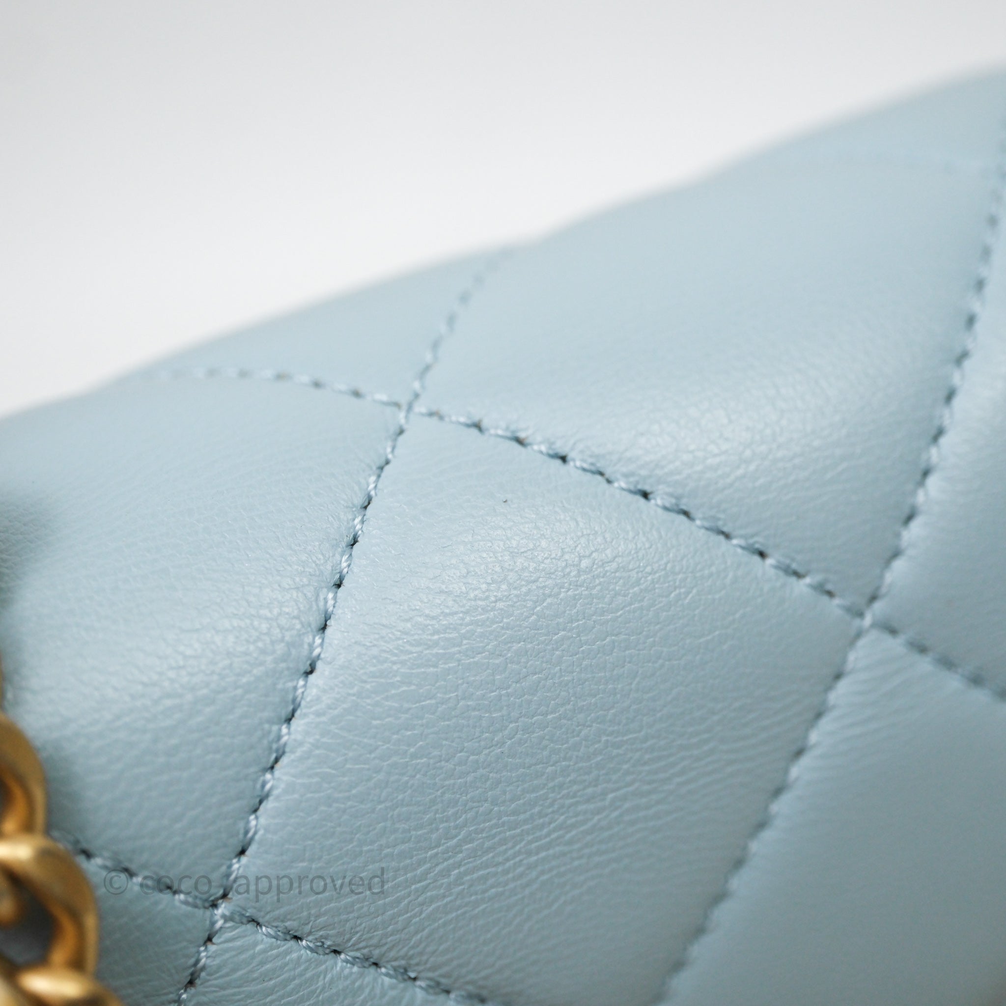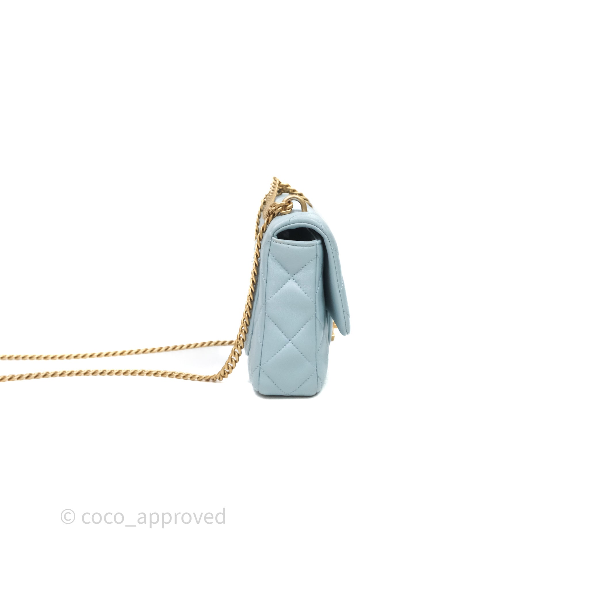 Chanel Quilted Enamel Pending CC Small Square Flap Baby Blue Lambskin