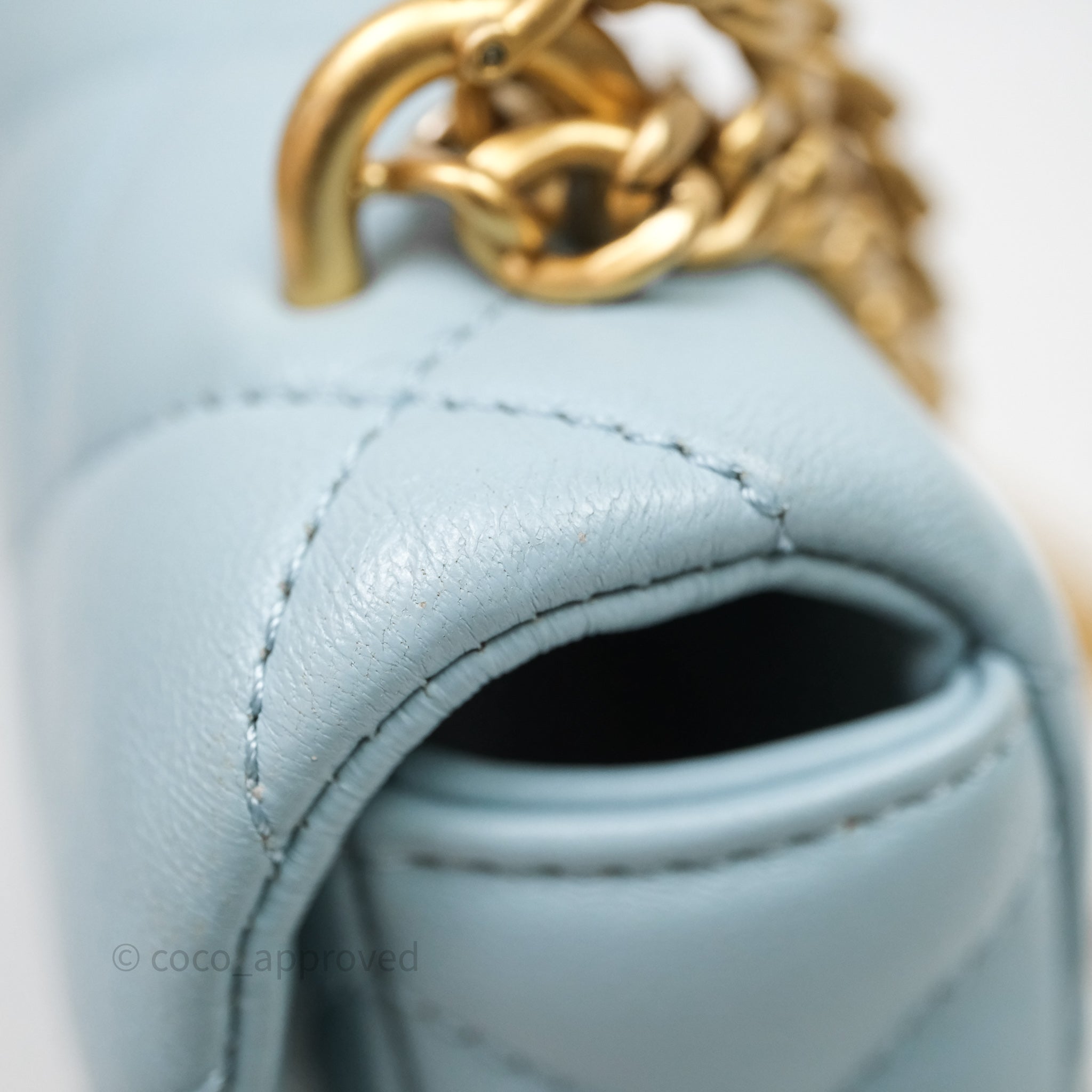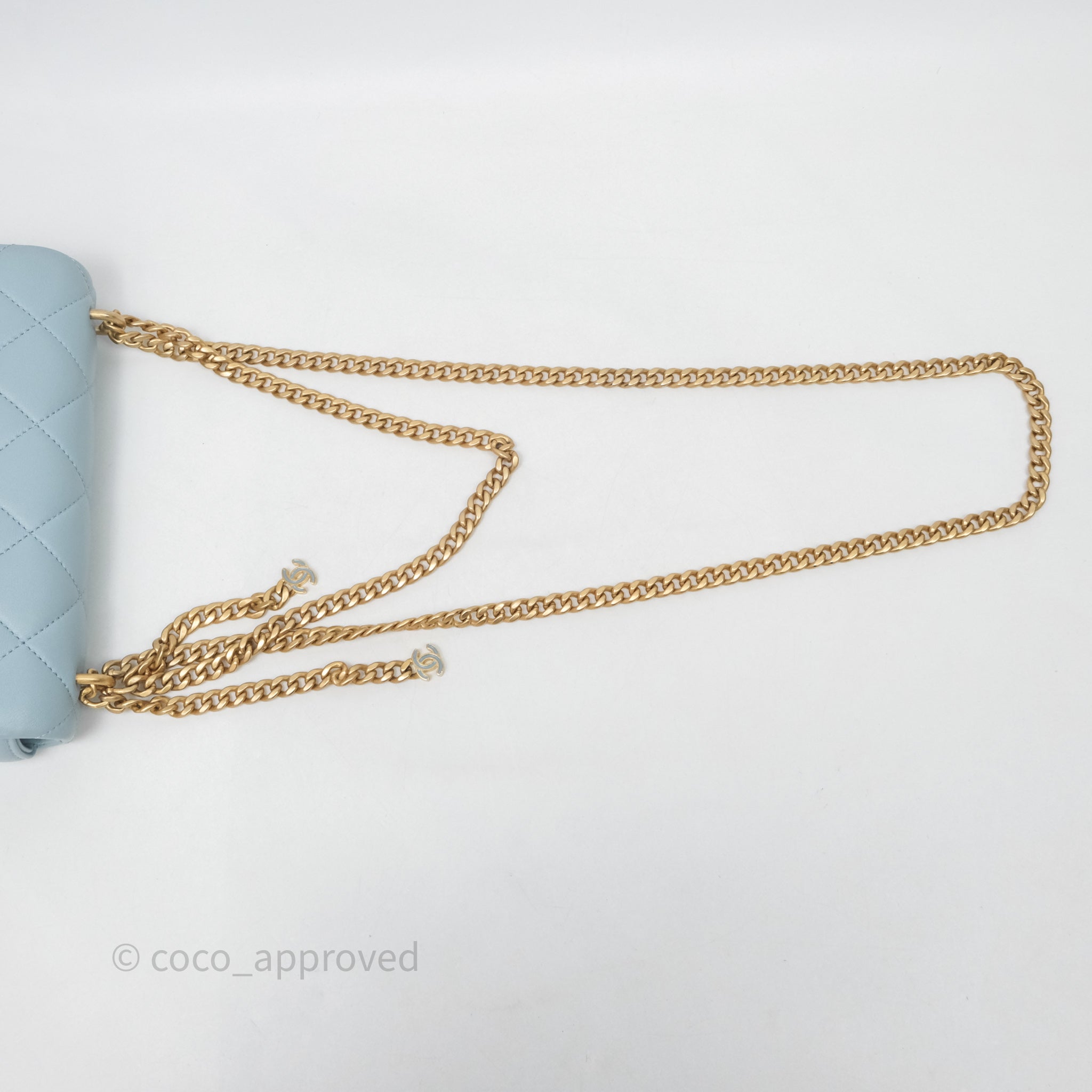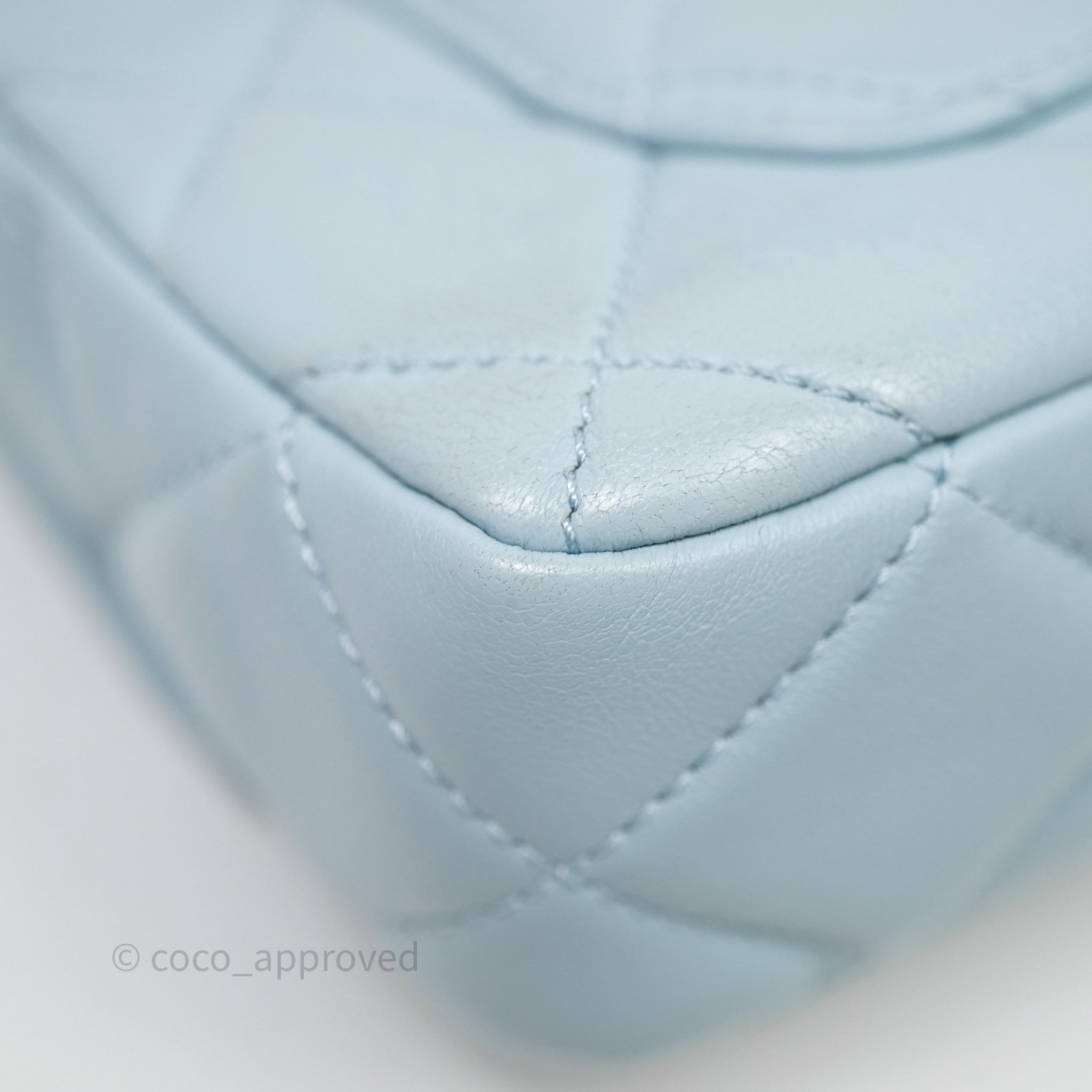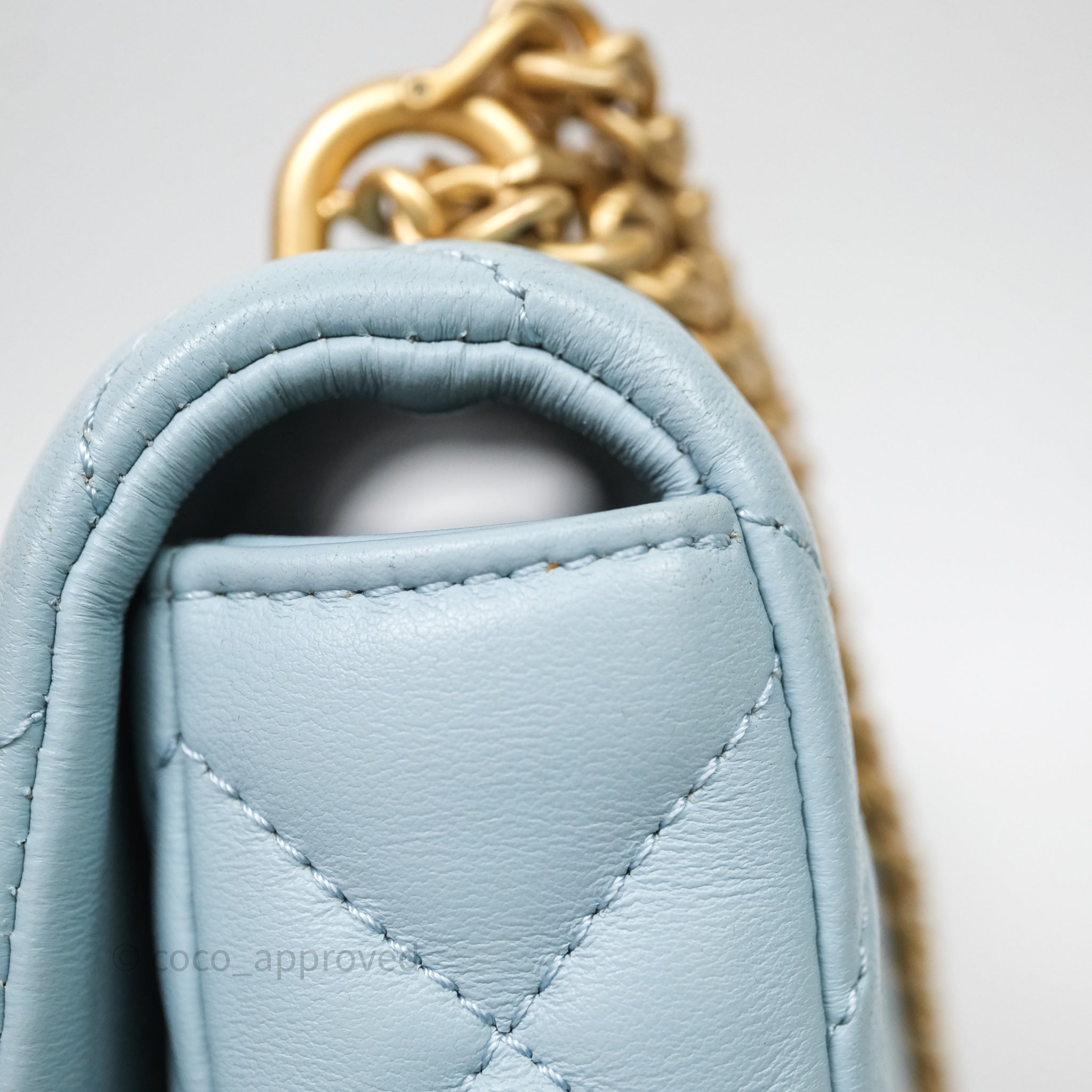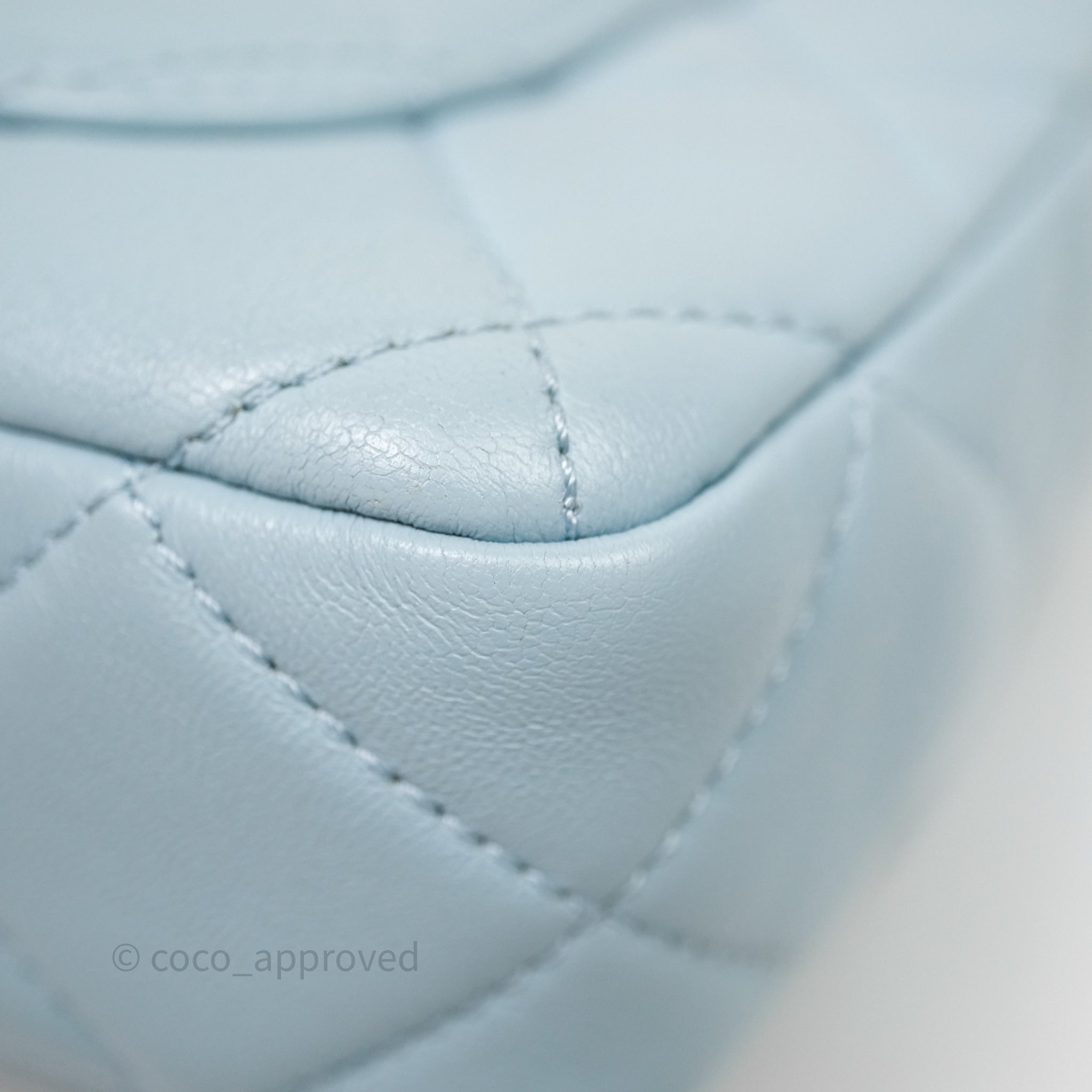 Chanel Quilted Enamel Pending CC Small Square Flap Baby Blue Lambskin