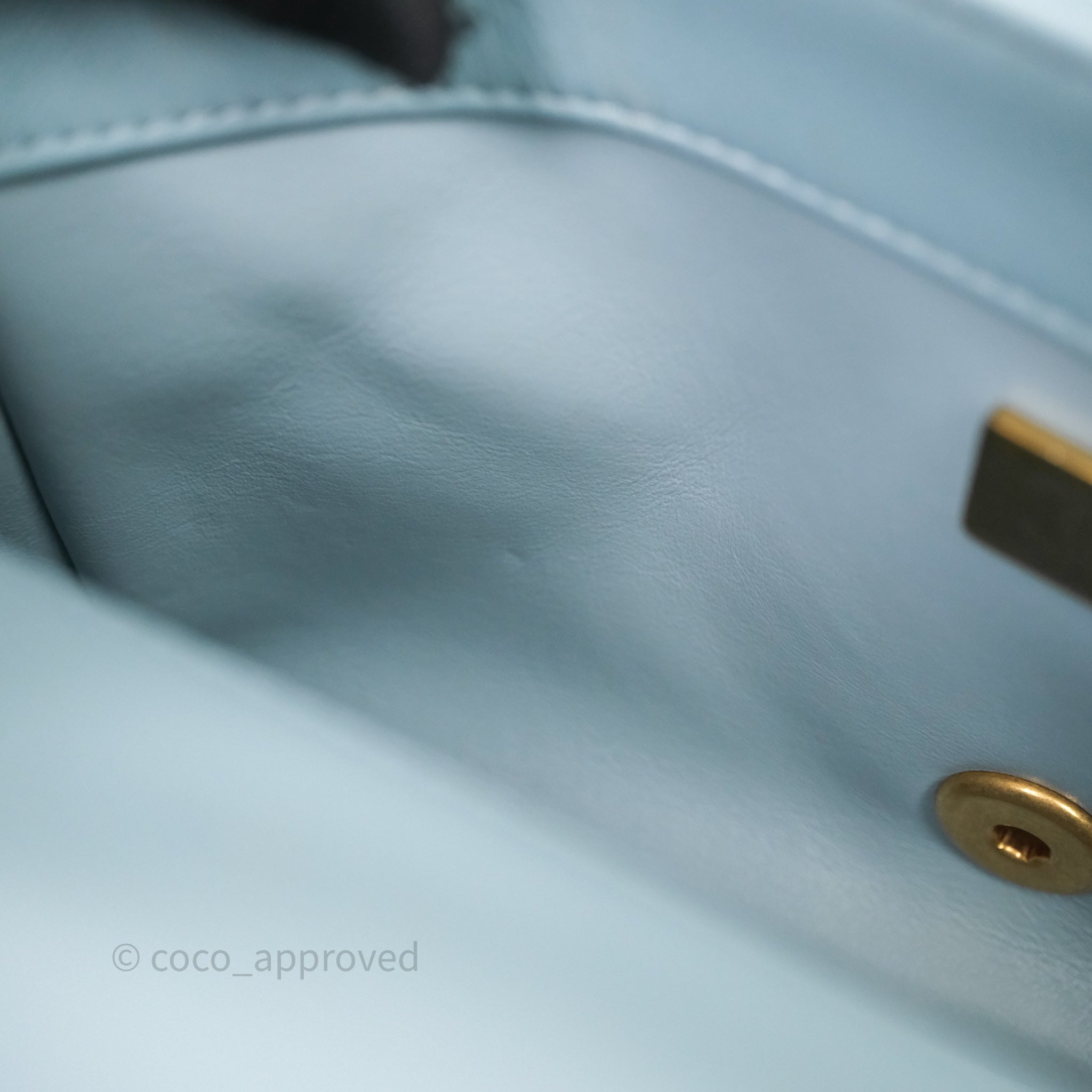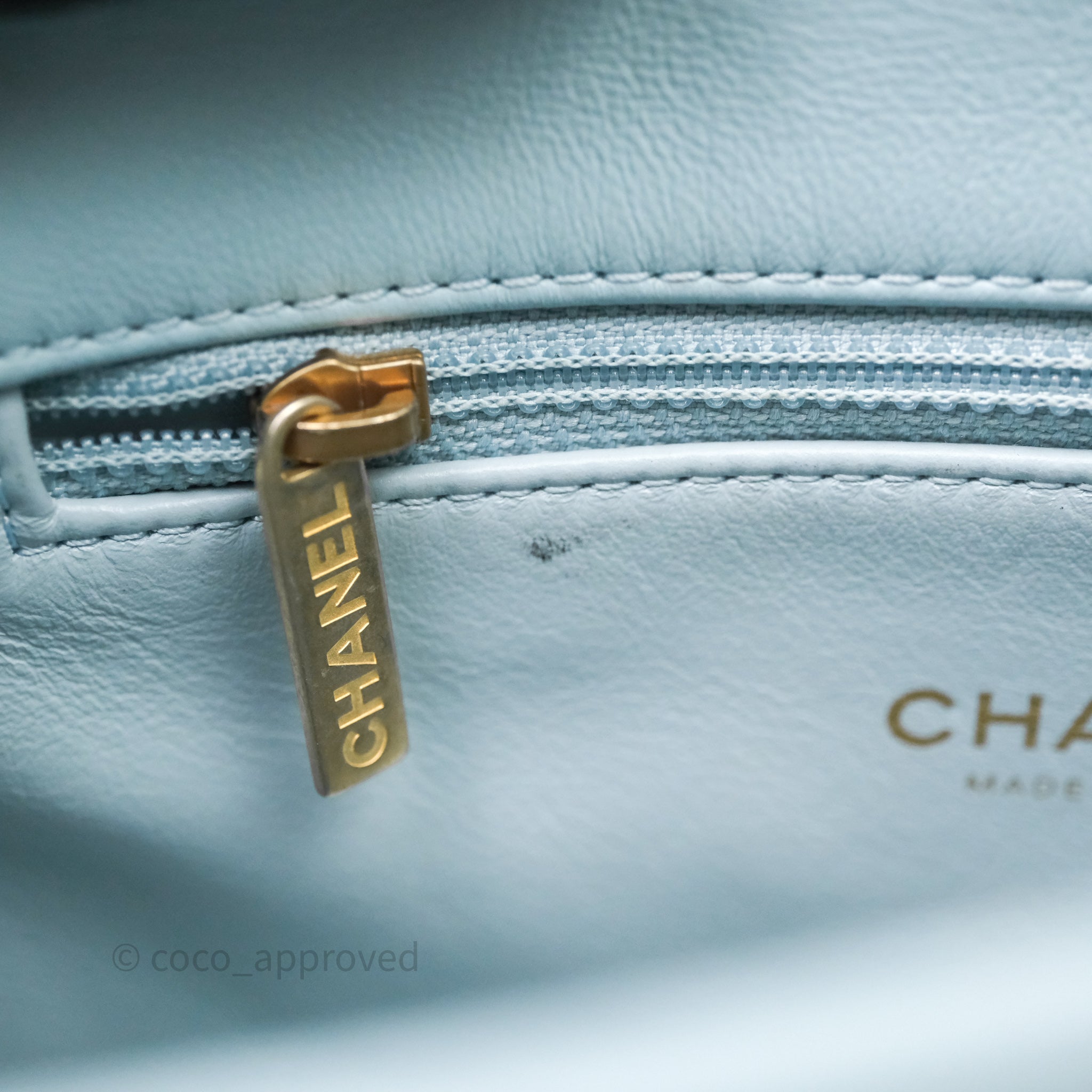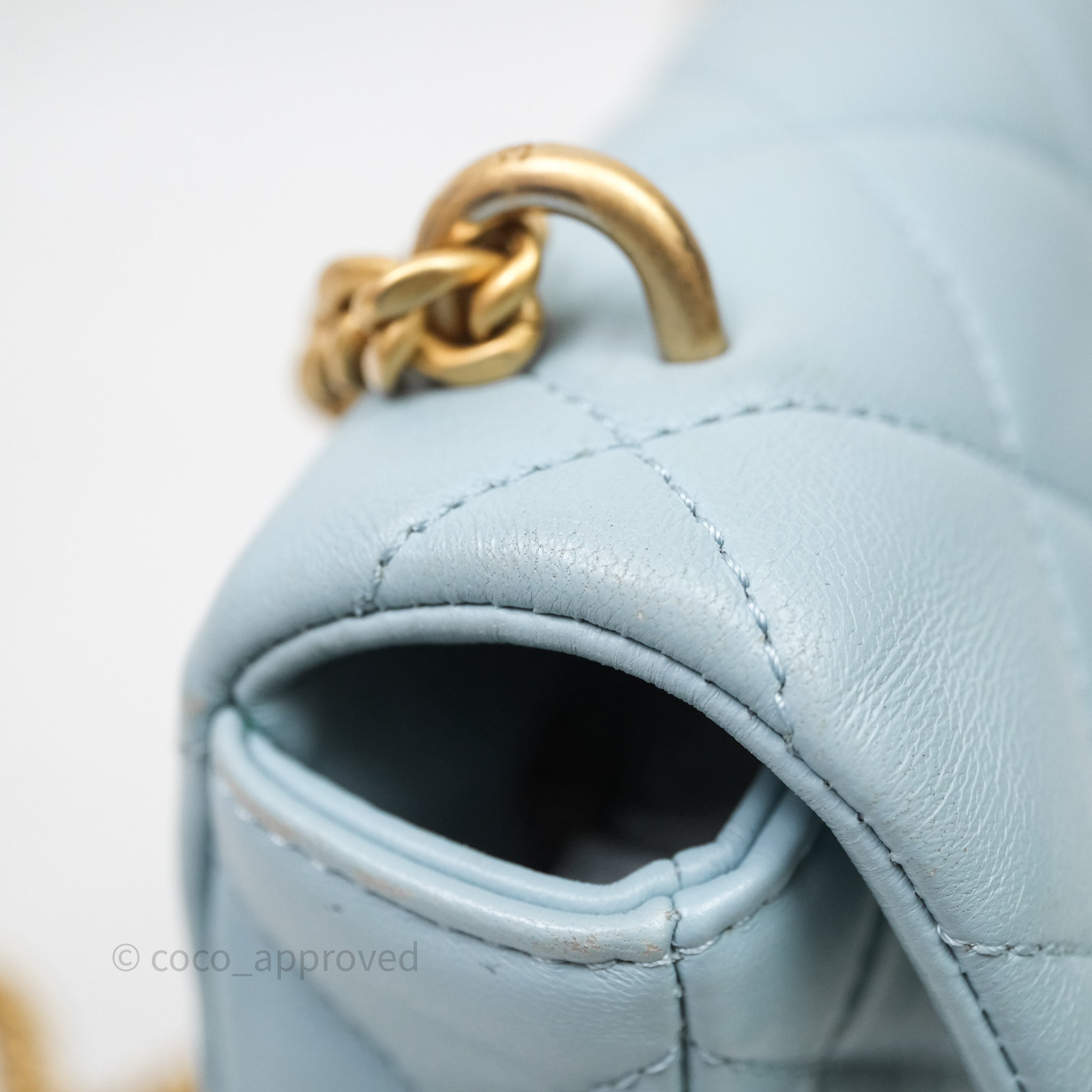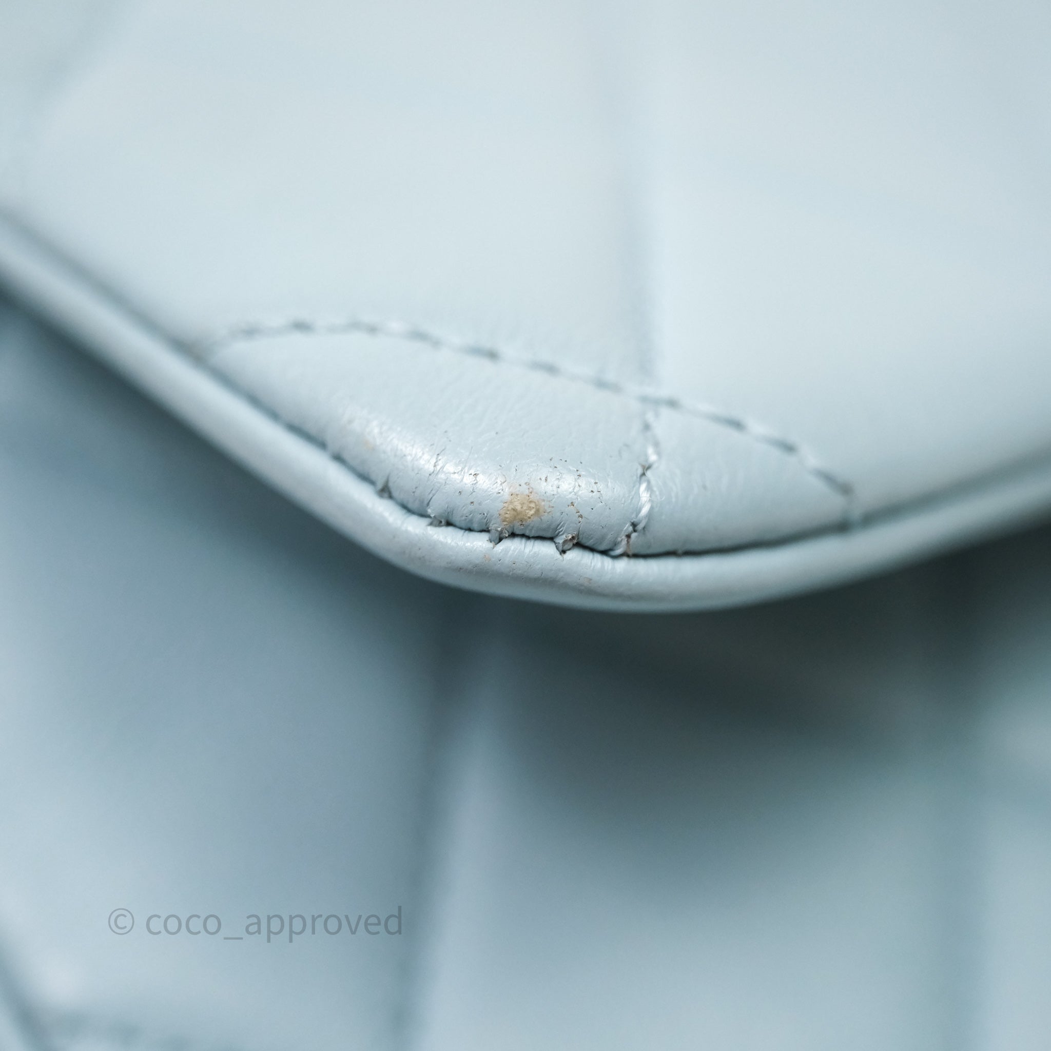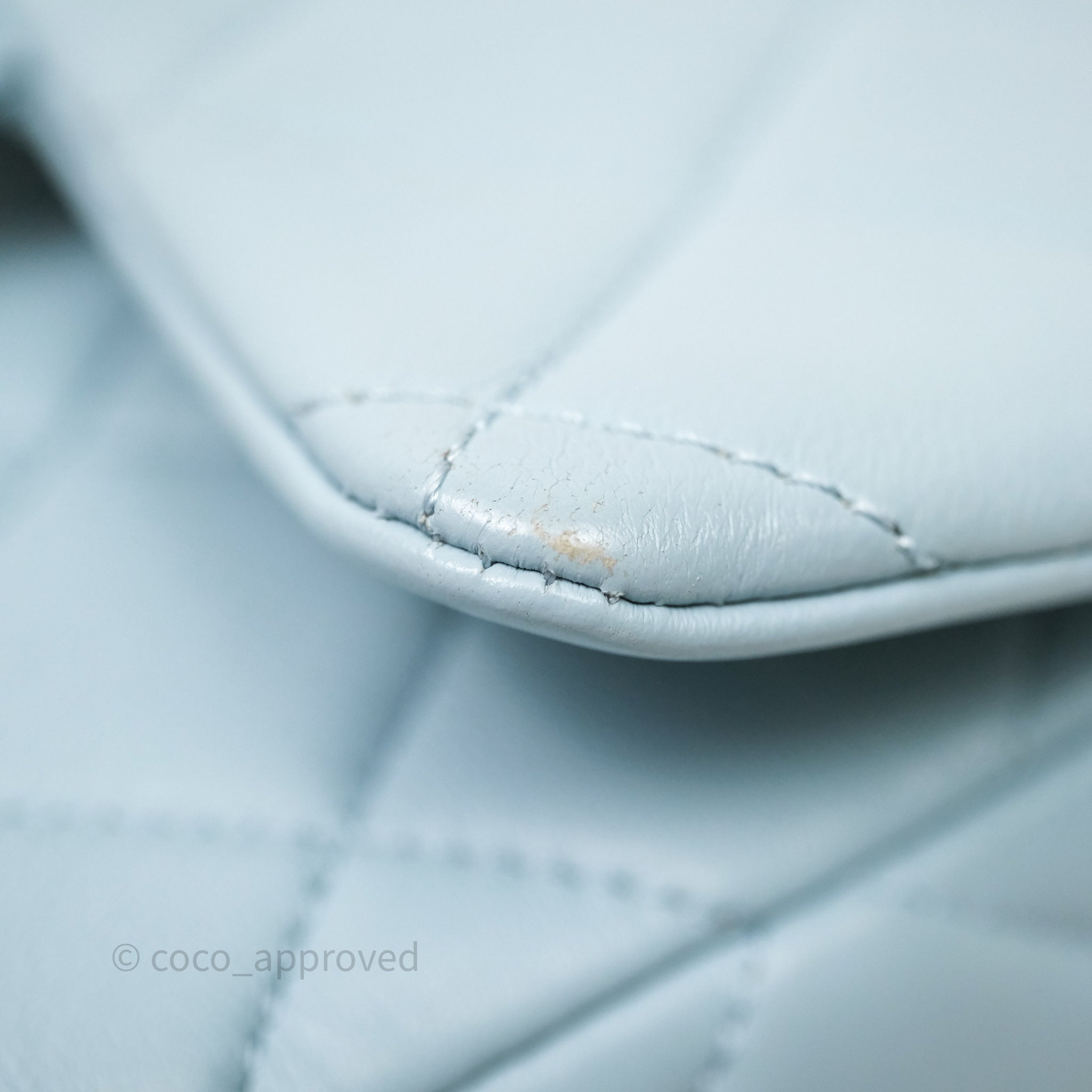 Chanel Quilted Enamel Pending CC Small Square Flap Baby Blue Lambskin