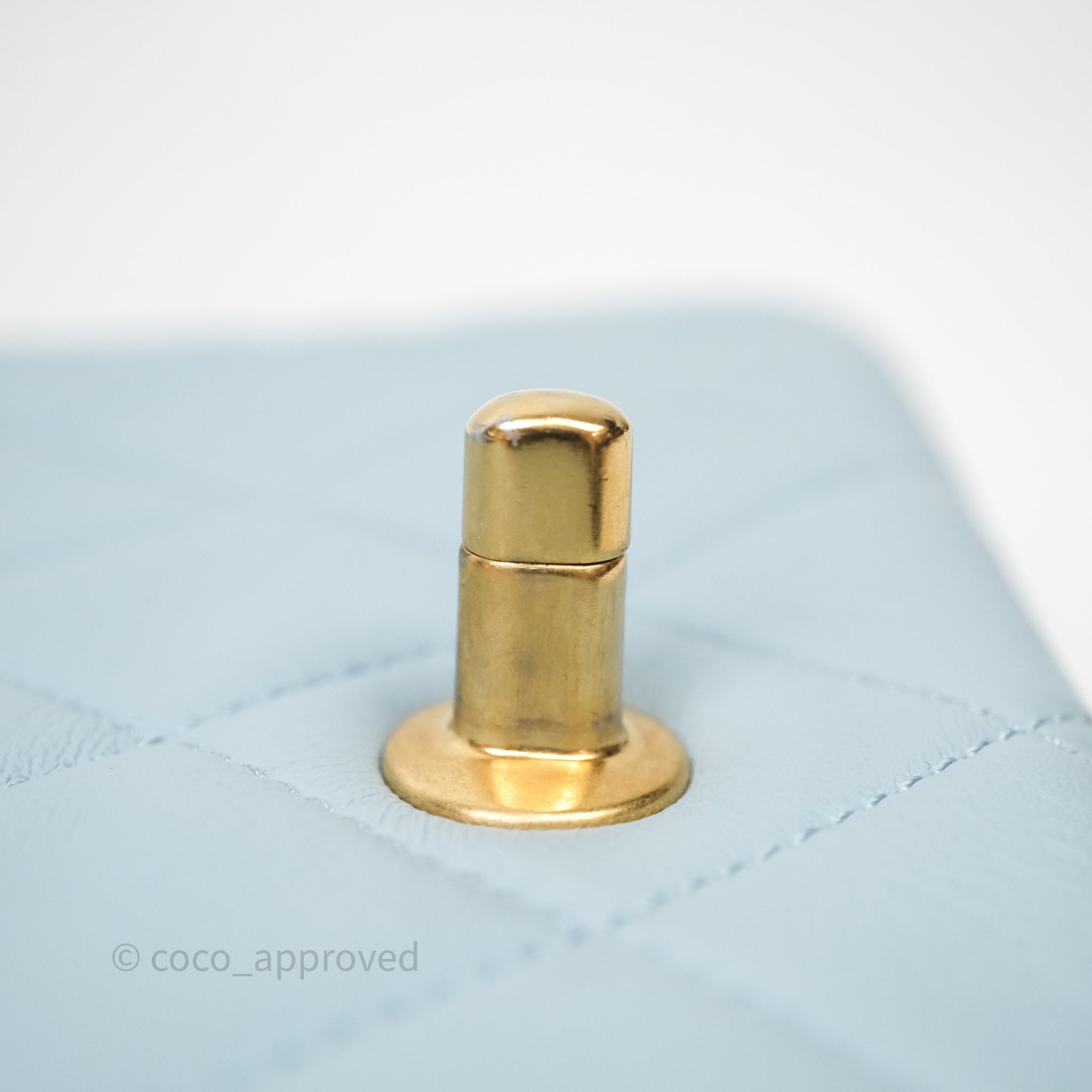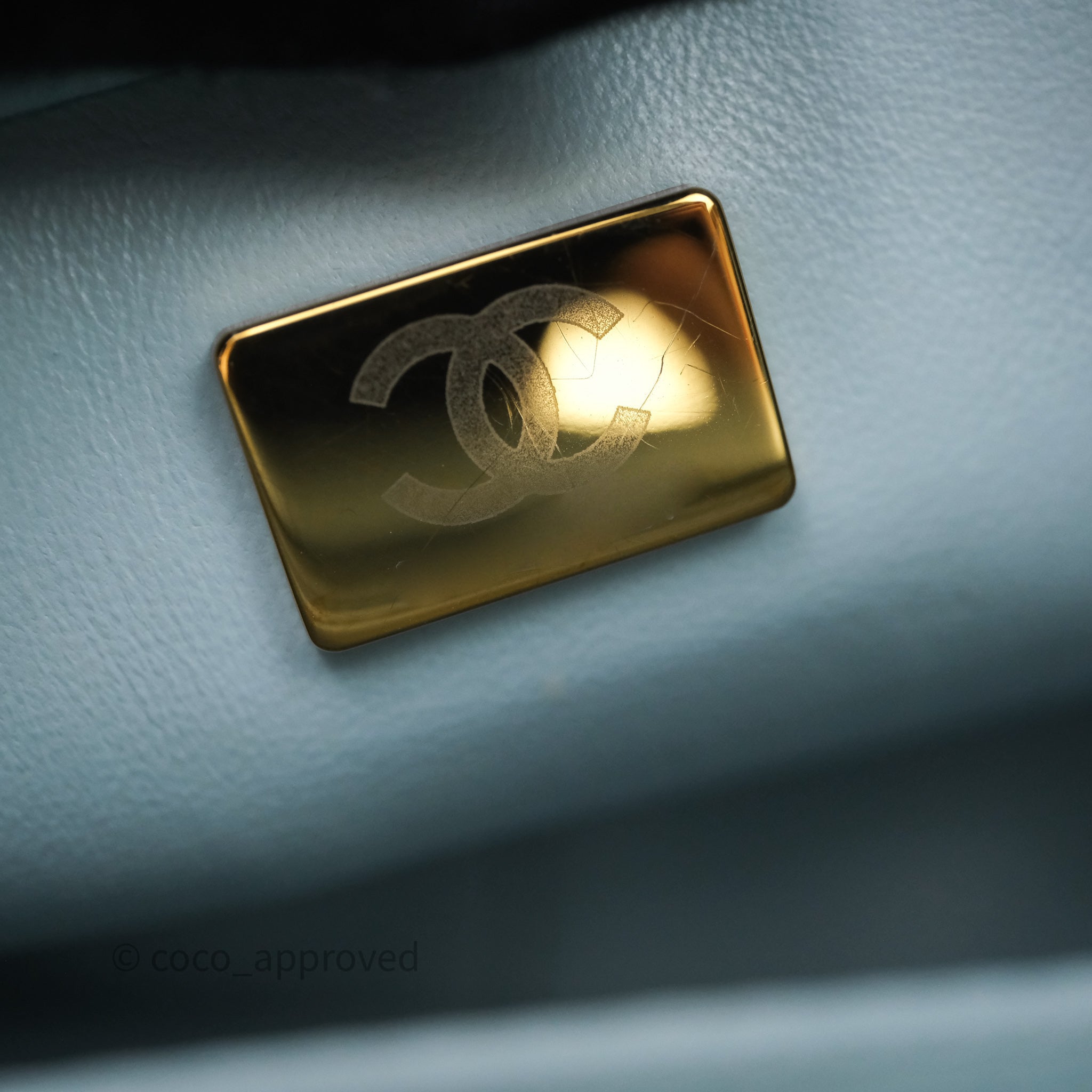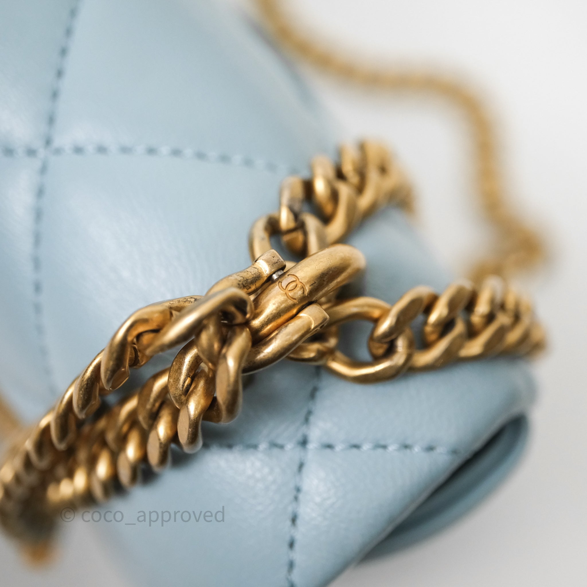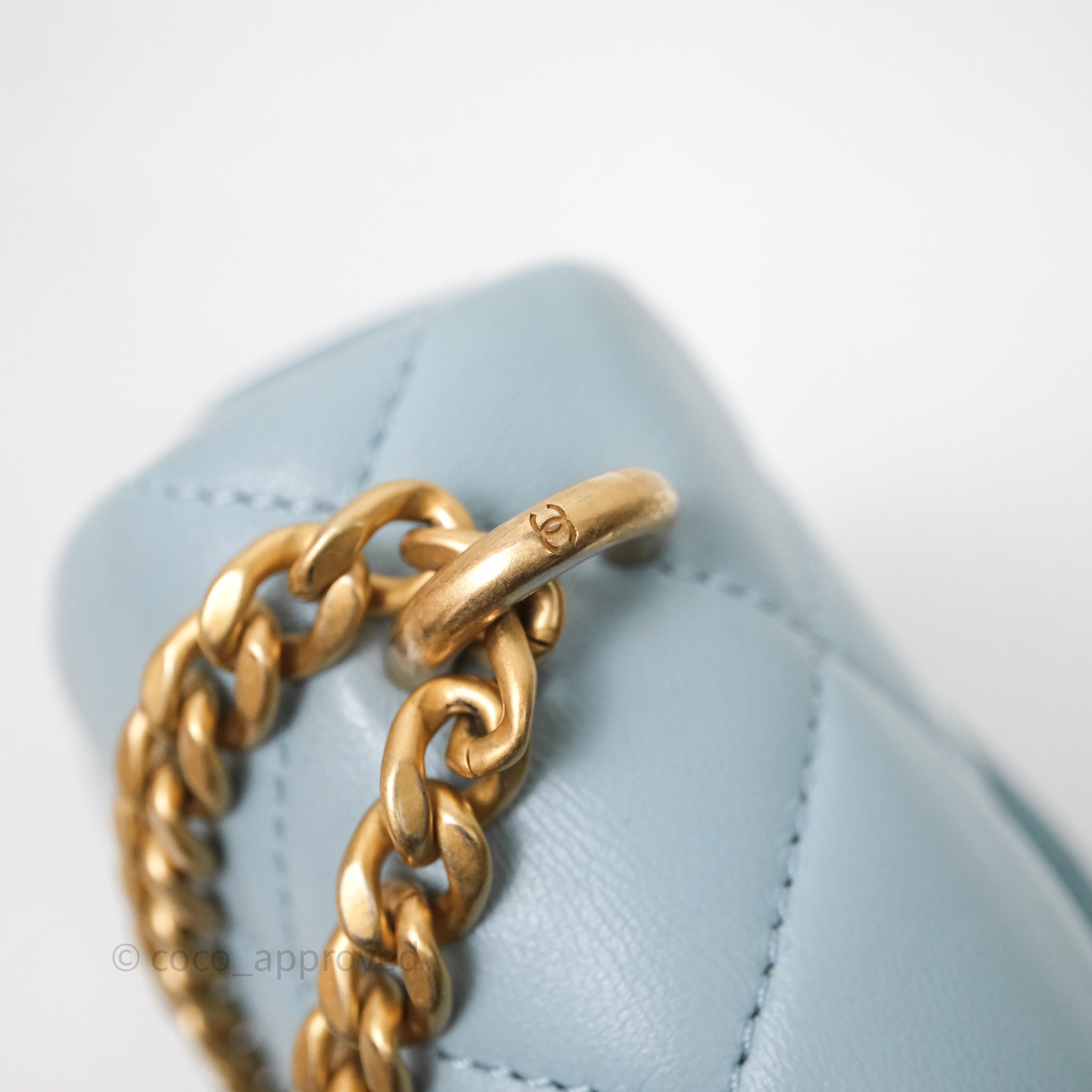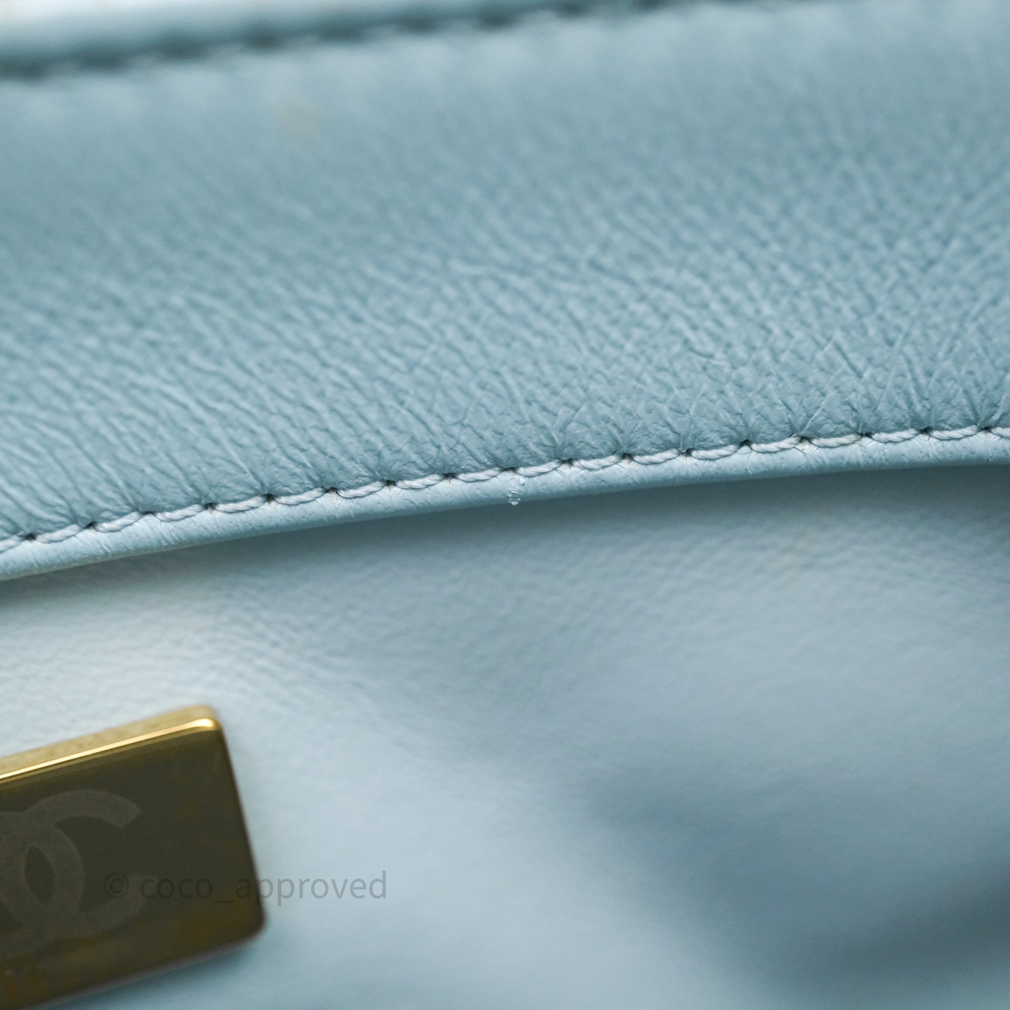 Chanel Quilted Enamel Pending CC Small Square Flap Baby Blue Lambskin