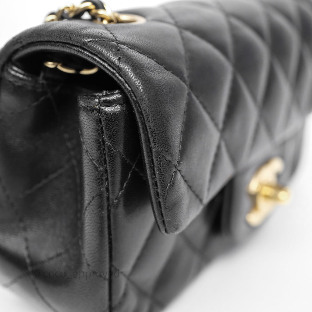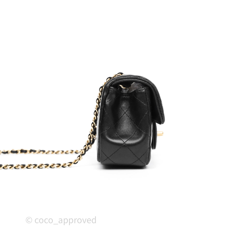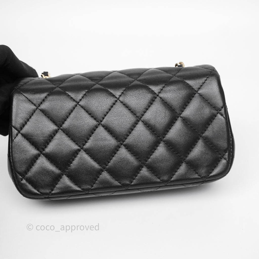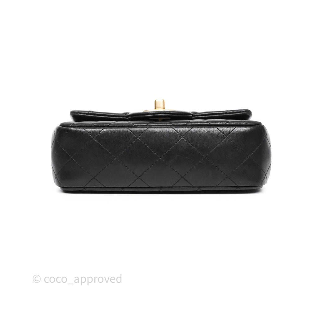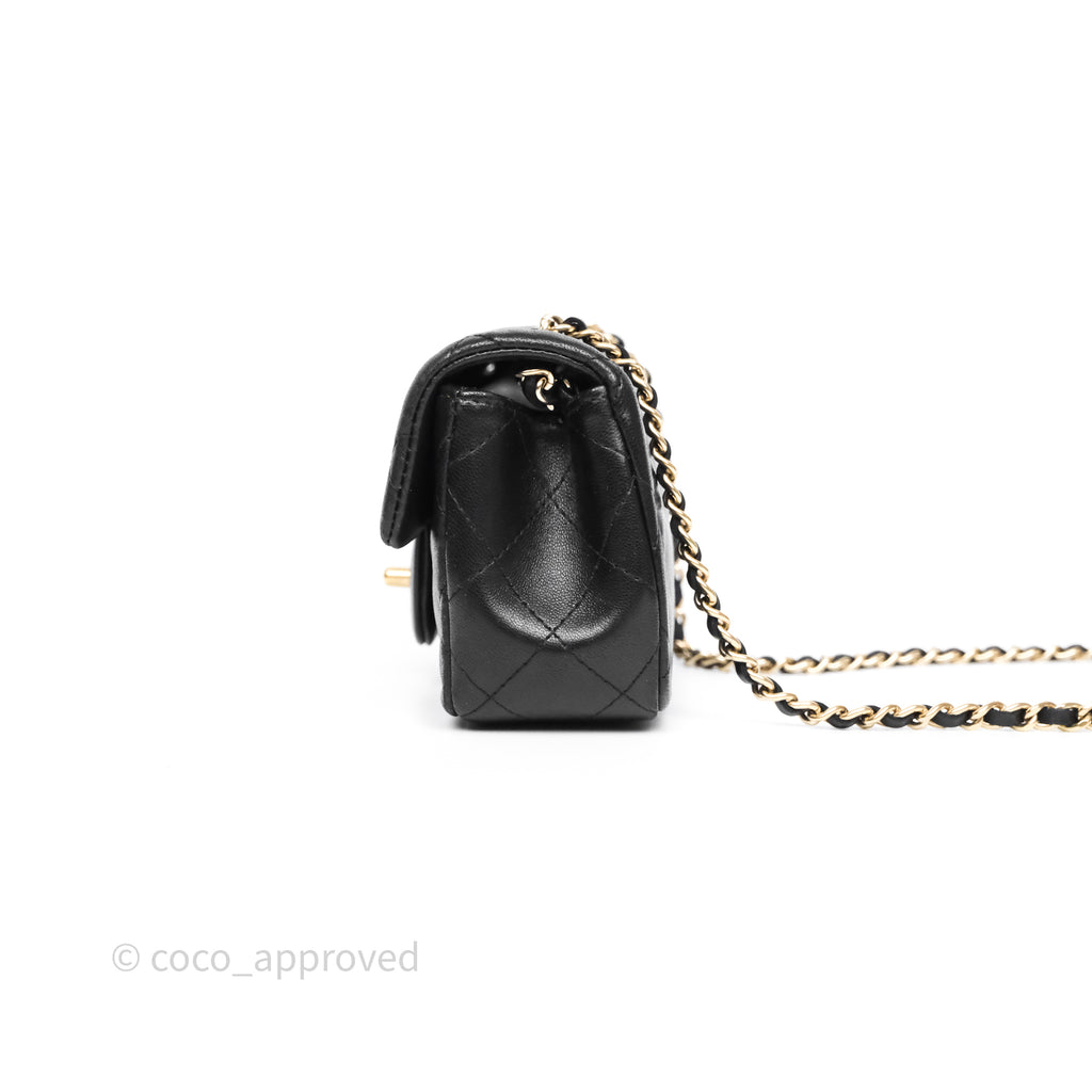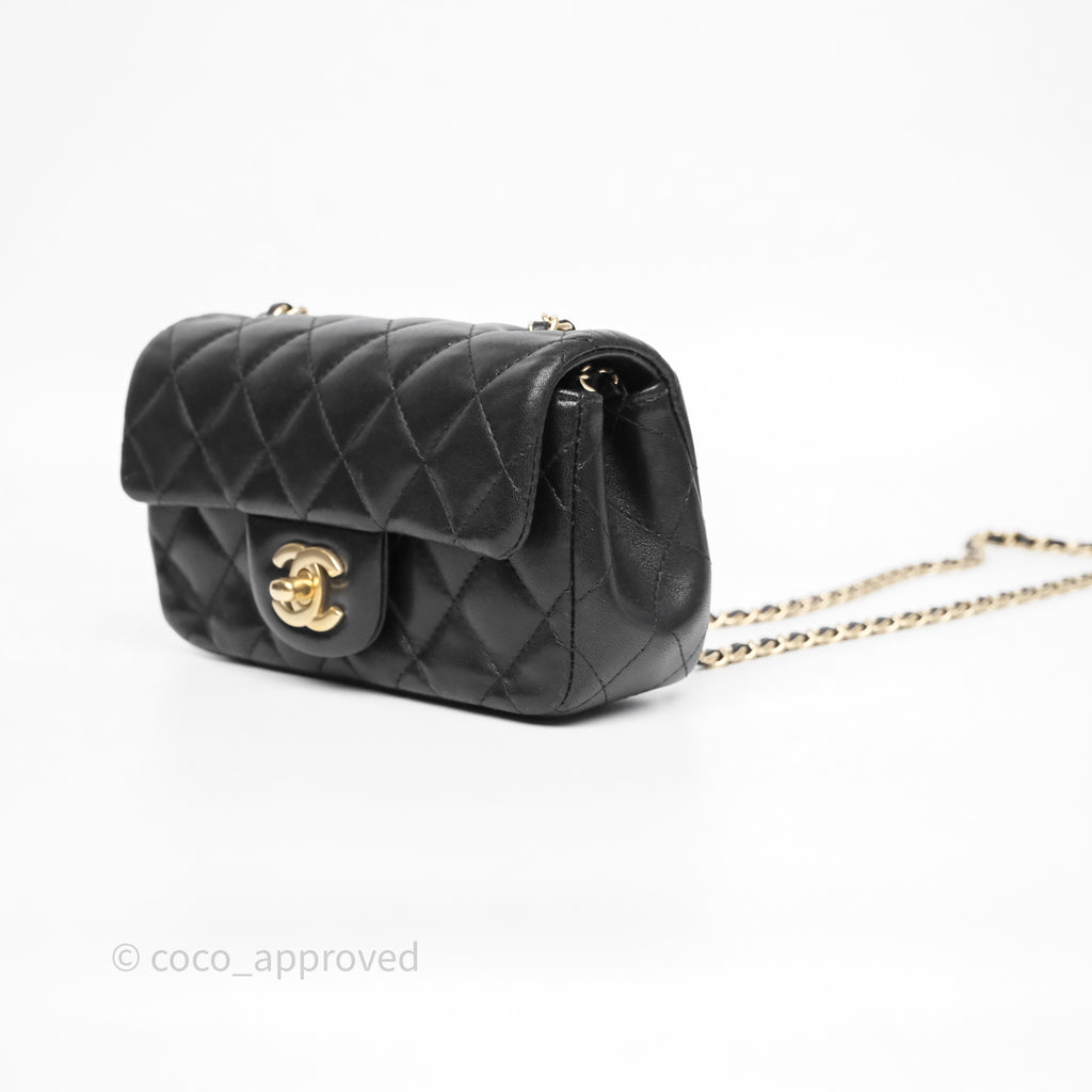 Chanel Quilted Extra Mini Rectangular Flap Black Lambskin Aged Gold Hardware
