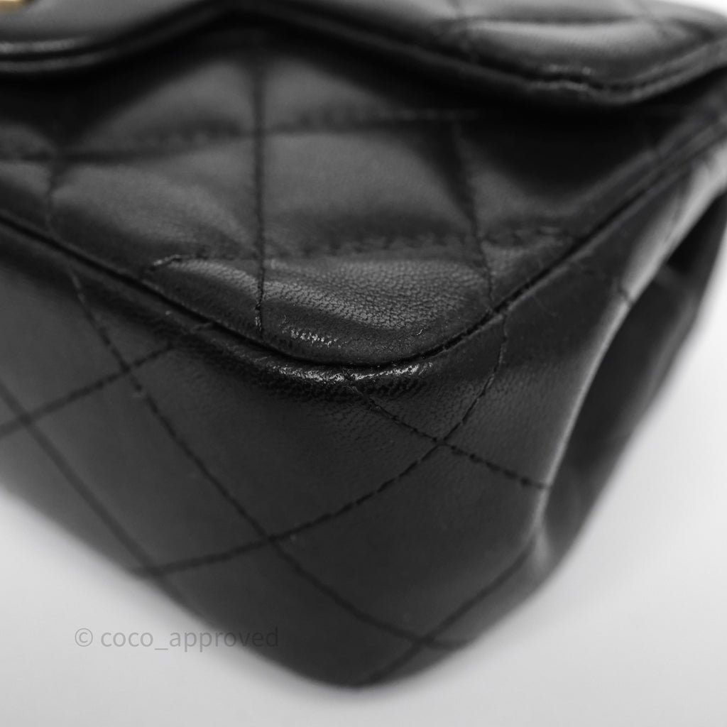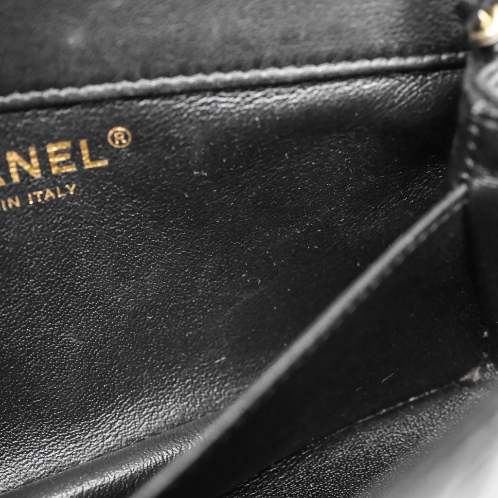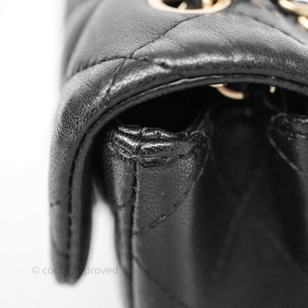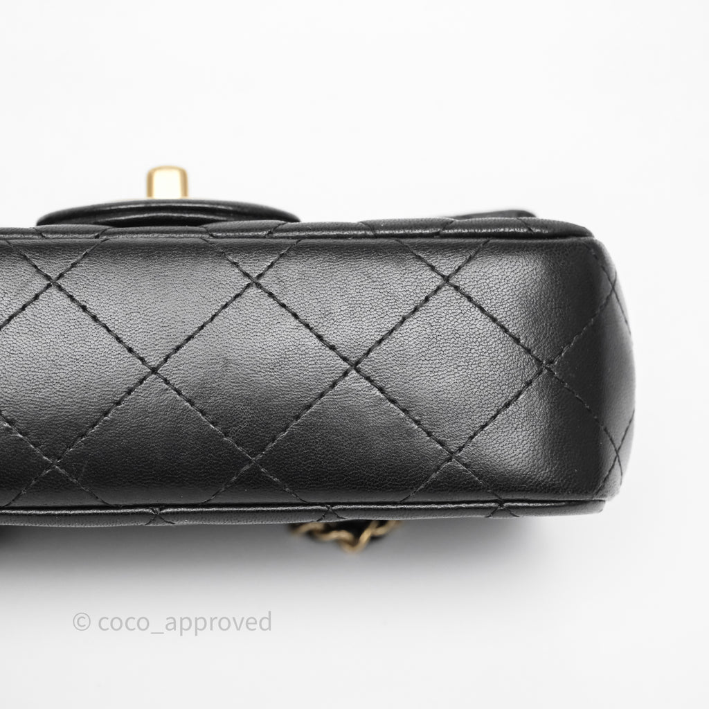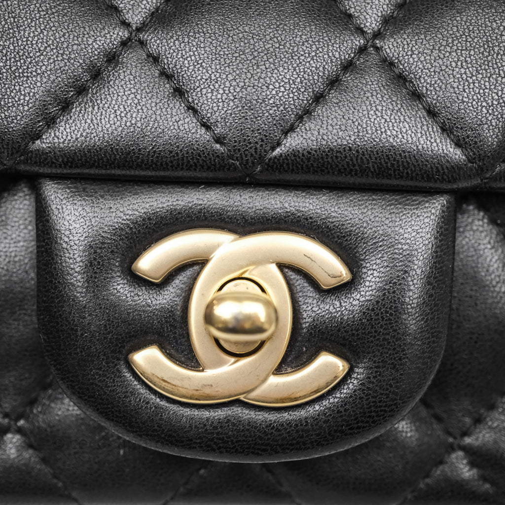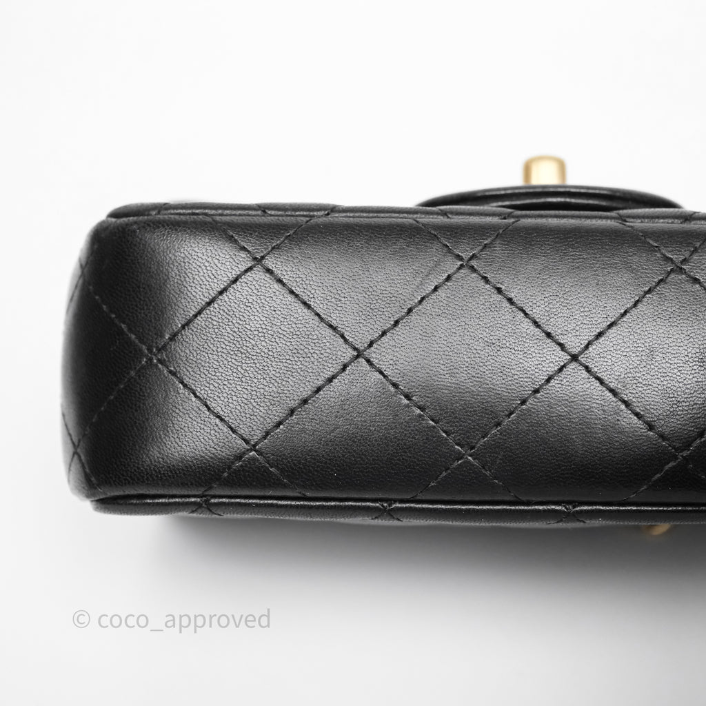 Chanel Quilted Extra Mini Rectangular Flap Black Lambskin Aged Gold Hardware