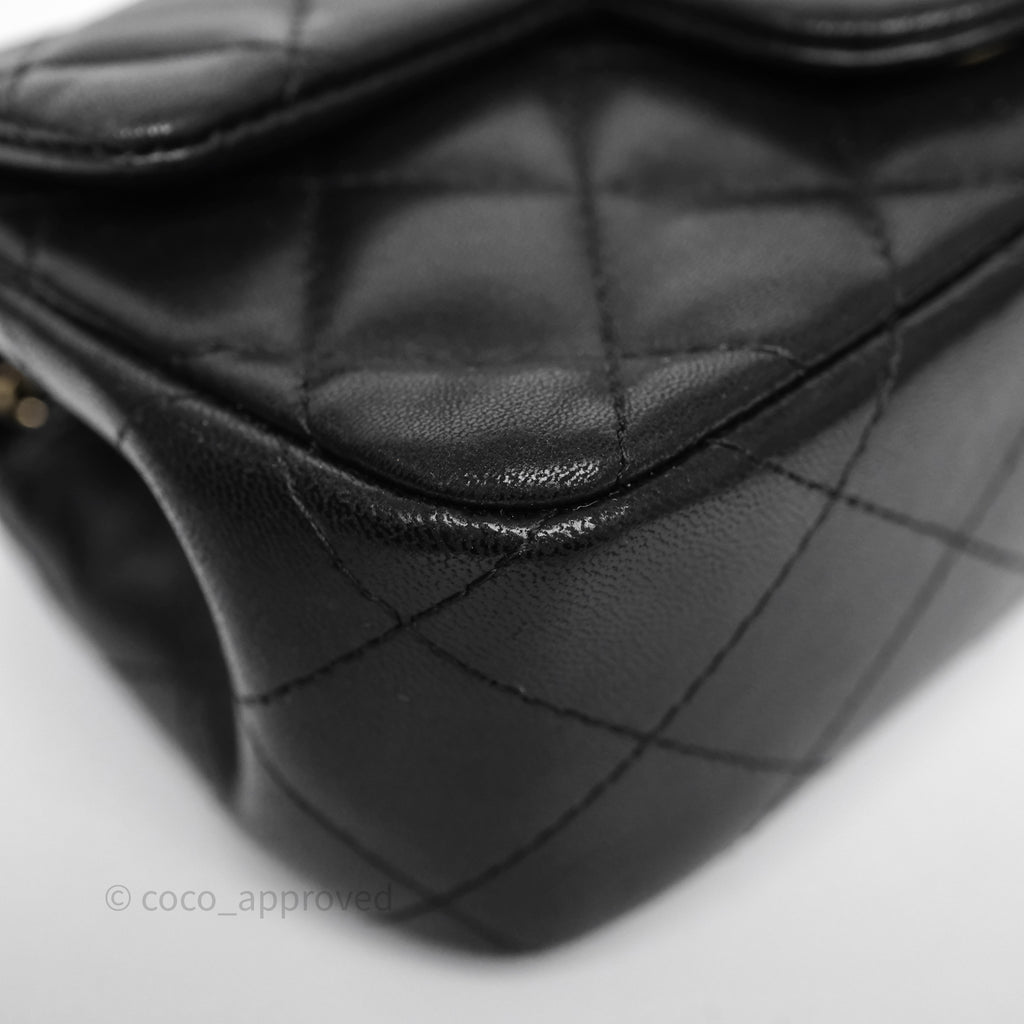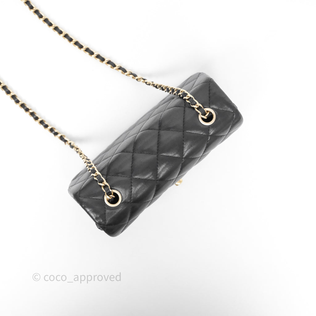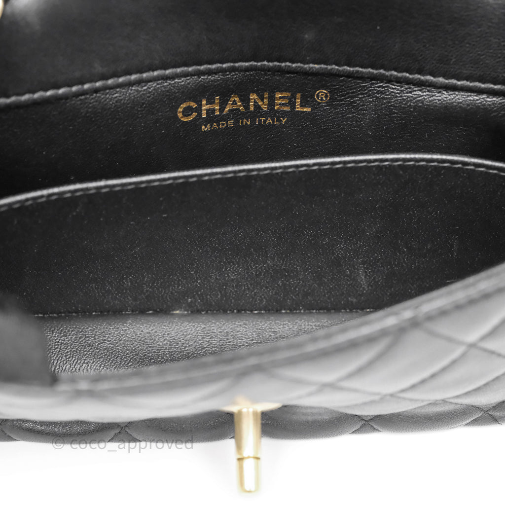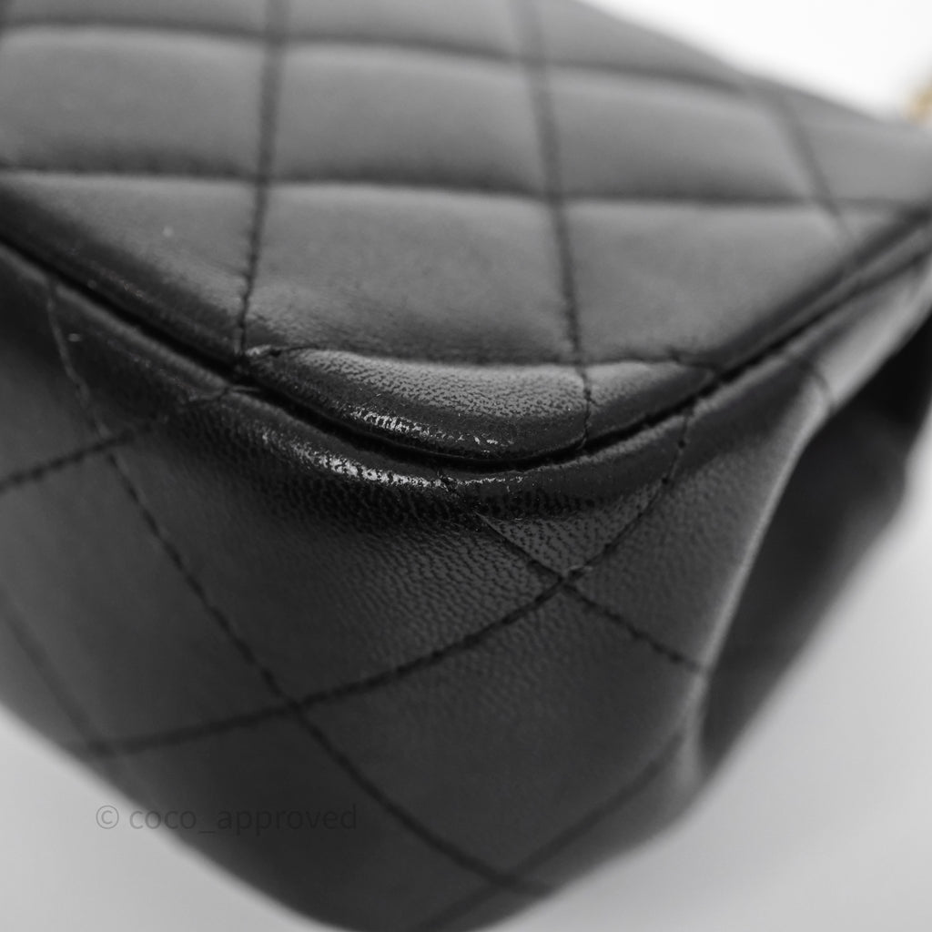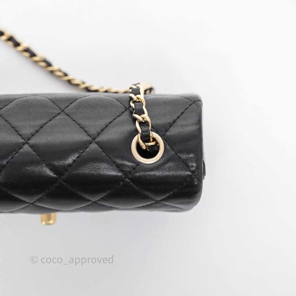 Chanel Quilted Extra Mini Rectangular Flap Black Lambskin Aged Gold Hardware