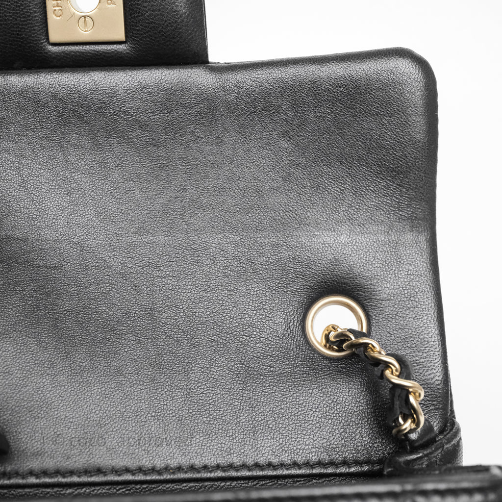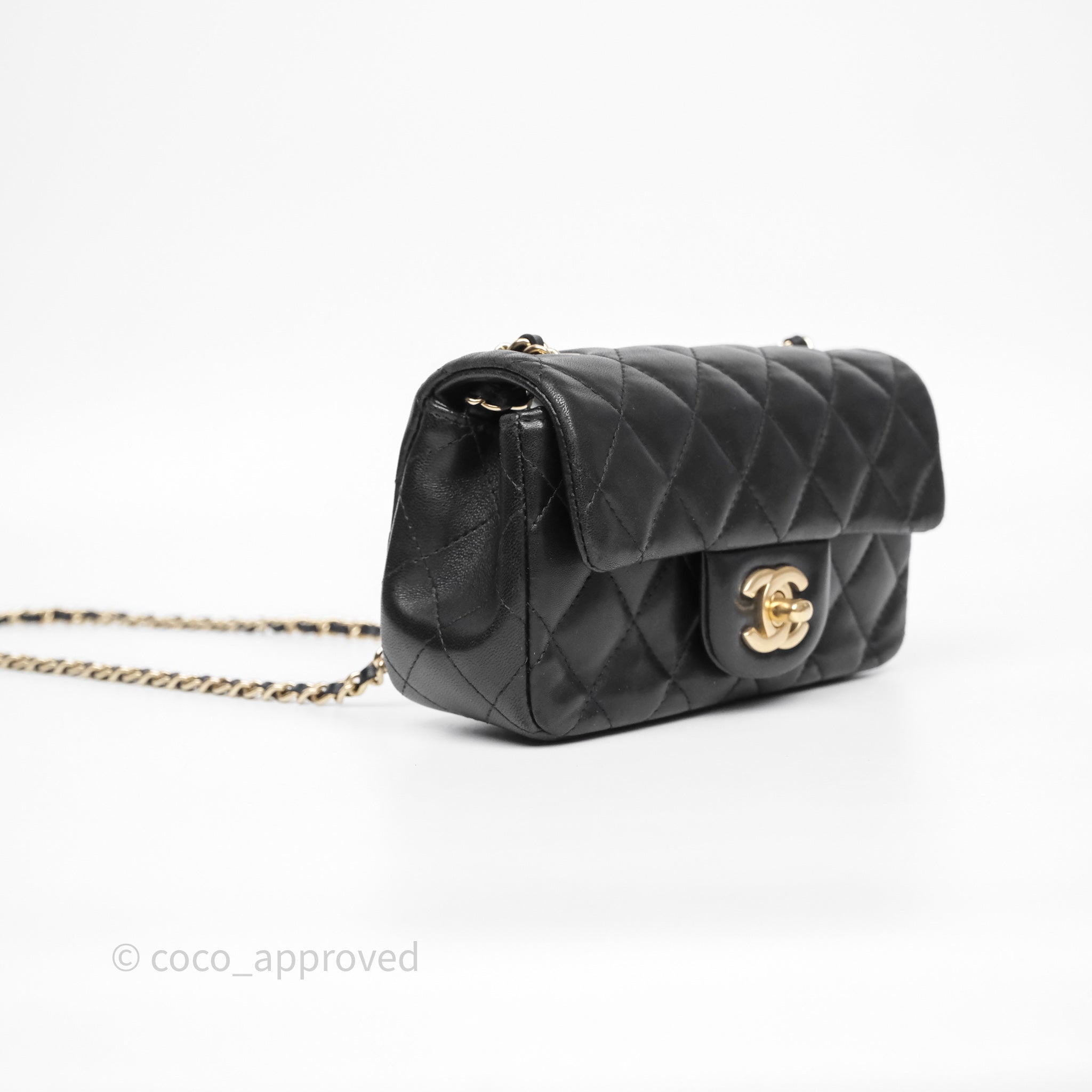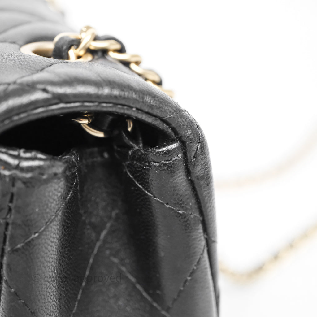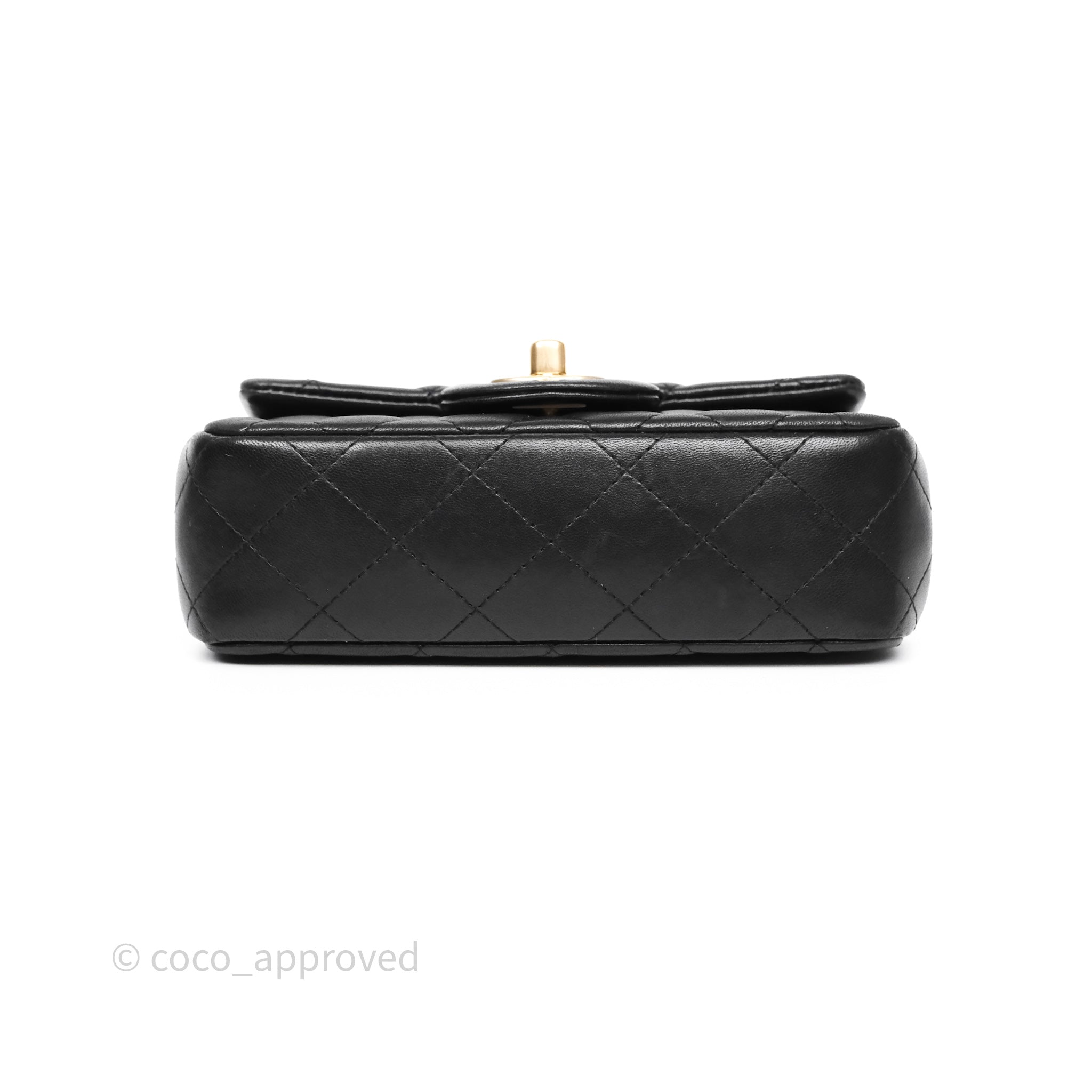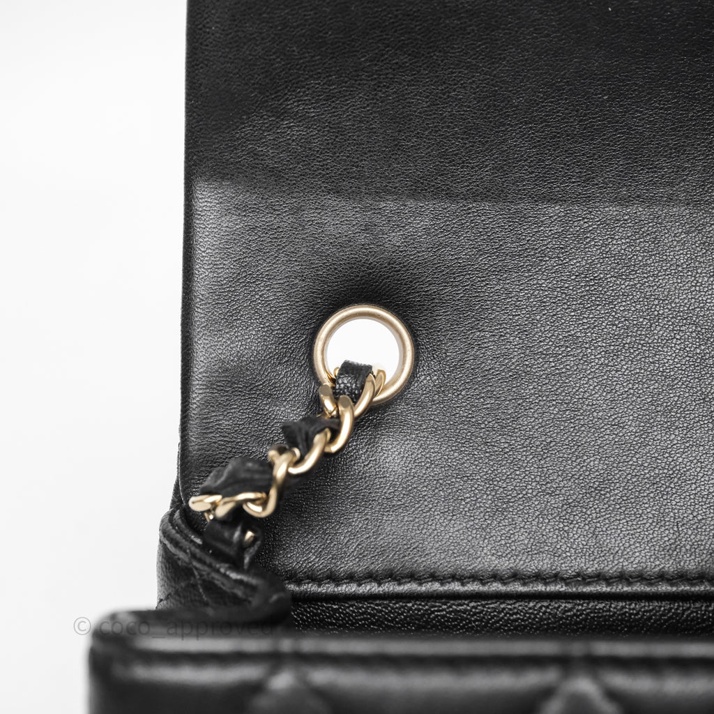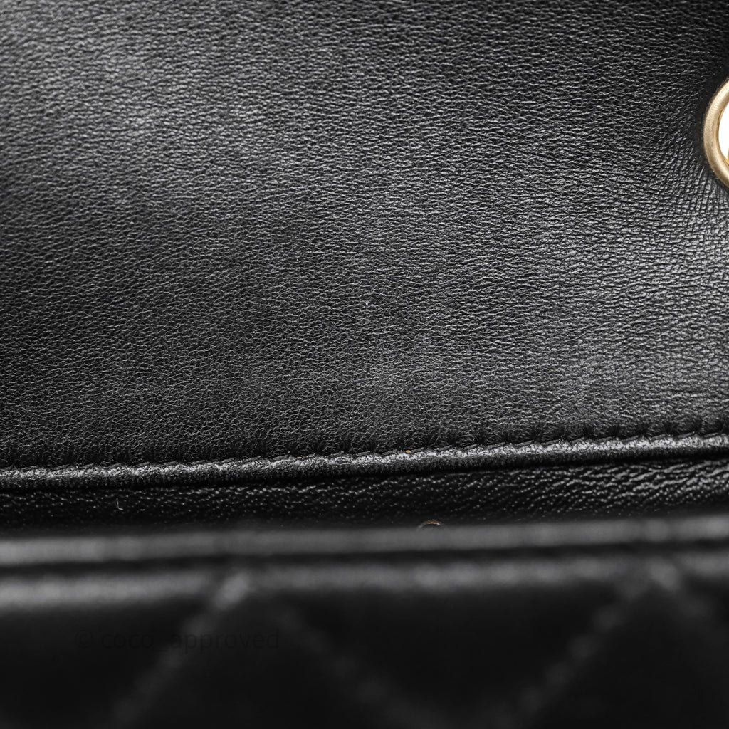 Chanel Quilted Extra Mini Rectangular Flap Black Lambskin Aged Gold Hardware