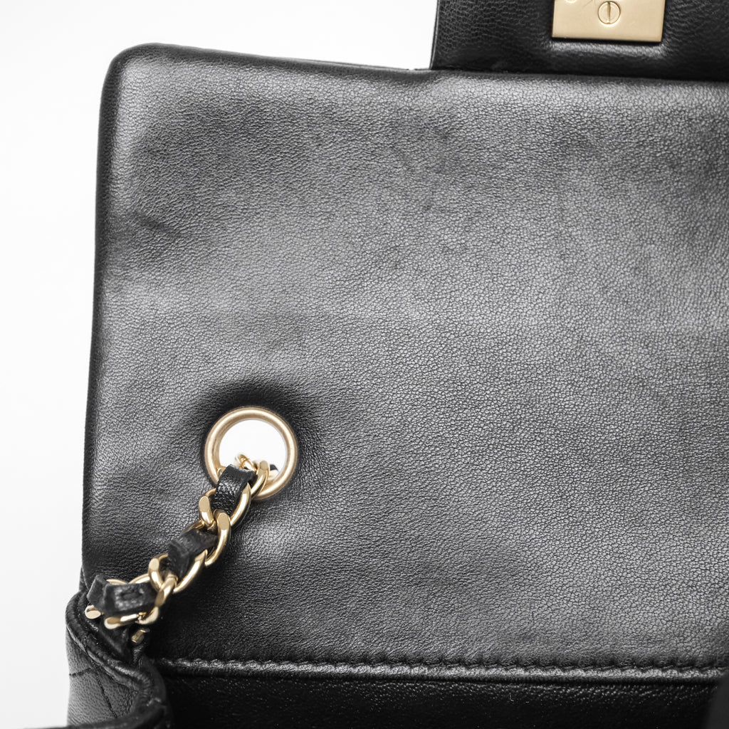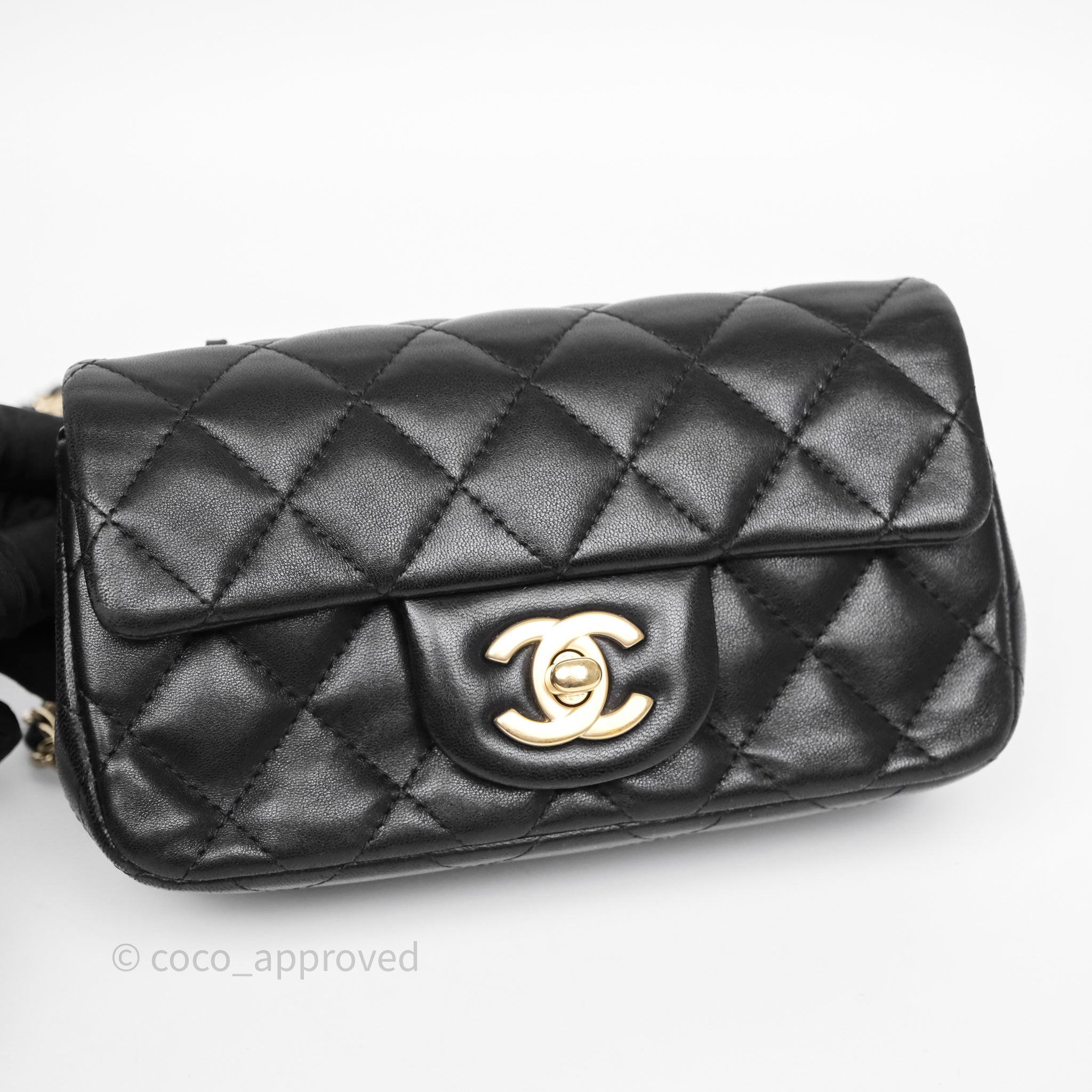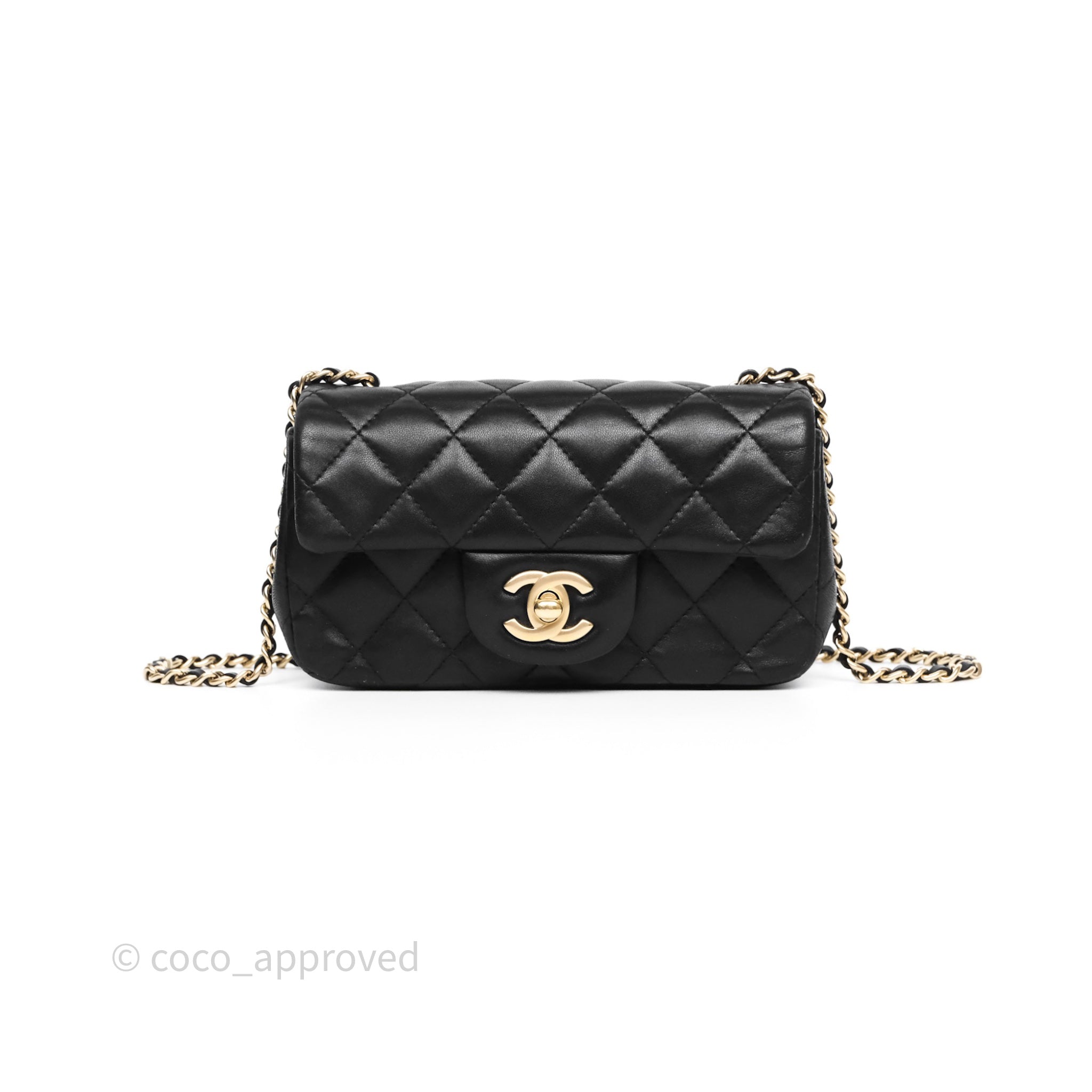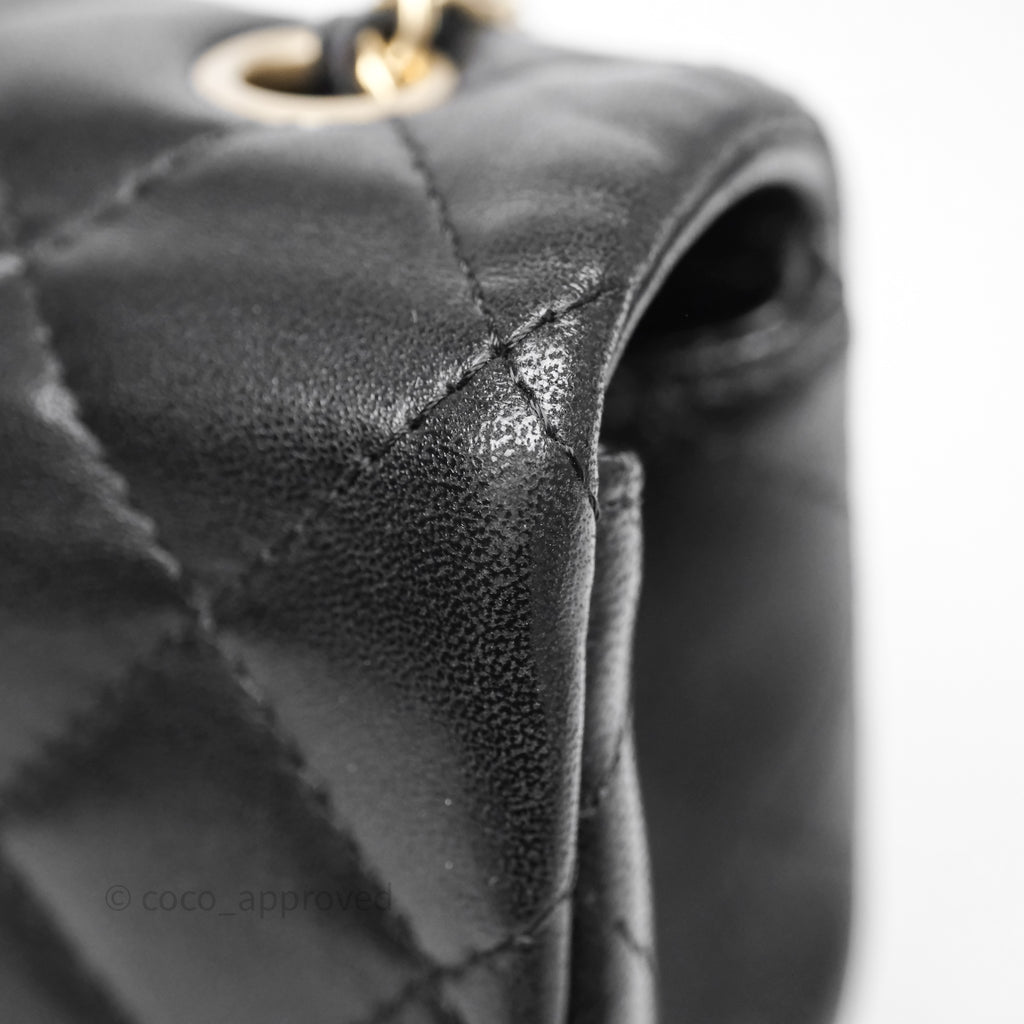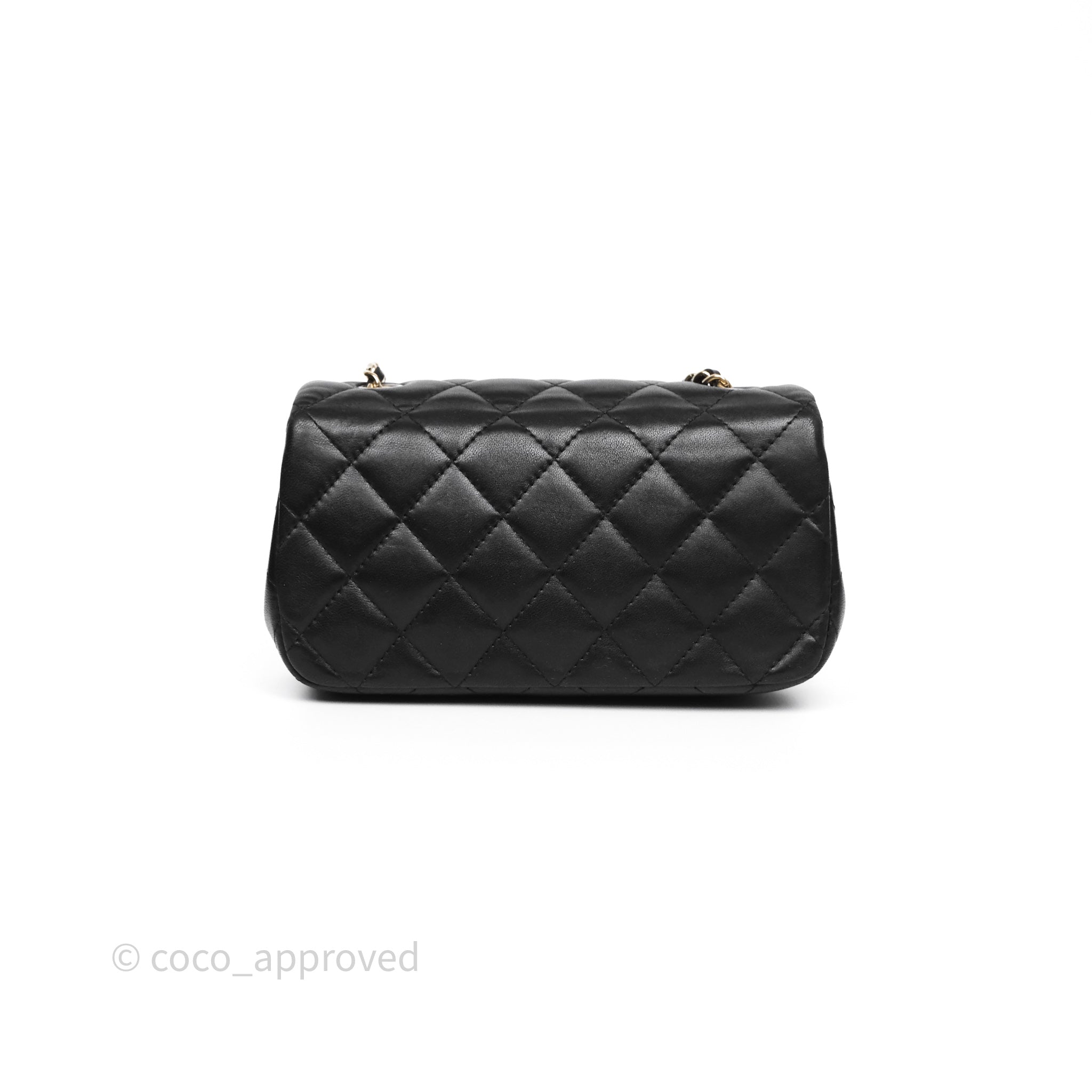 Chanel Quilted Extra Mini Rectangular Flap Black Lambskin Aged Gold Hardware