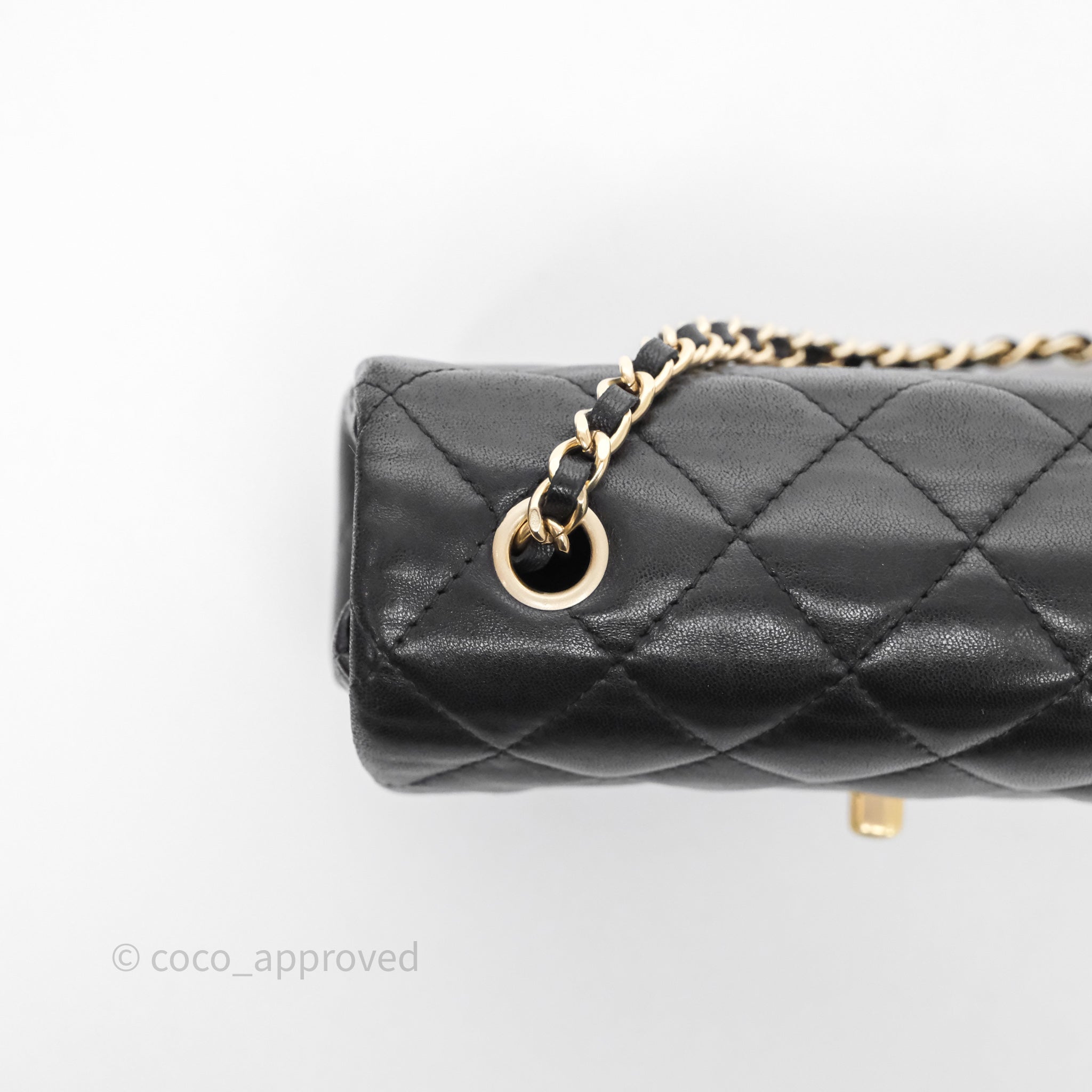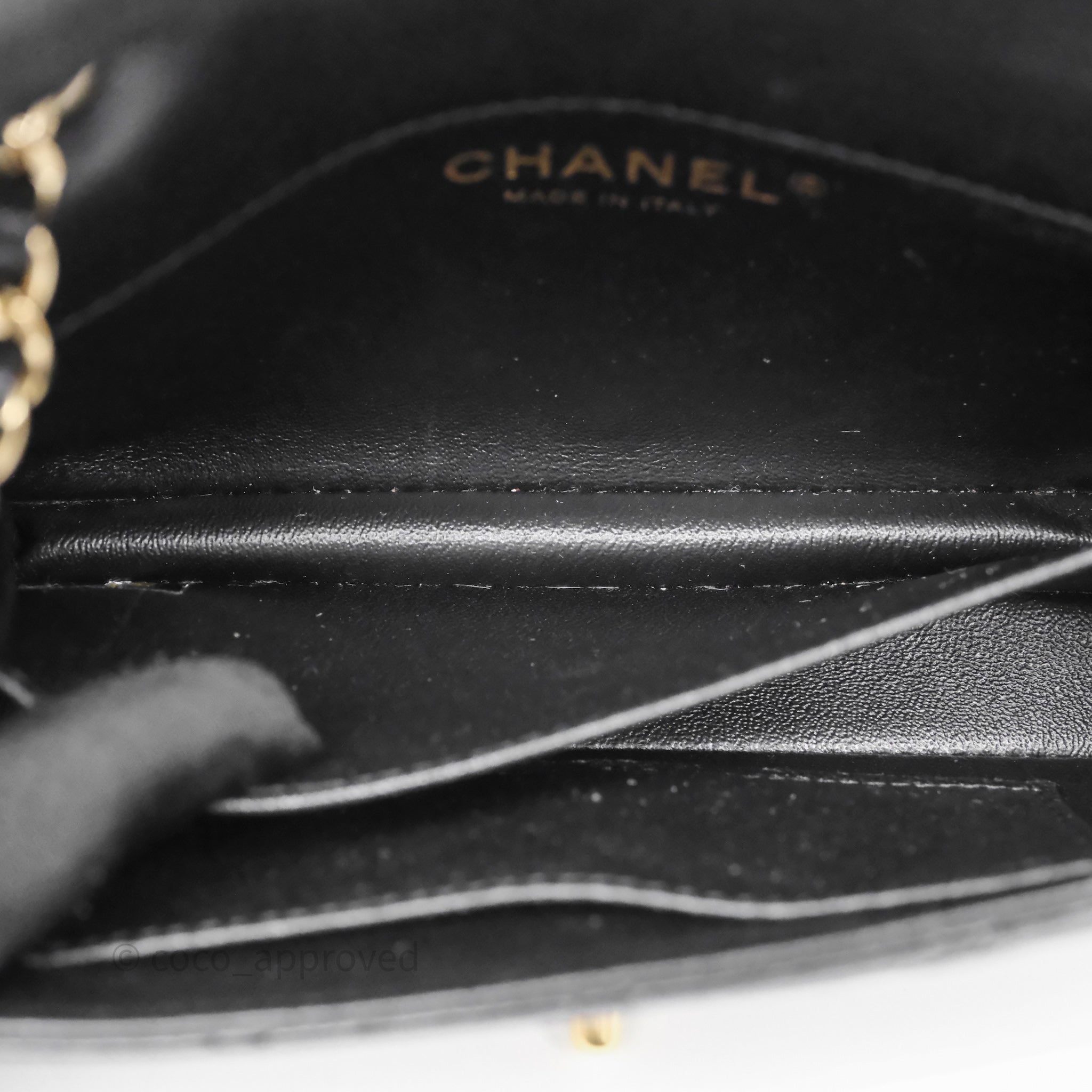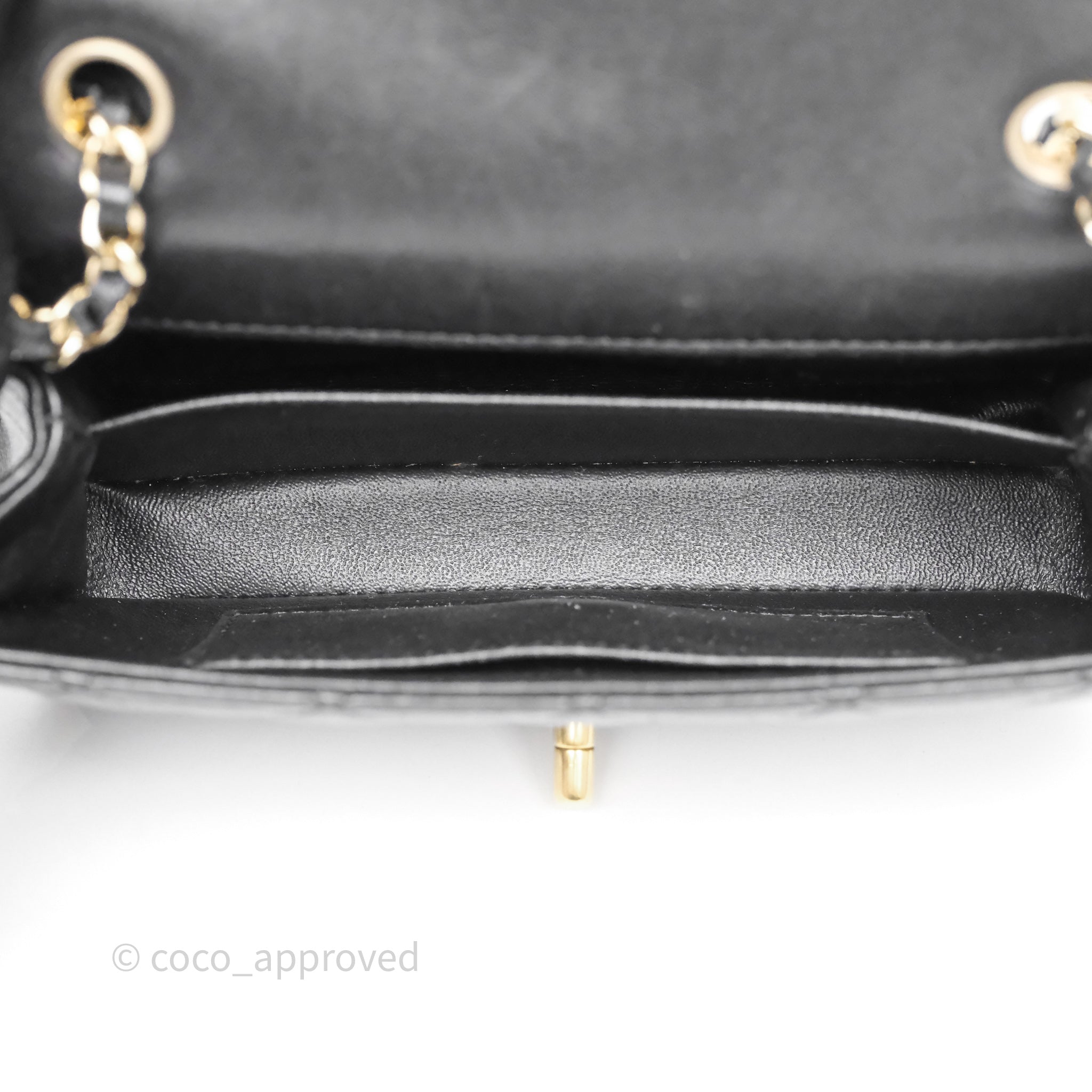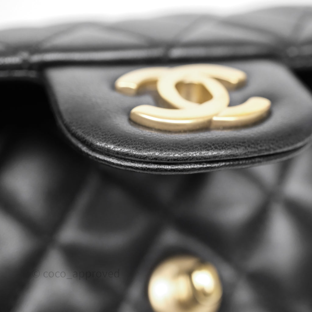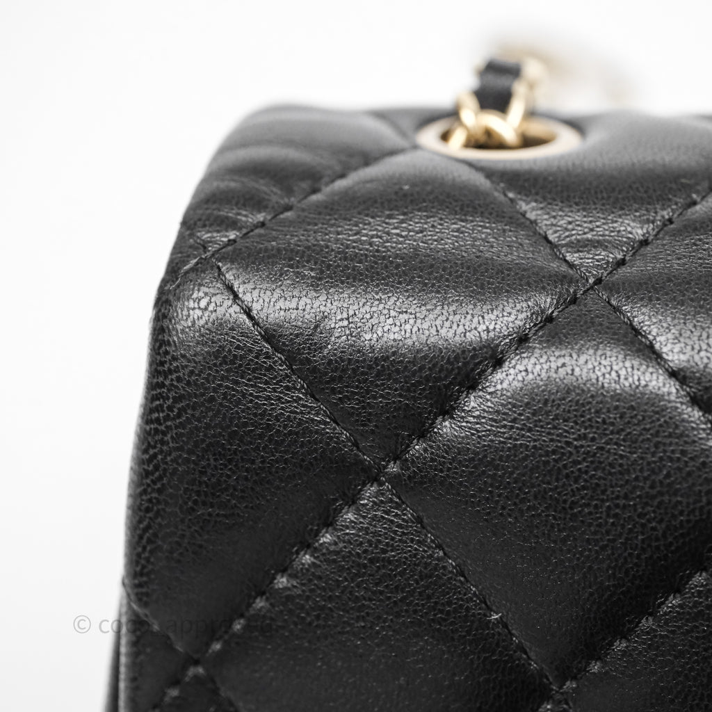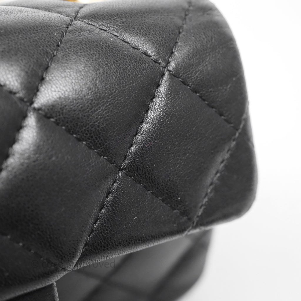 Chanel Quilted Extra Mini Rectangular Flap Black Lambskin Aged Gold Hardware