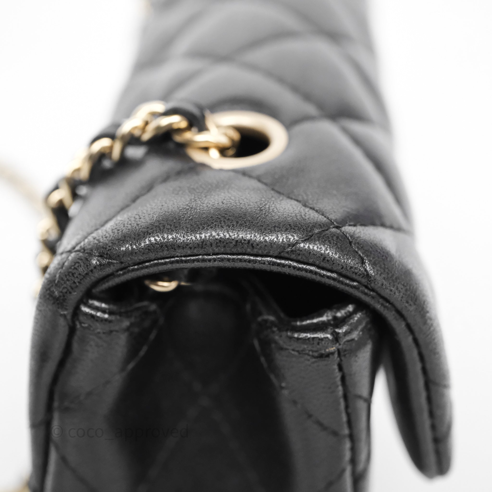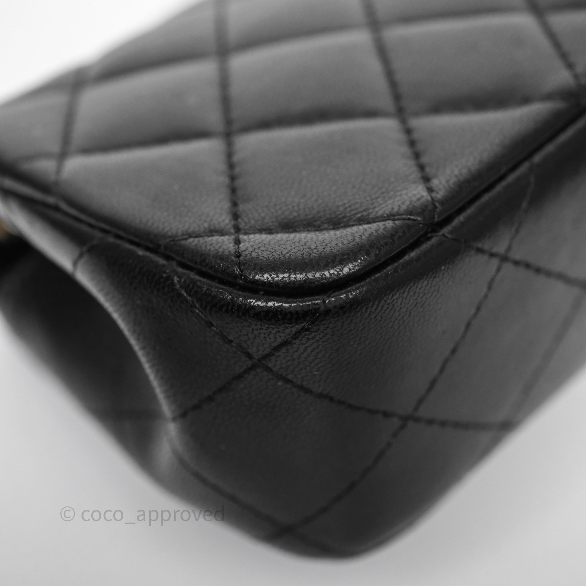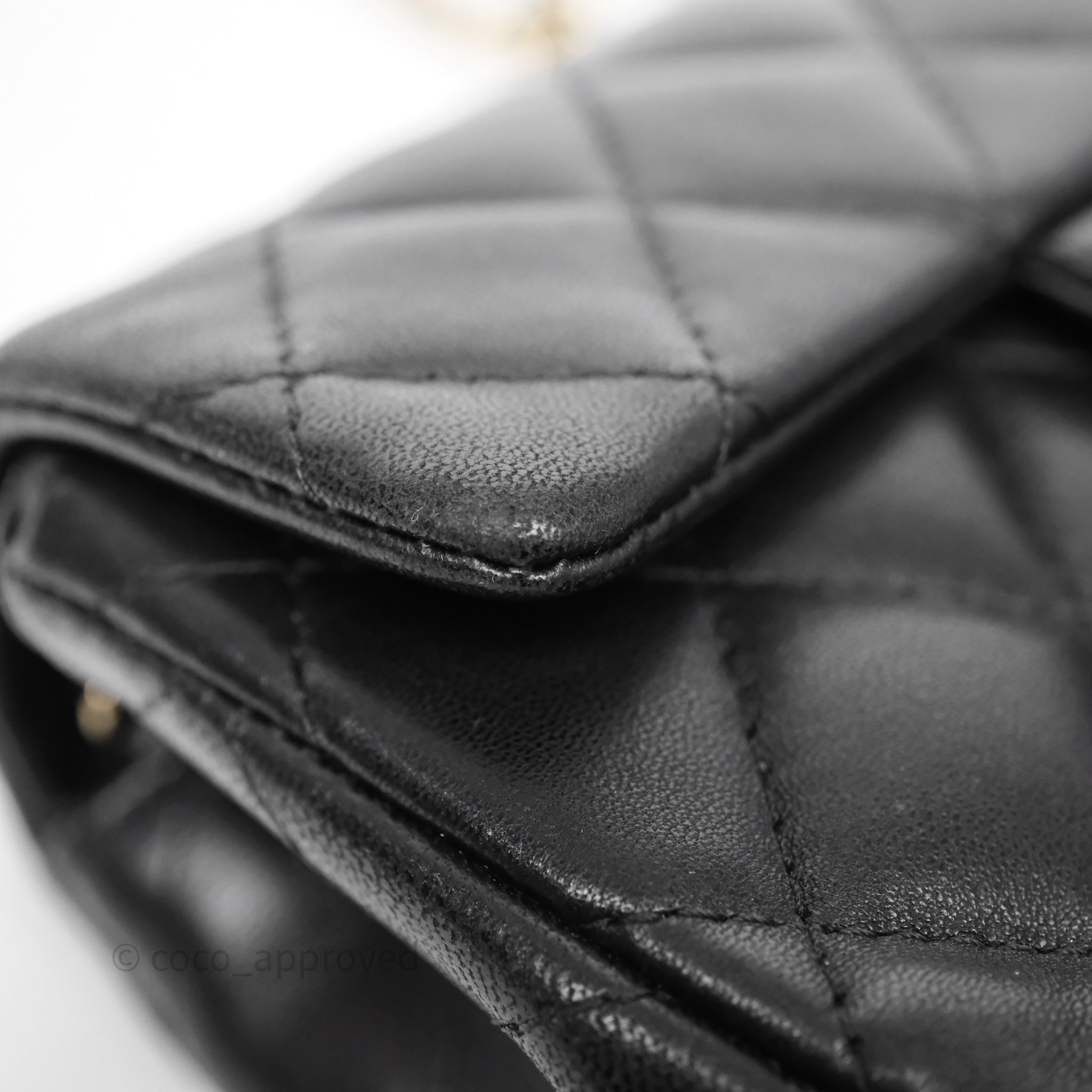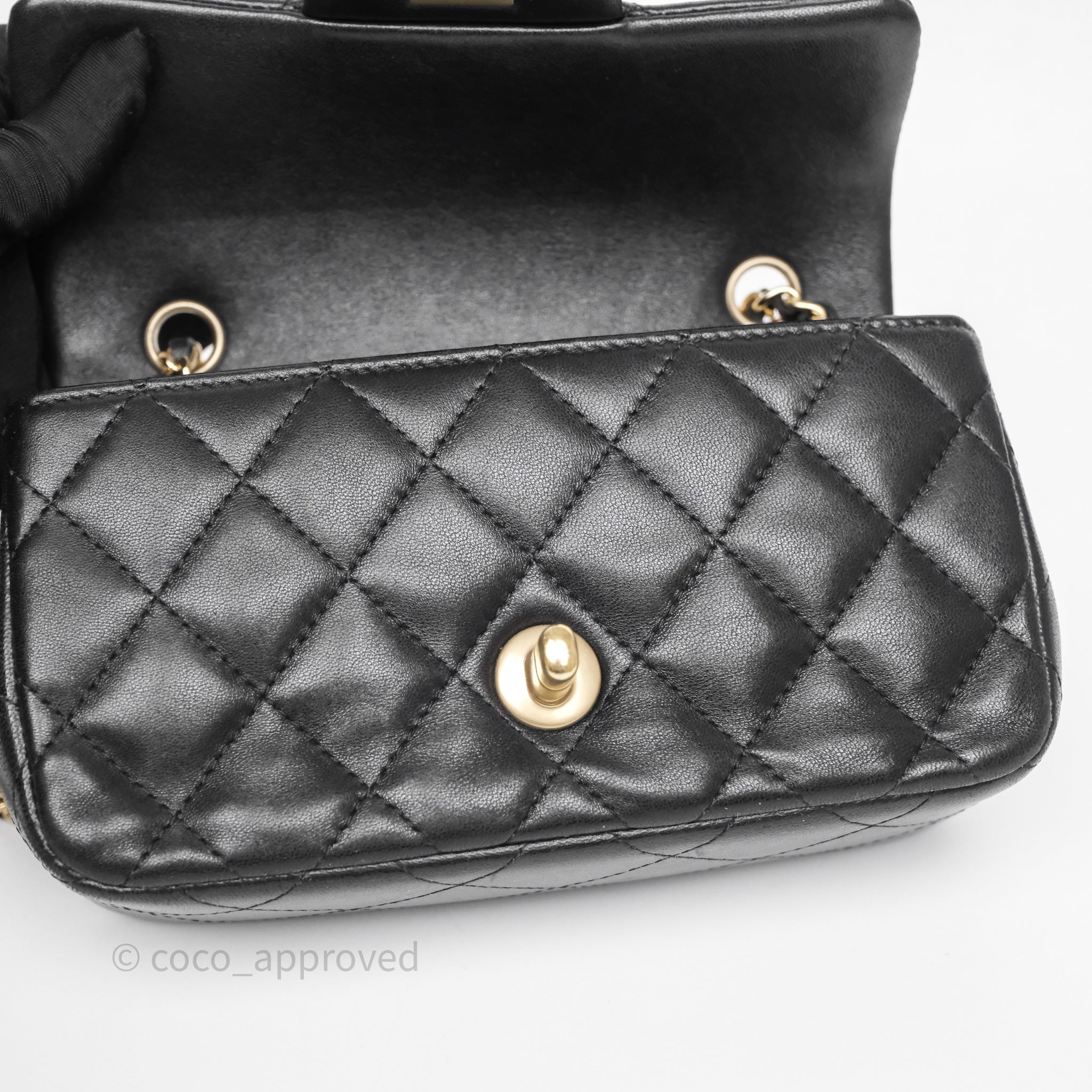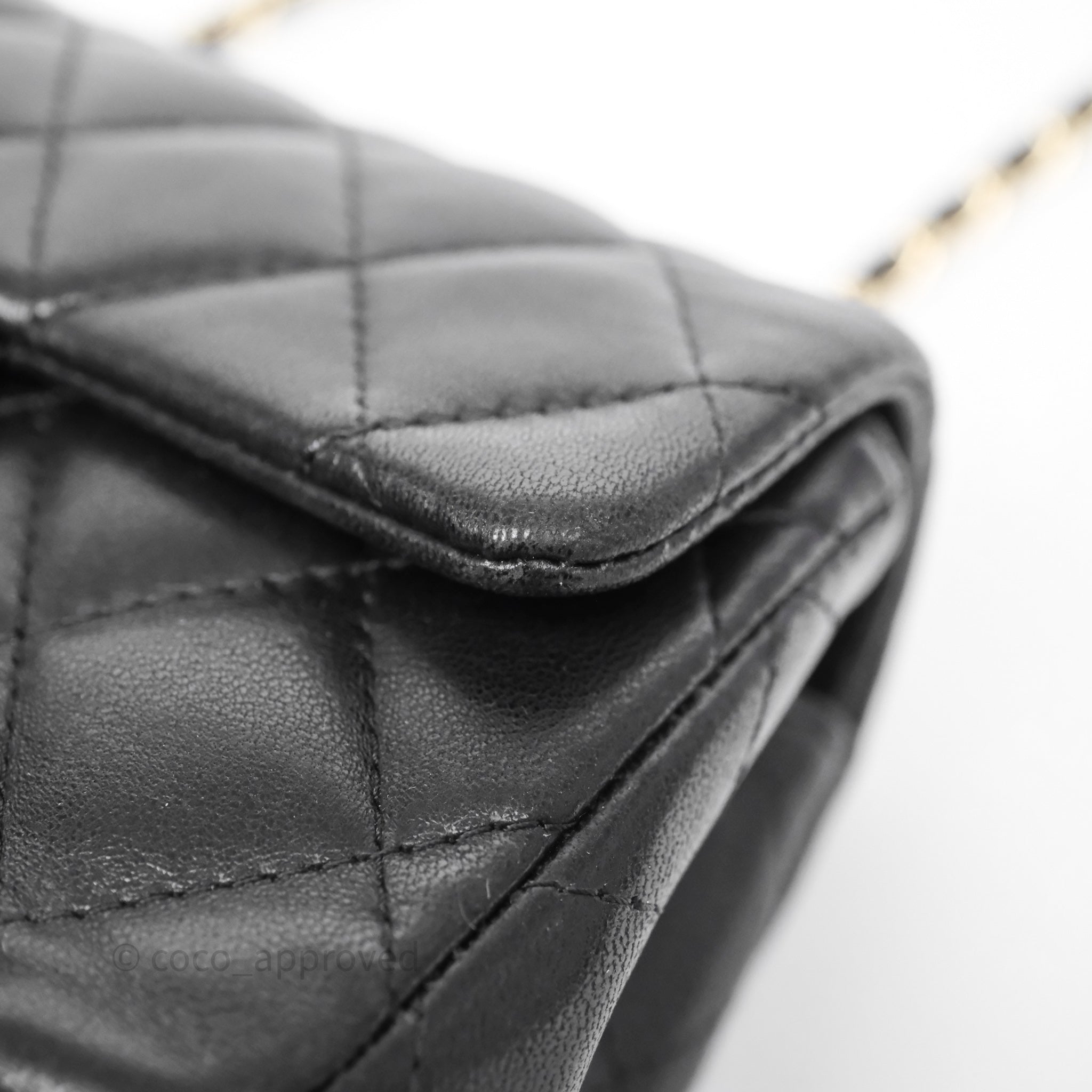 Chanel Quilted Extra Mini Rectangular Flap Black Lambskin Aged Gold Hardware