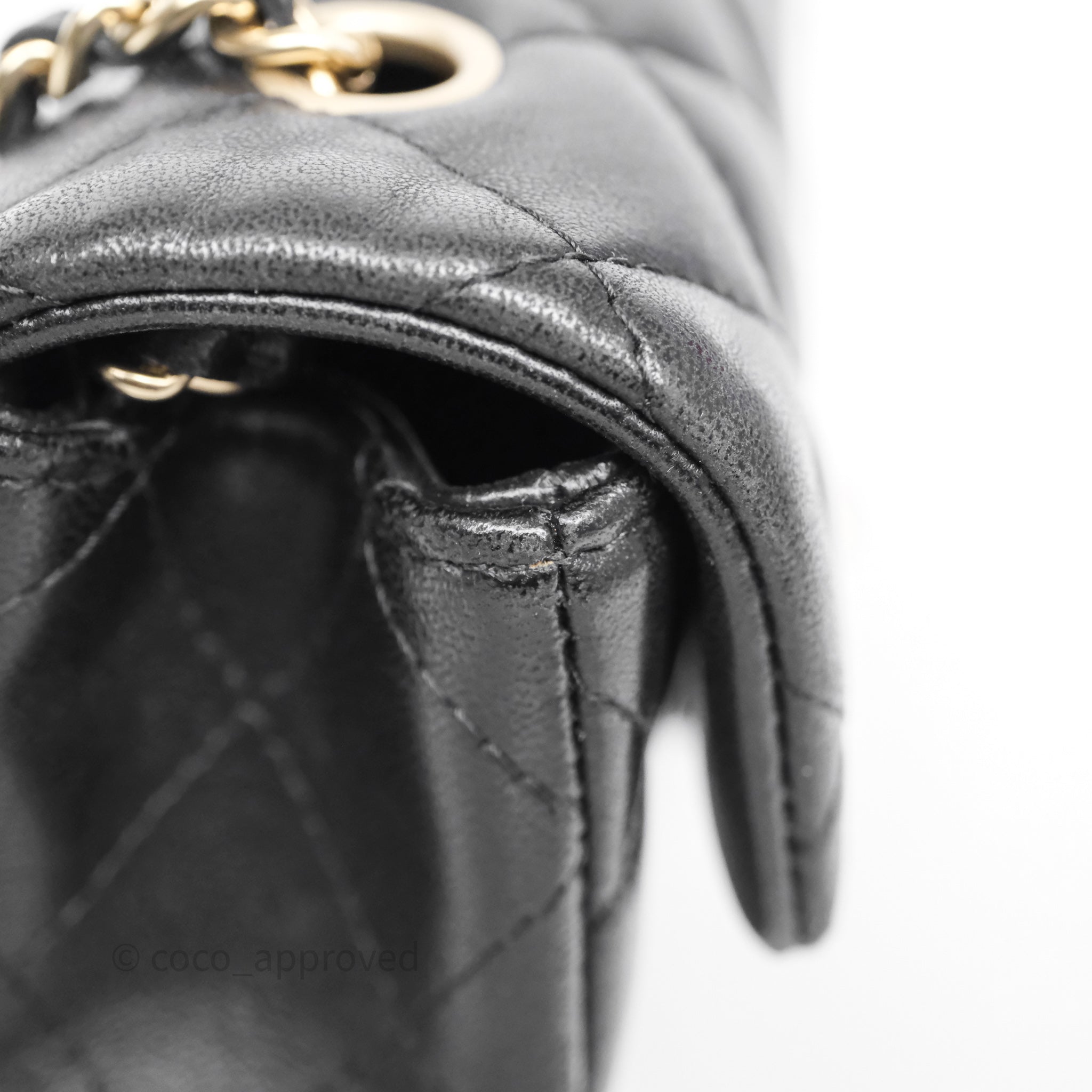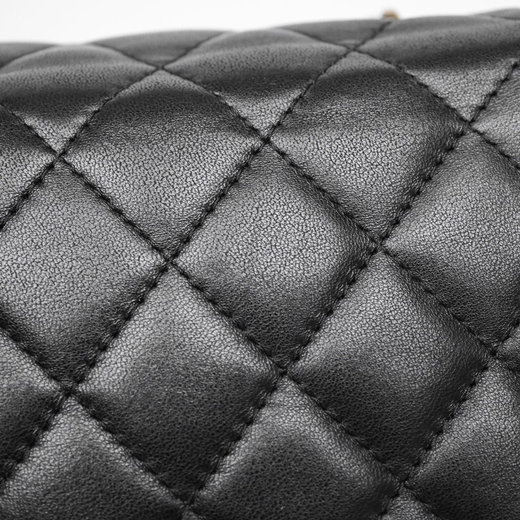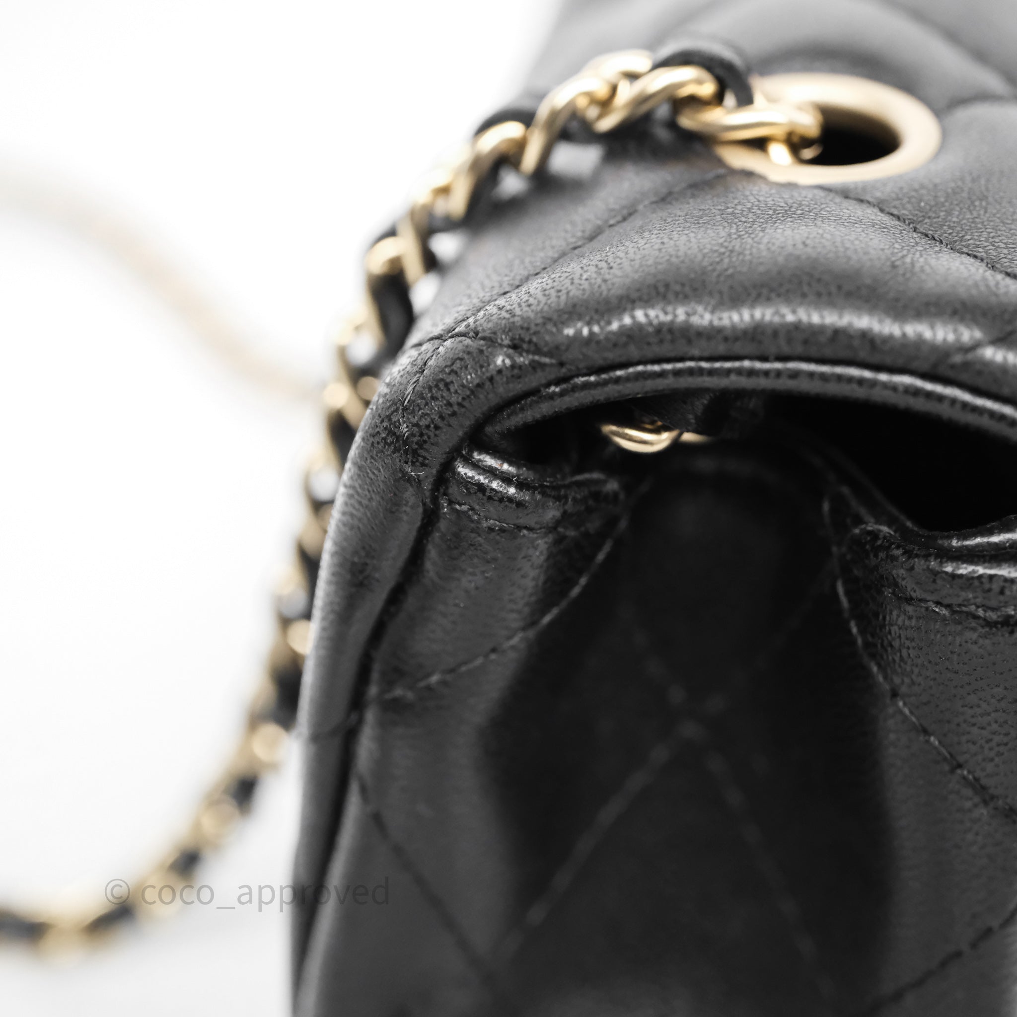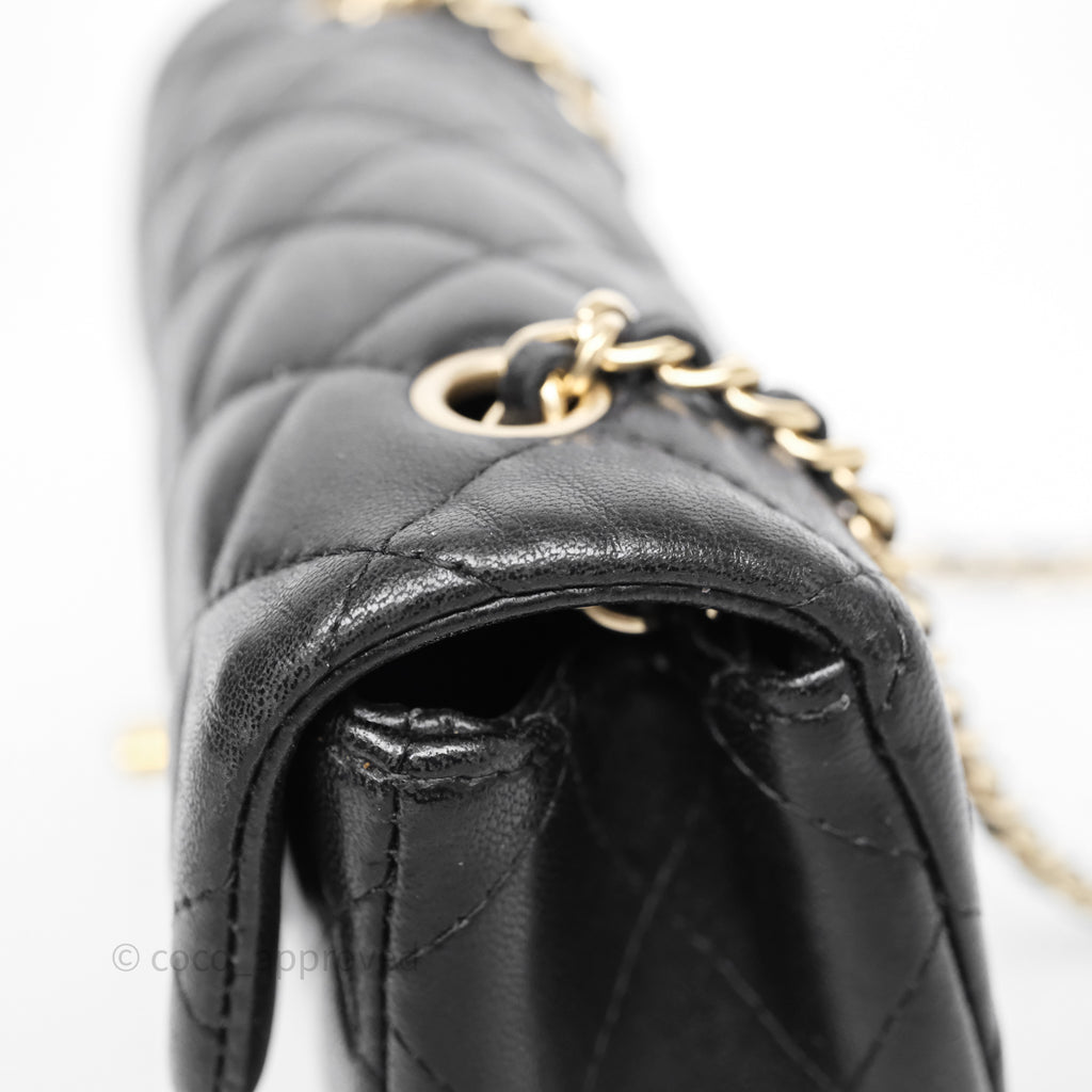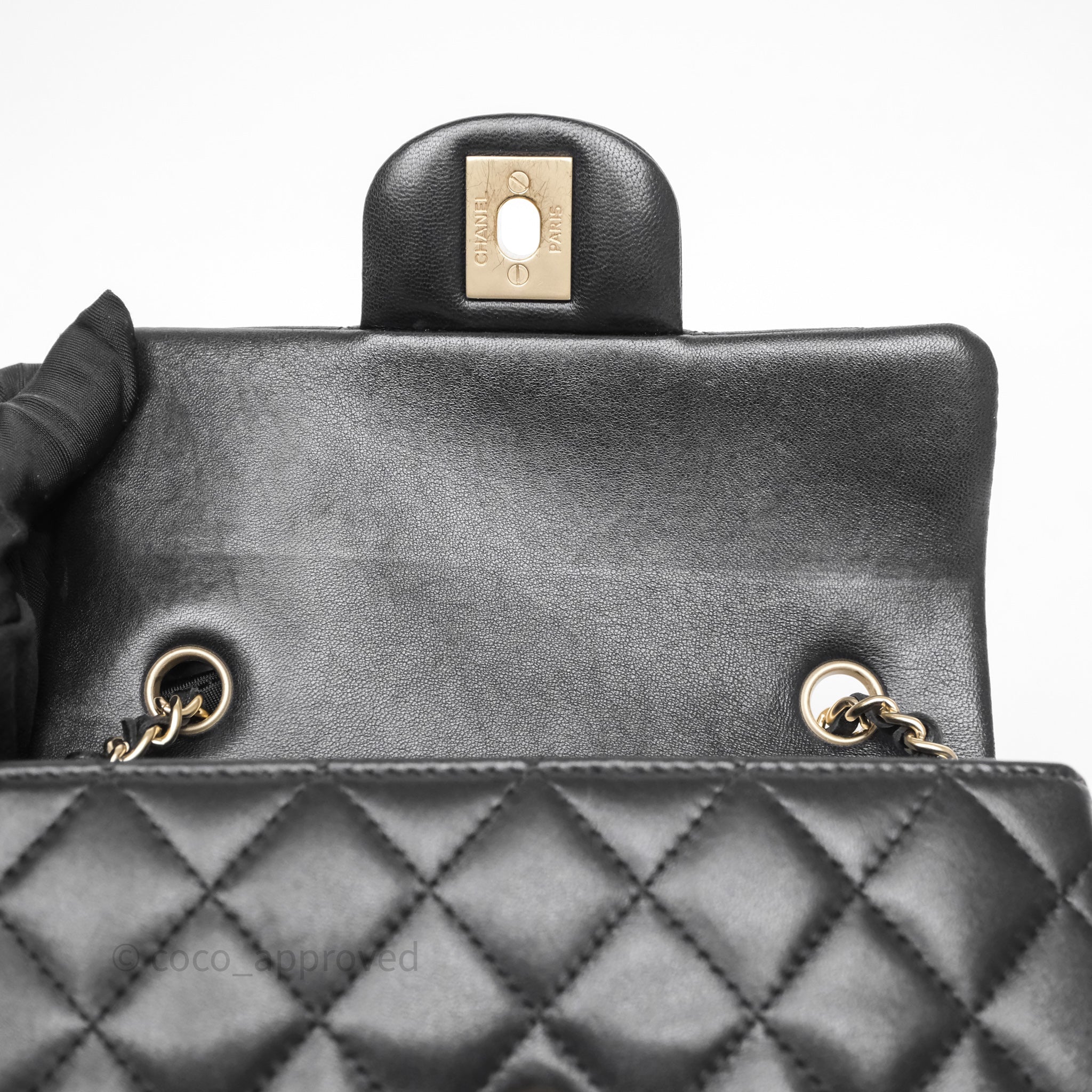 Chanel Quilted Extra Mini Rectangular Flap Black Lambskin Aged Gold Hardware