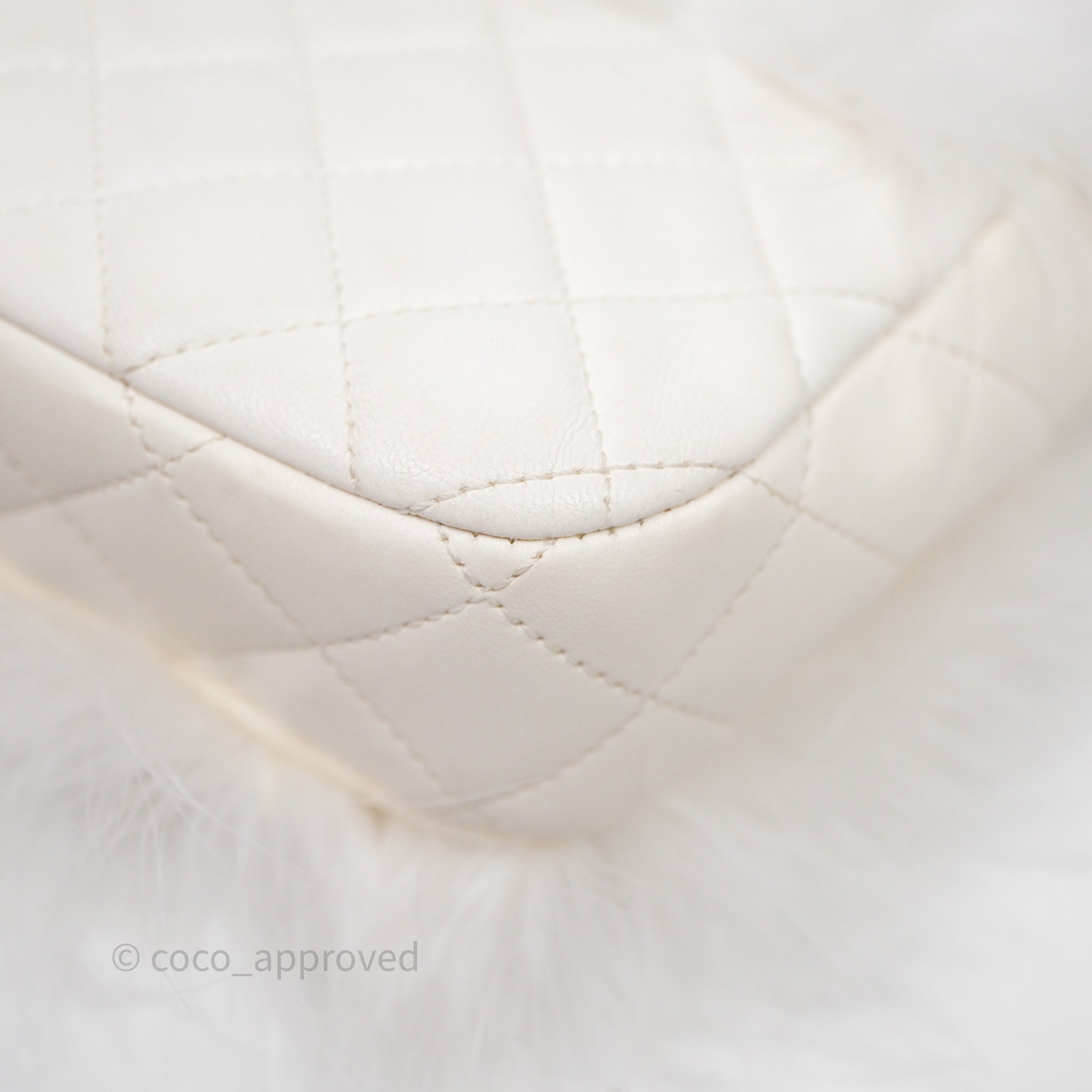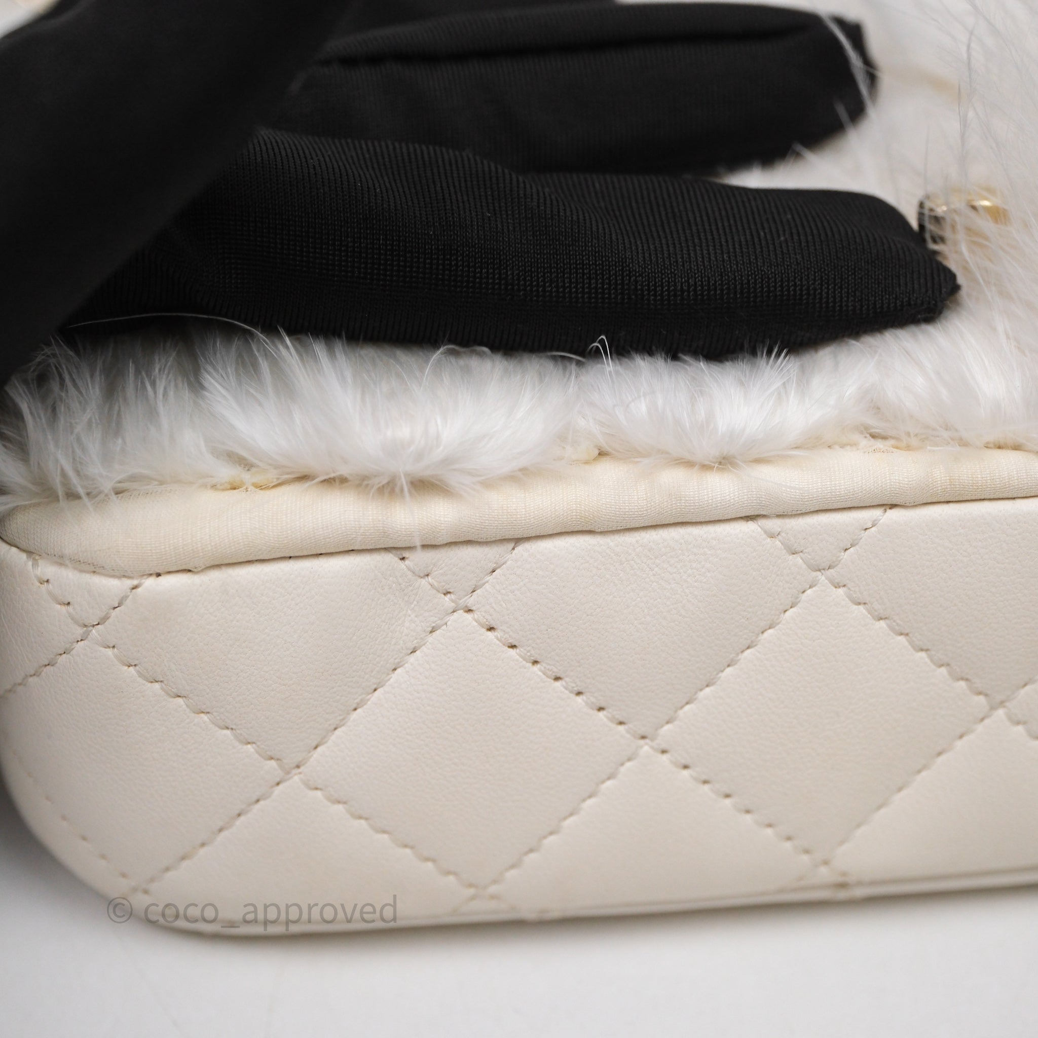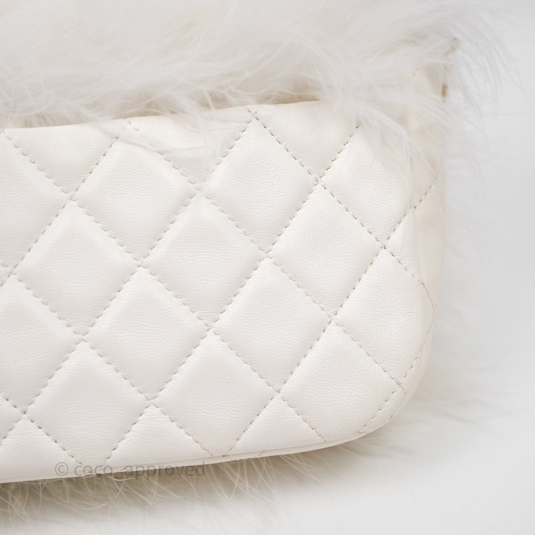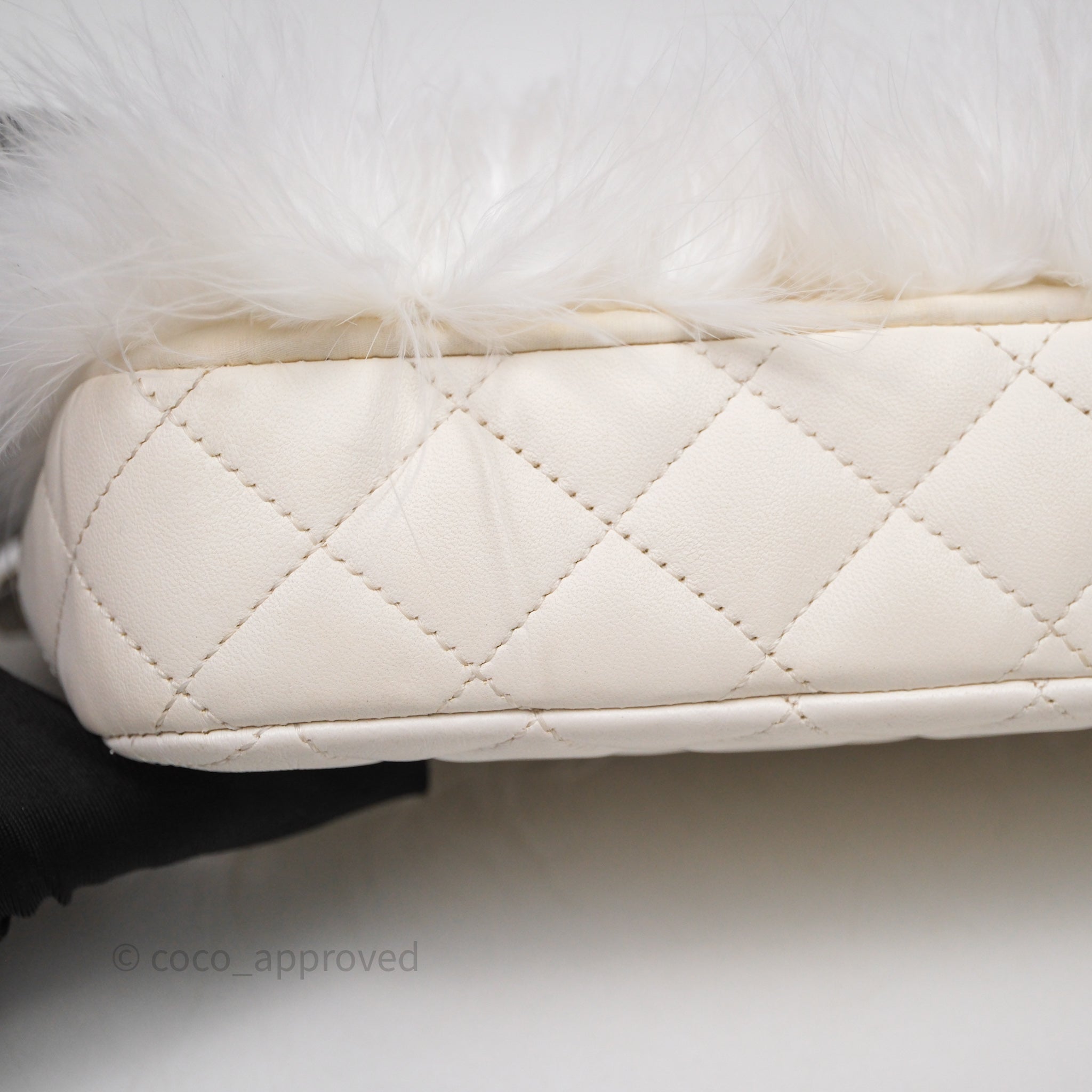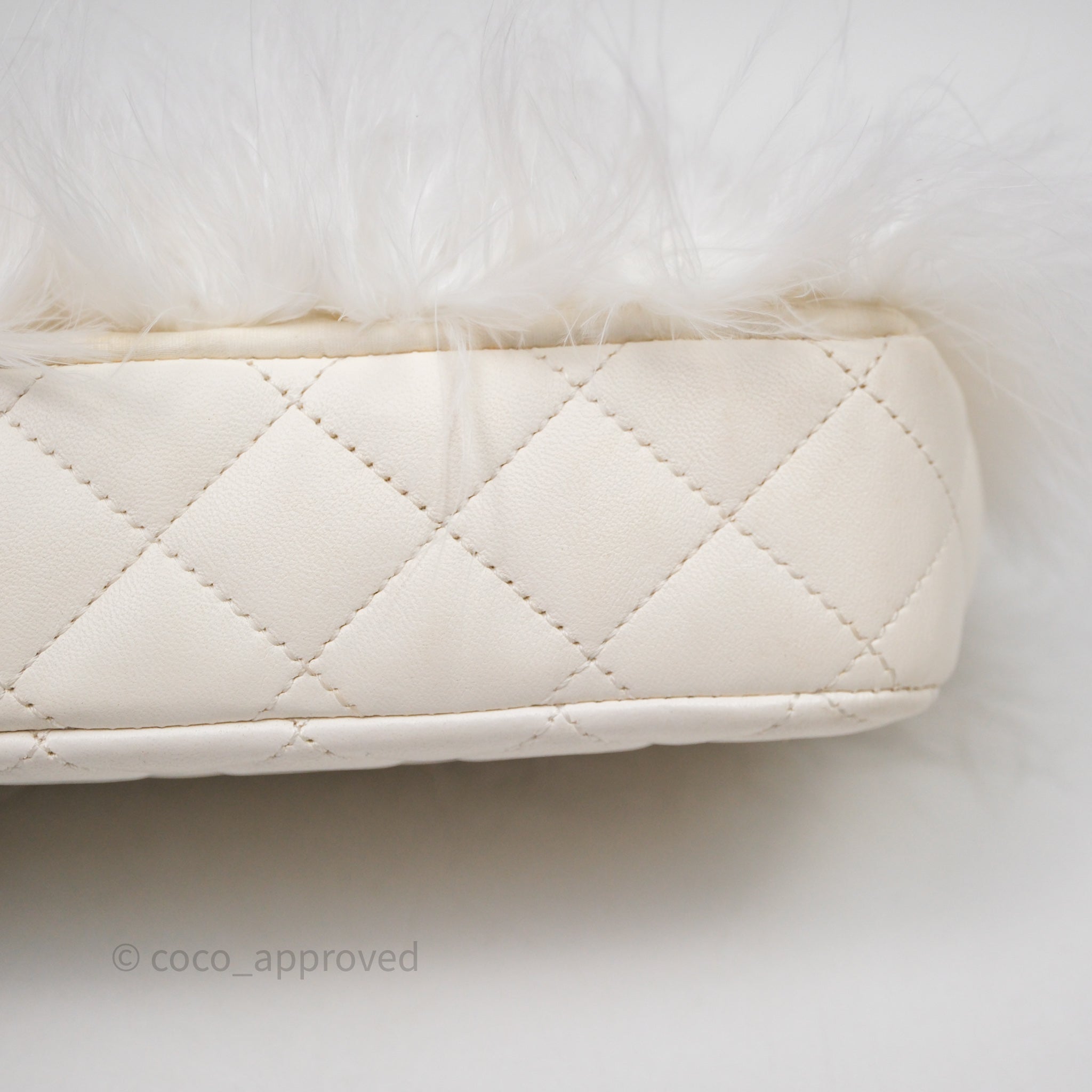 Chanel Quilted Fur Flap Bag White Gold Hardware