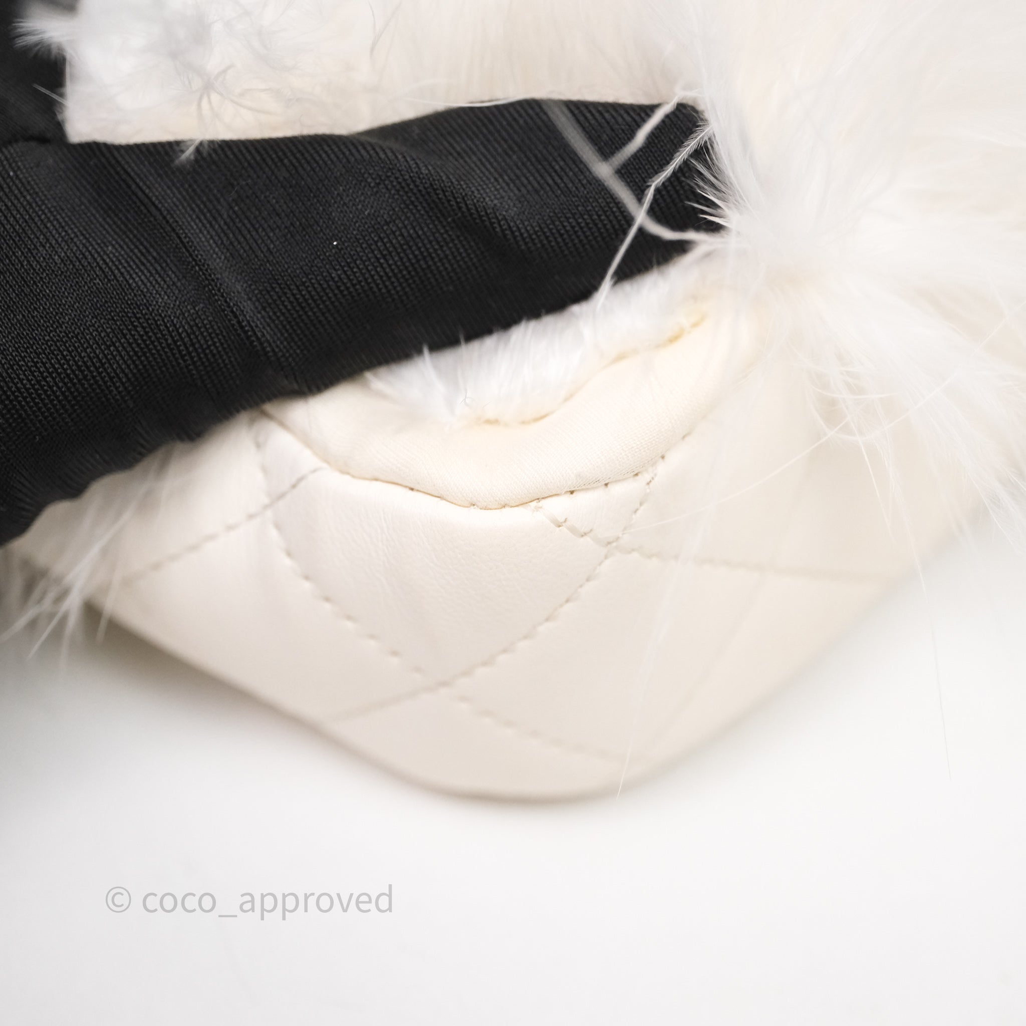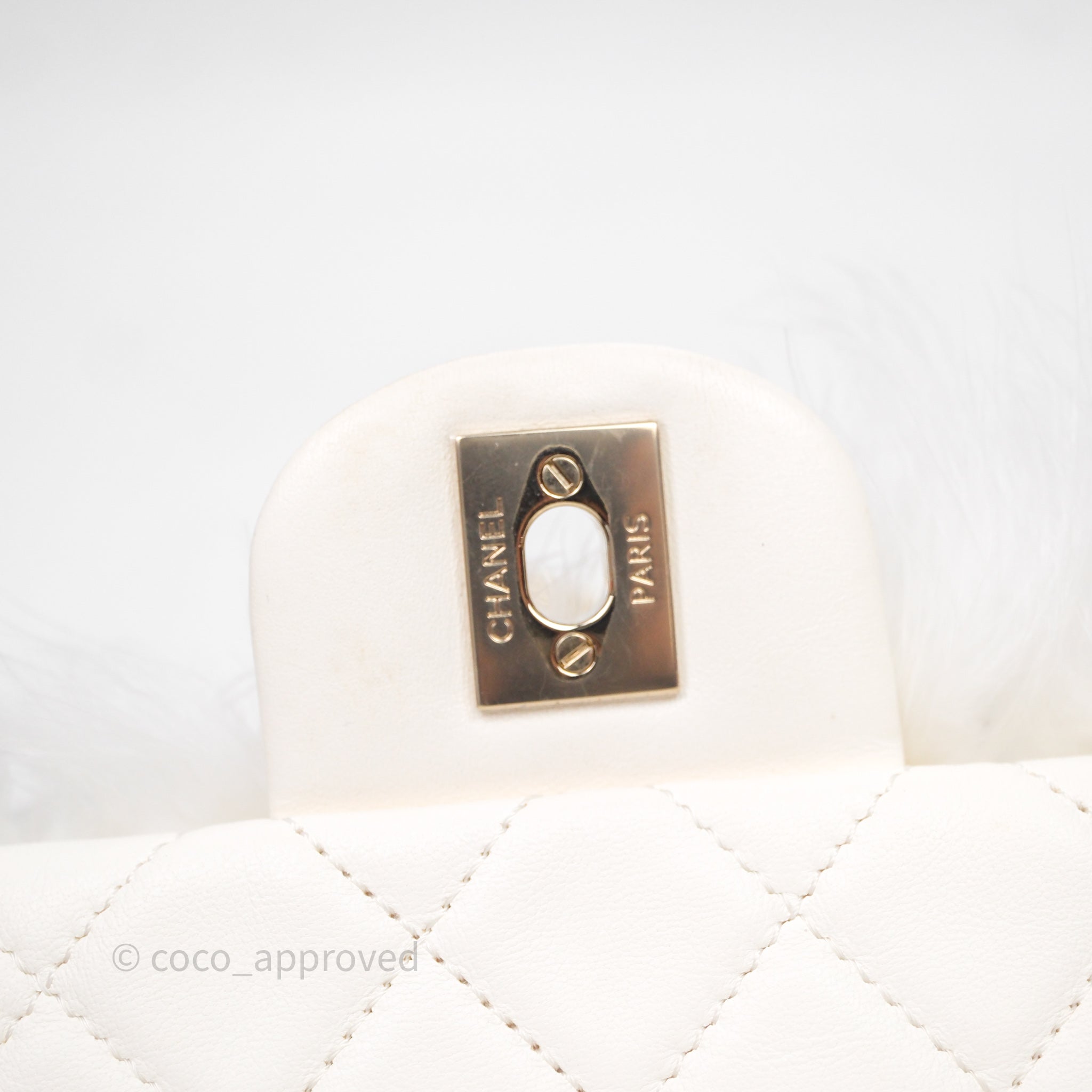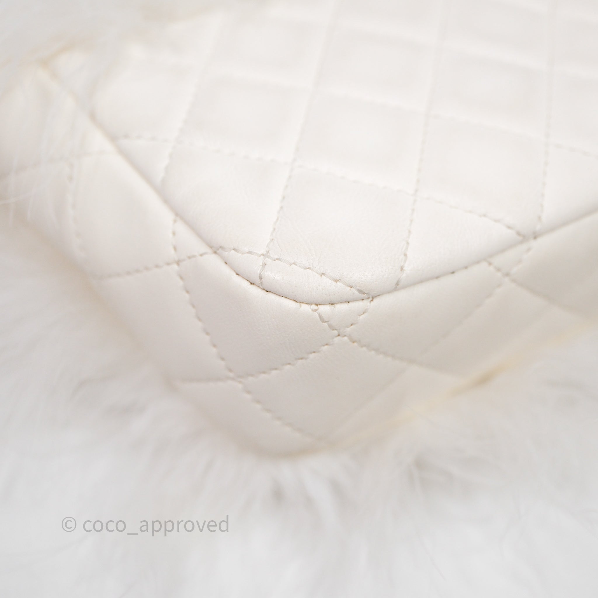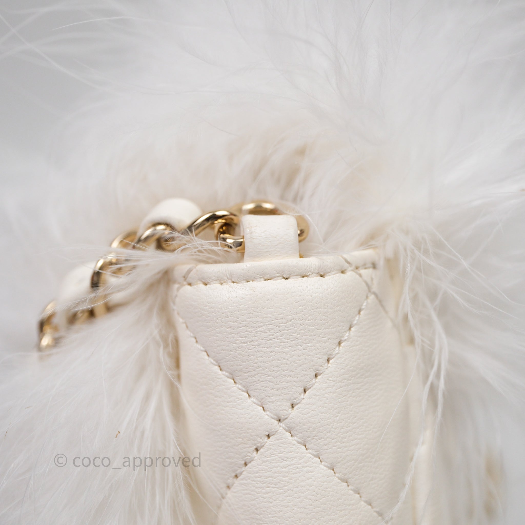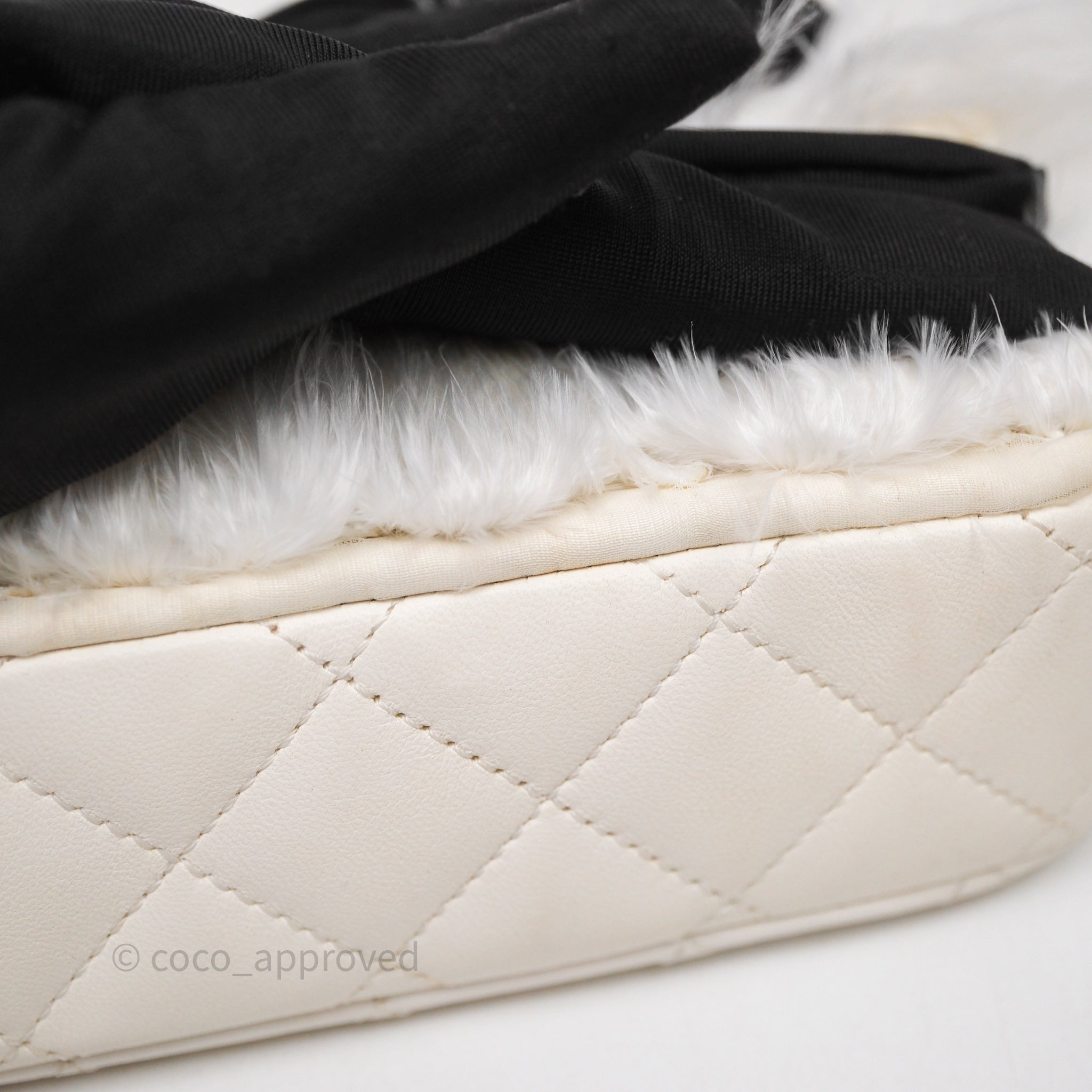 Chanel Quilted Fur Flap Bag White Gold Hardware