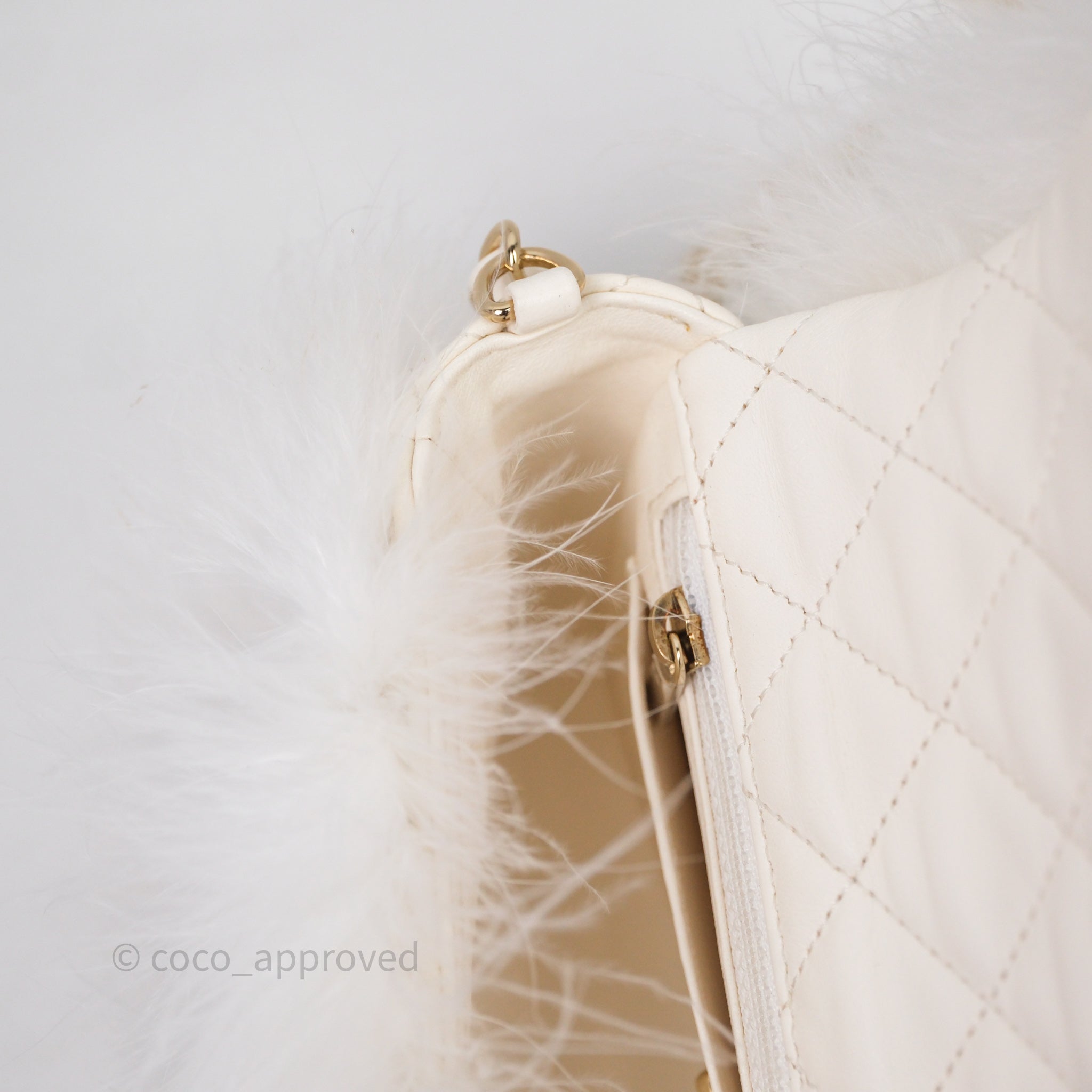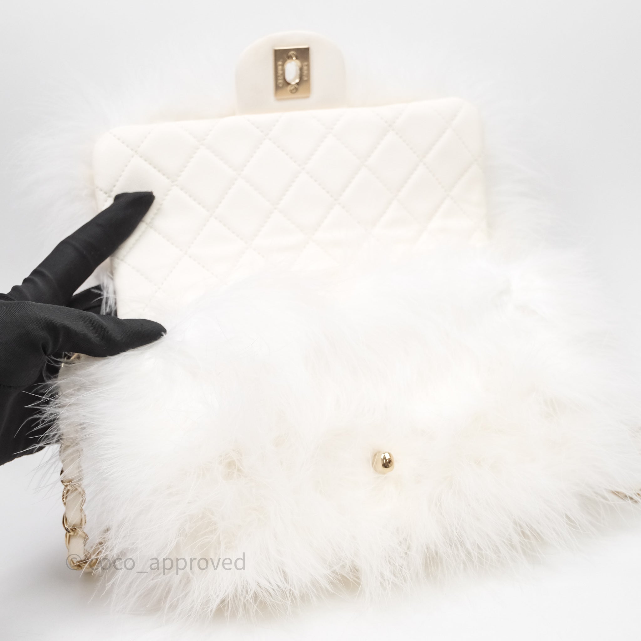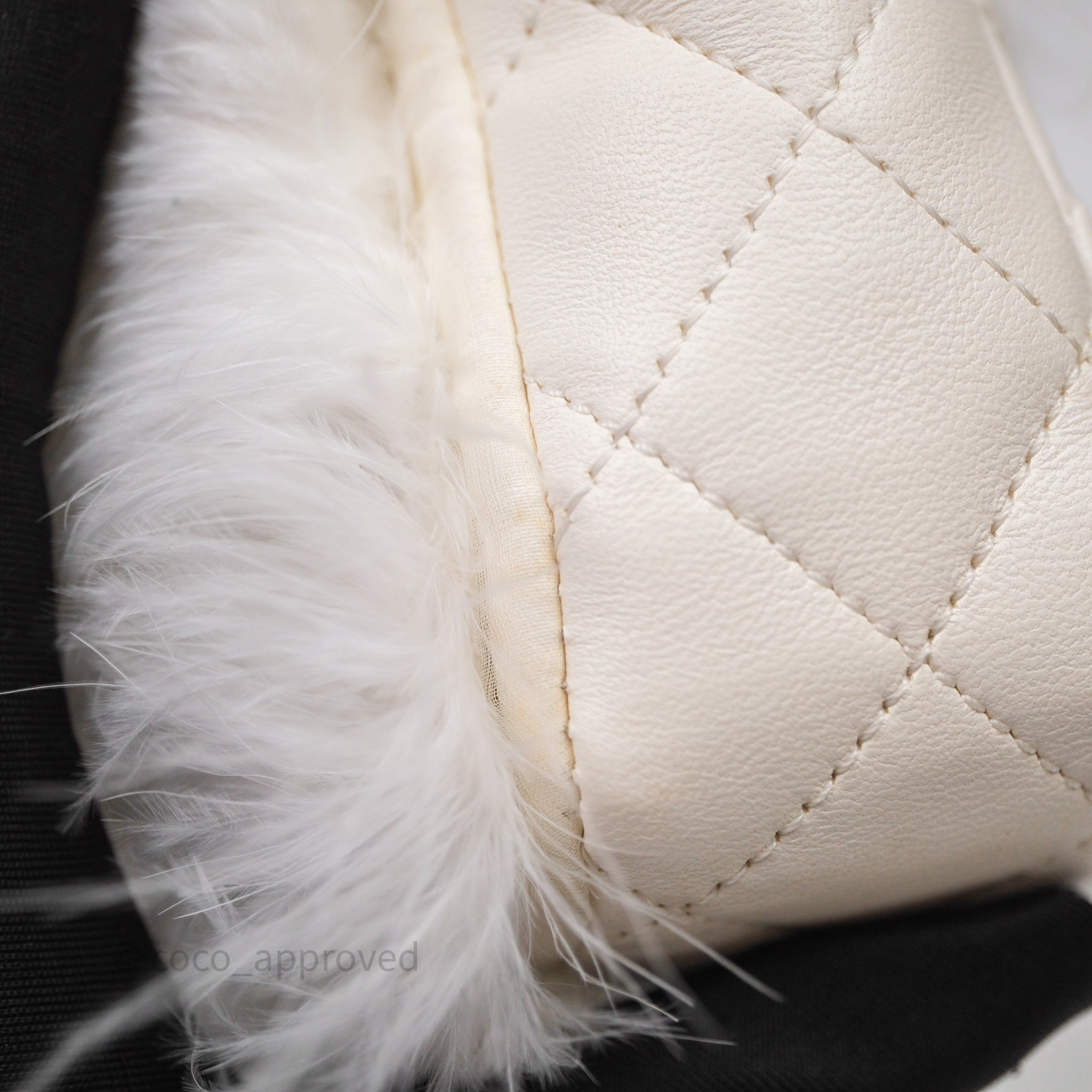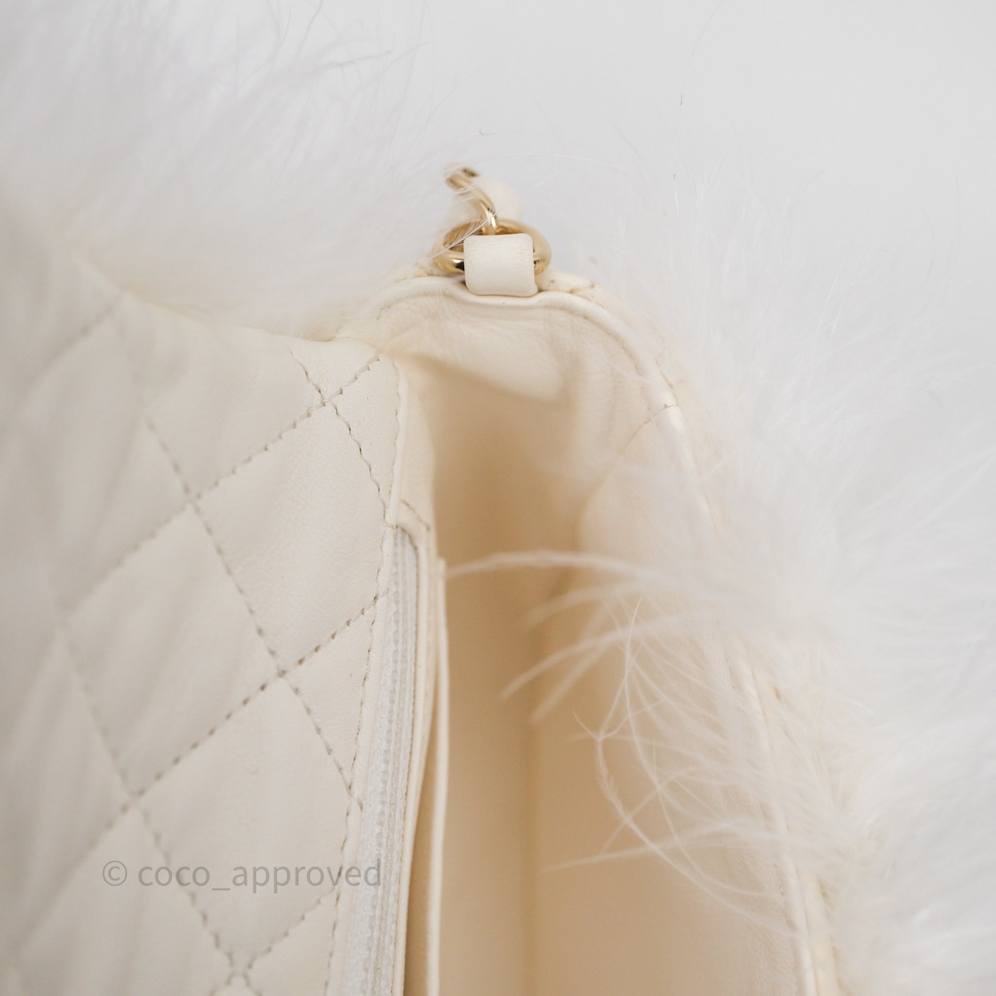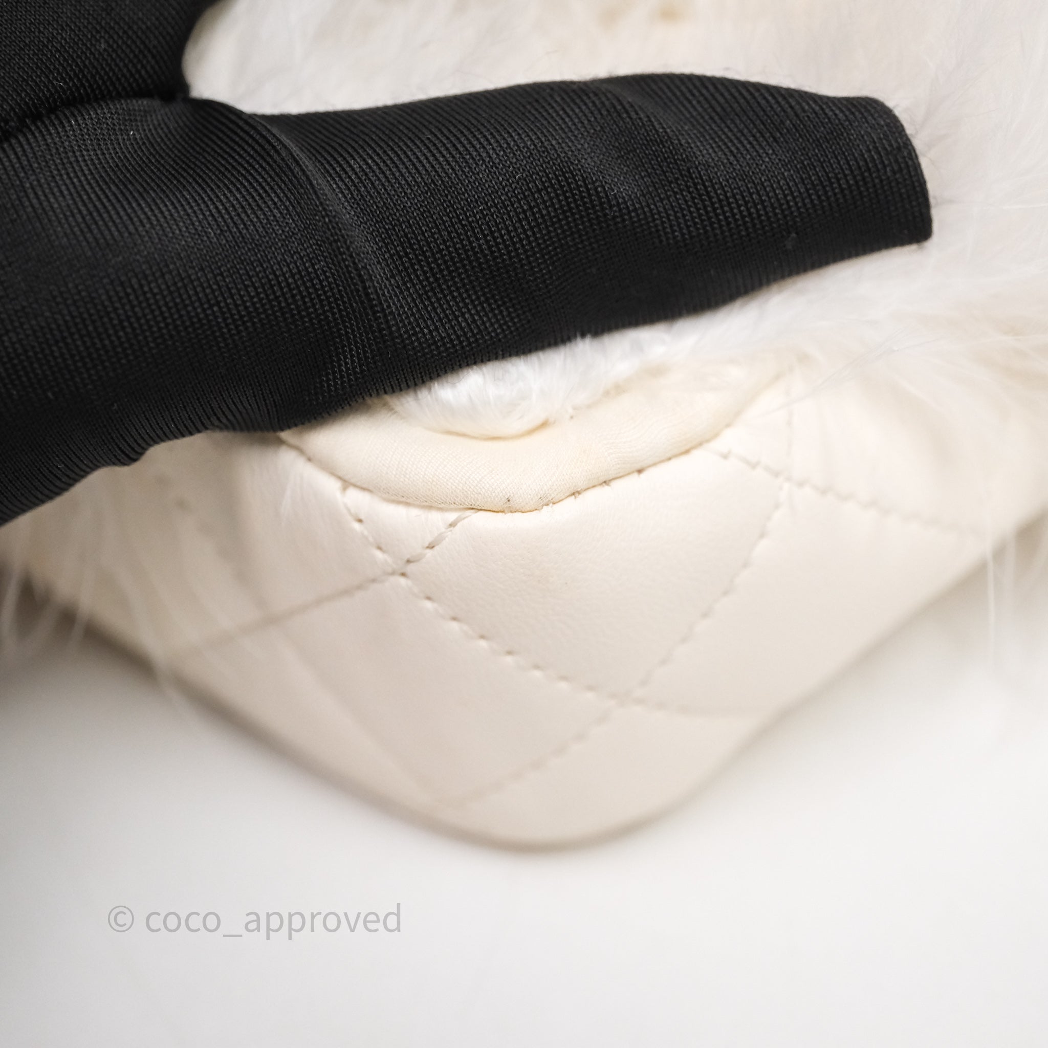 Chanel Quilted Fur Flap Bag White Gold Hardware