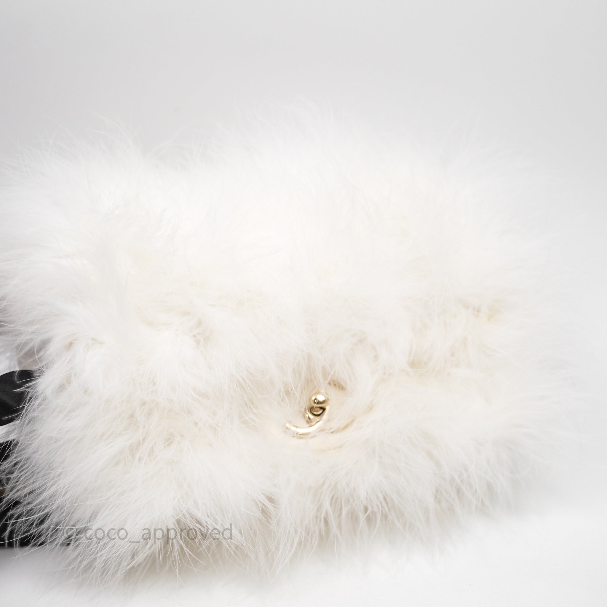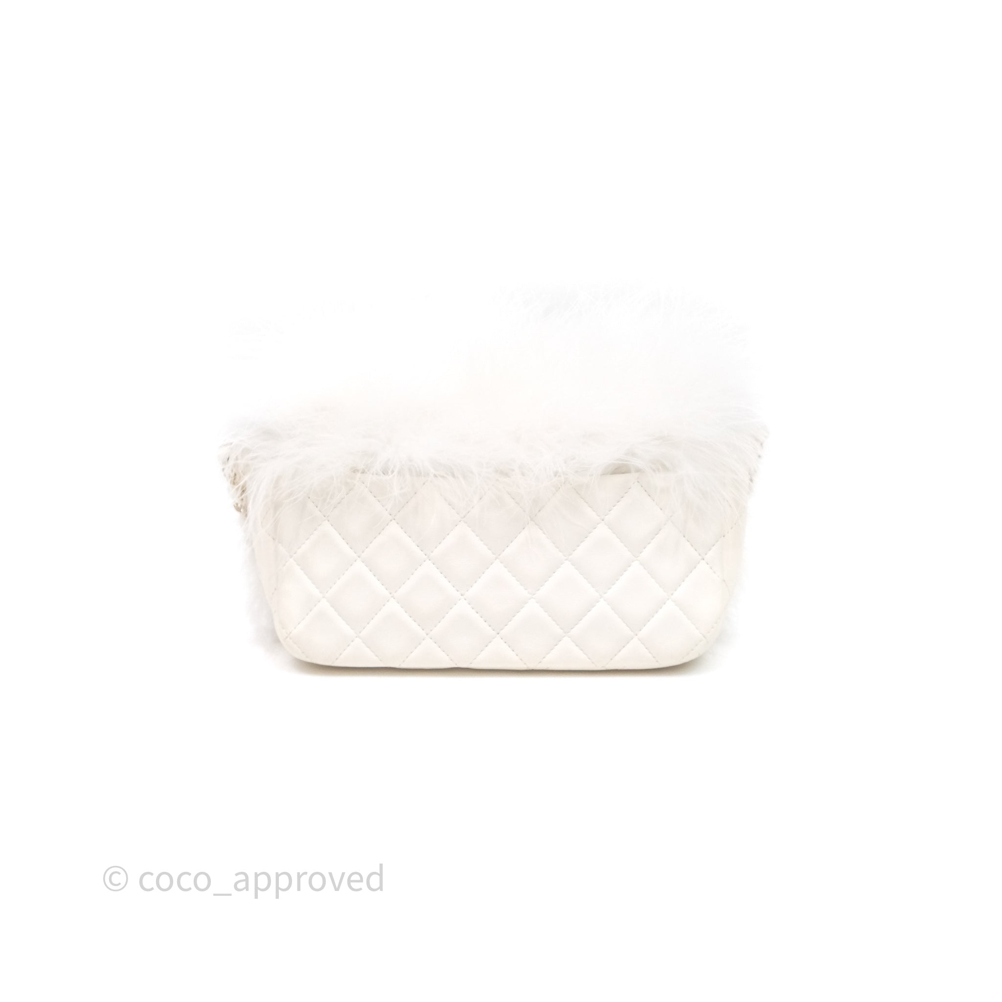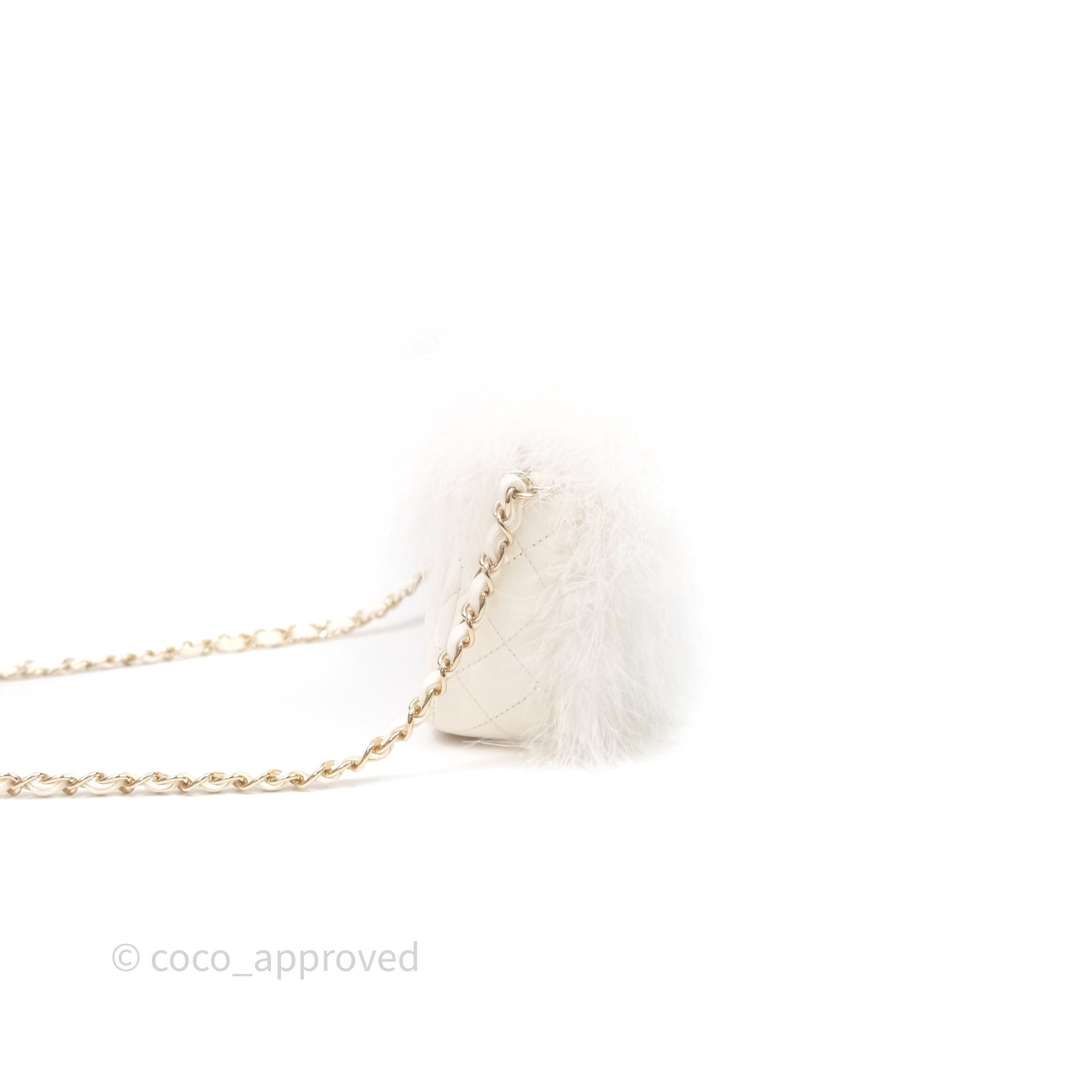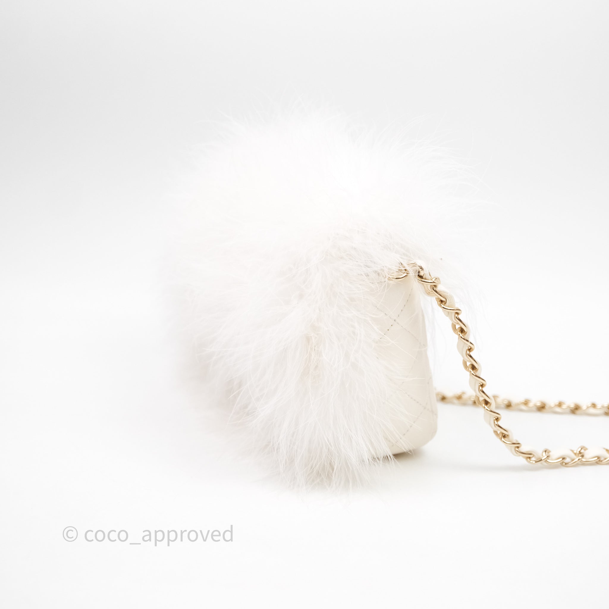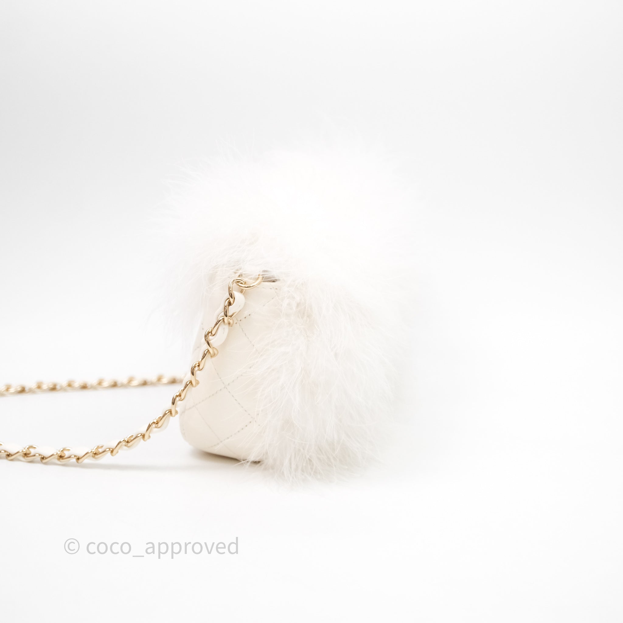 Chanel Quilted Fur Flap Bag White Gold Hardware