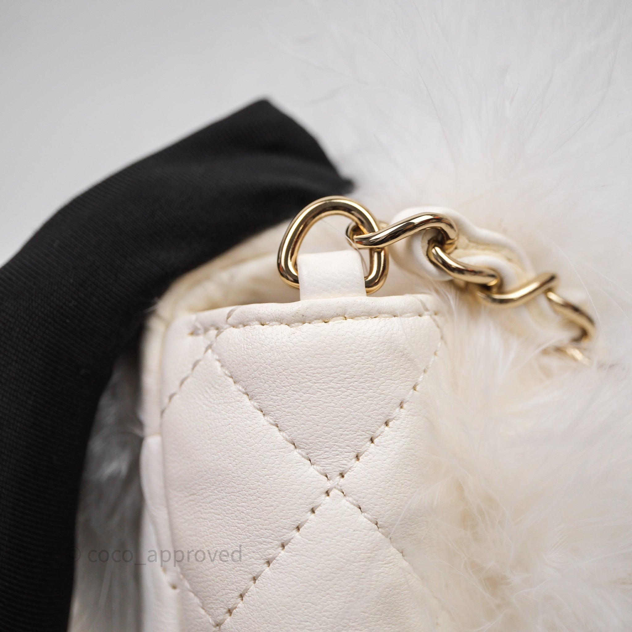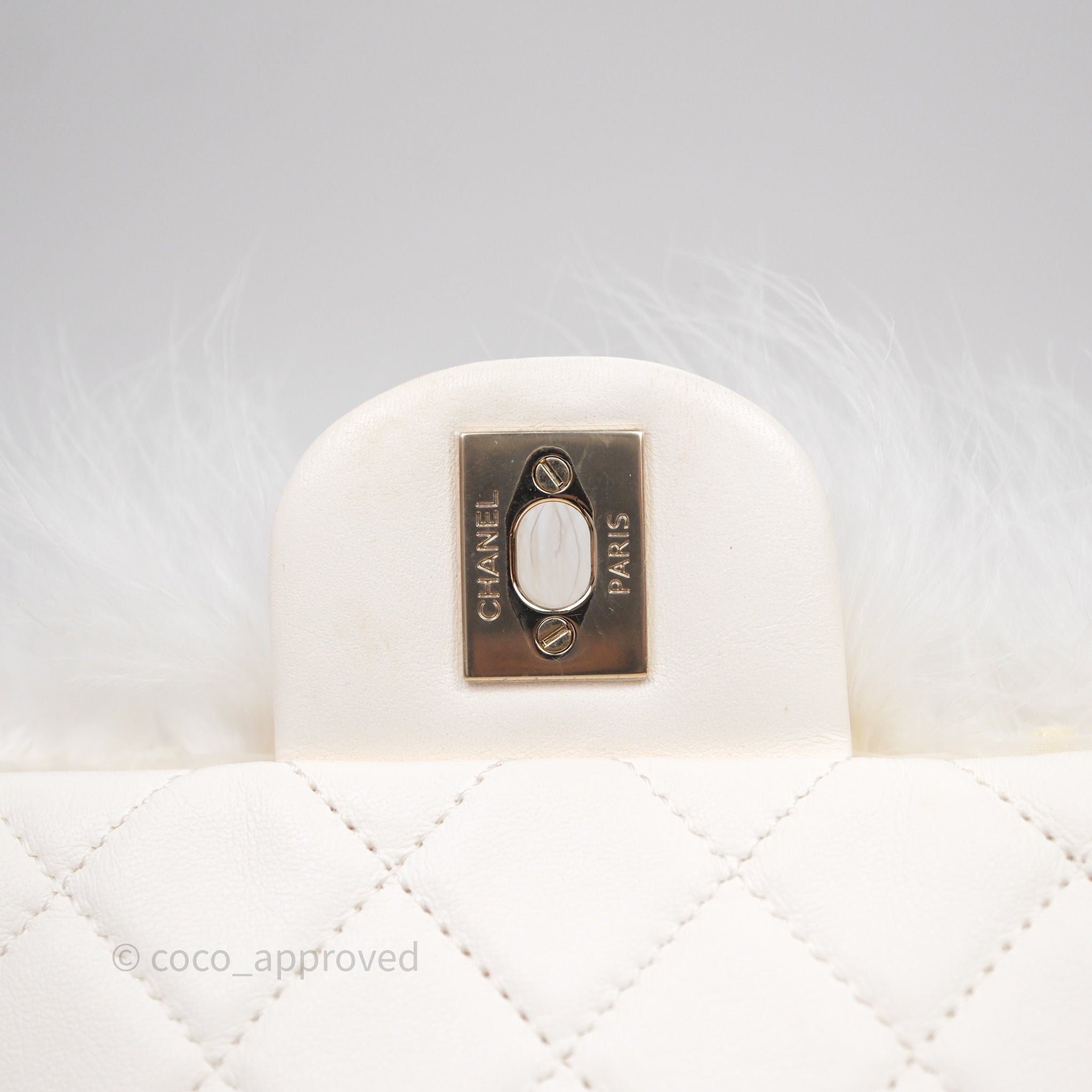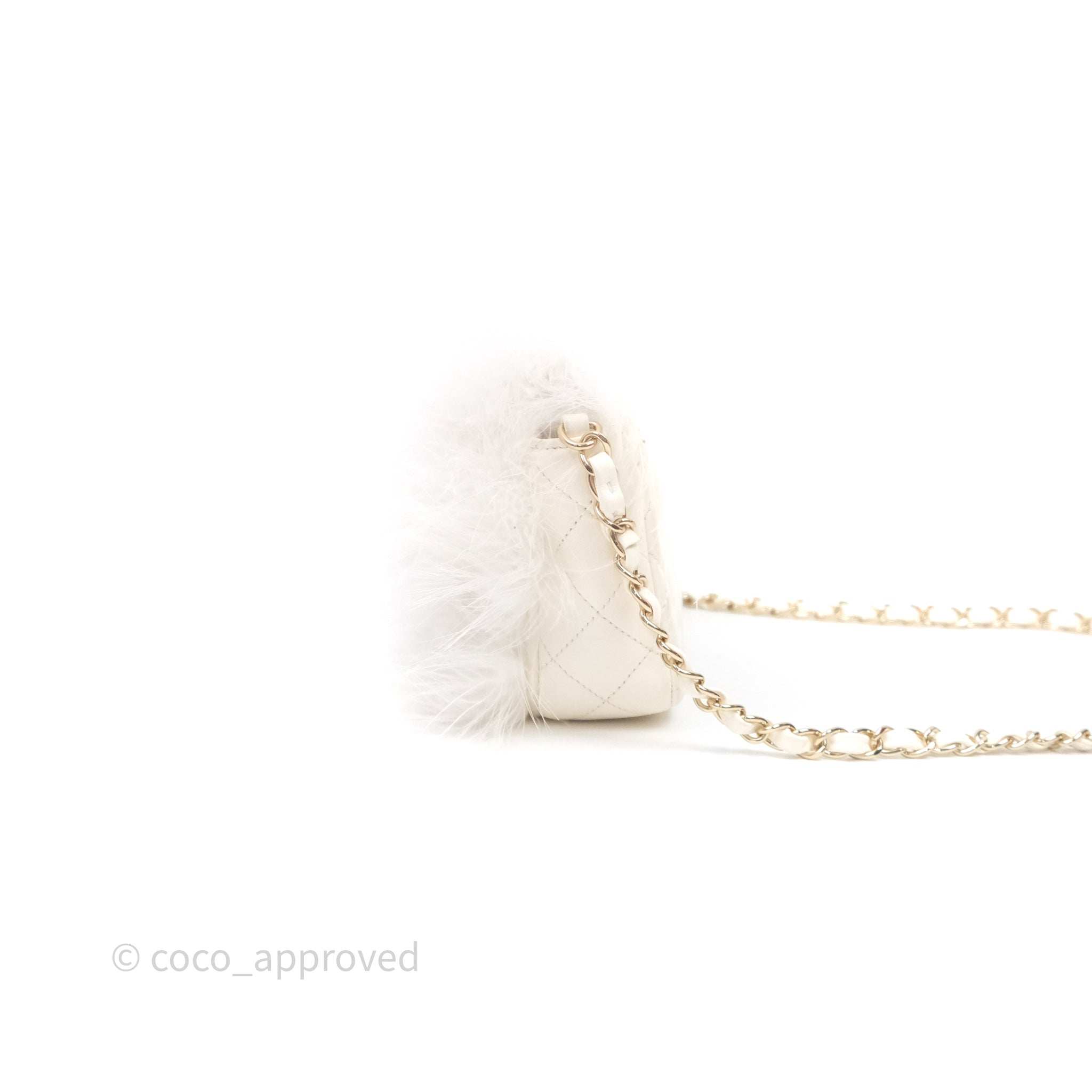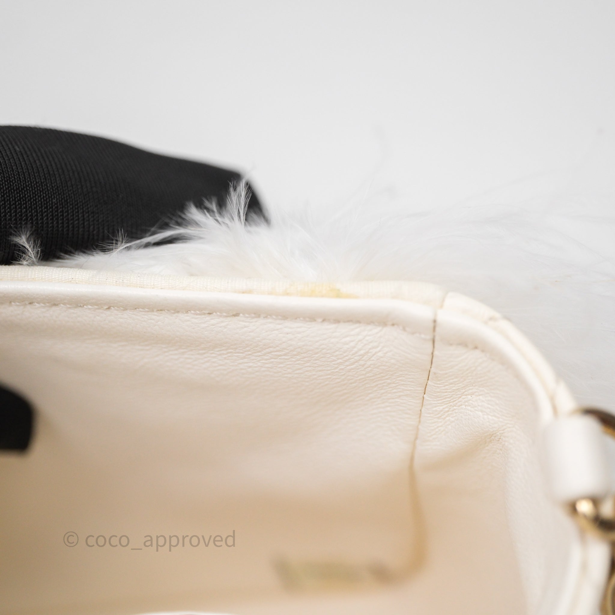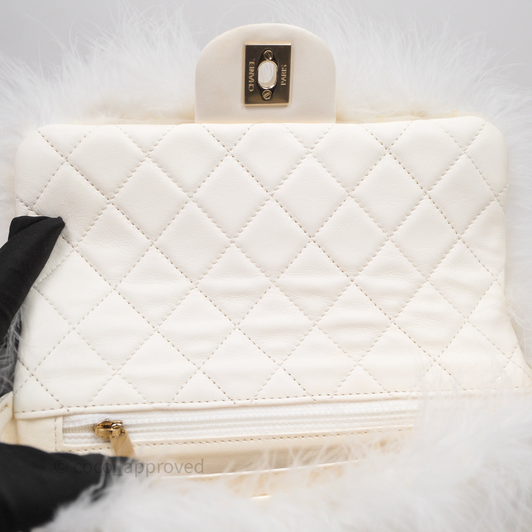 Chanel Quilted Fur Flap Bag White Gold Hardware