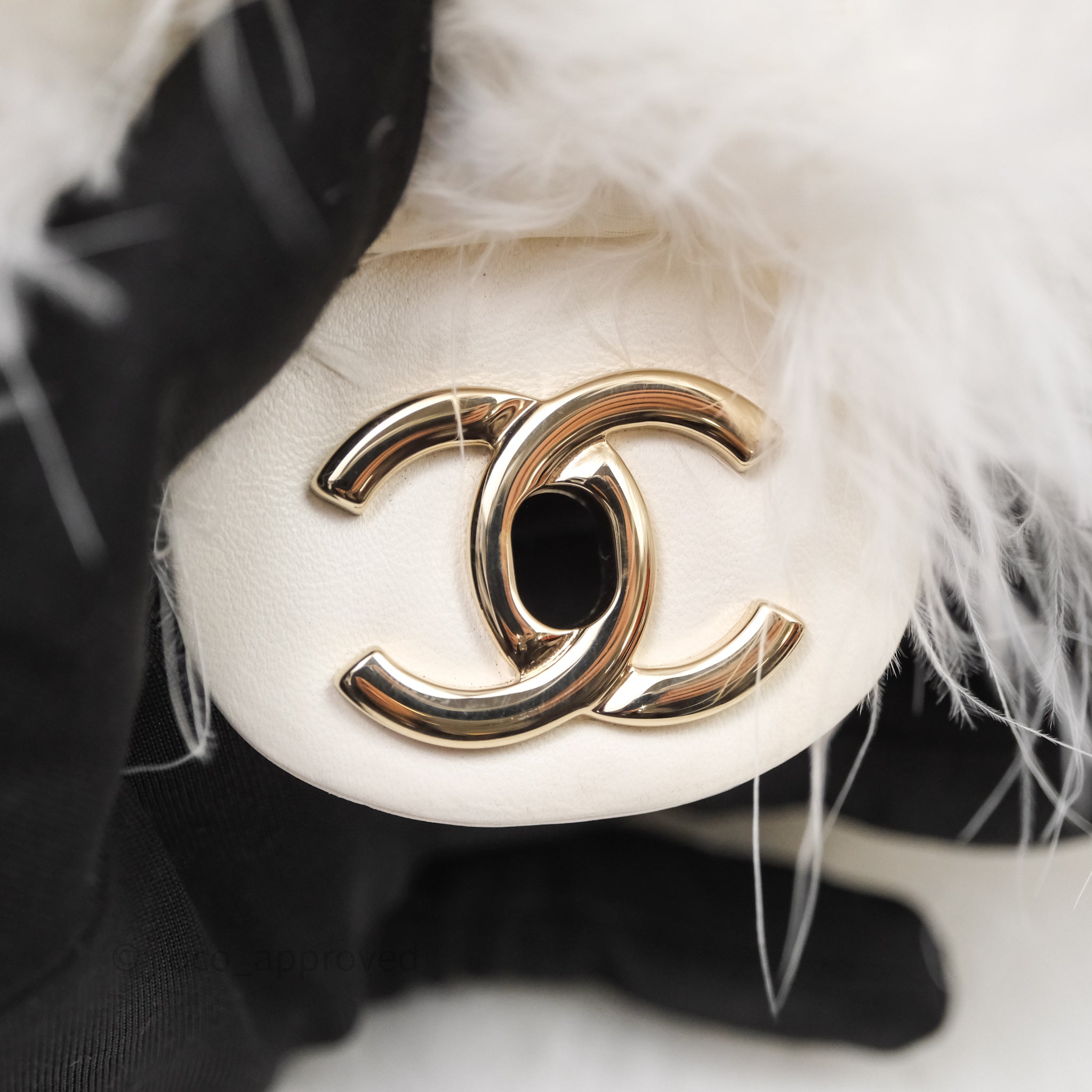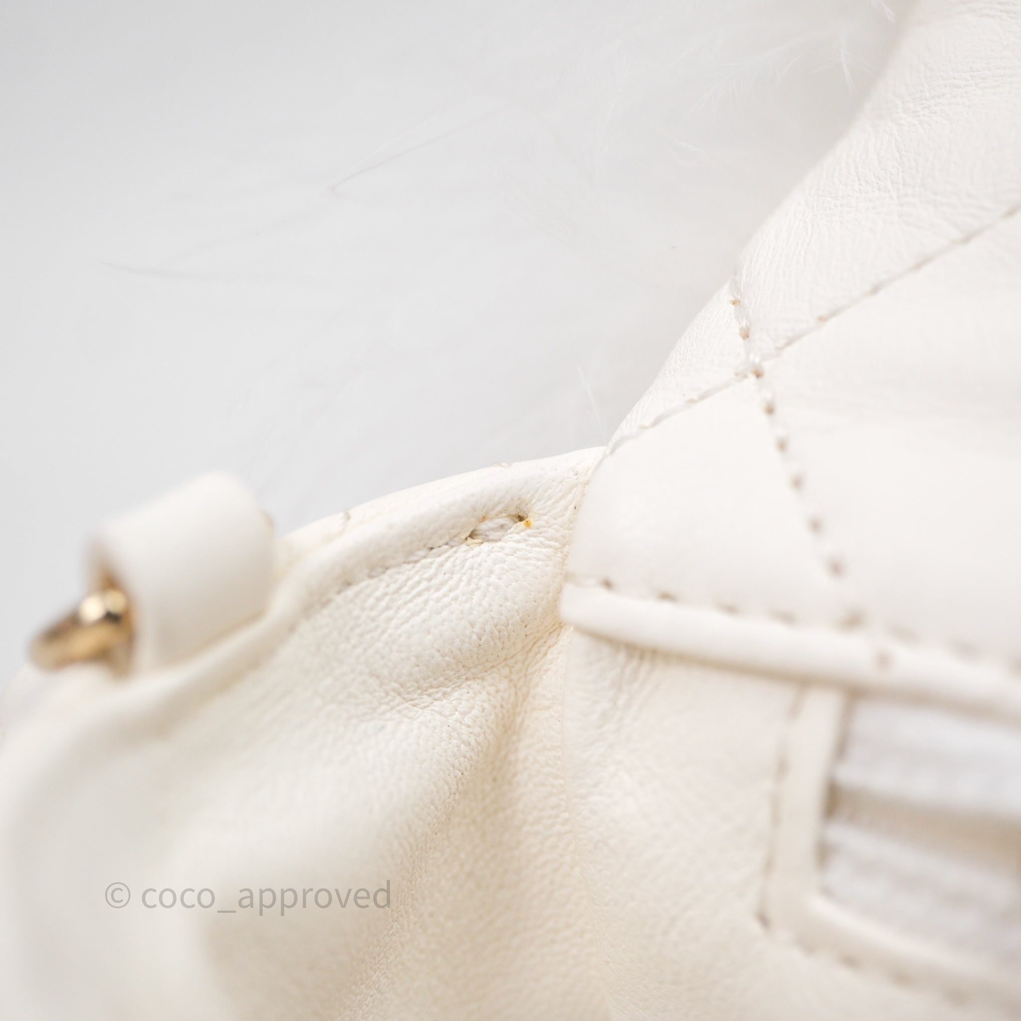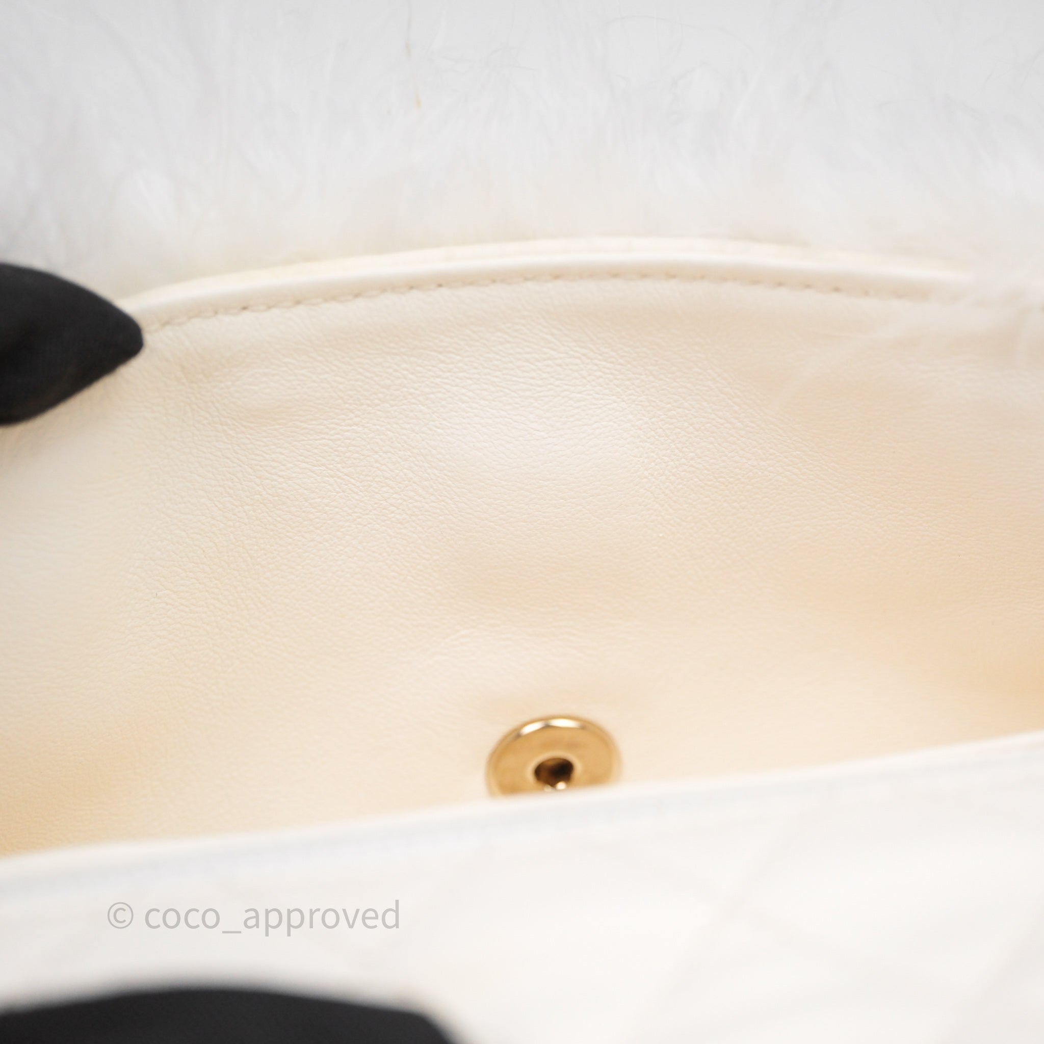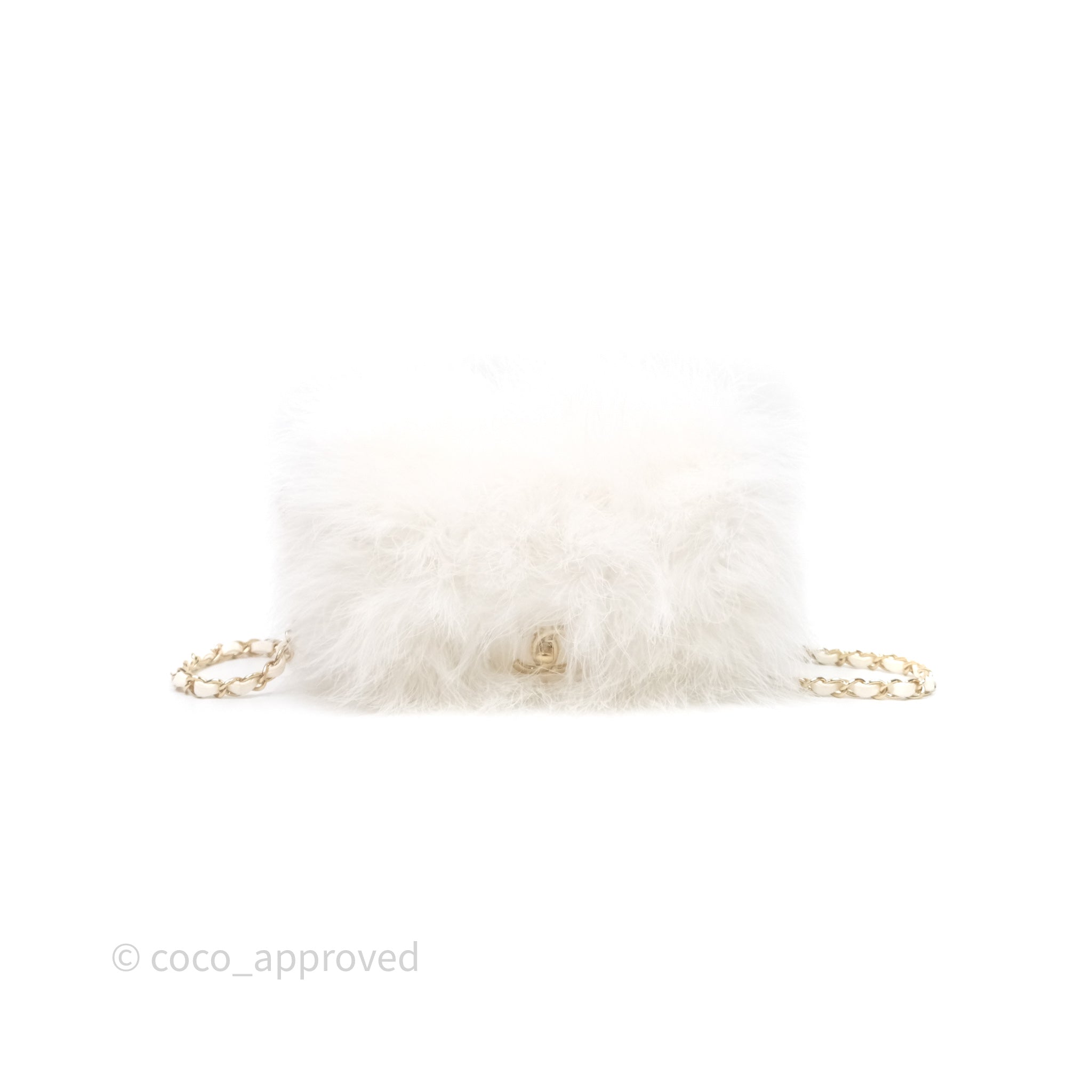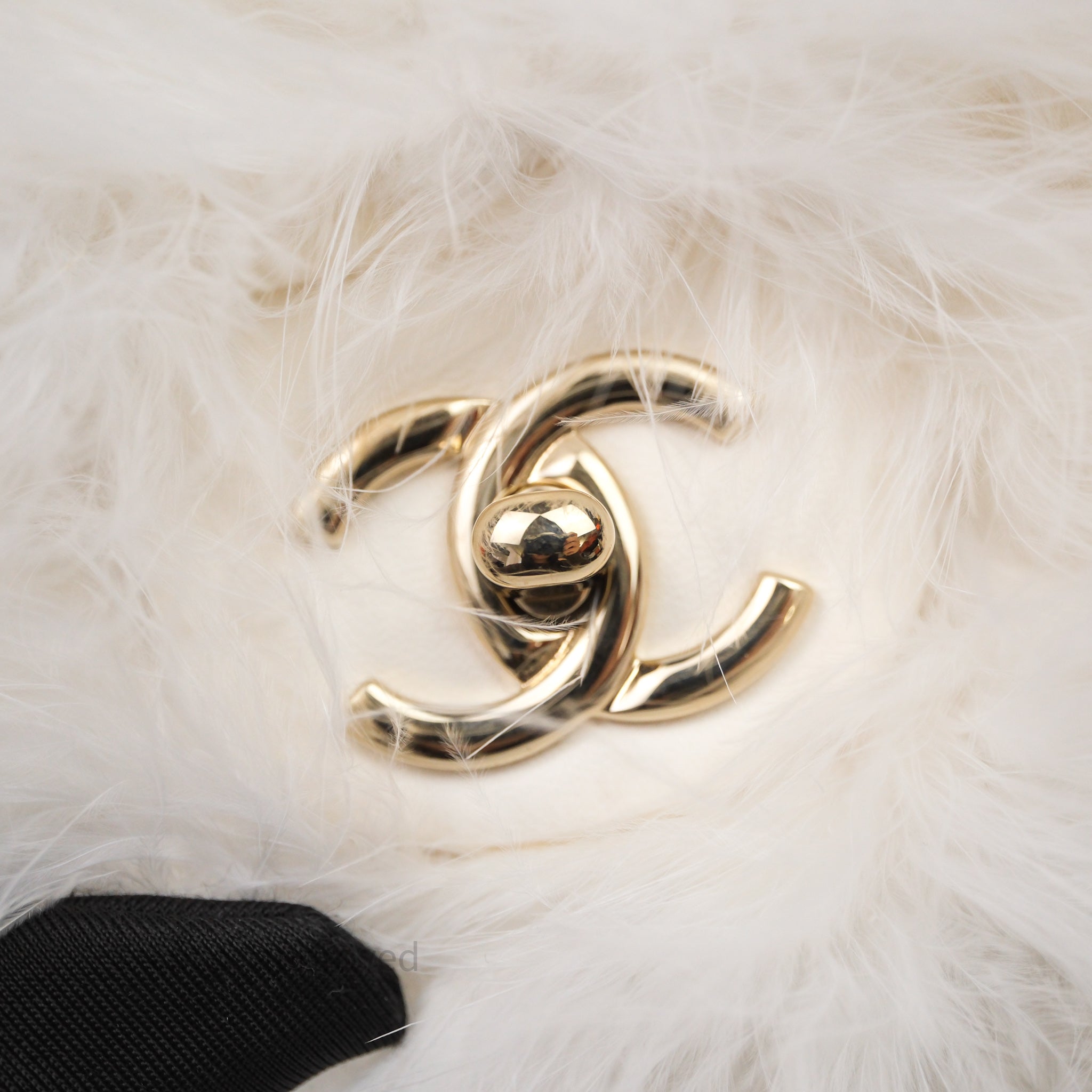 Chanel Quilted Fur Flap Bag White Gold Hardware