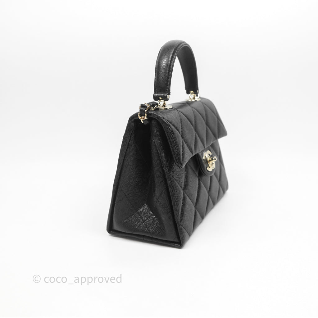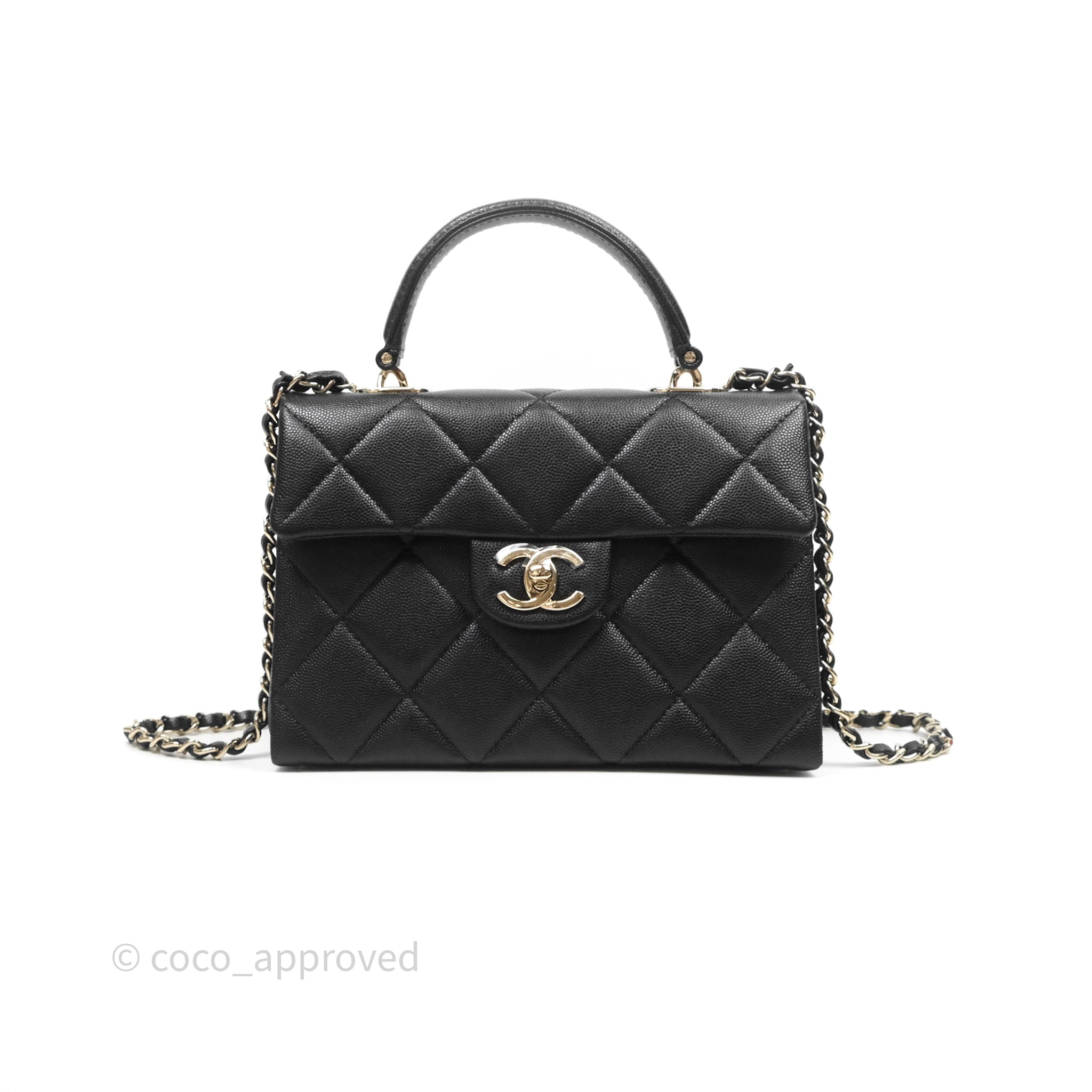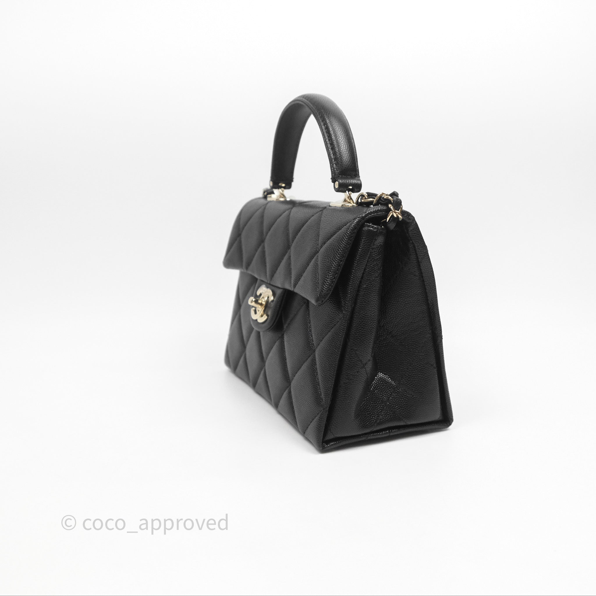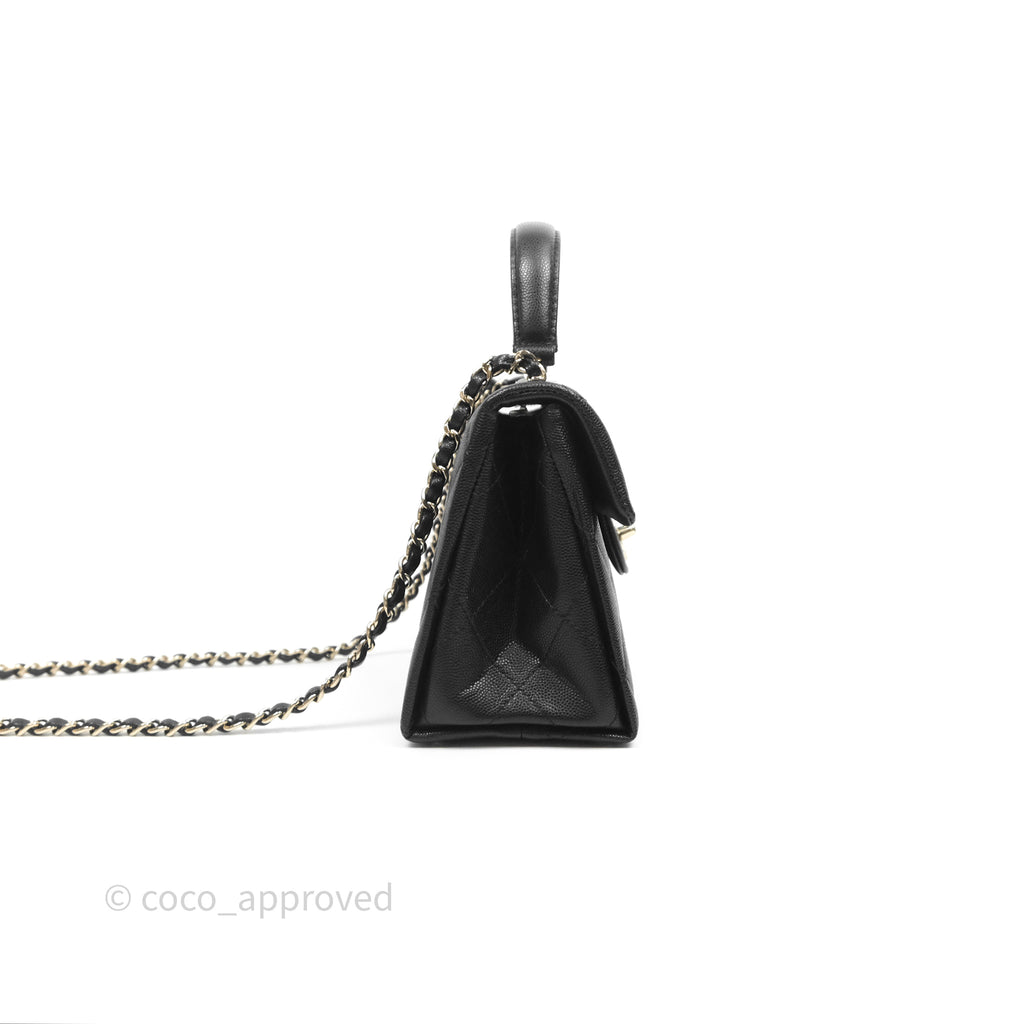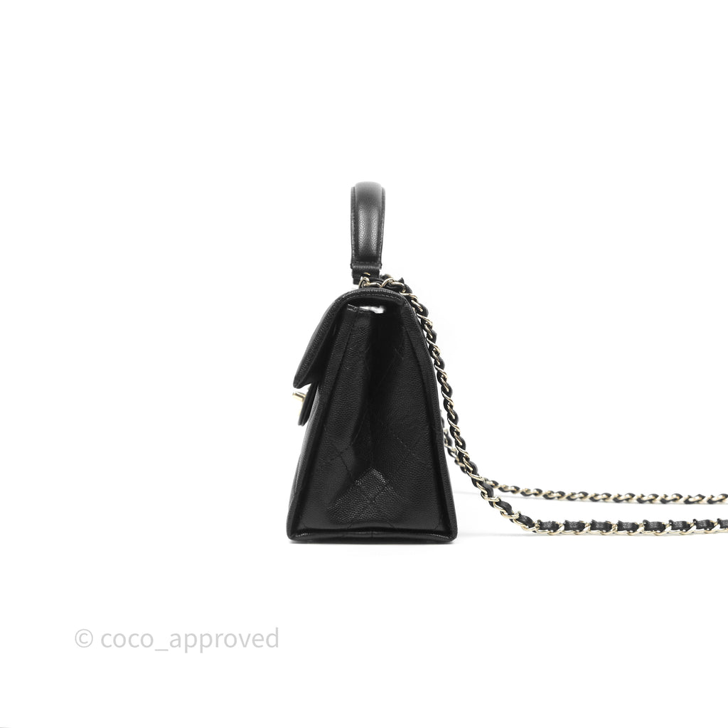 Chanel Quilted Small Top Handle Flap Bag Black Caviar Gold Hardware