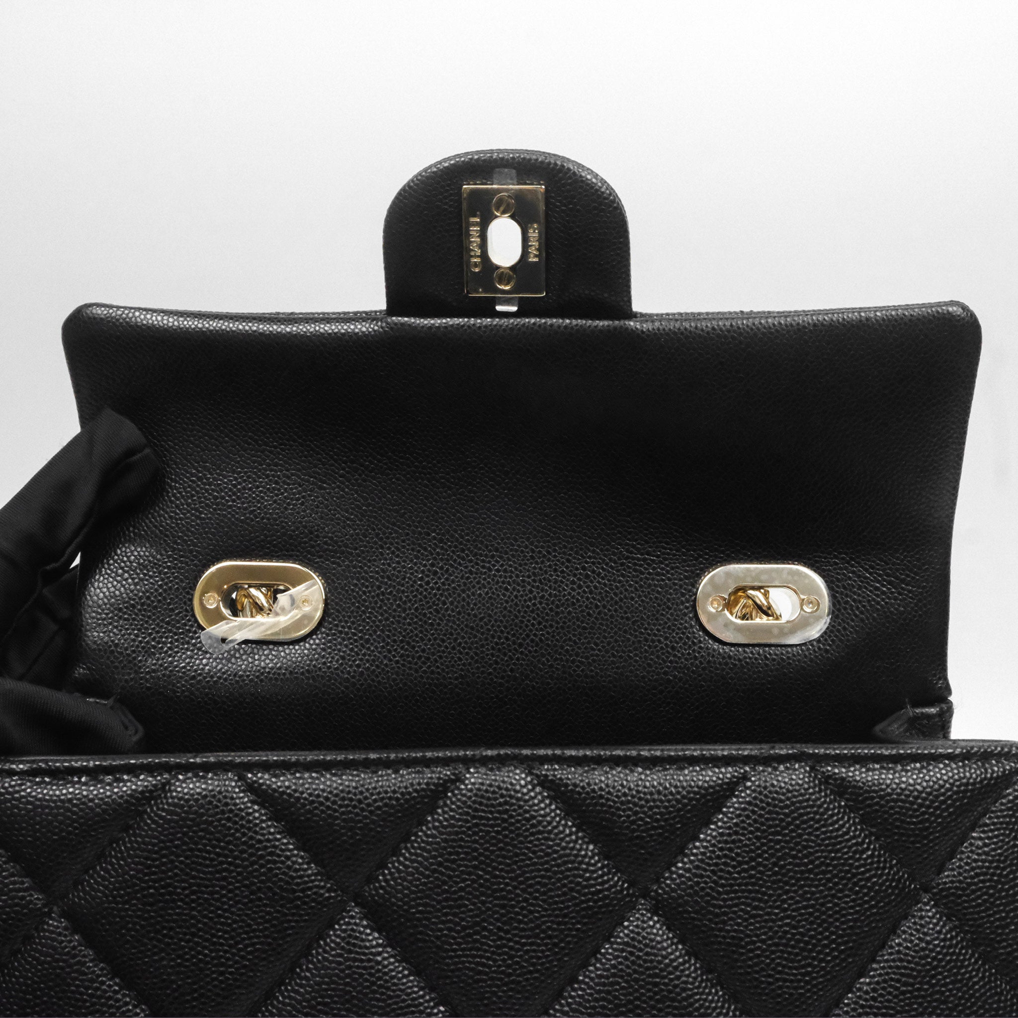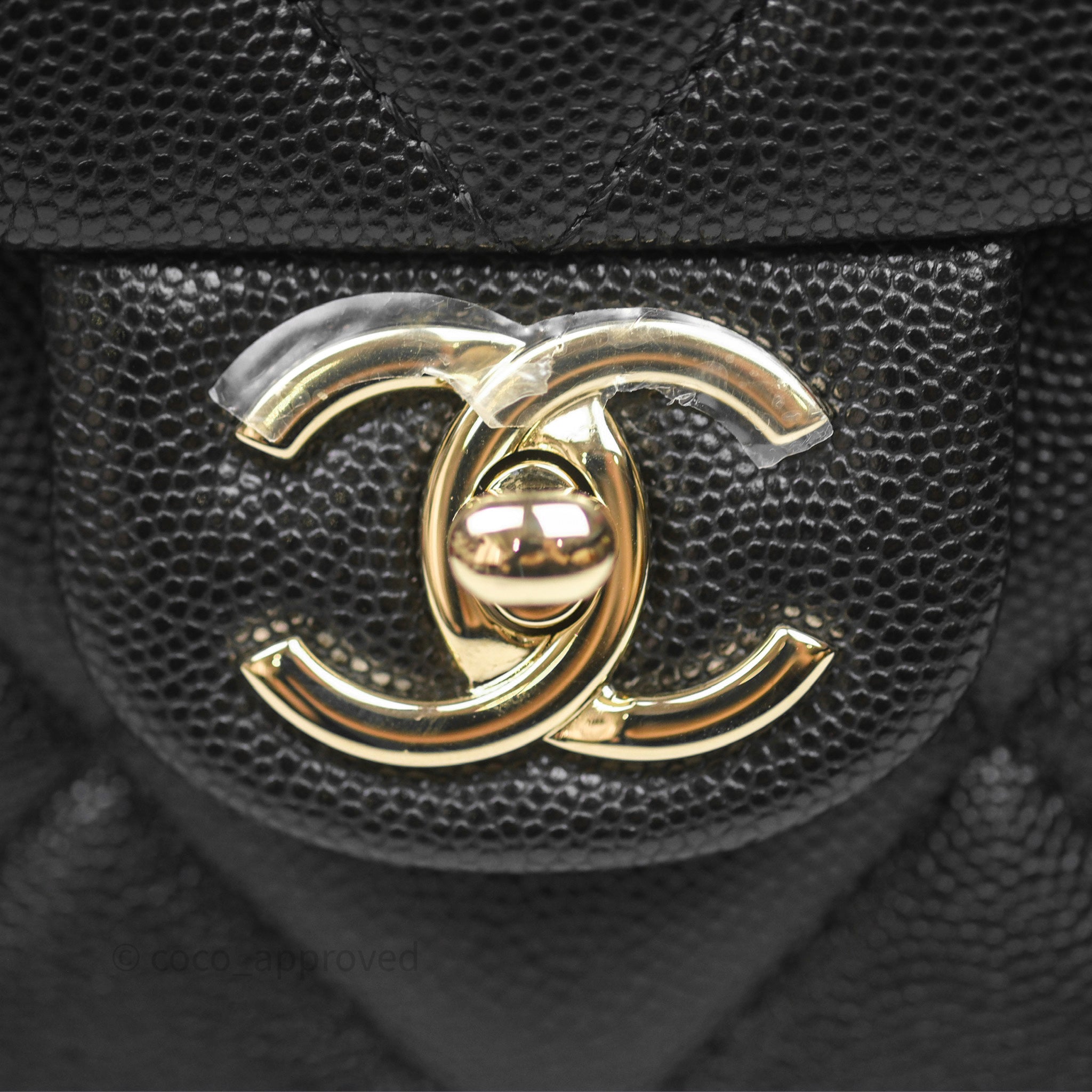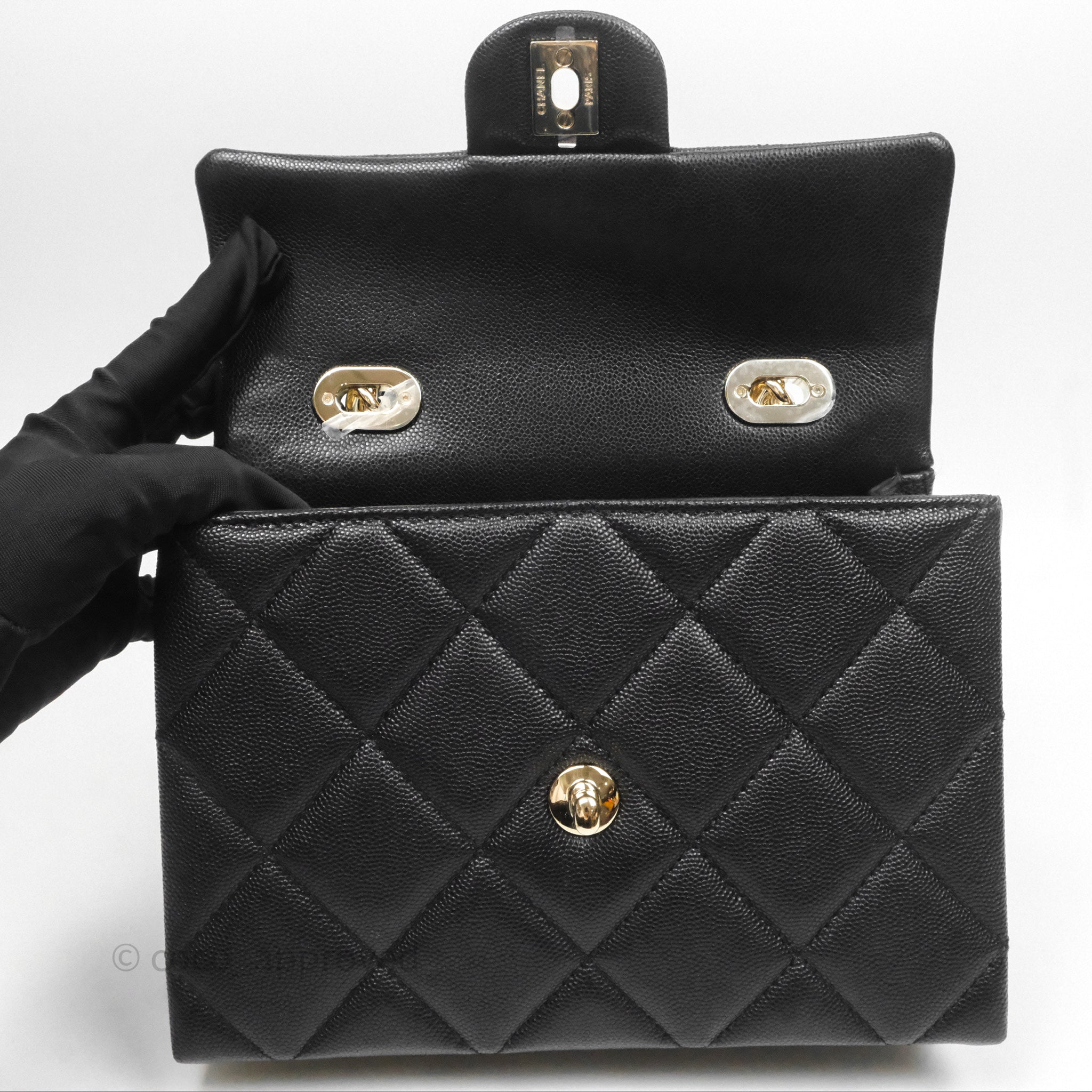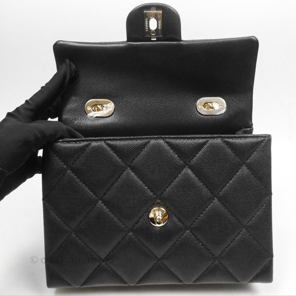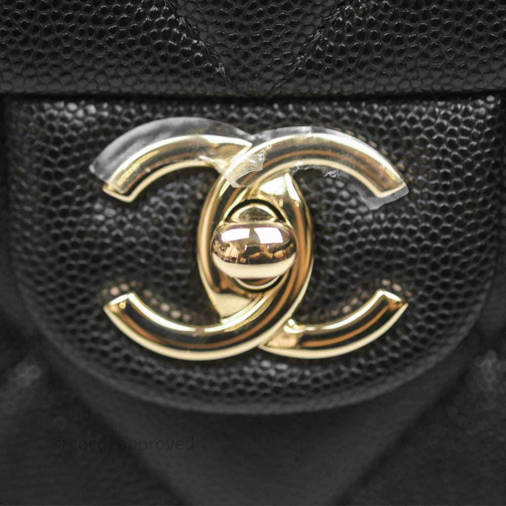Chanel Quilted Small Top Handle Flap Bag Black Caviar Gold Hardware