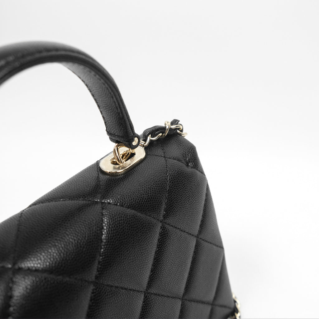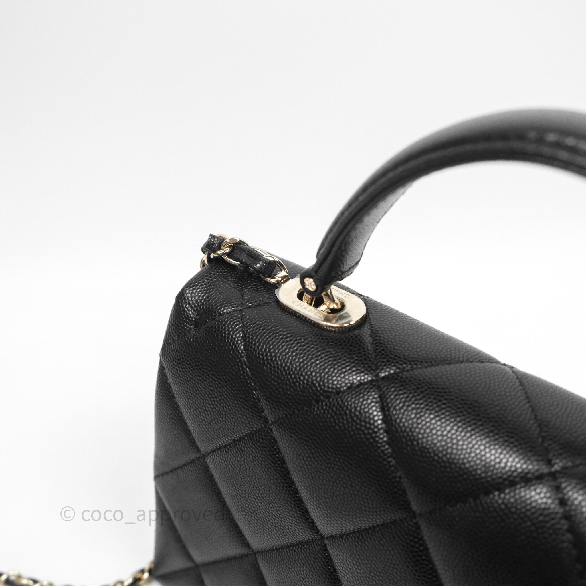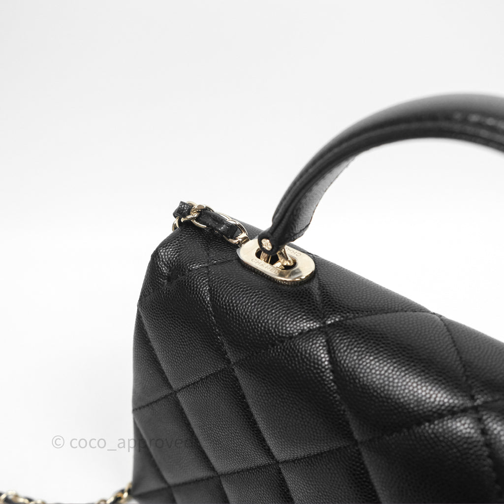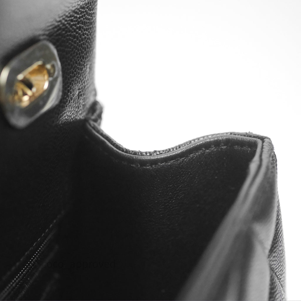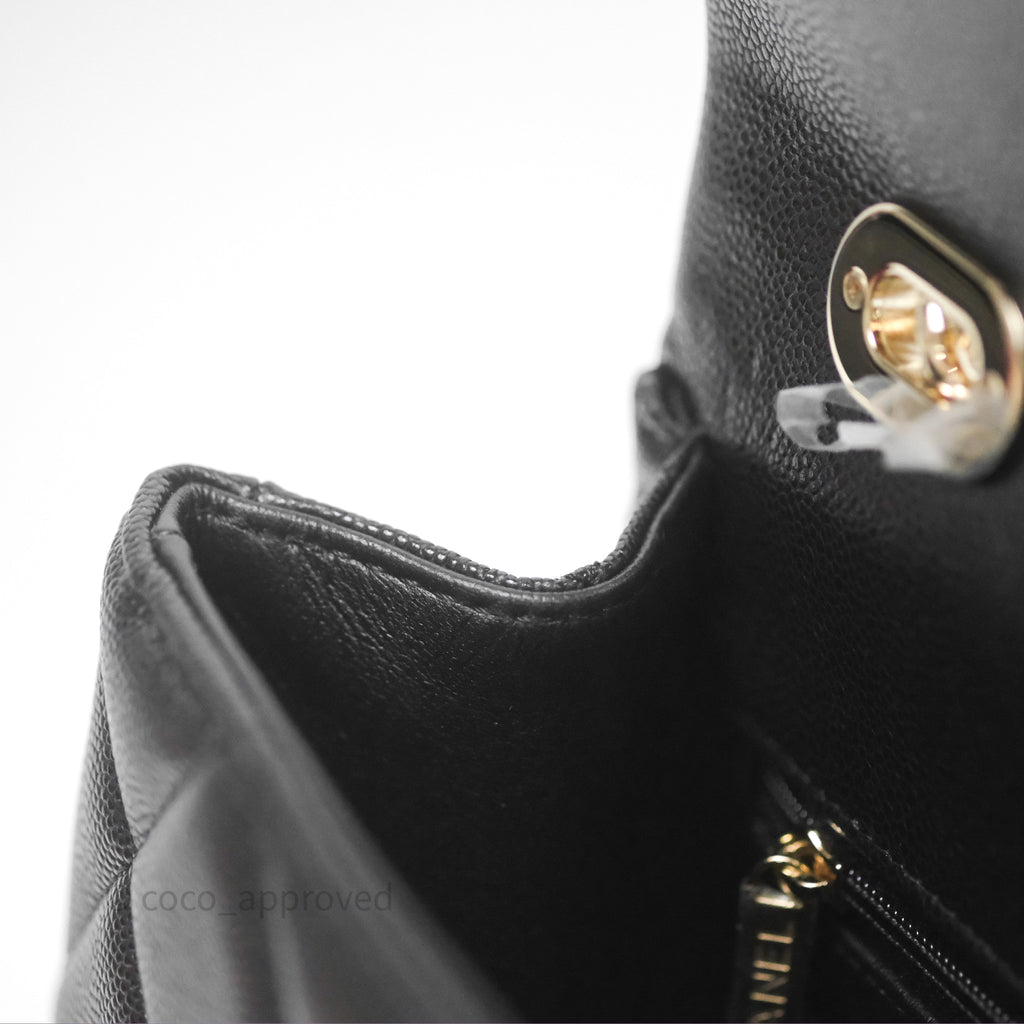 Chanel Quilted Small Top Handle Flap Bag Black Caviar Gold Hardware