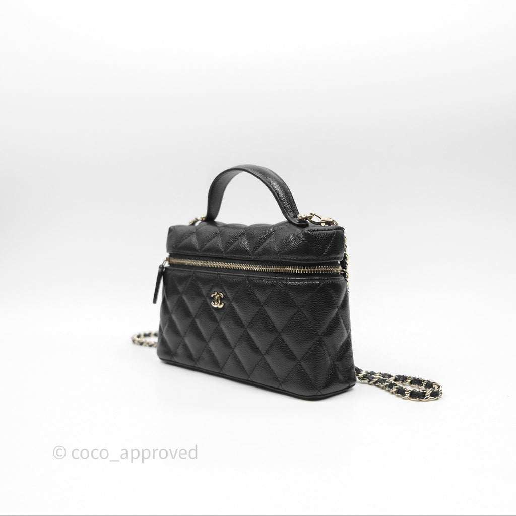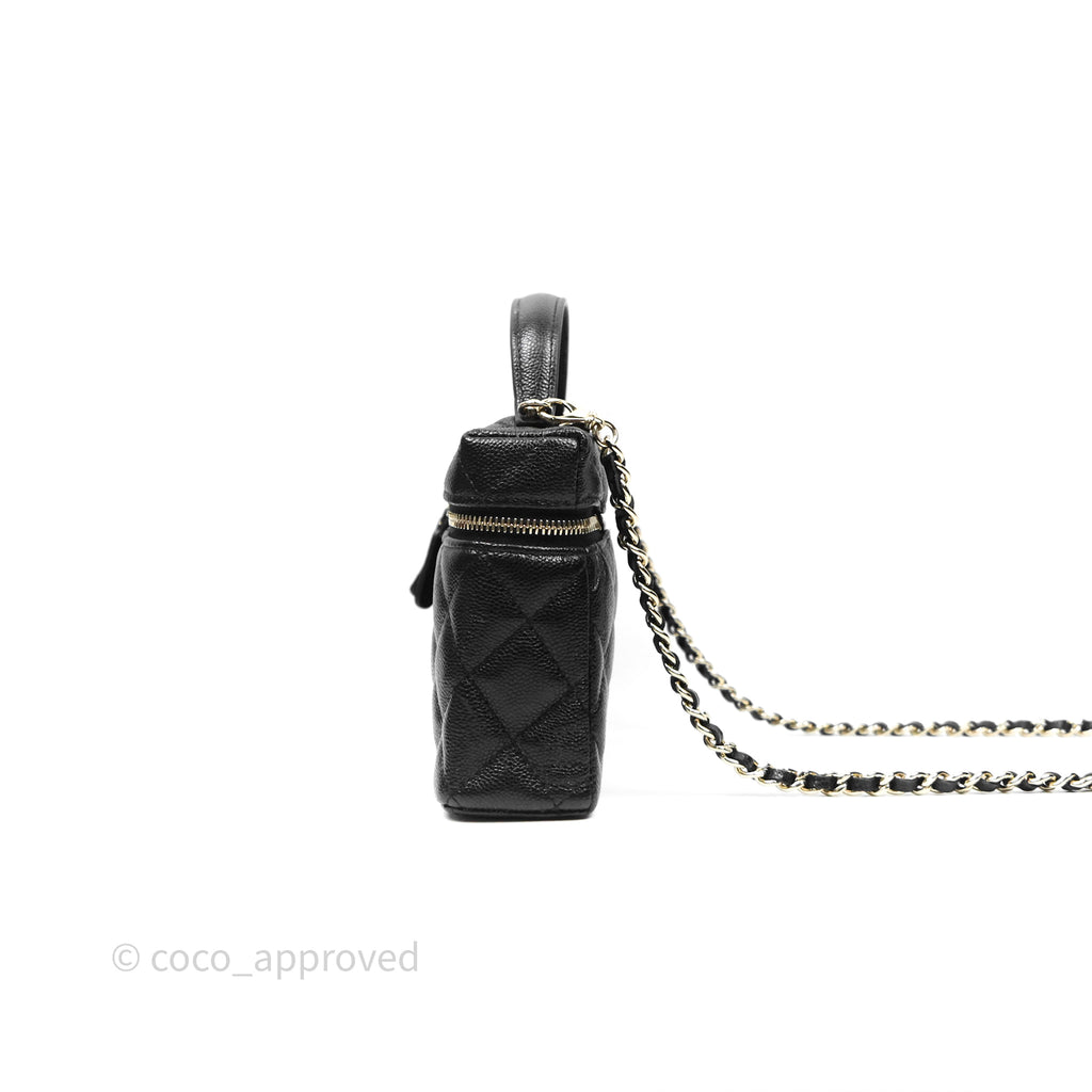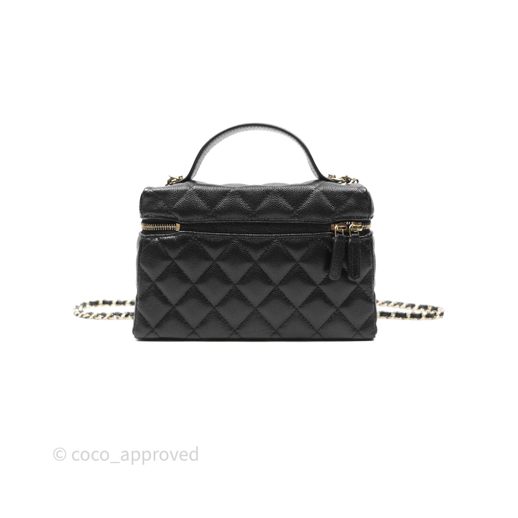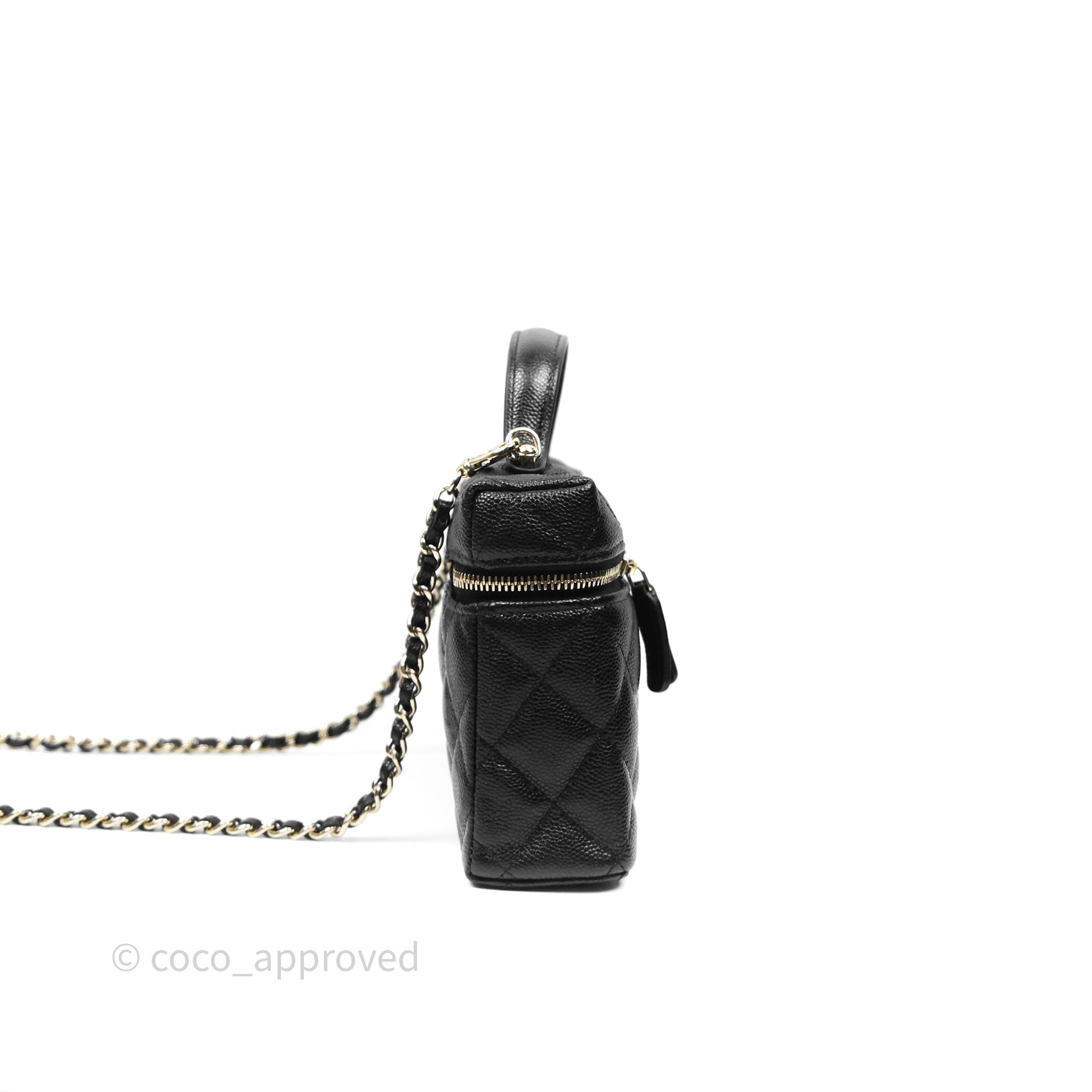 Chanel Quilted Top Handle Vanity with Chain Black Caviar Gold Hardware