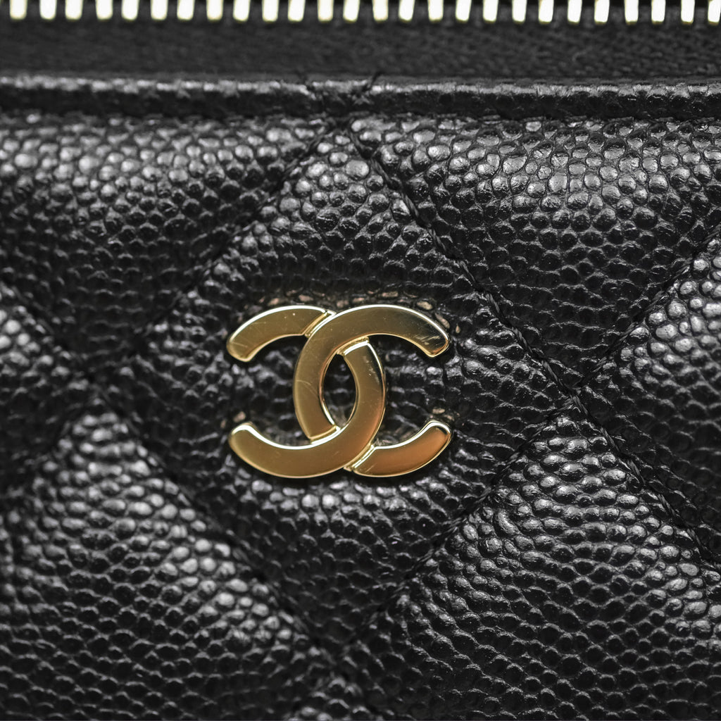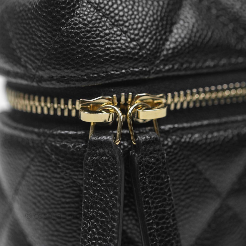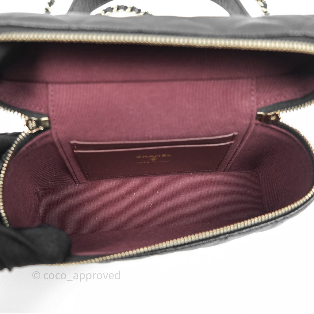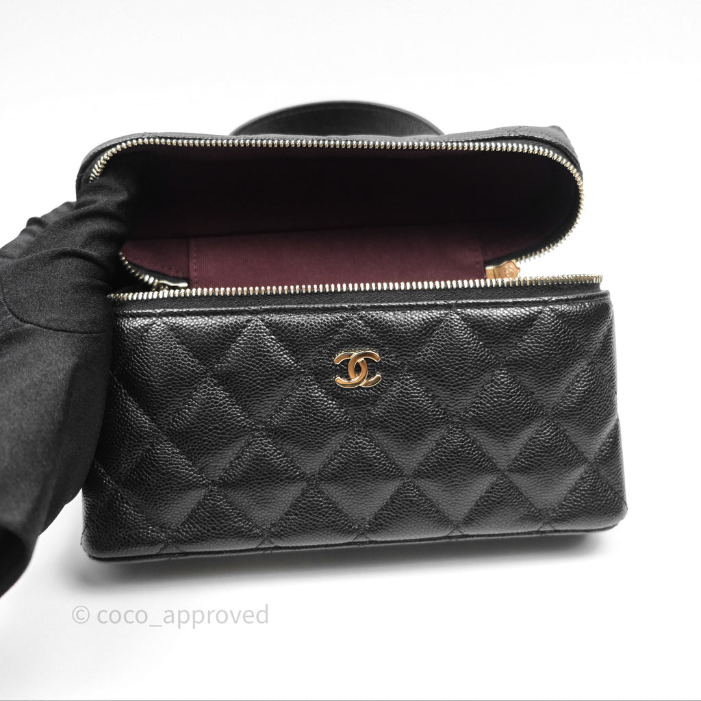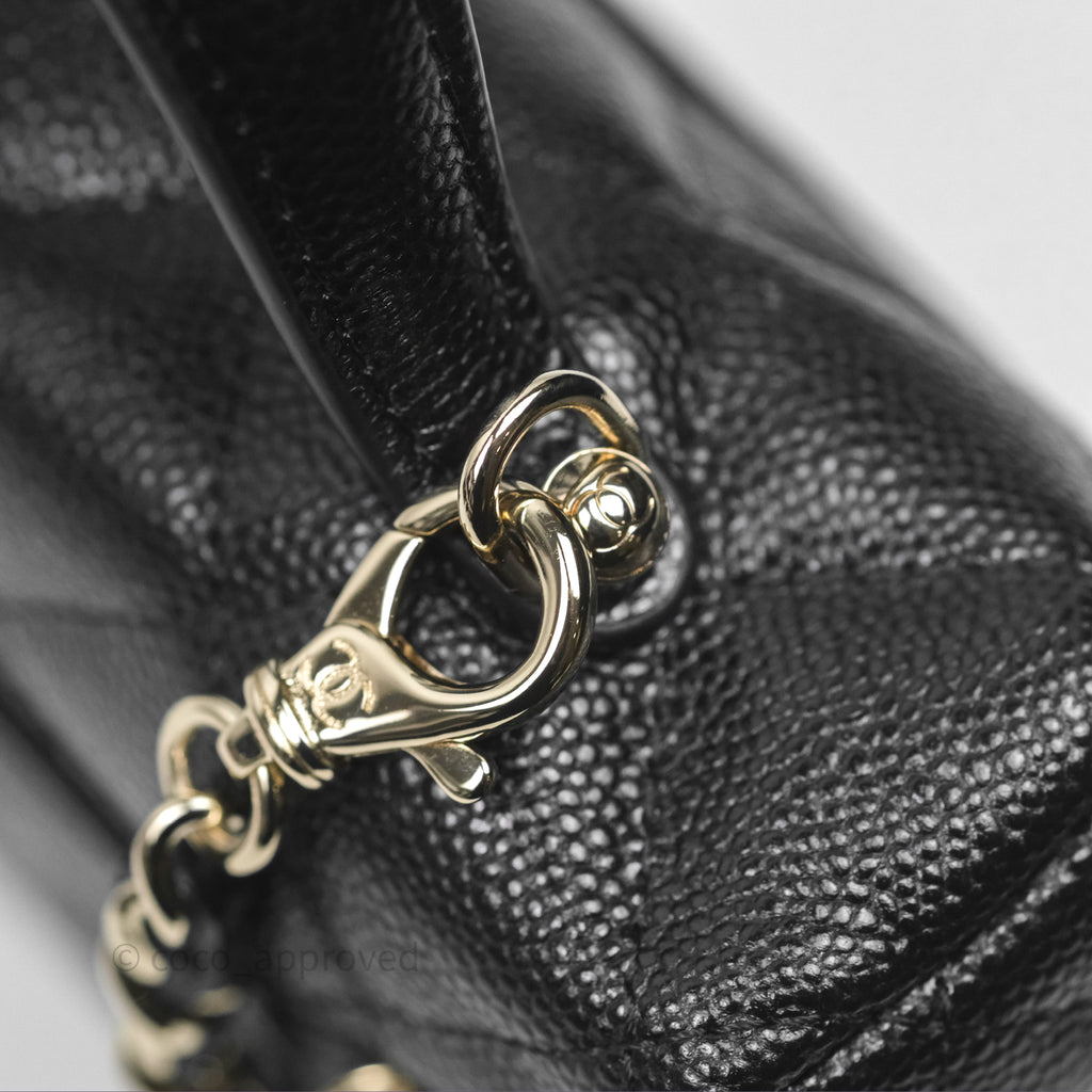 Chanel Quilted Top Handle Vanity with Chain Black Caviar Gold Hardware