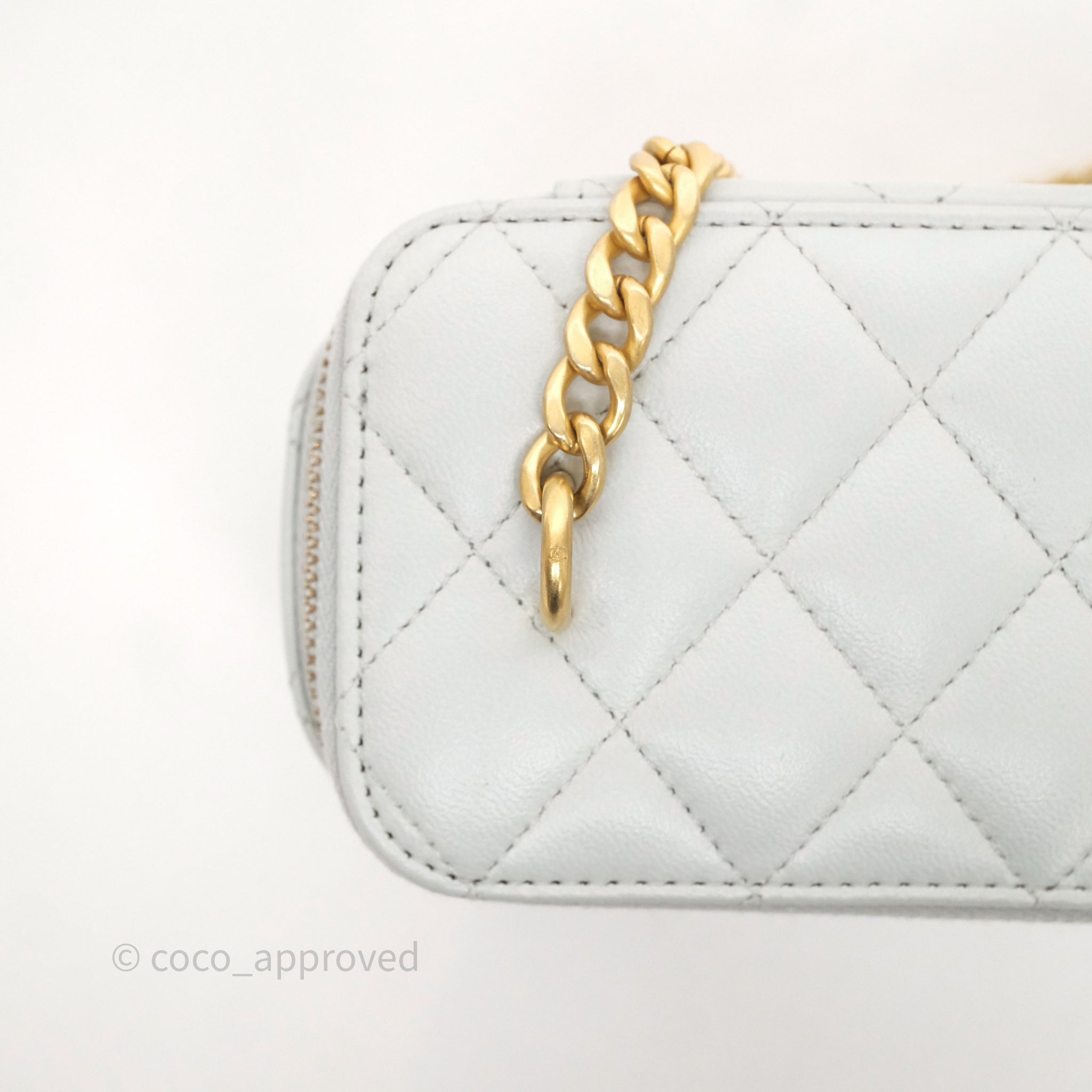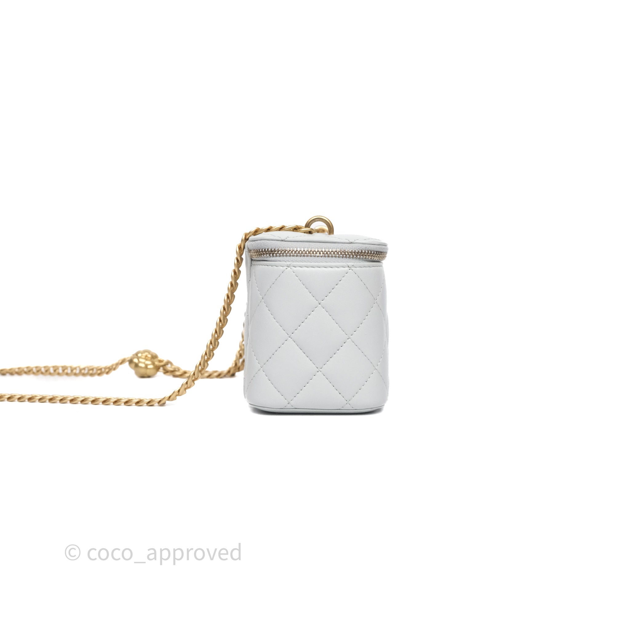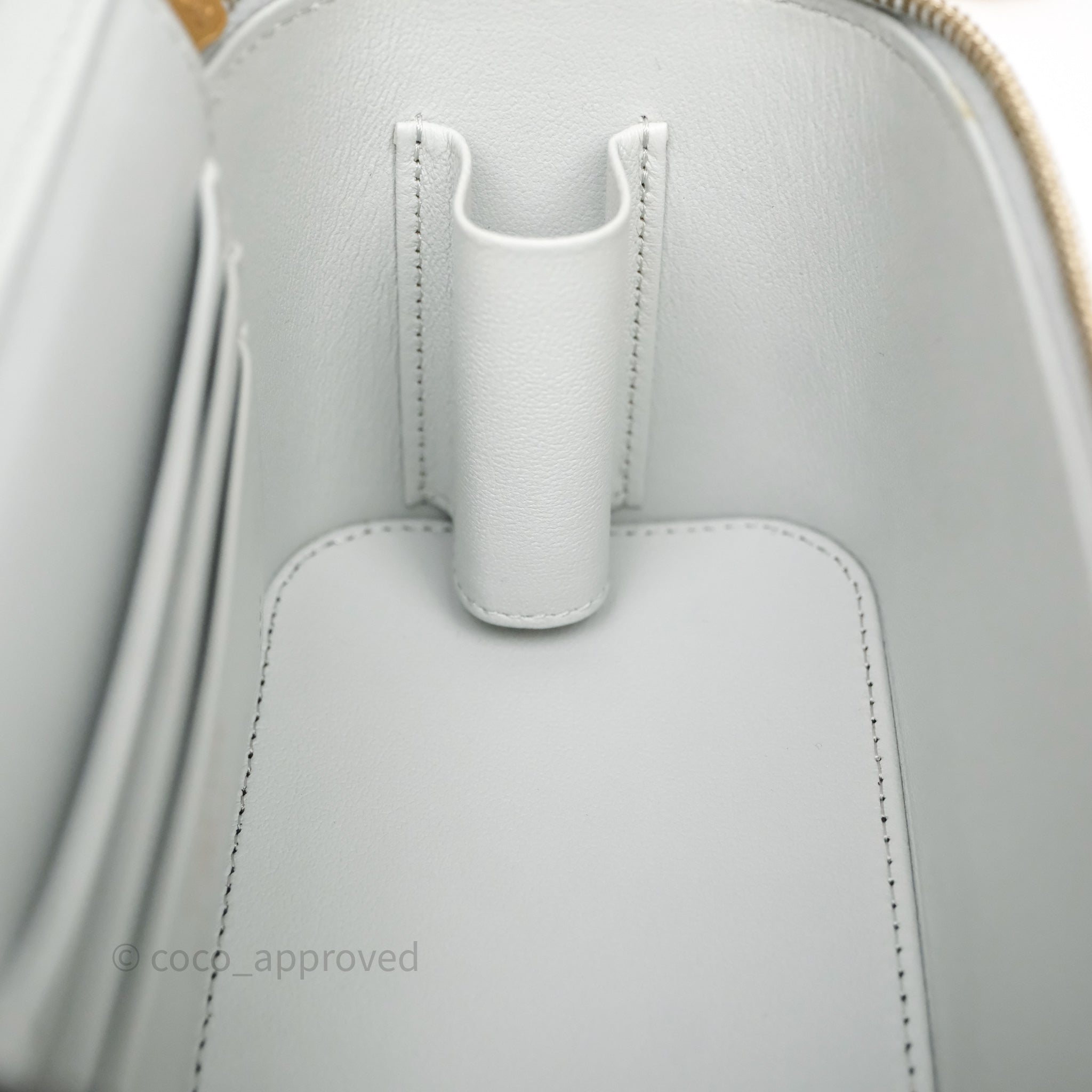 Chanel Quilted Vanity Rectangular with Camellia Adjustable Chain Blue Grey Lambskin Aged Gold Hardware