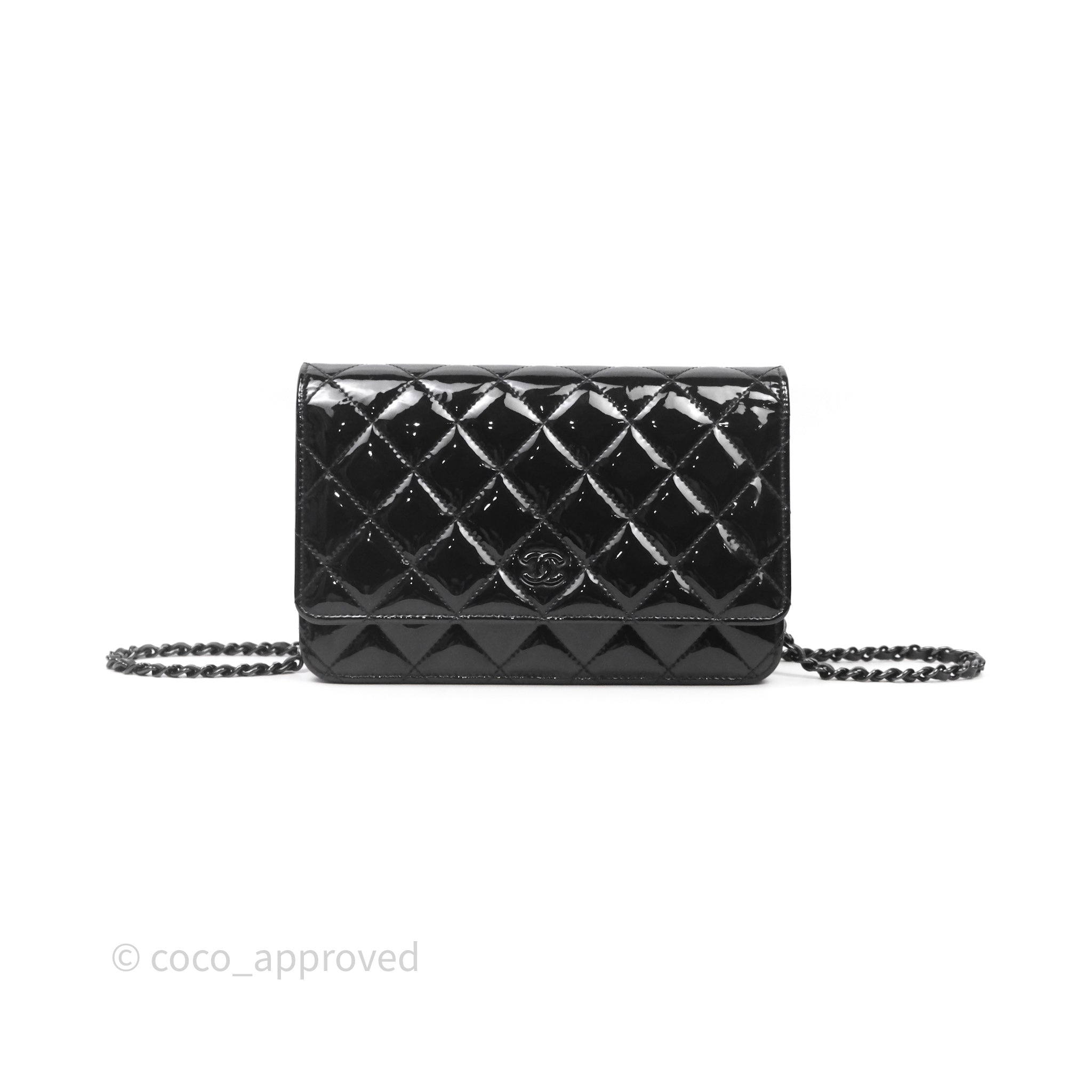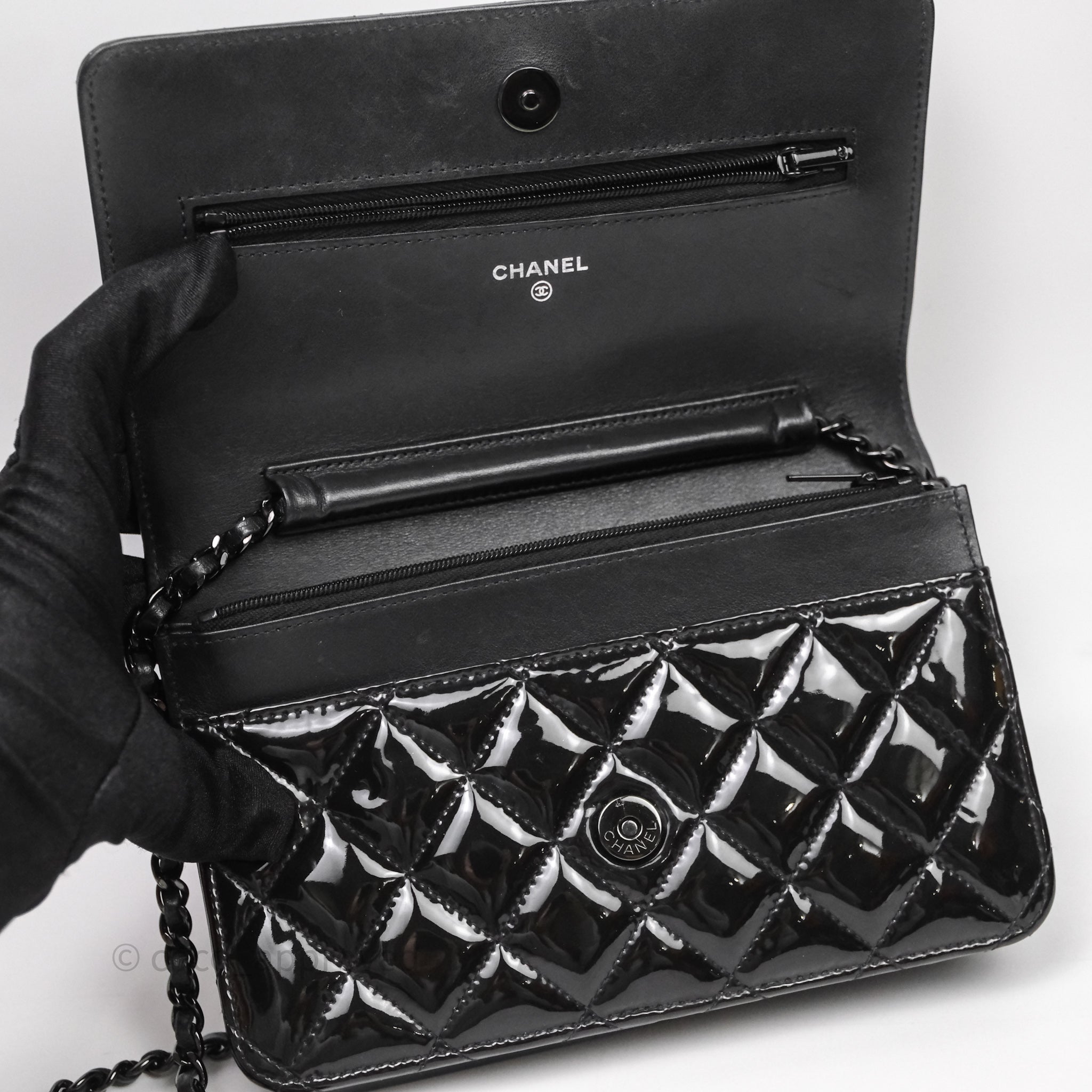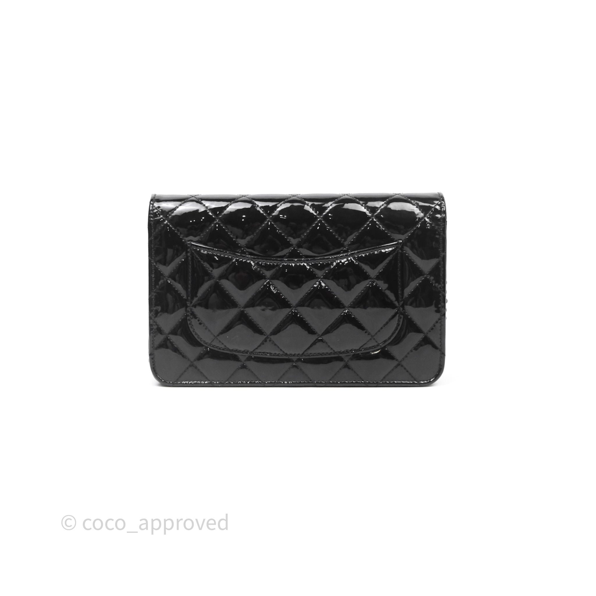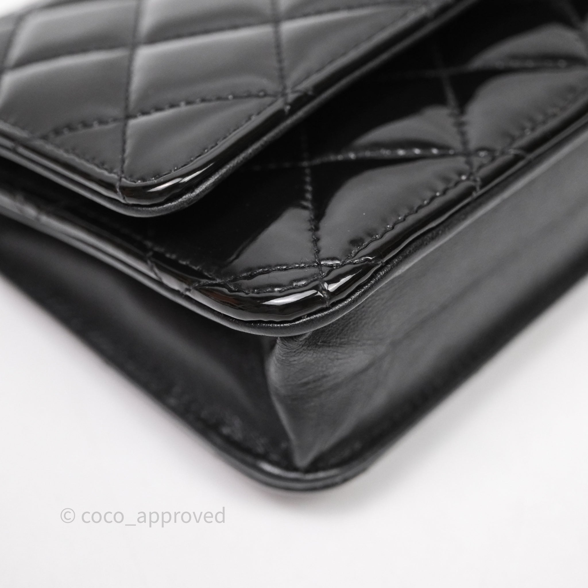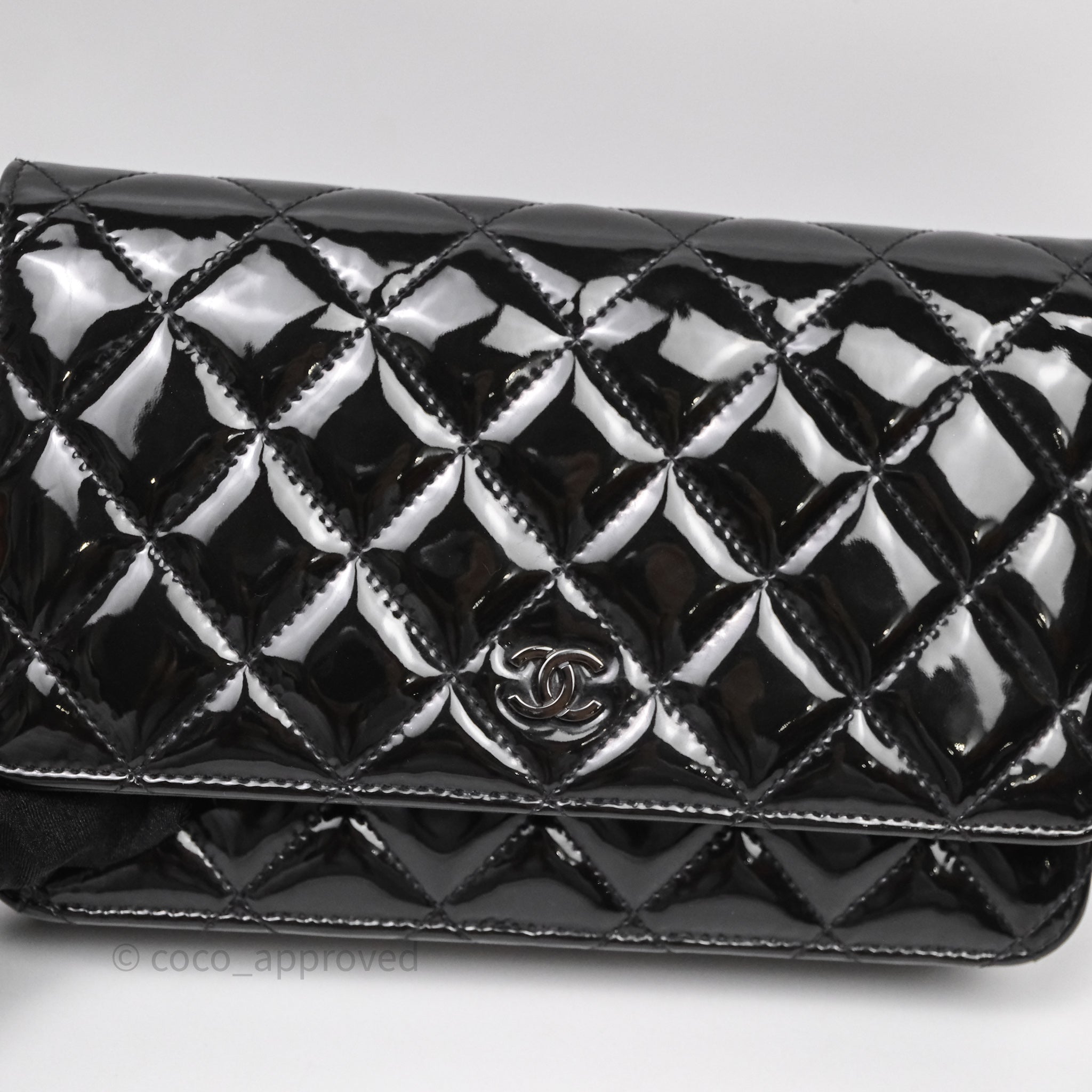 Chanel Quilted Wallet on Chain WOC Patent Leather So Black