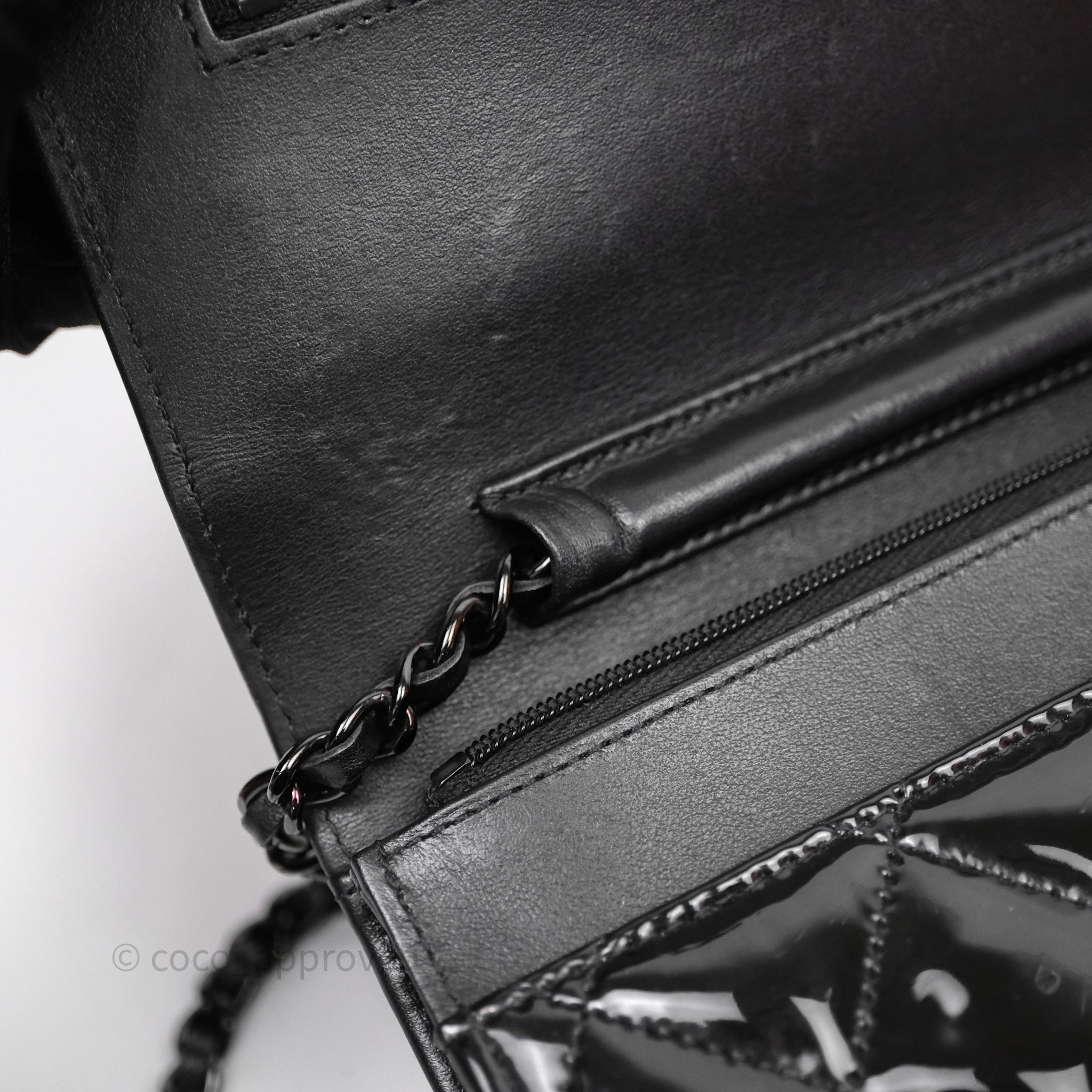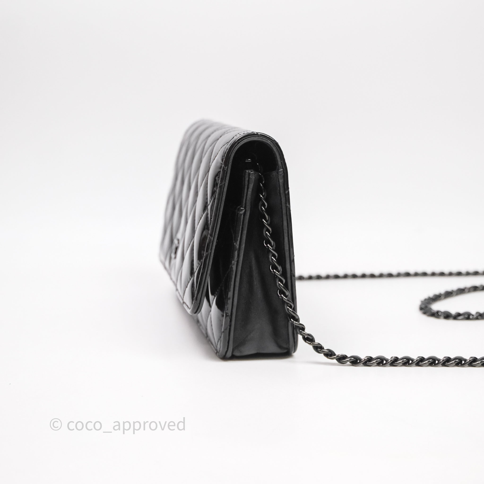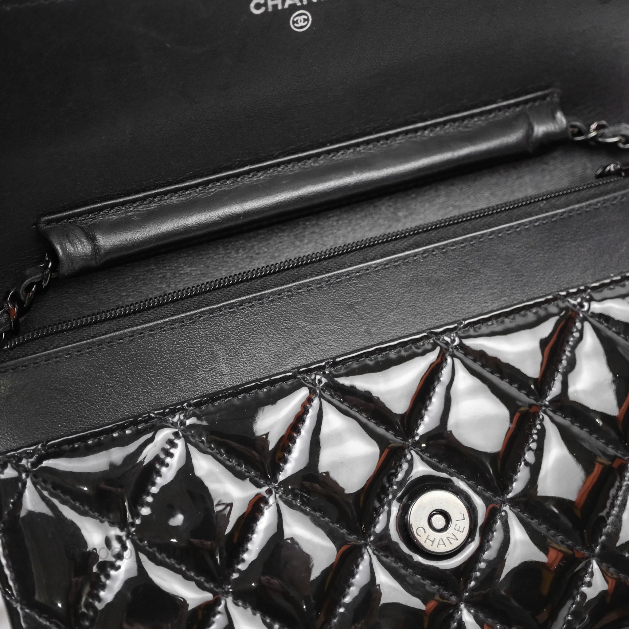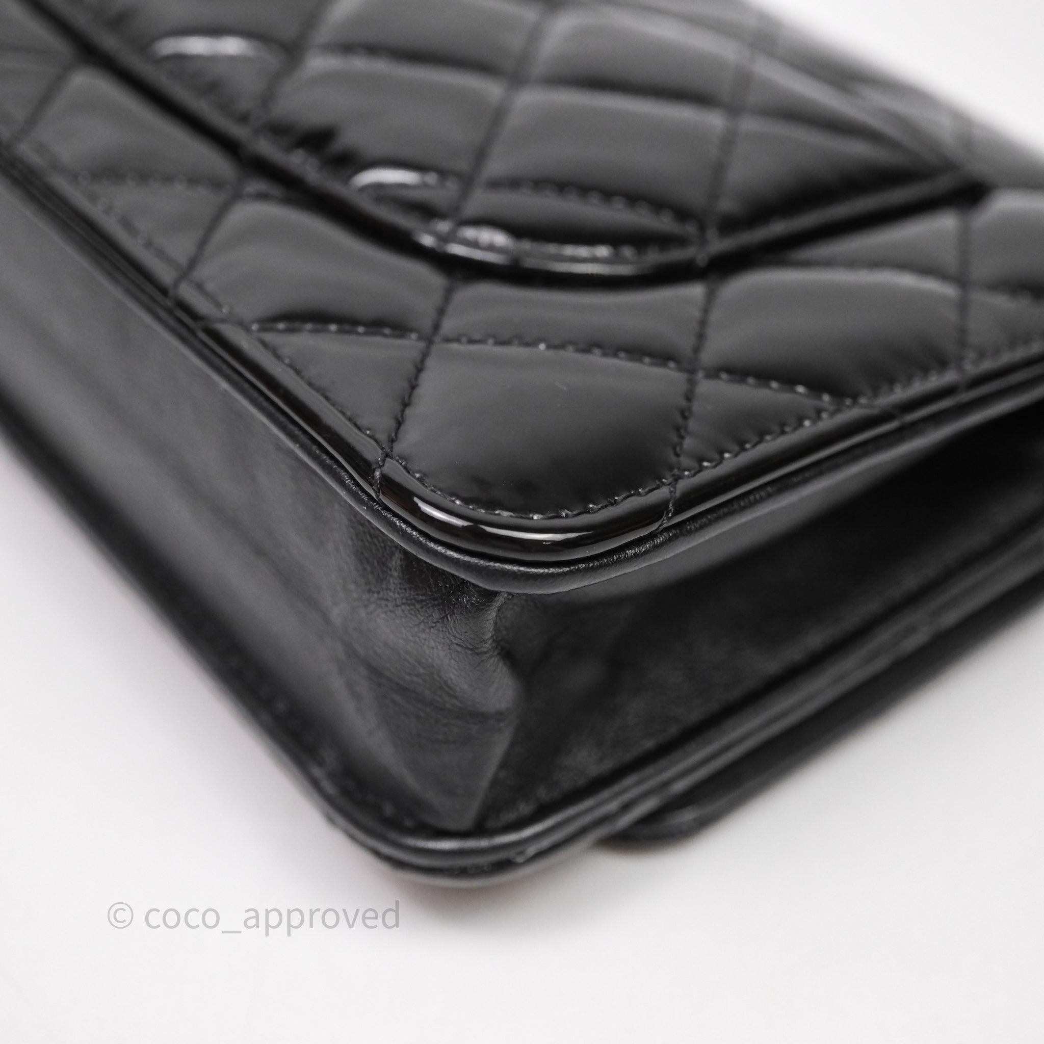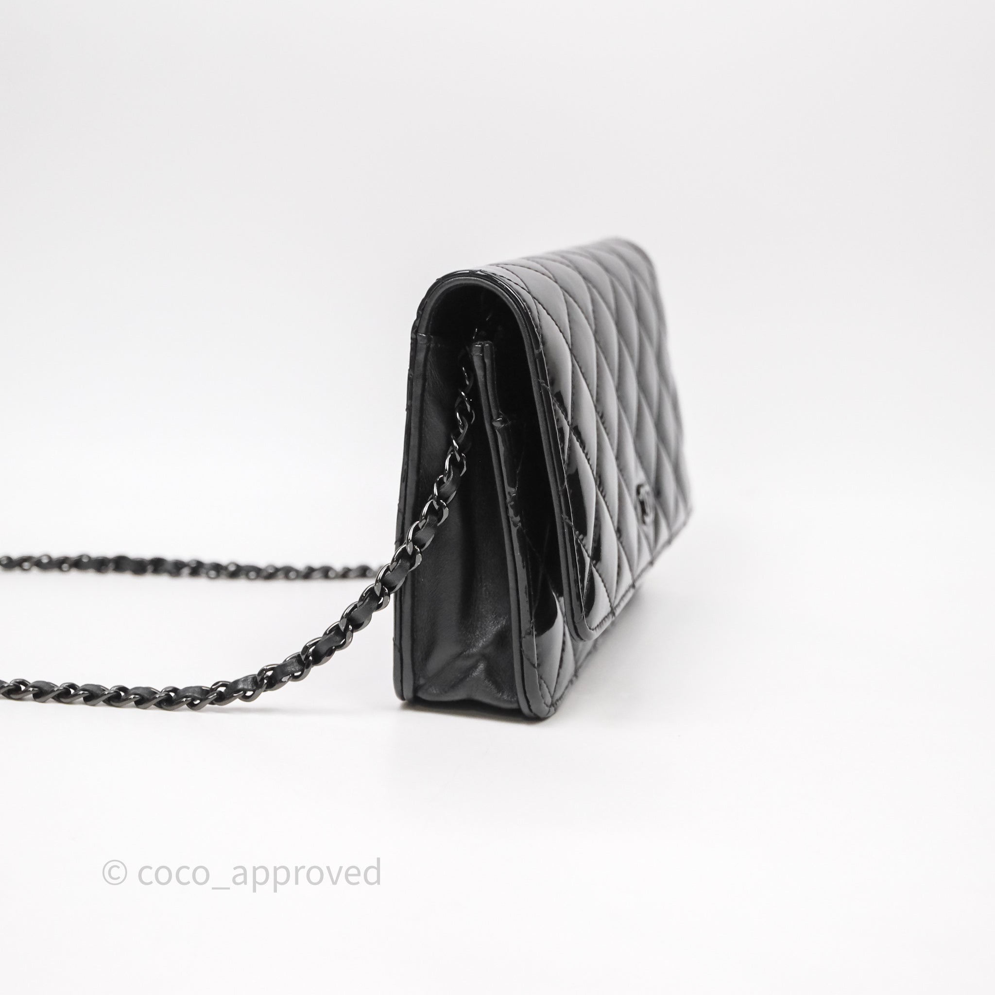 Chanel Quilted Wallet on Chain WOC Patent Leather So Black