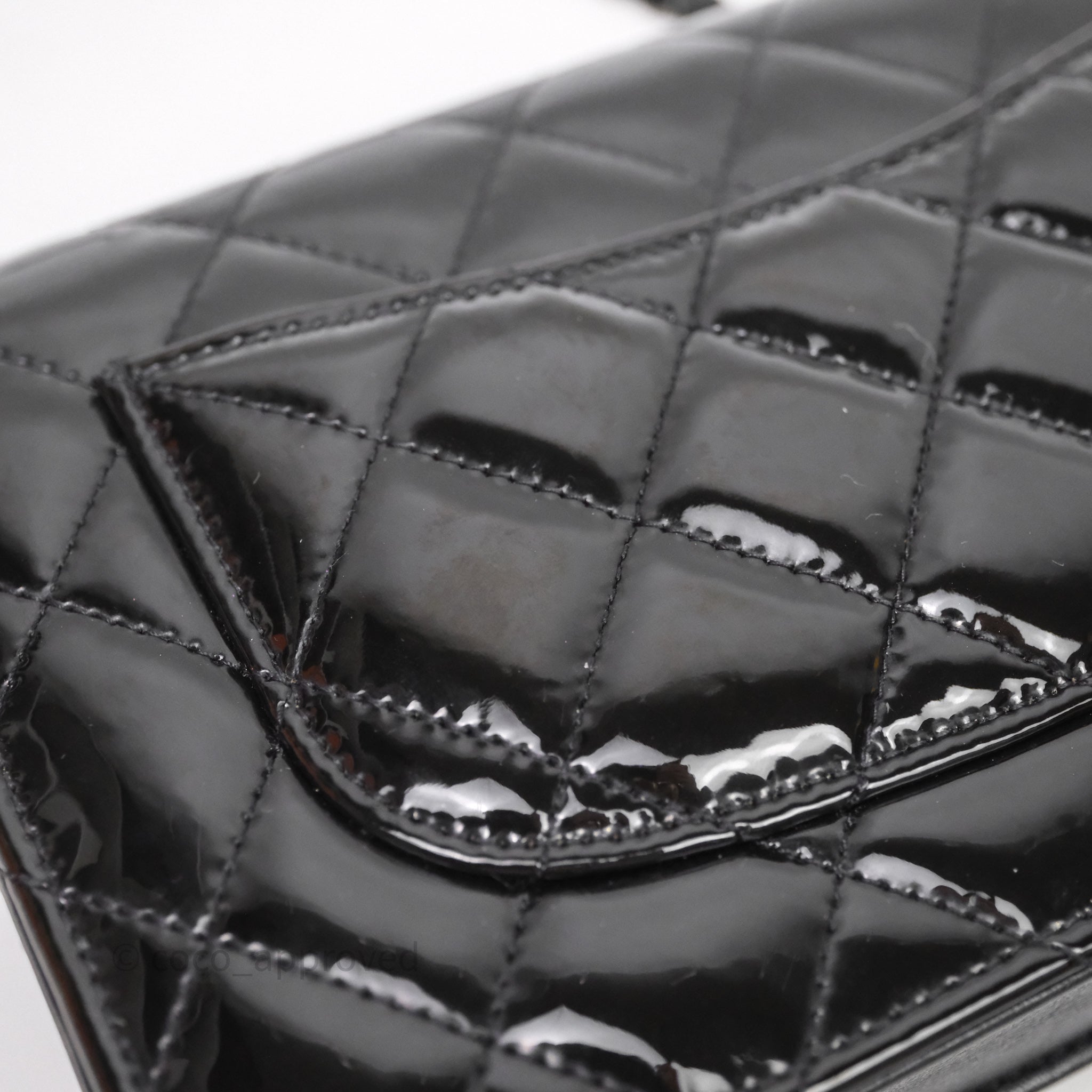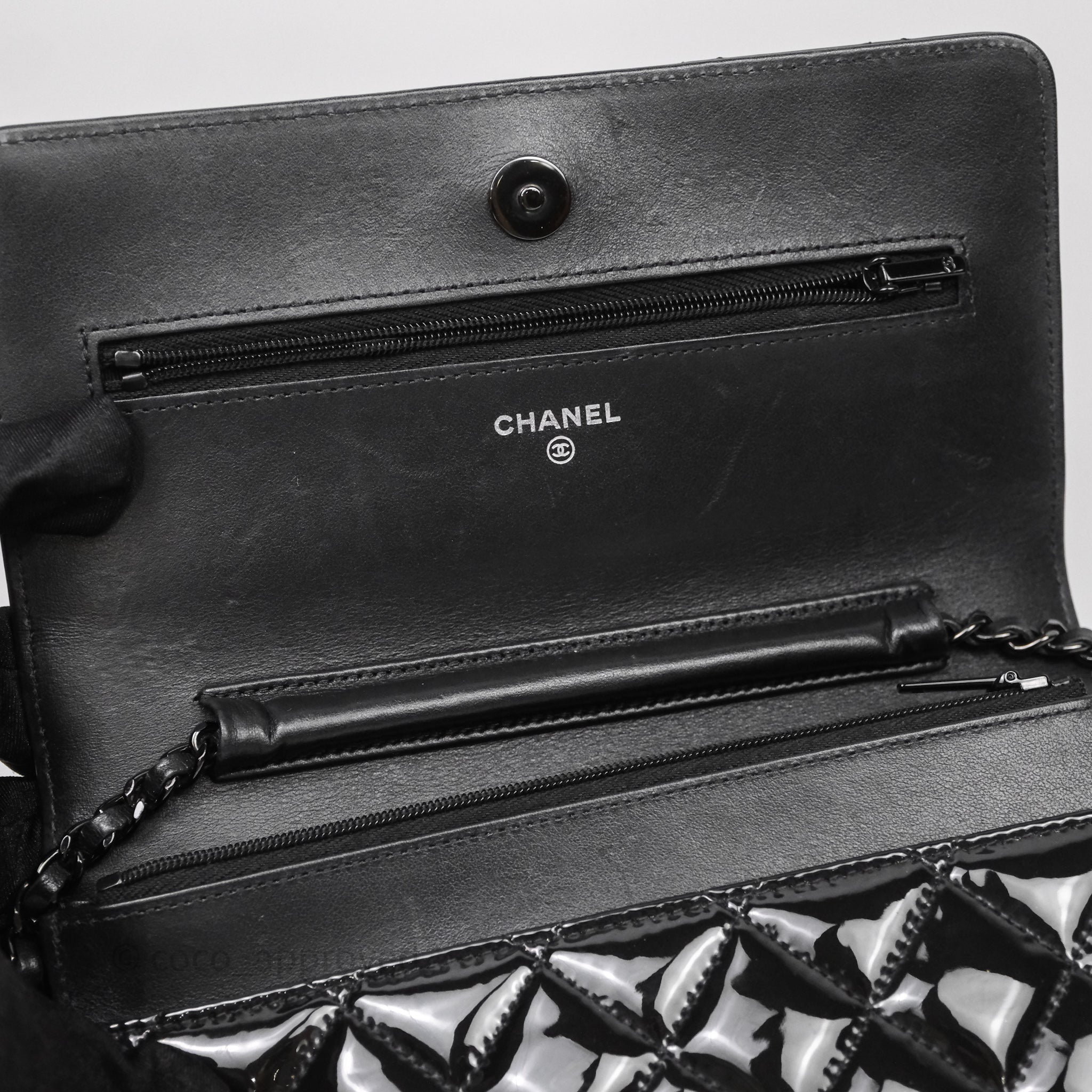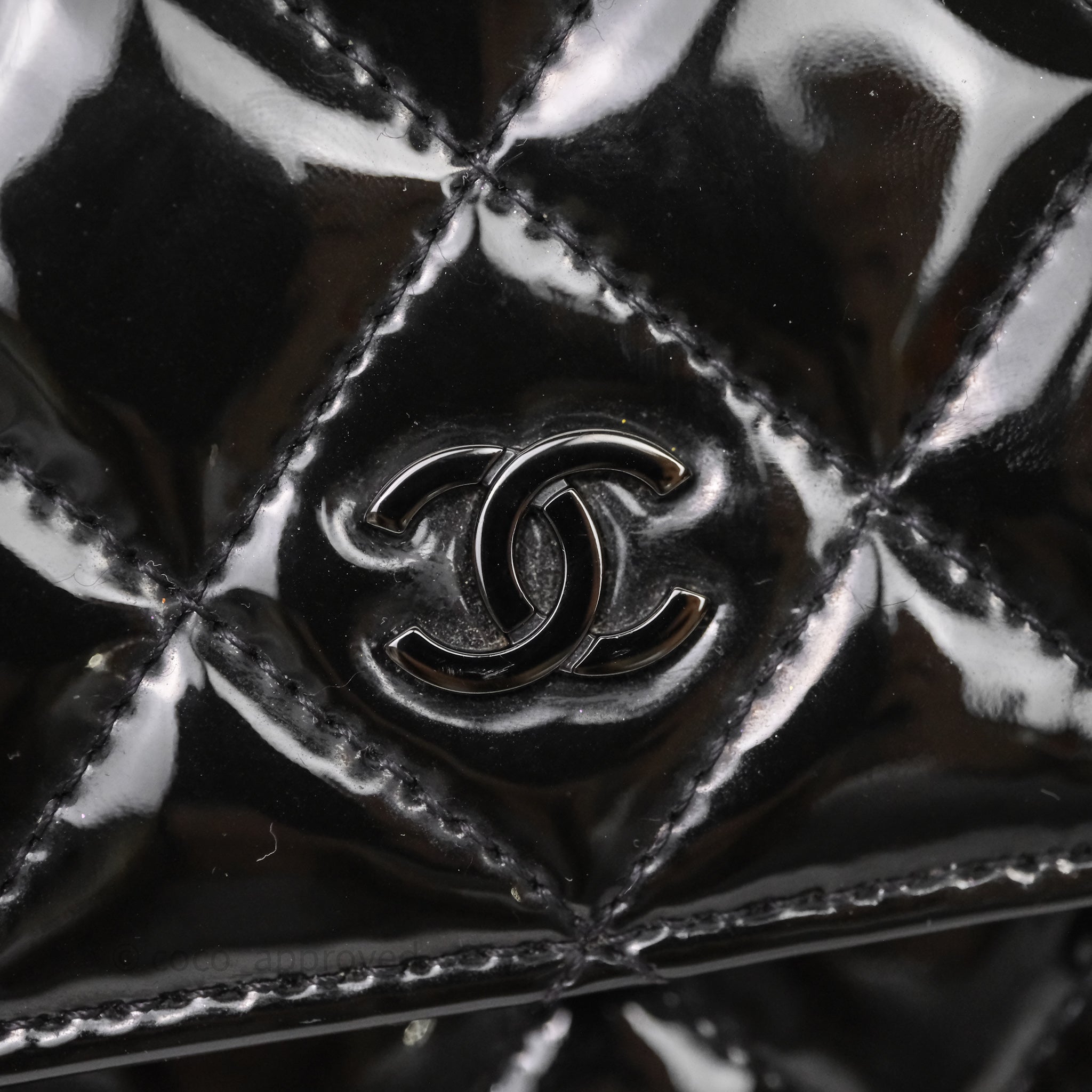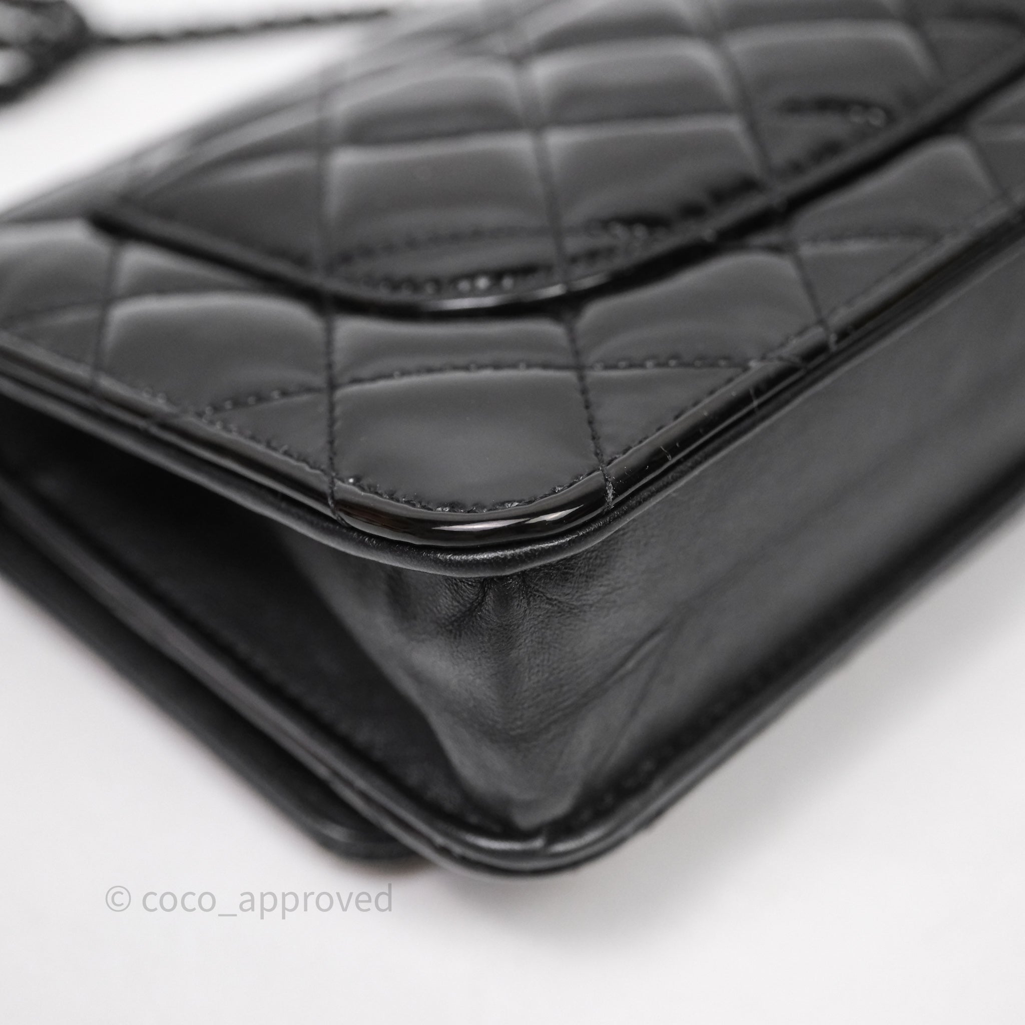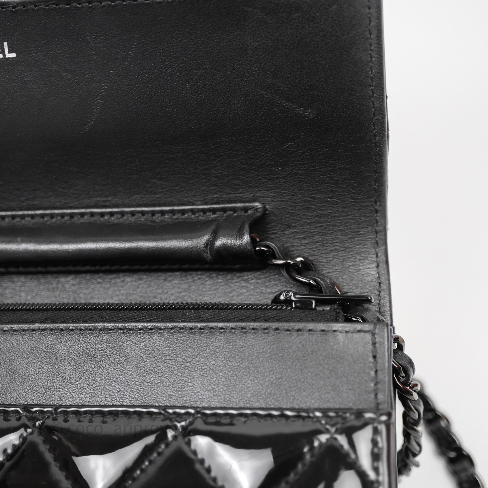 Chanel Quilted Wallet on Chain WOC Patent Leather So Black
