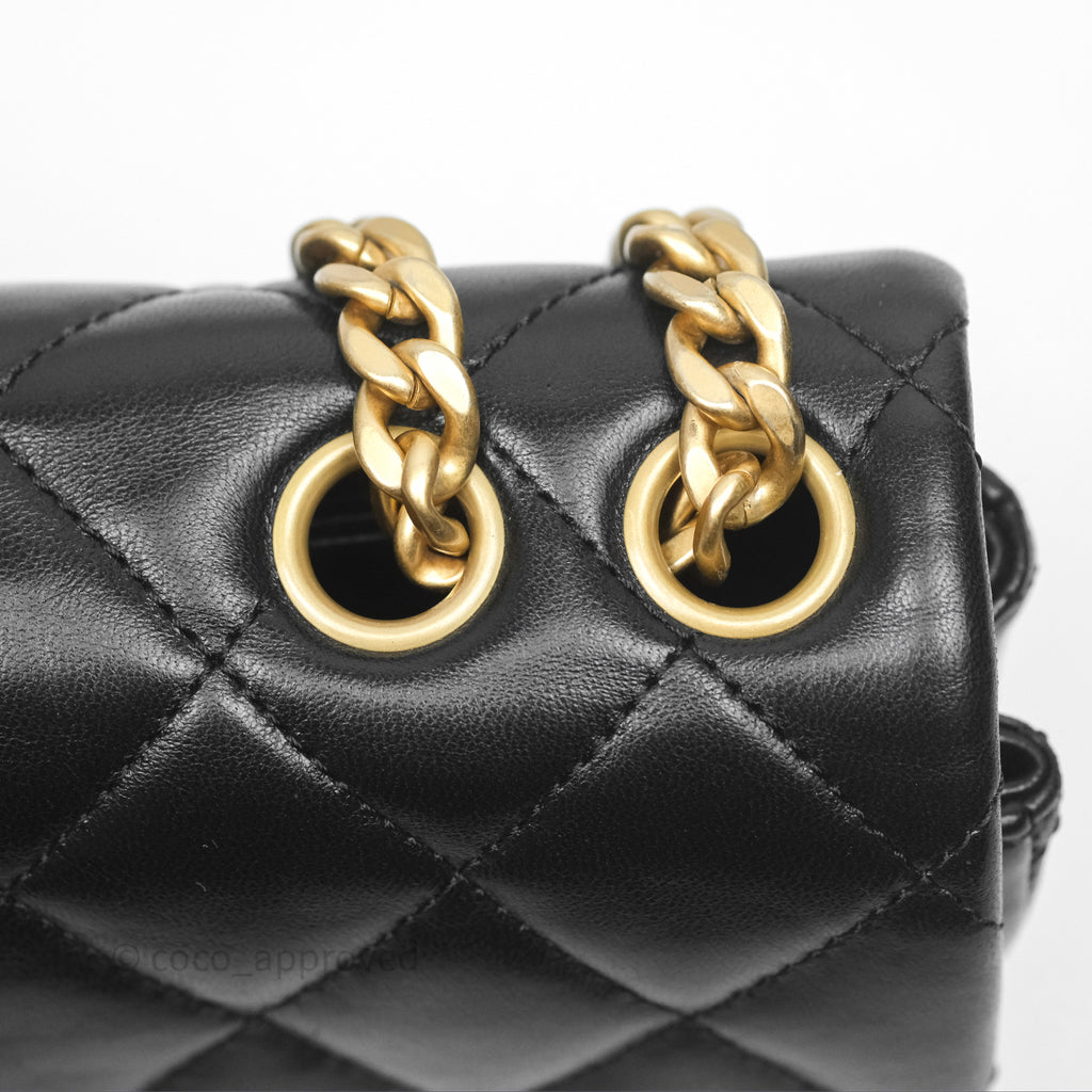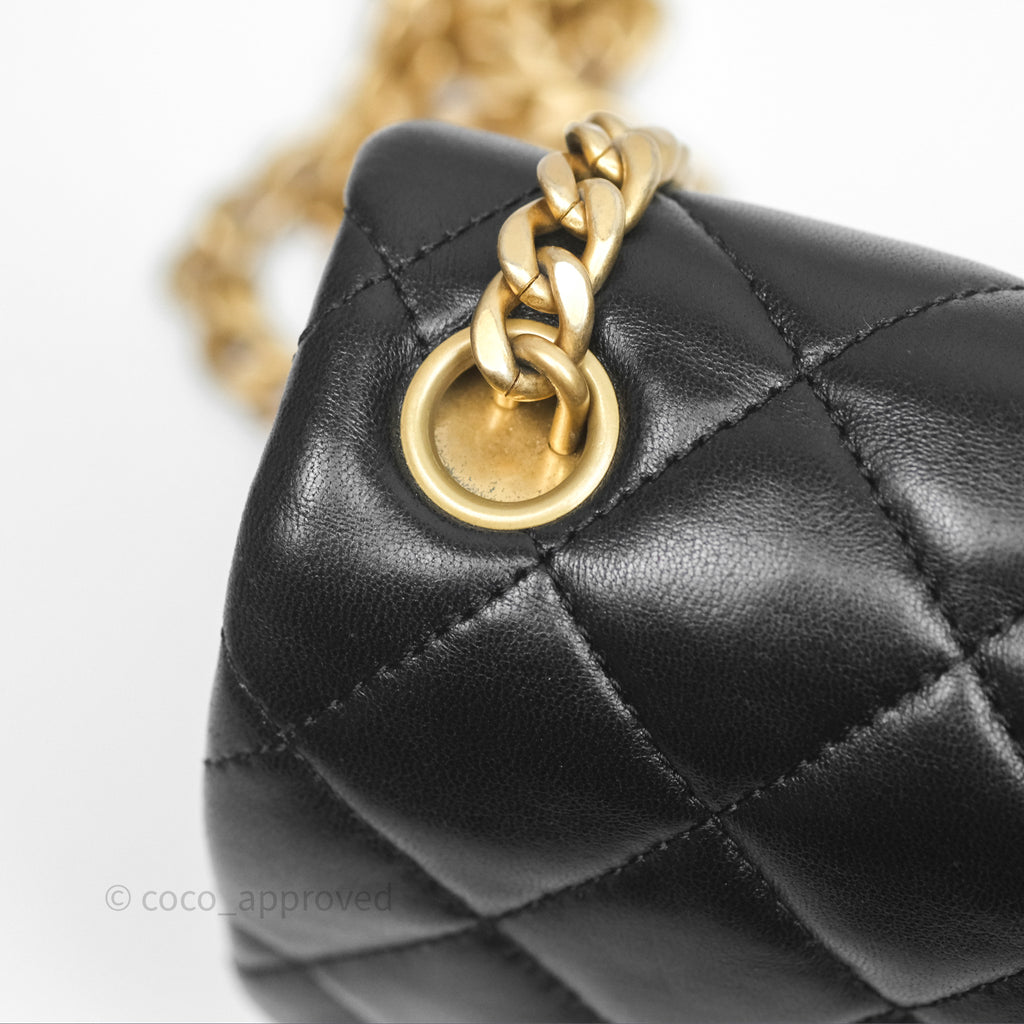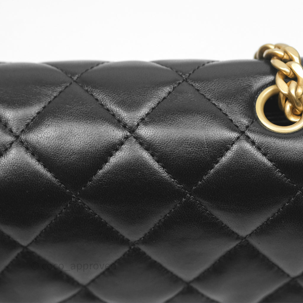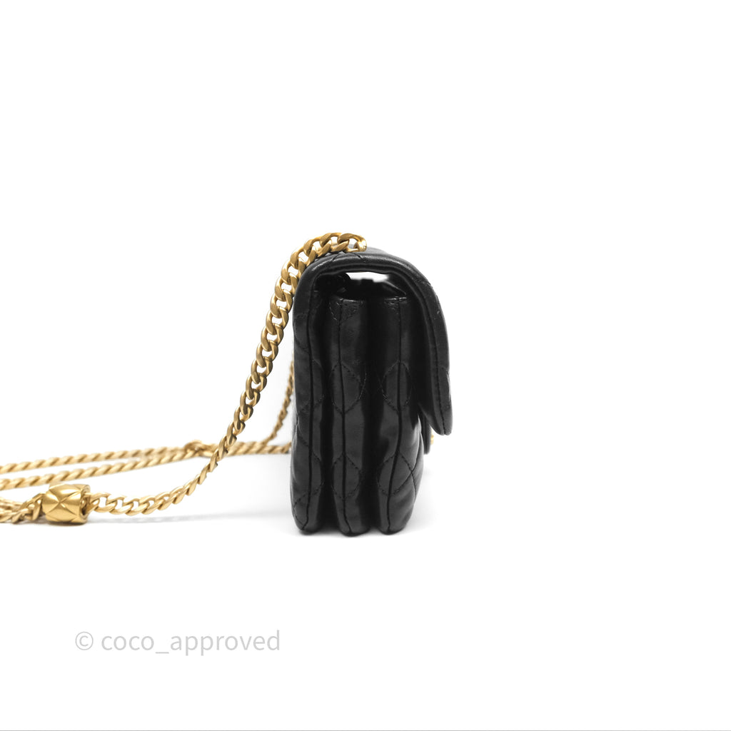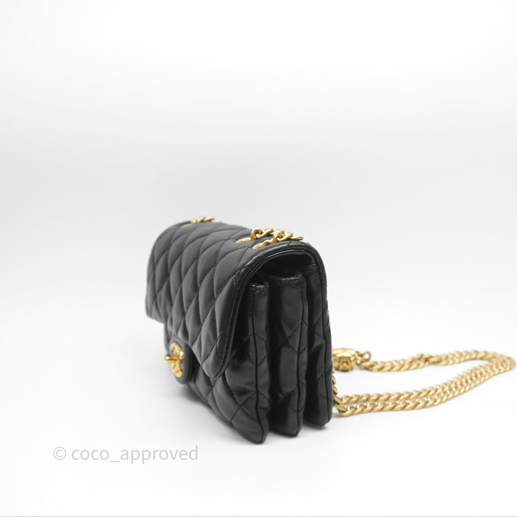 Chanel Small All Slide Adjustable Chain Flap Bag Black Lambskin Aged Gold Hardware 22K