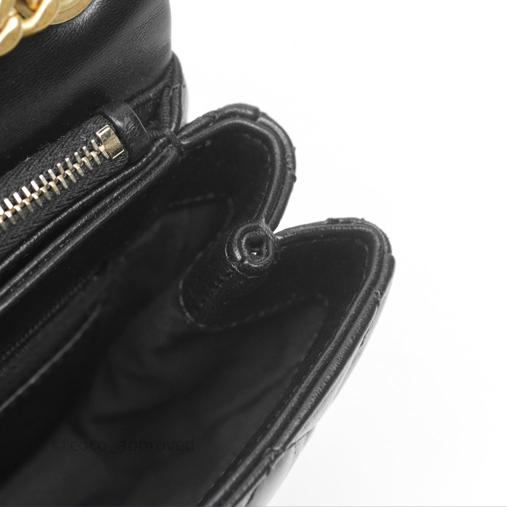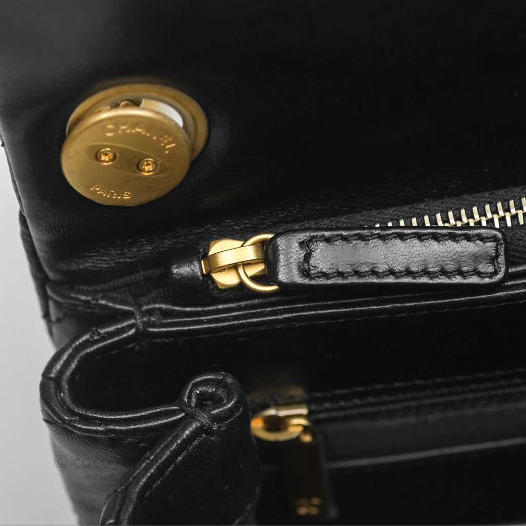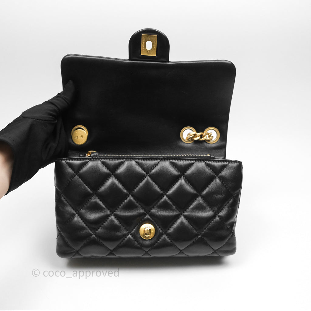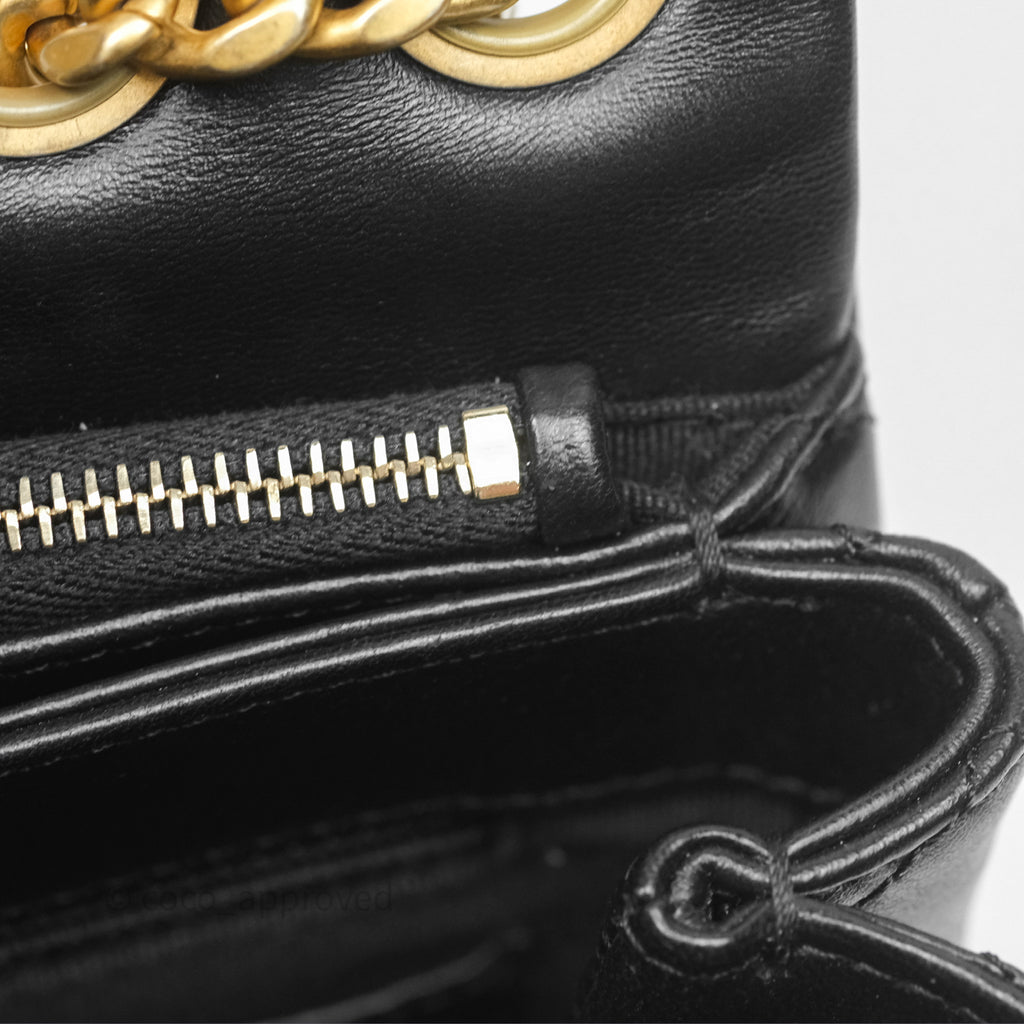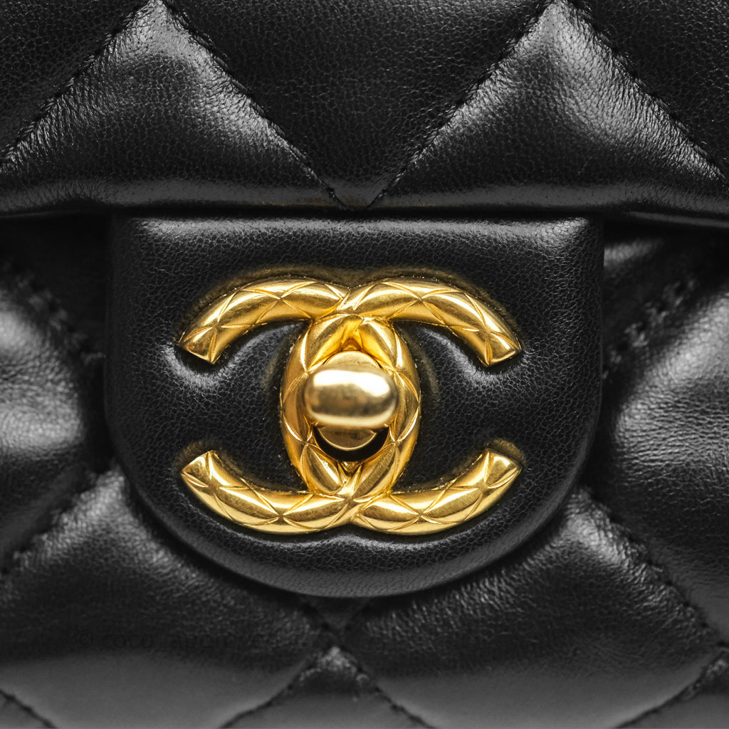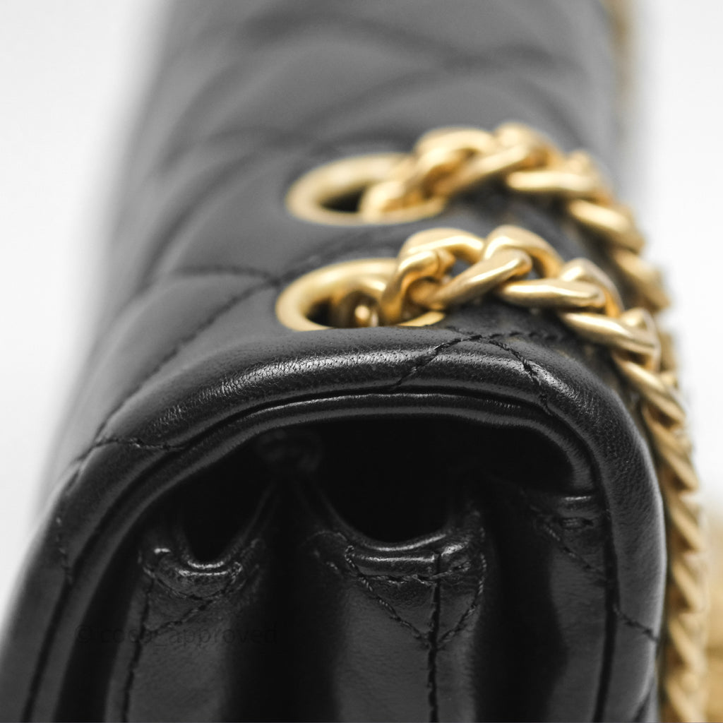 Chanel Small All Slide Adjustable Chain Flap Bag Black Lambskin Aged Gold Hardware 22K