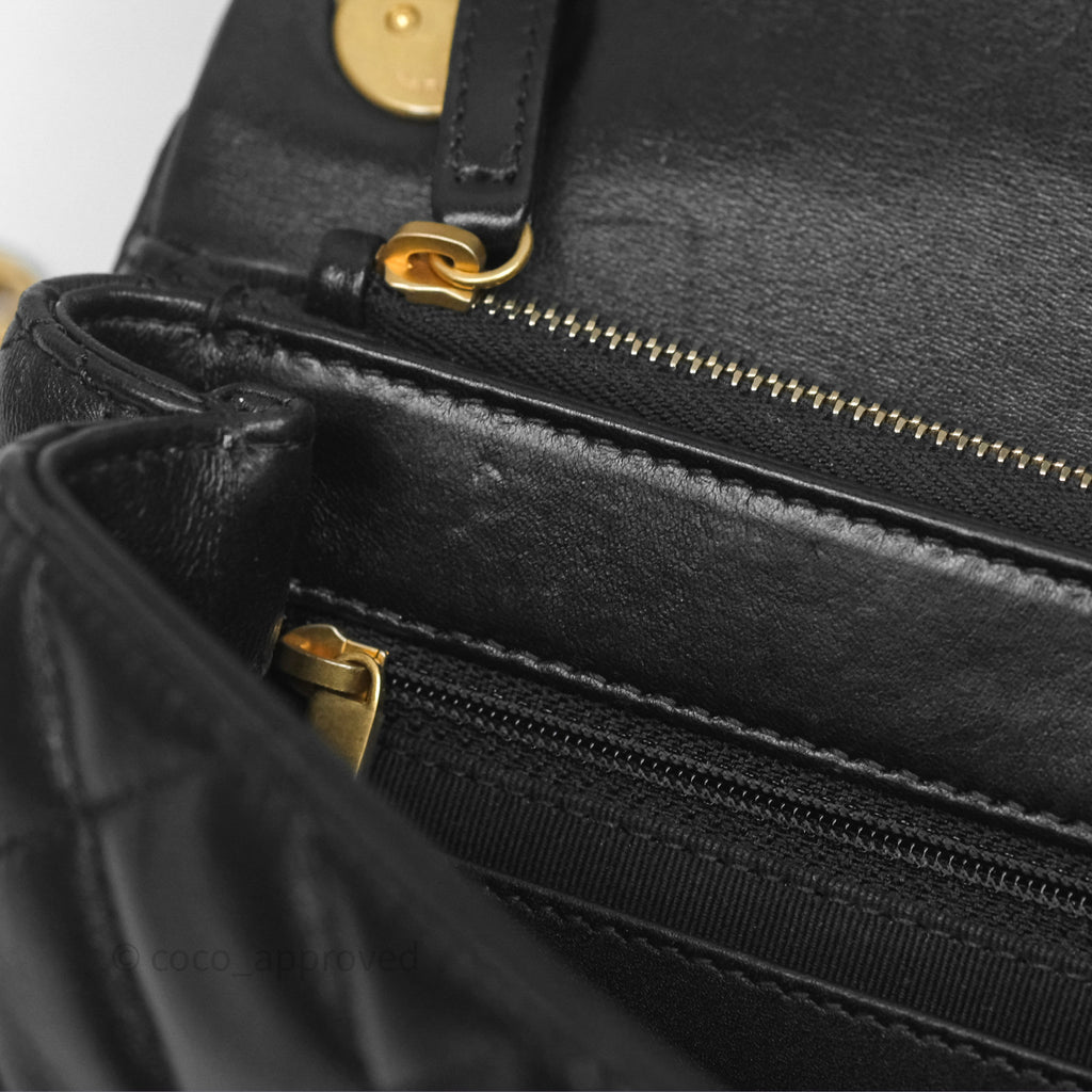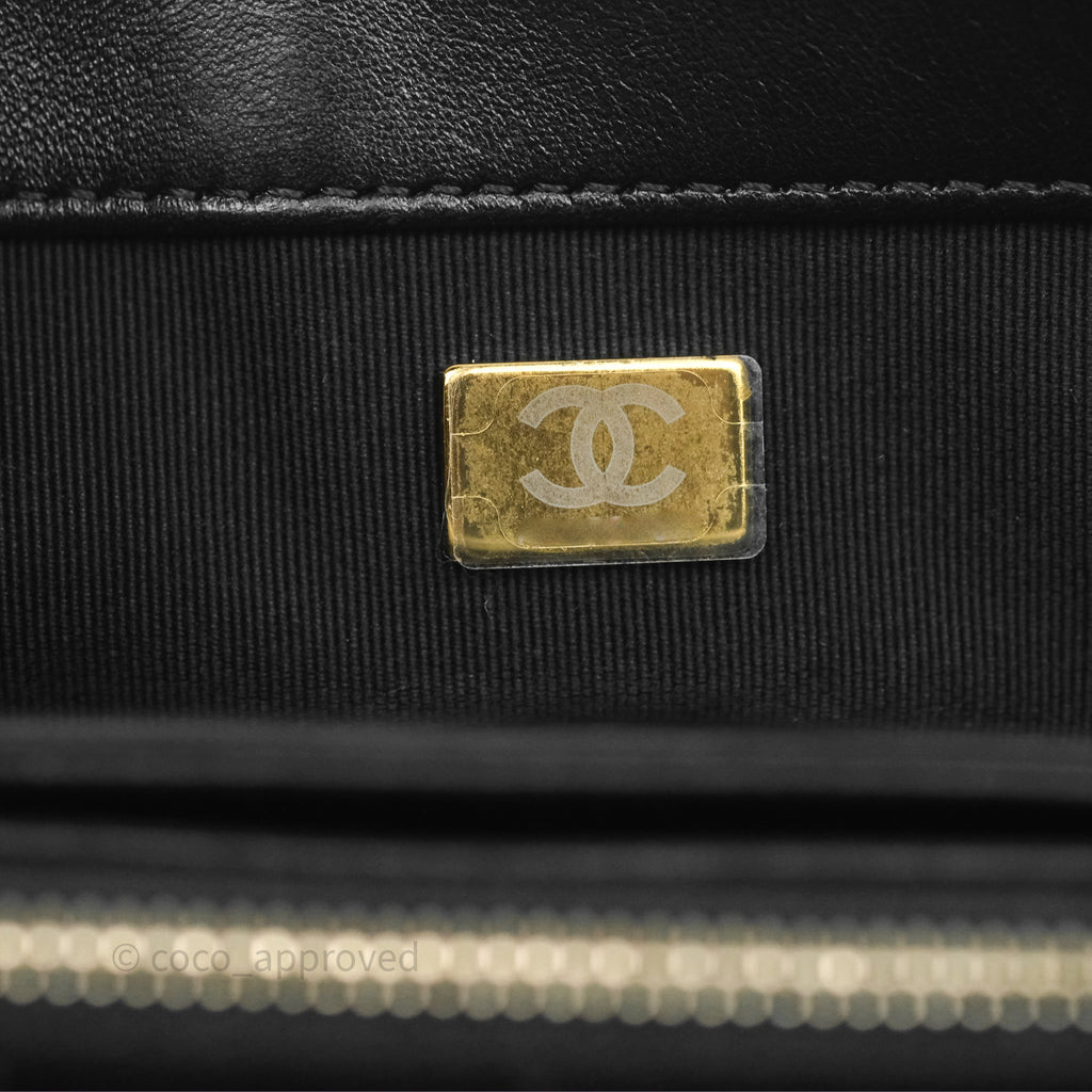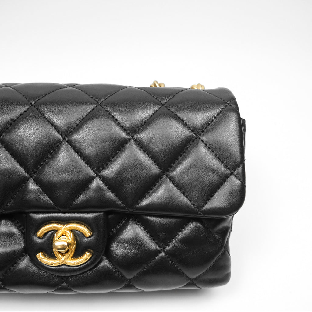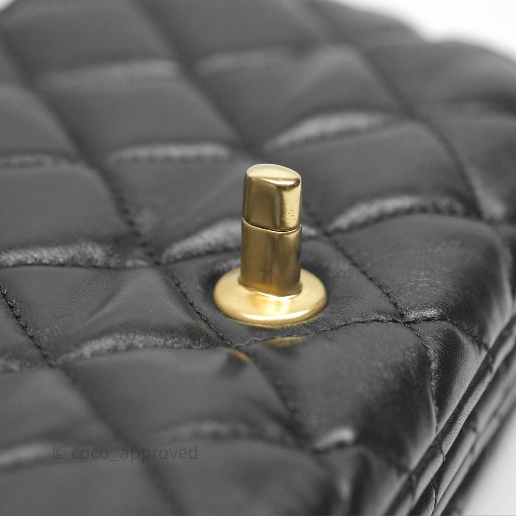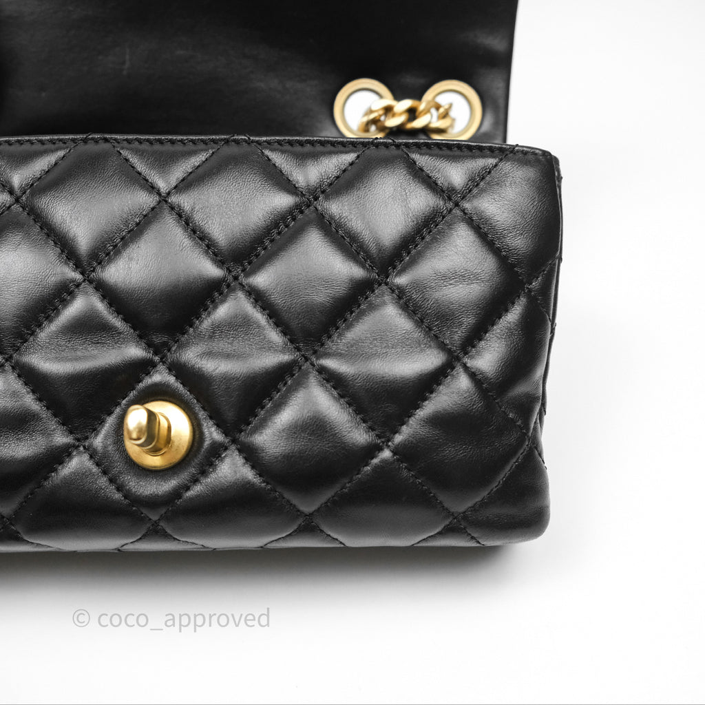 Chanel Small All Slide Adjustable Chain Flap Bag Black Lambskin Aged Gold Hardware 22K