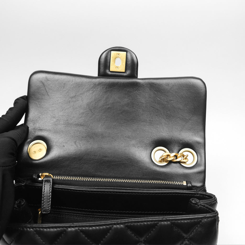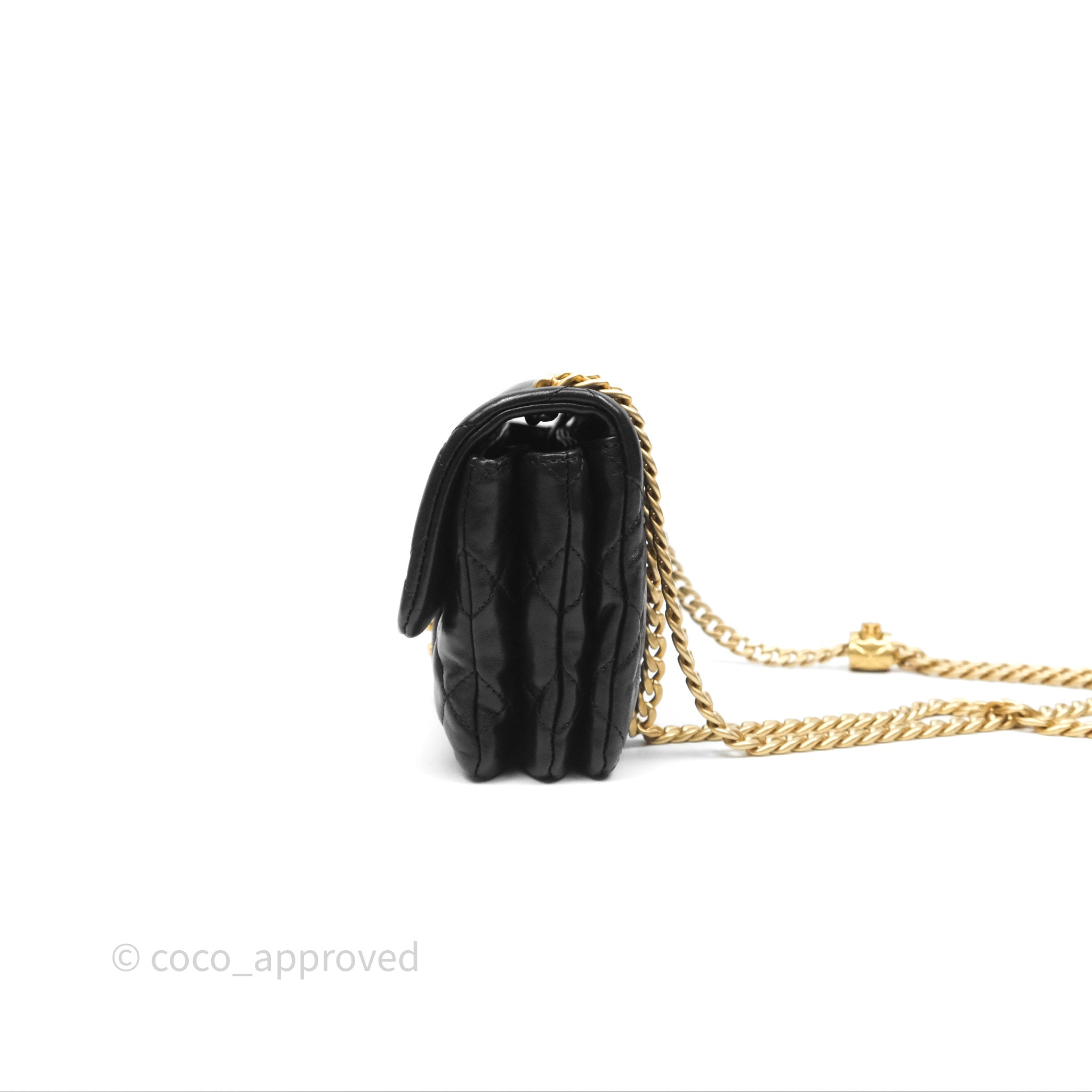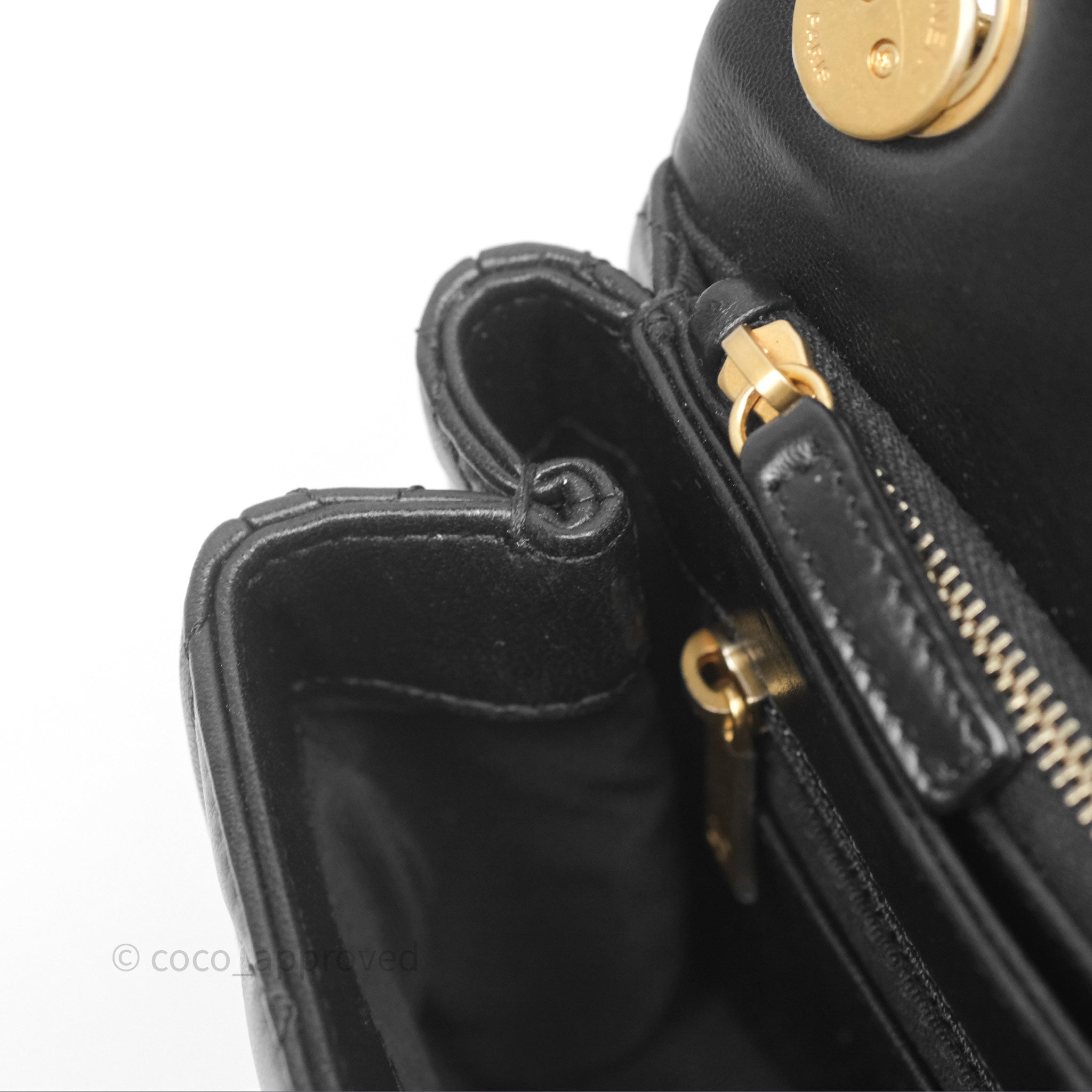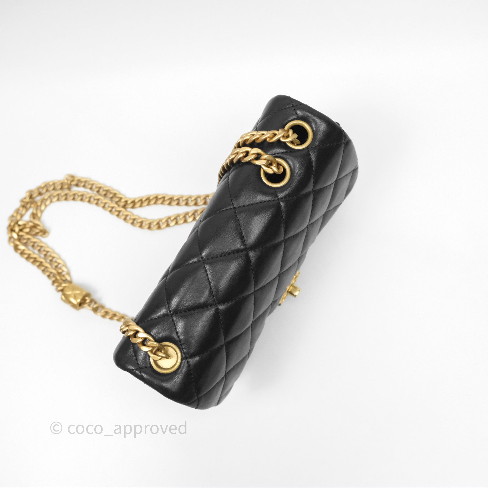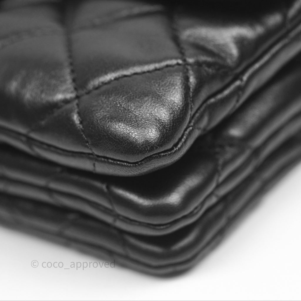 Chanel Small All Slide Adjustable Chain Flap Bag Black Lambskin Aged Gold Hardware 22K