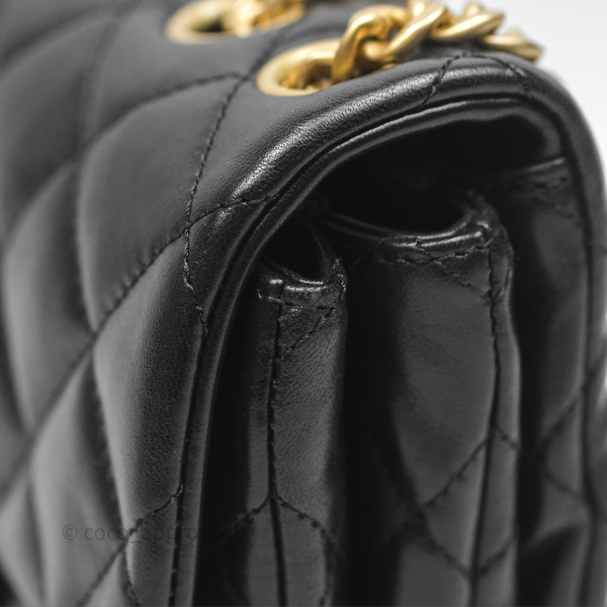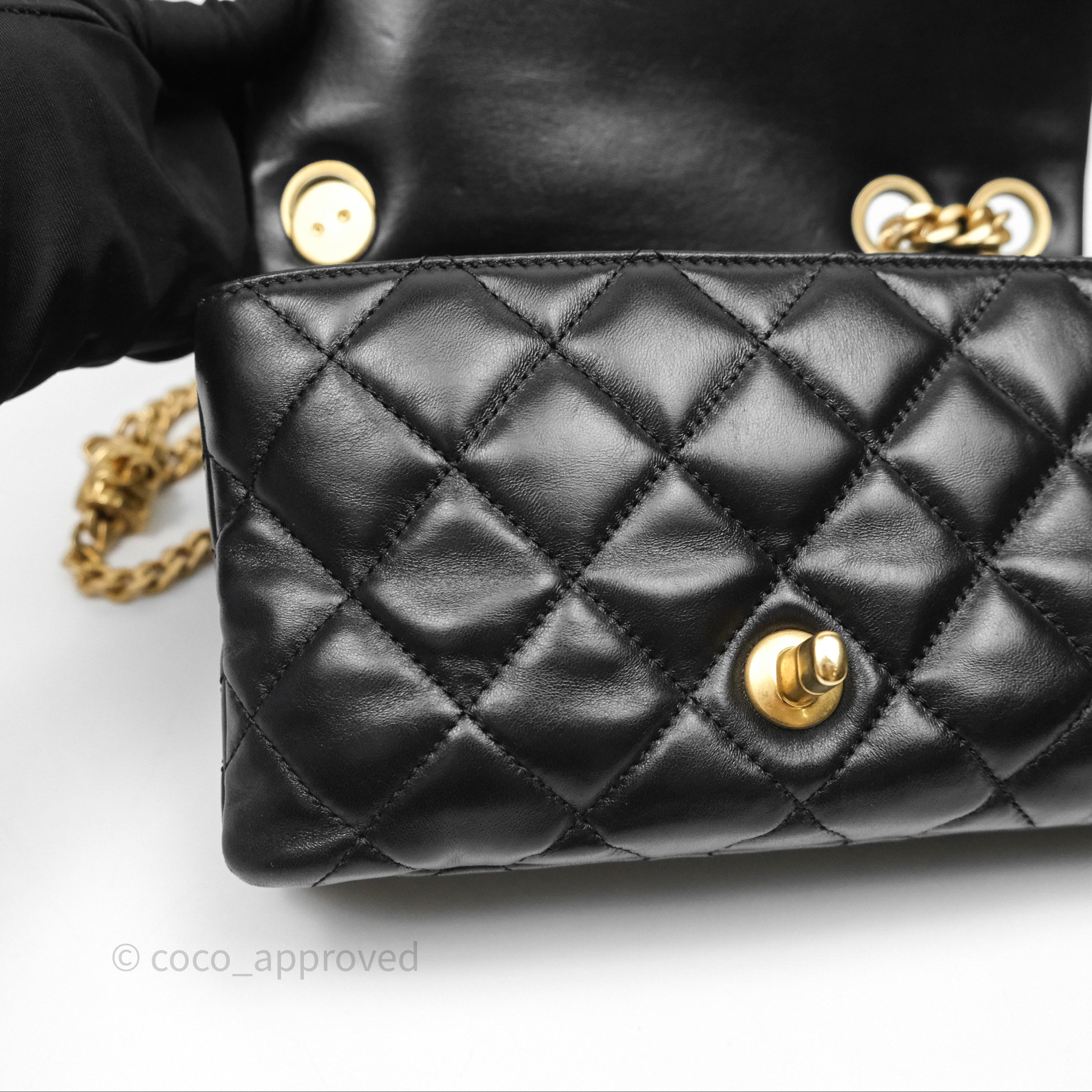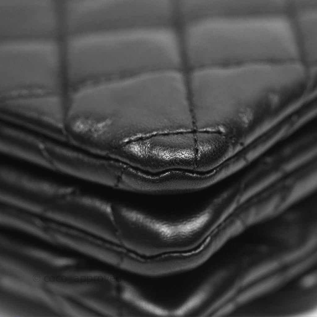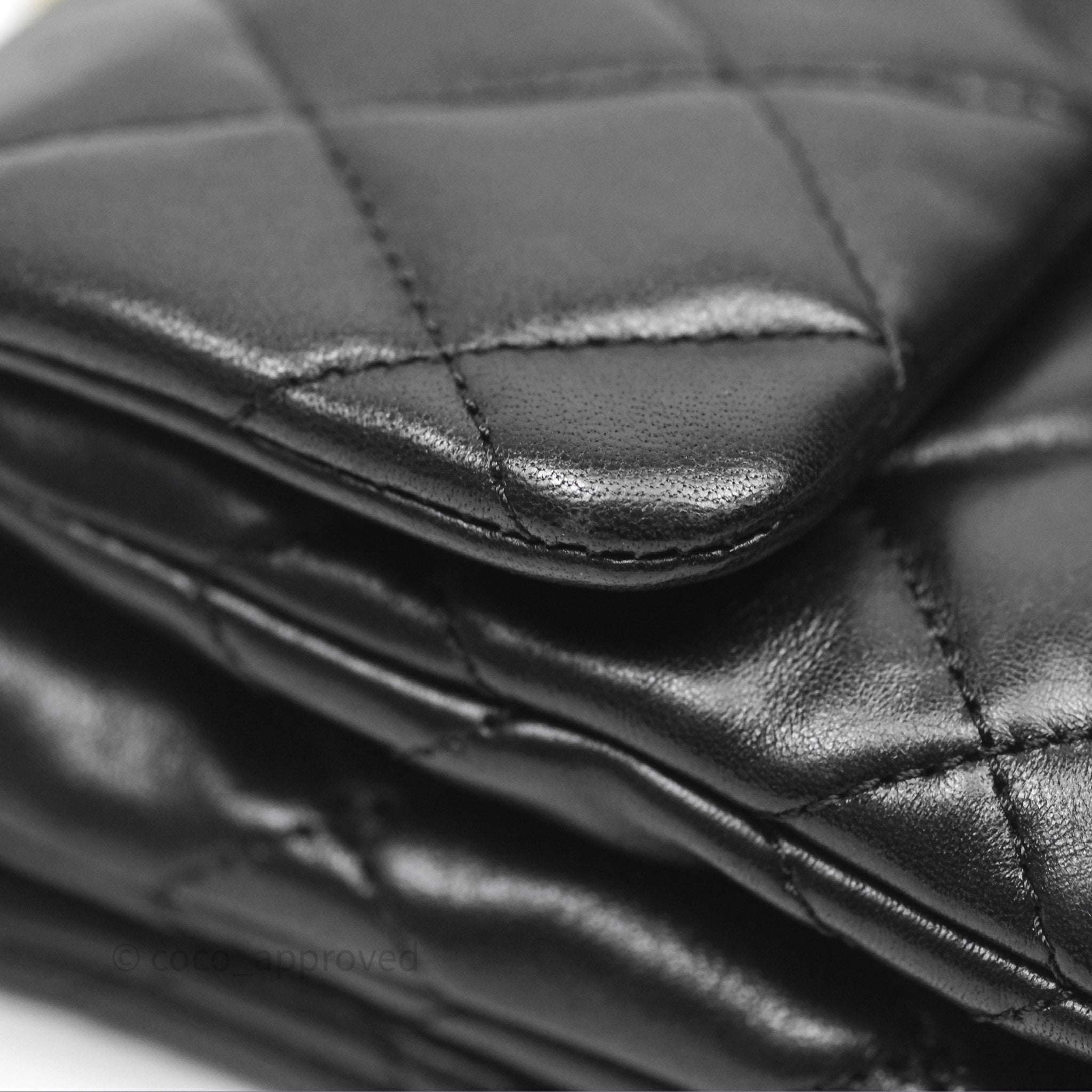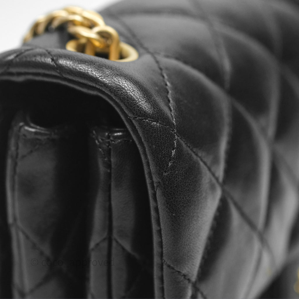 Chanel Small All Slide Adjustable Chain Flap Bag Black Lambskin Aged Gold Hardware 22K