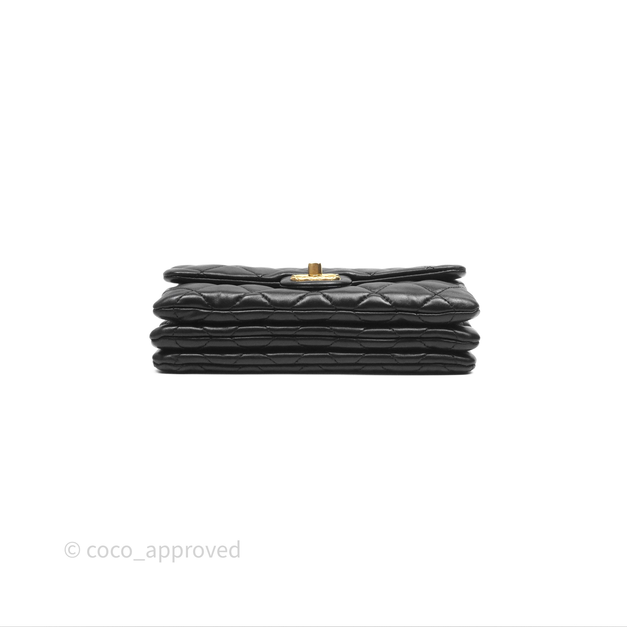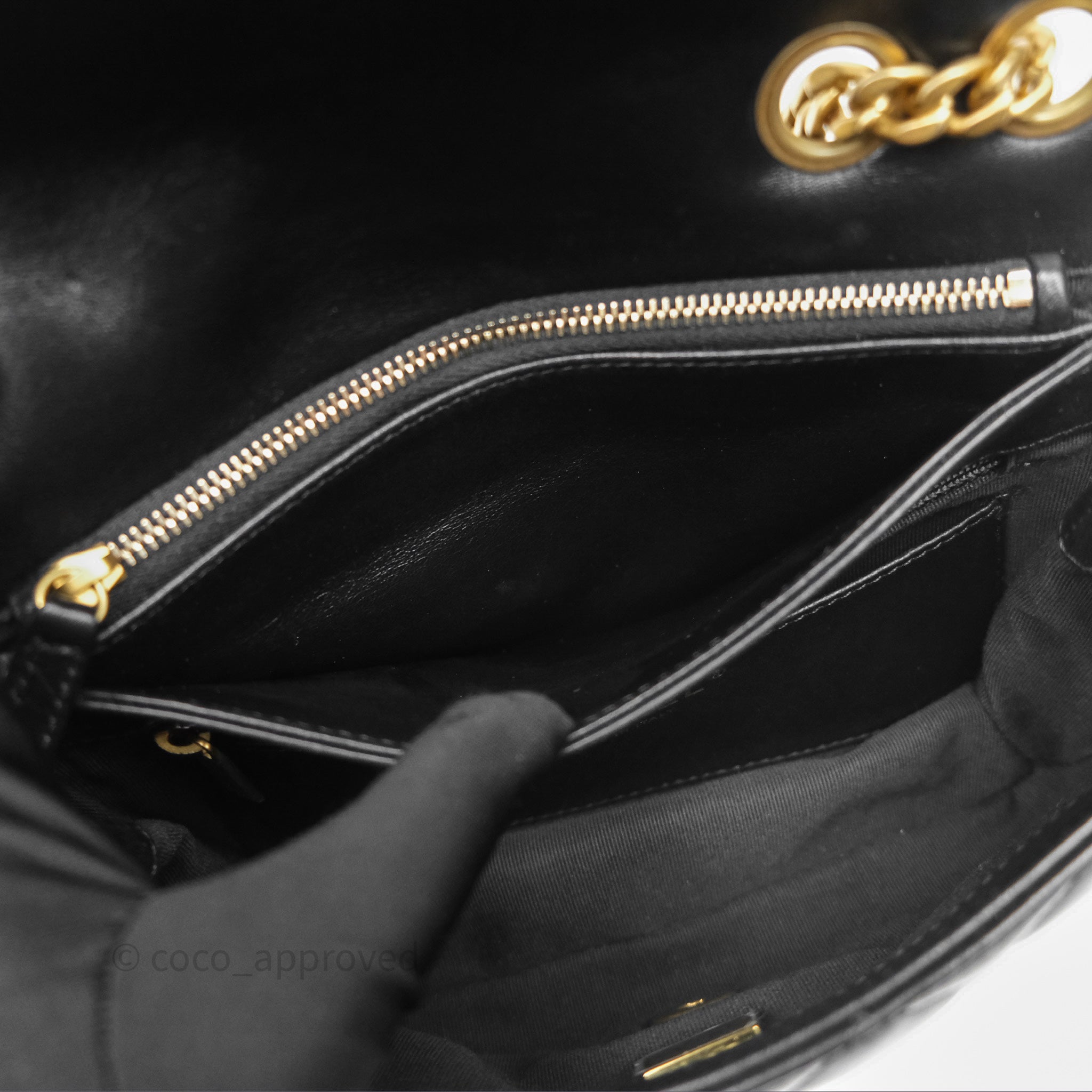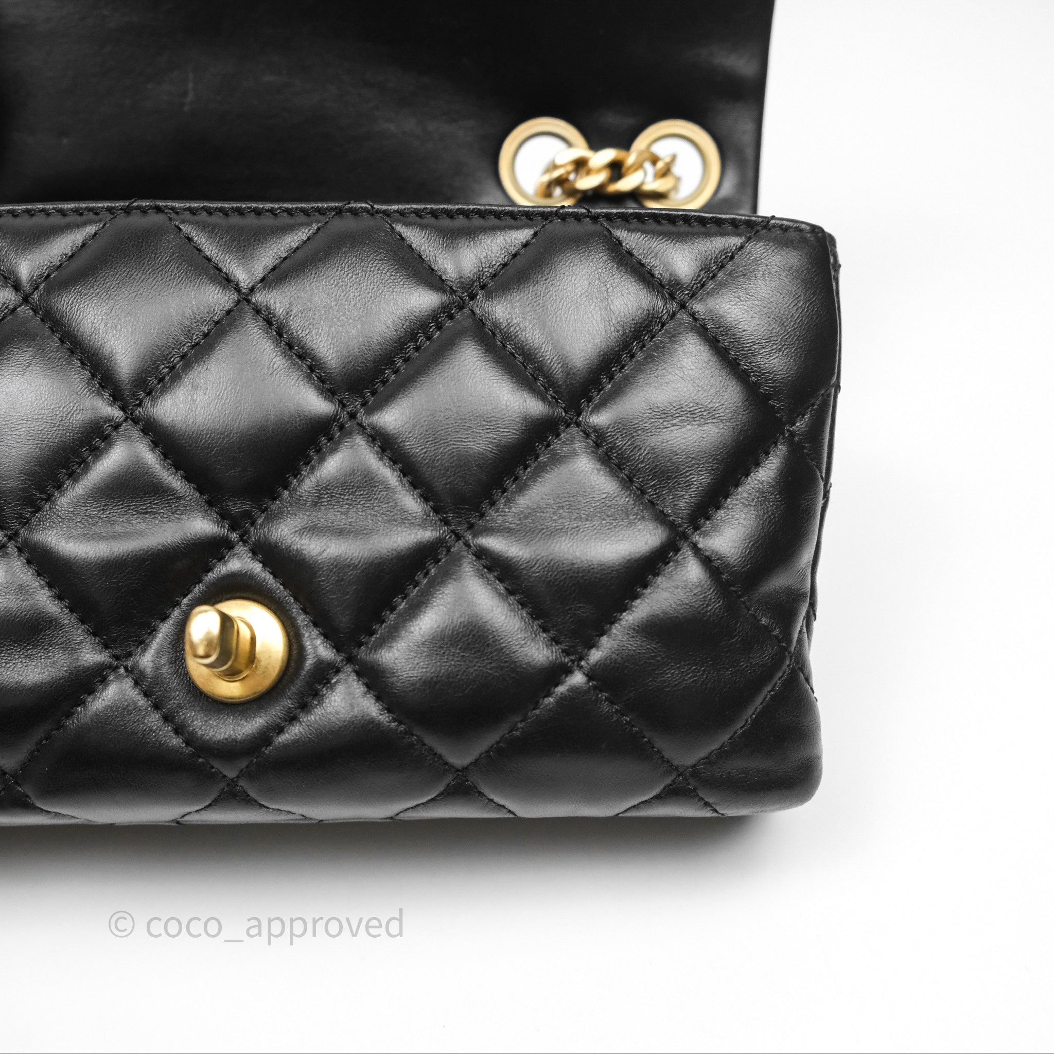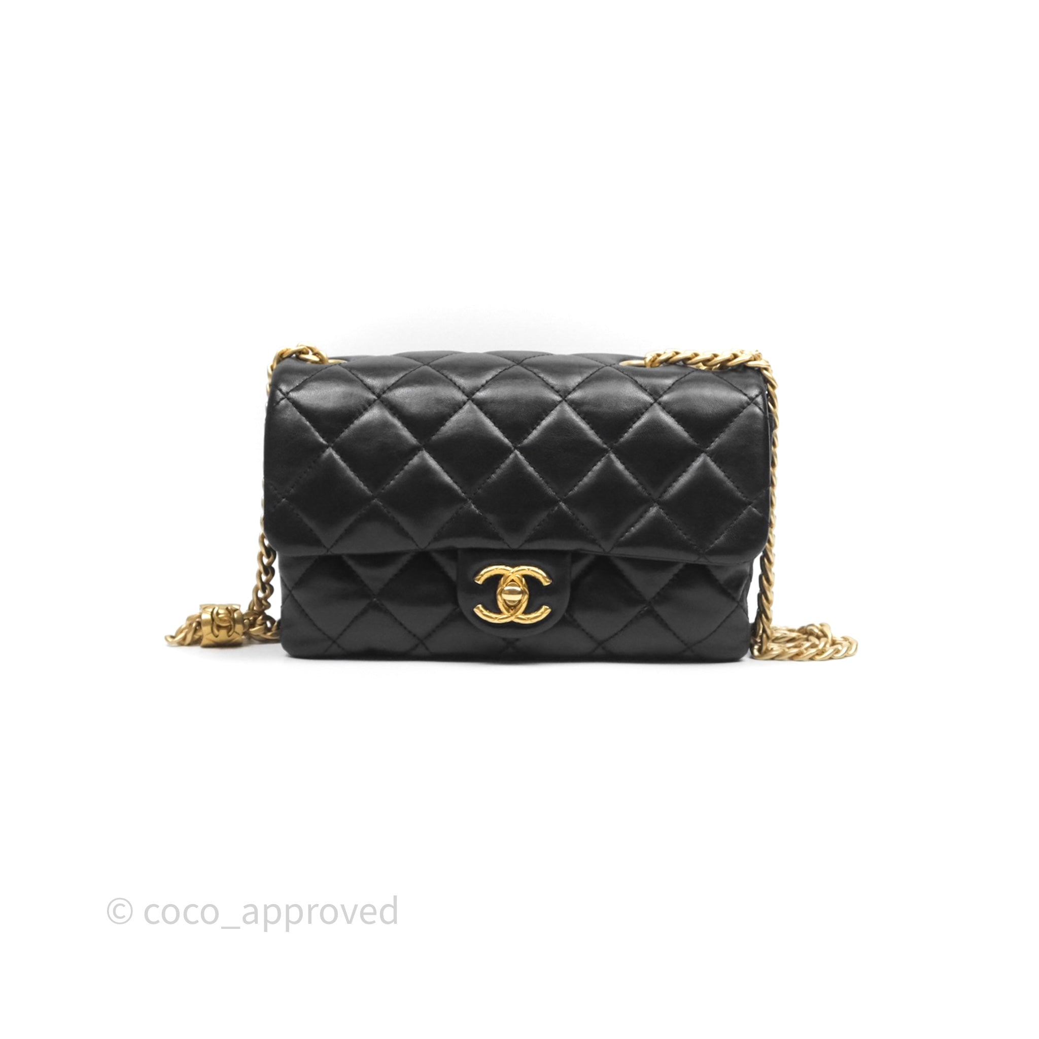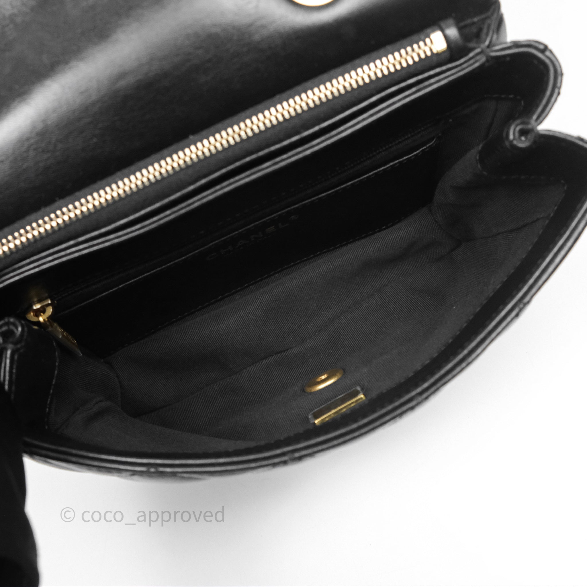 Chanel Small All Slide Adjustable Chain Flap Bag Black Lambskin Aged Gold Hardware 22K