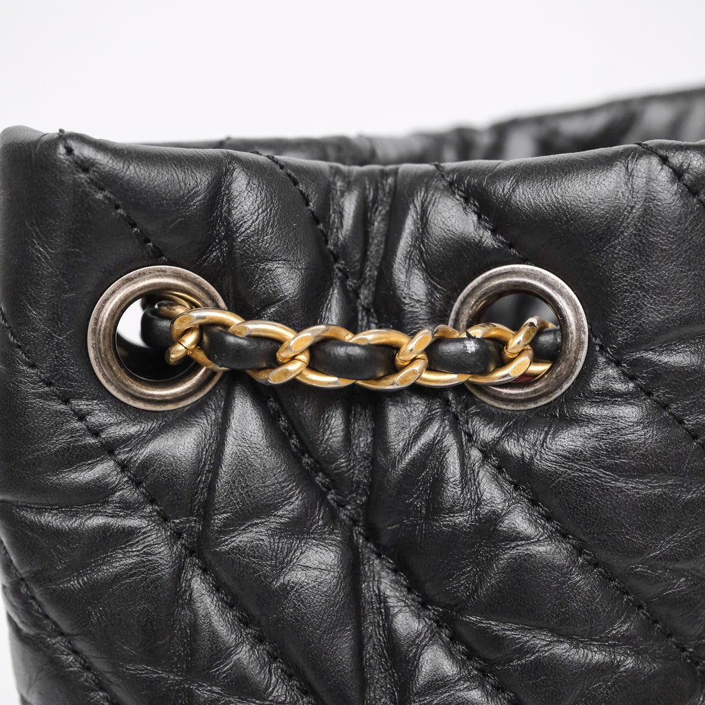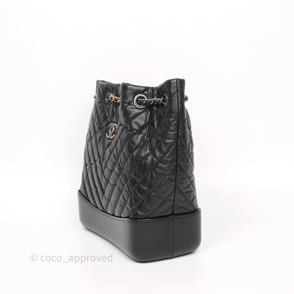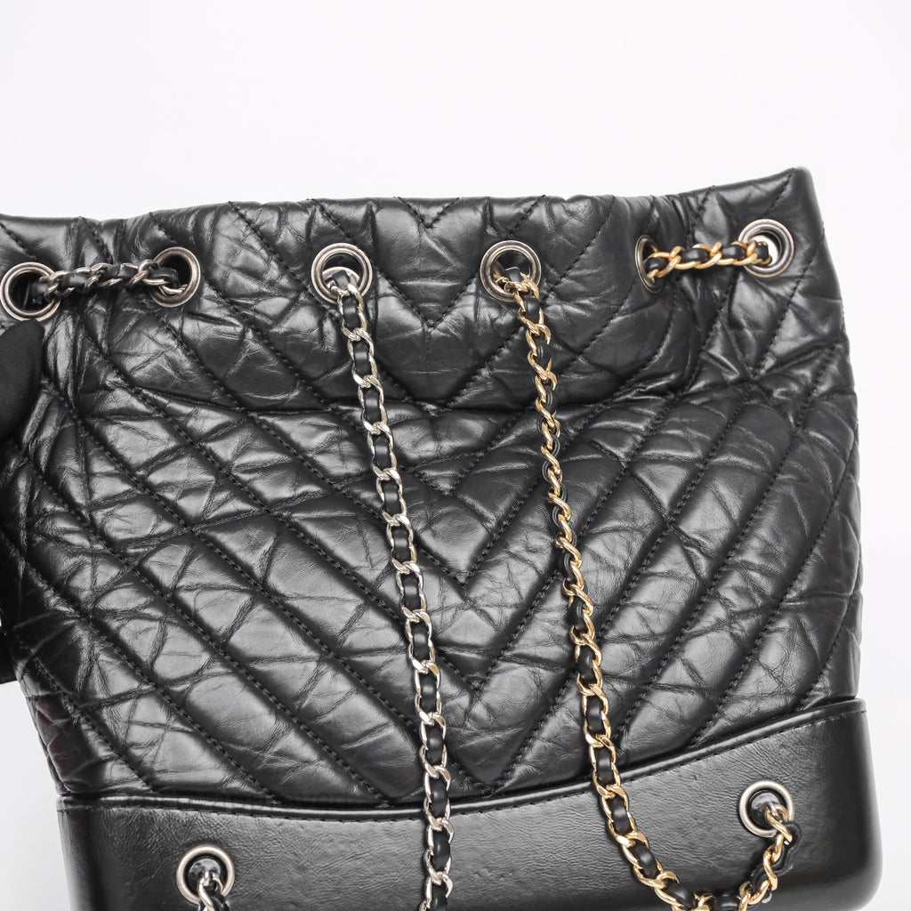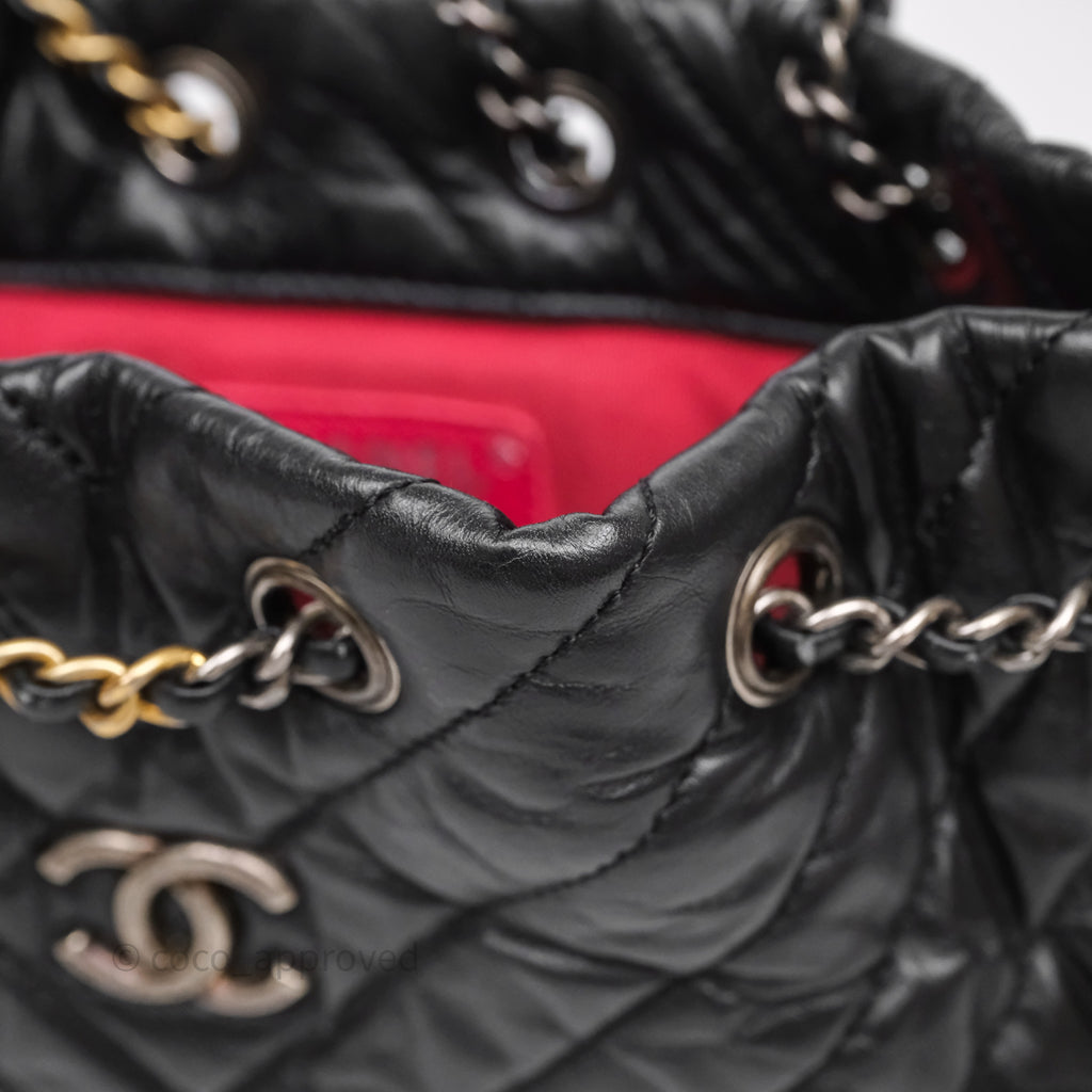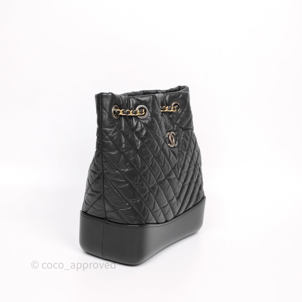 Chanel Small Chevron Gabrielle Backpack Black Aged Calfskin