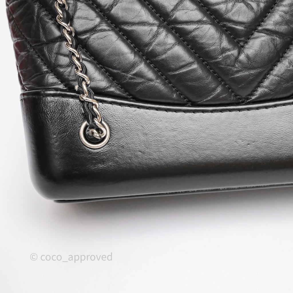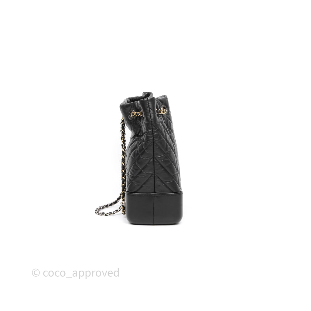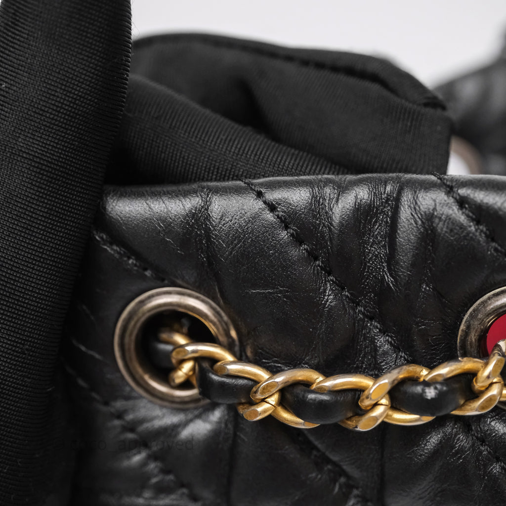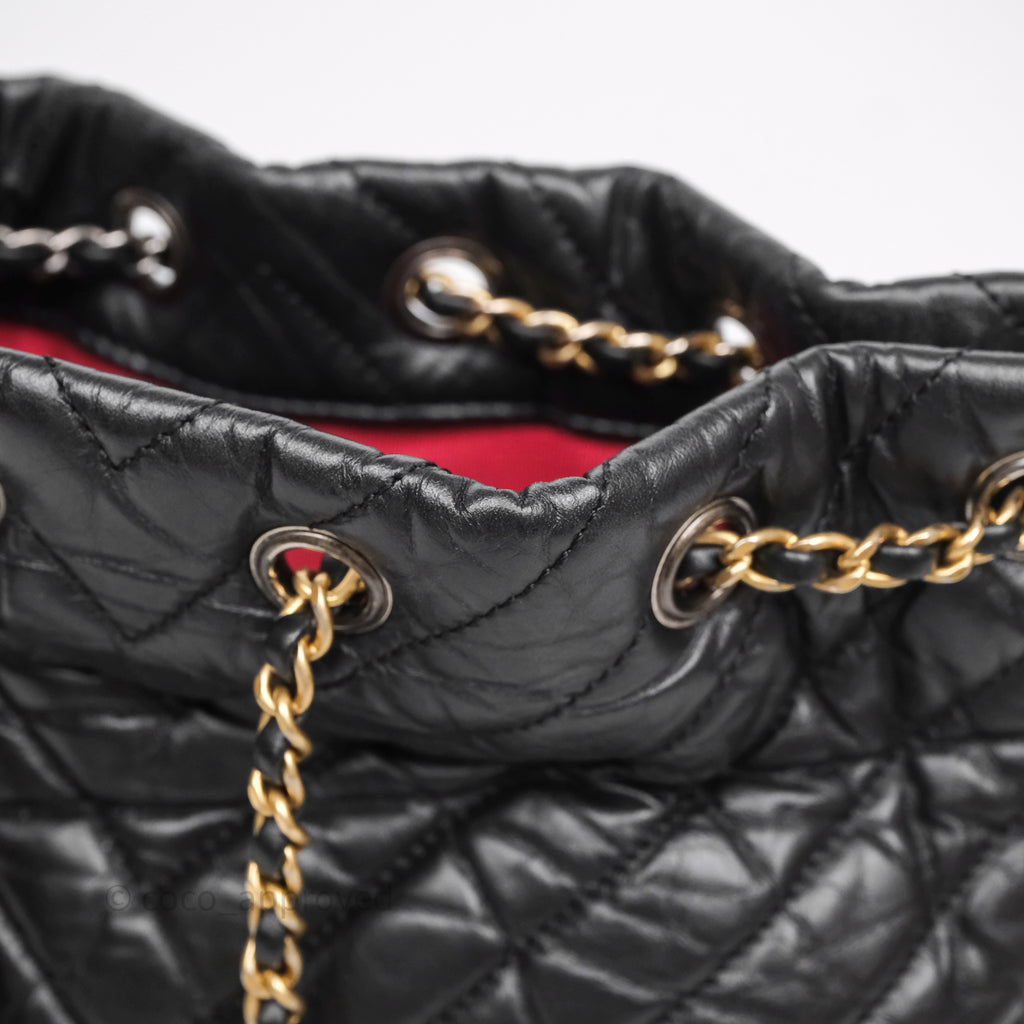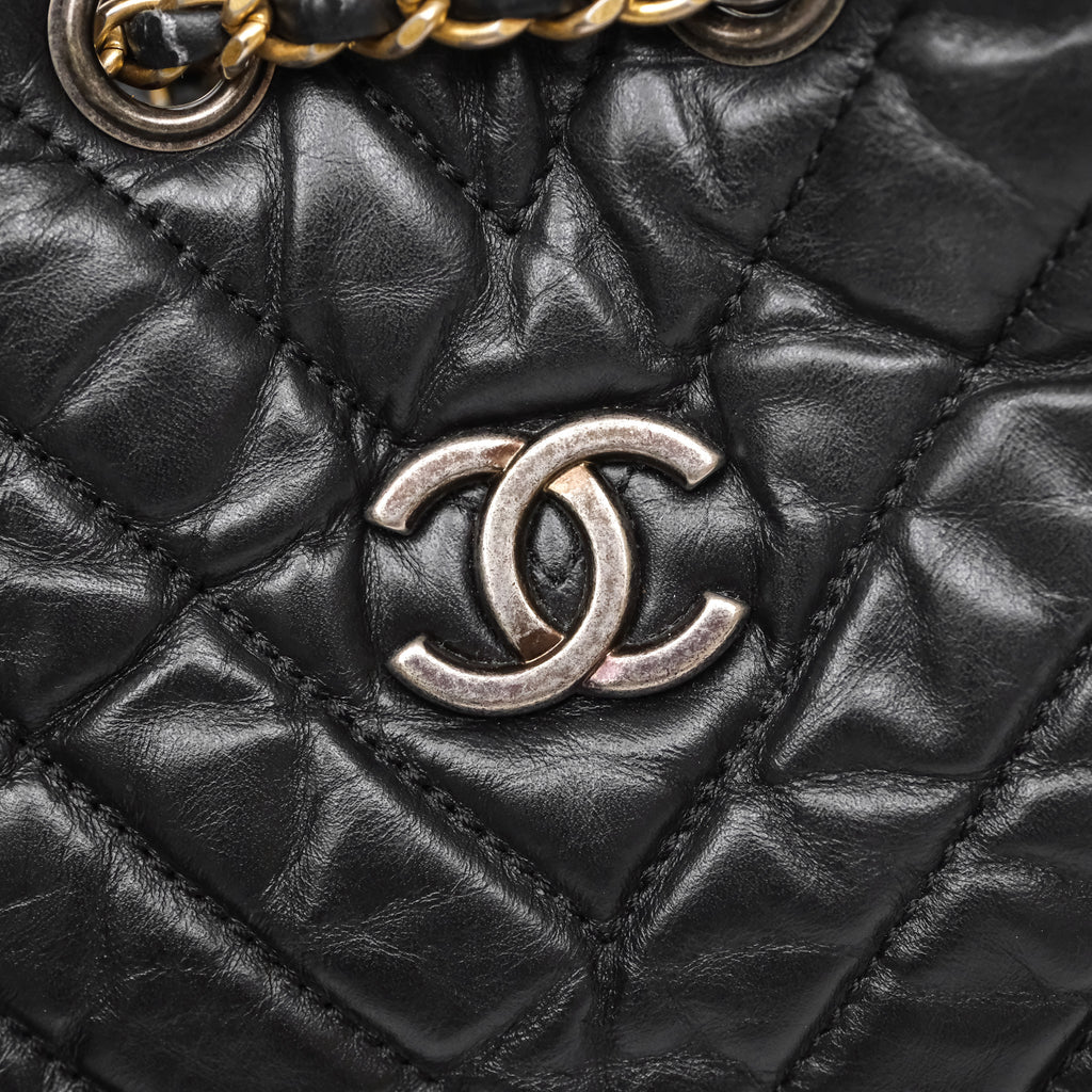 Chanel Small Chevron Gabrielle Backpack Black Aged Calfskin