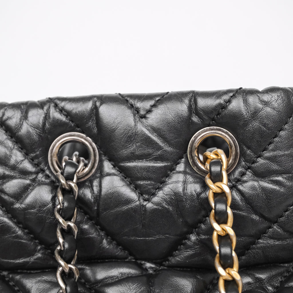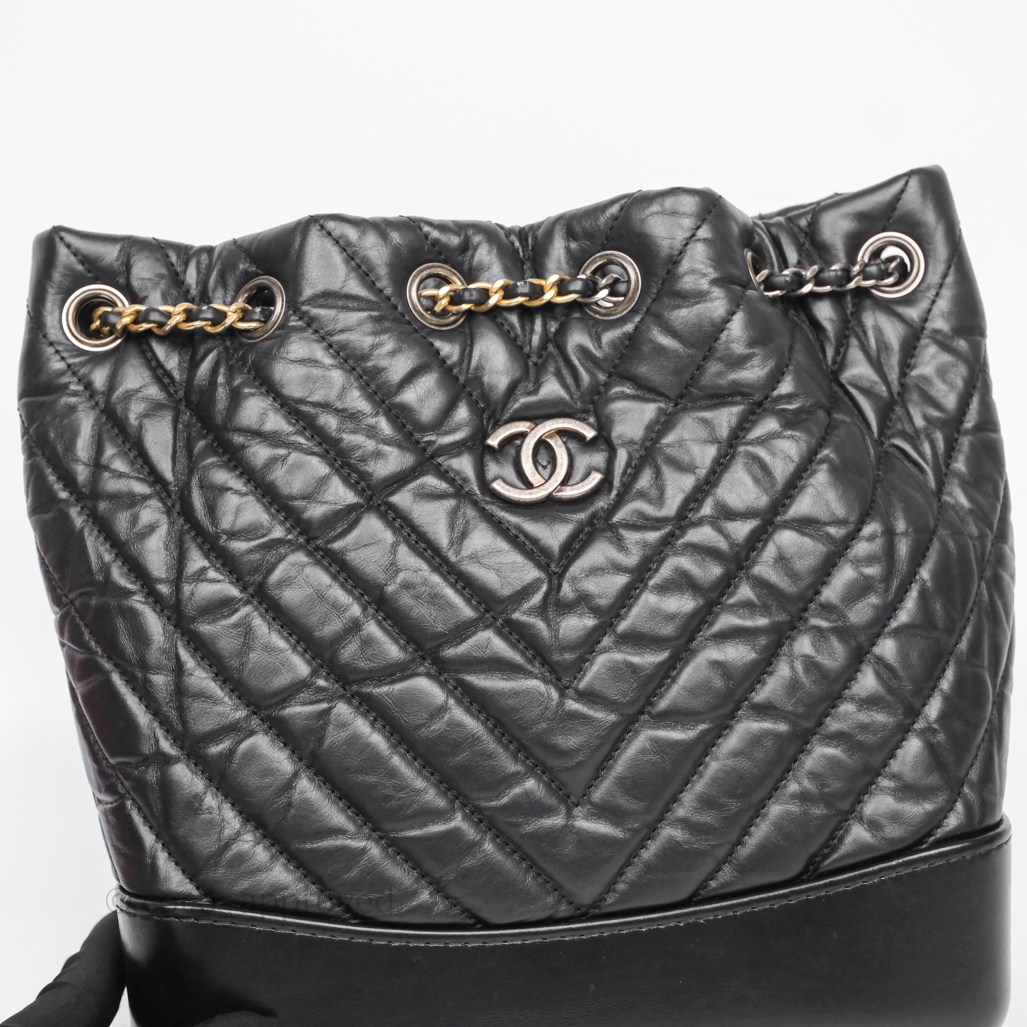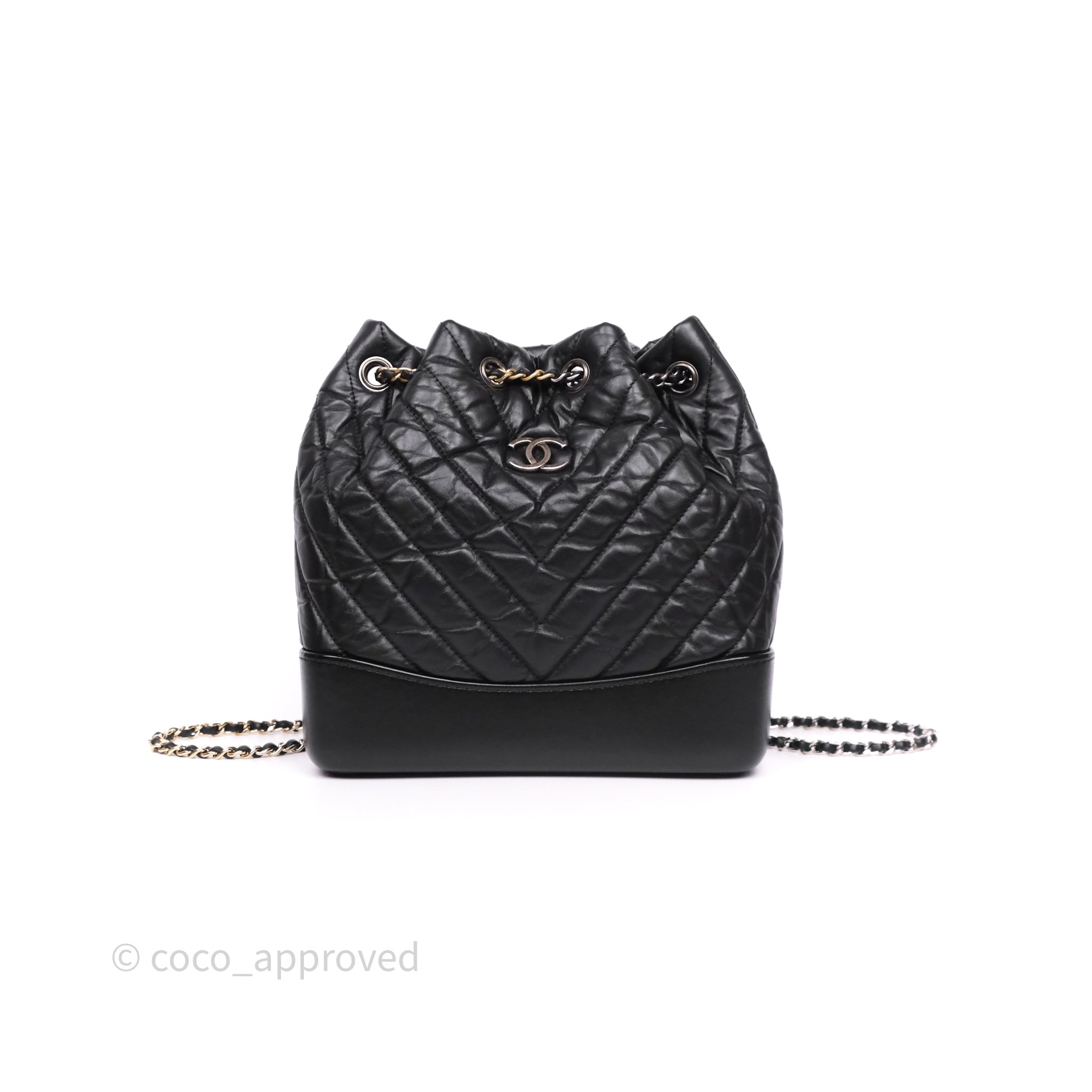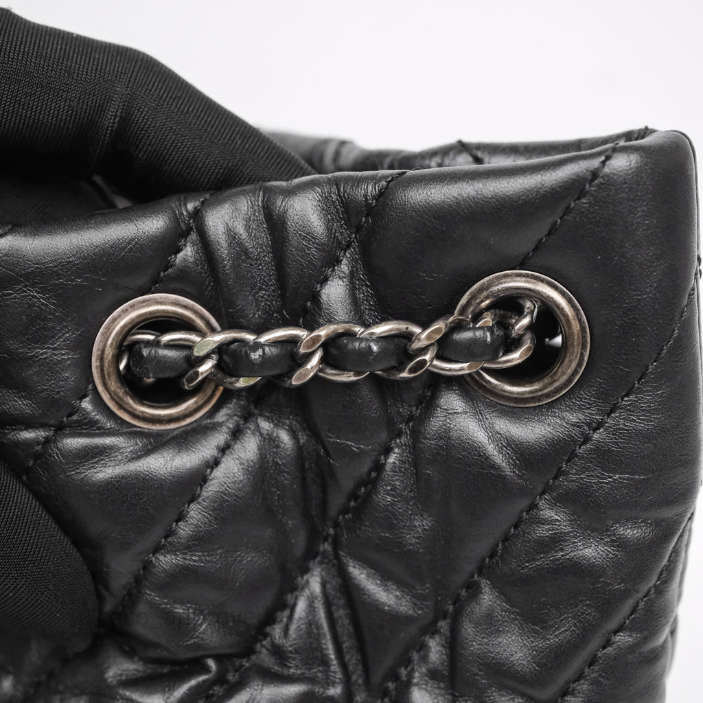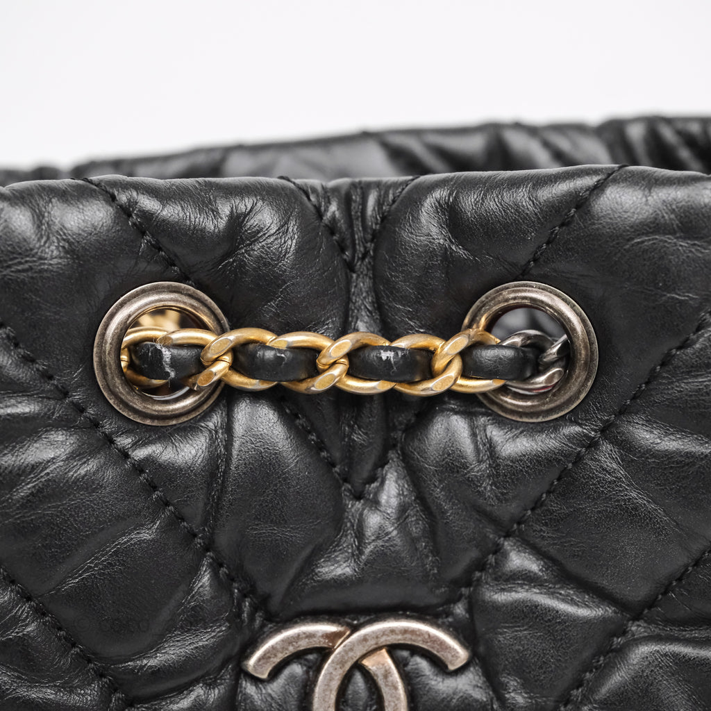Chanel Small Chevron Gabrielle Backpack Black Aged Calfskin