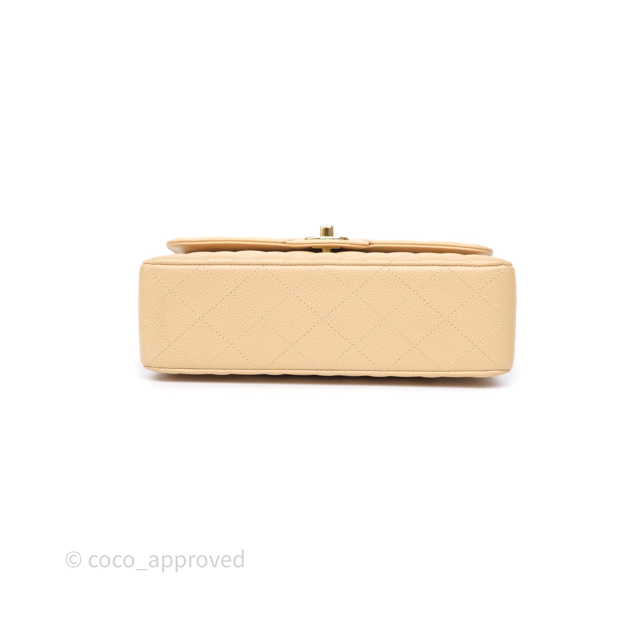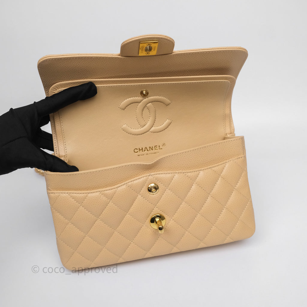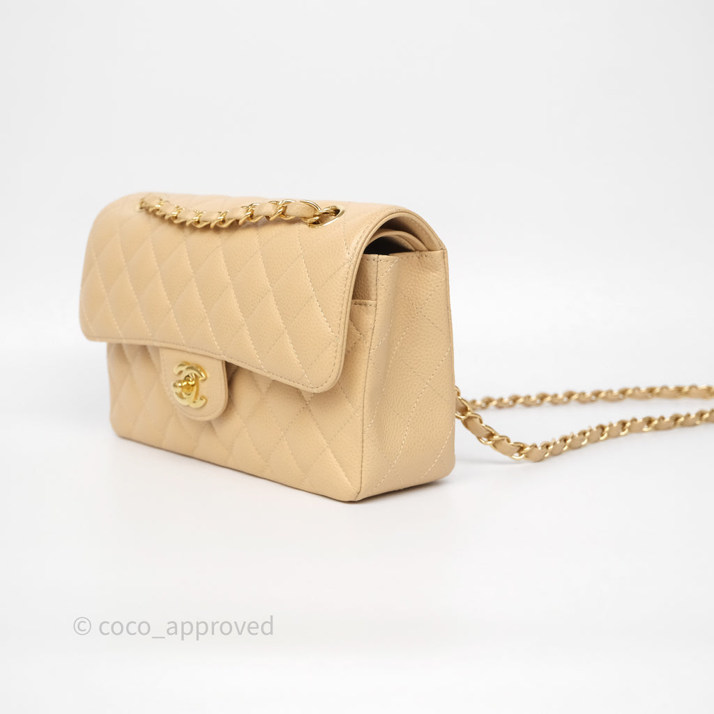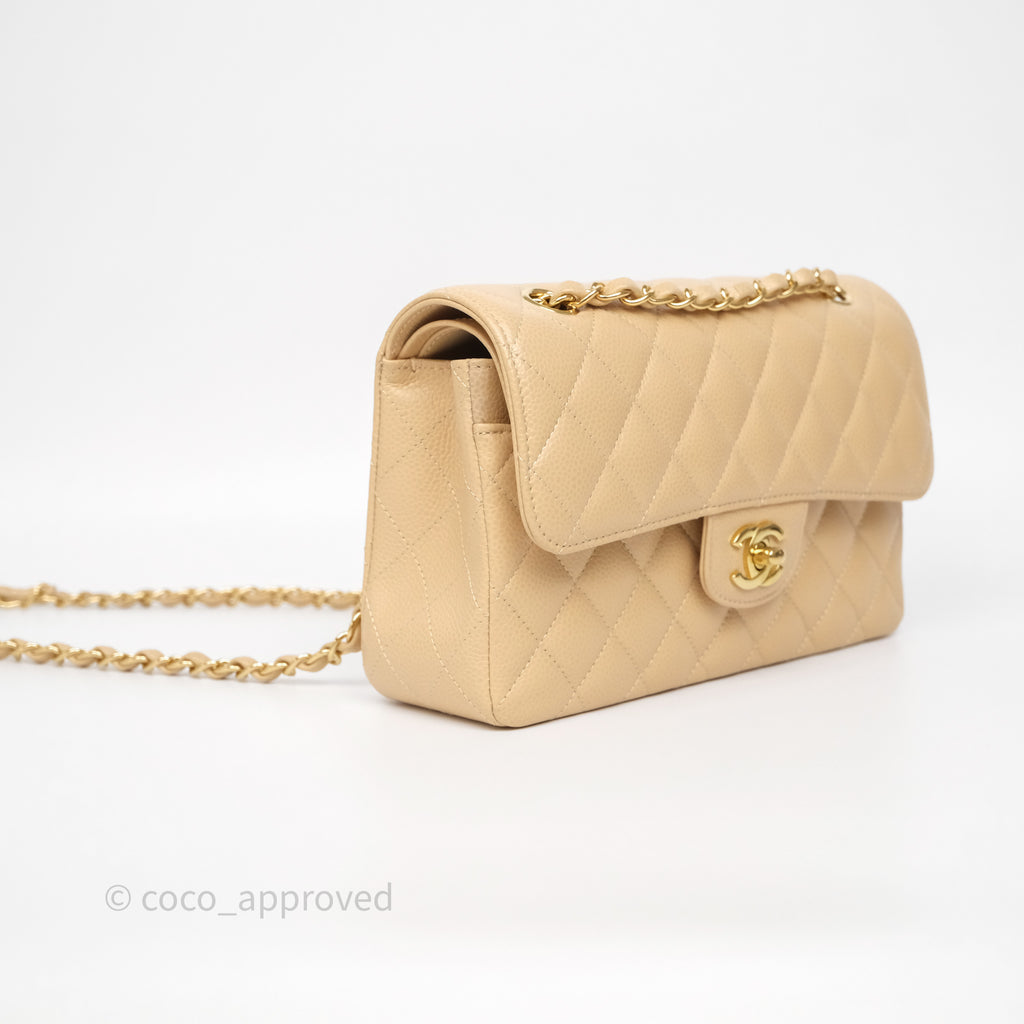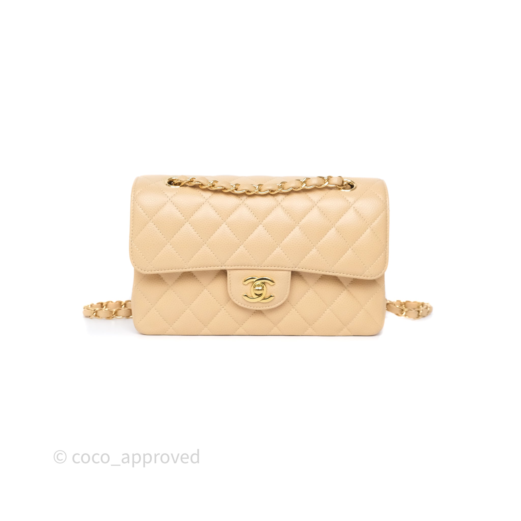 Chanel Small Classic Flap Quilted Beige Caviar Gold Hardware