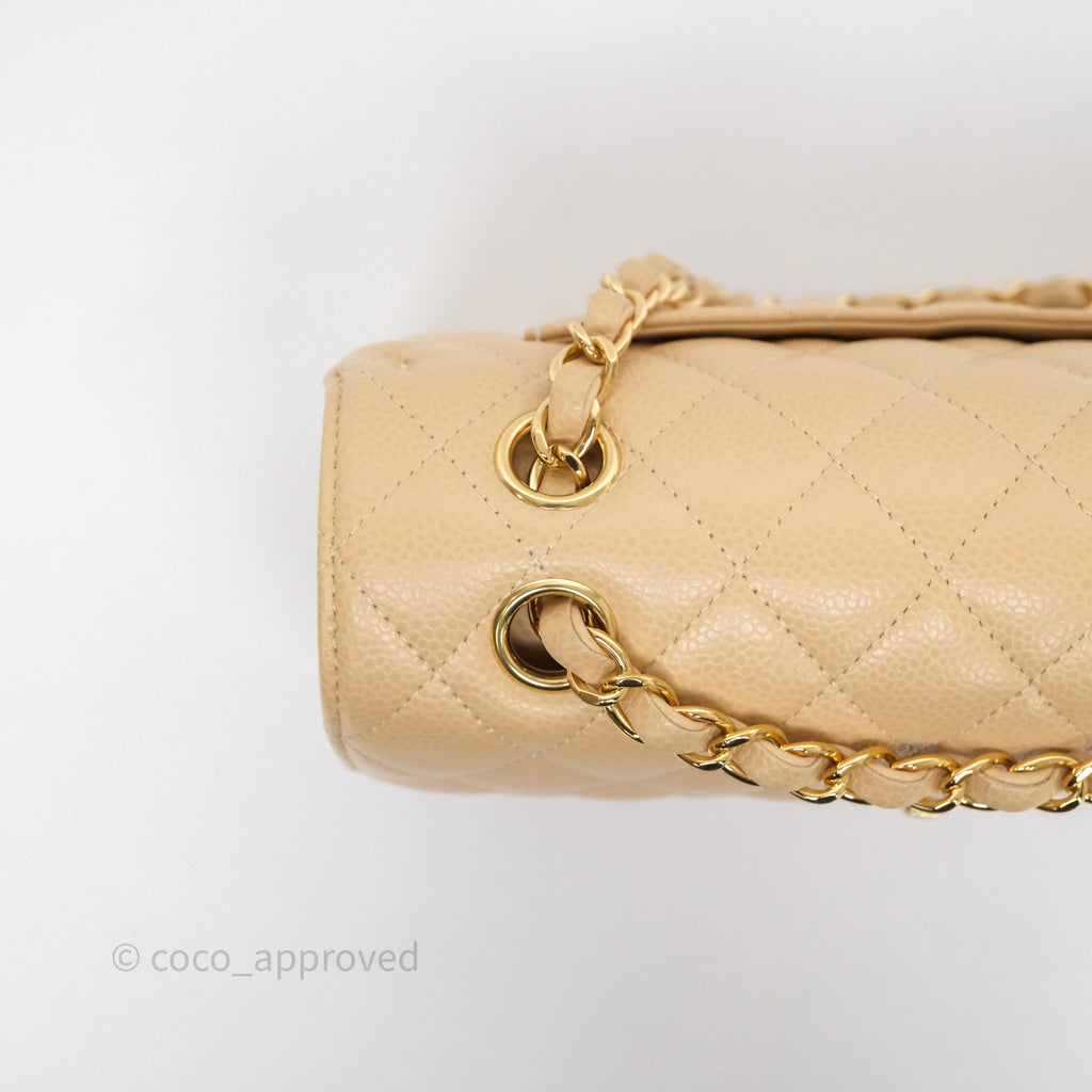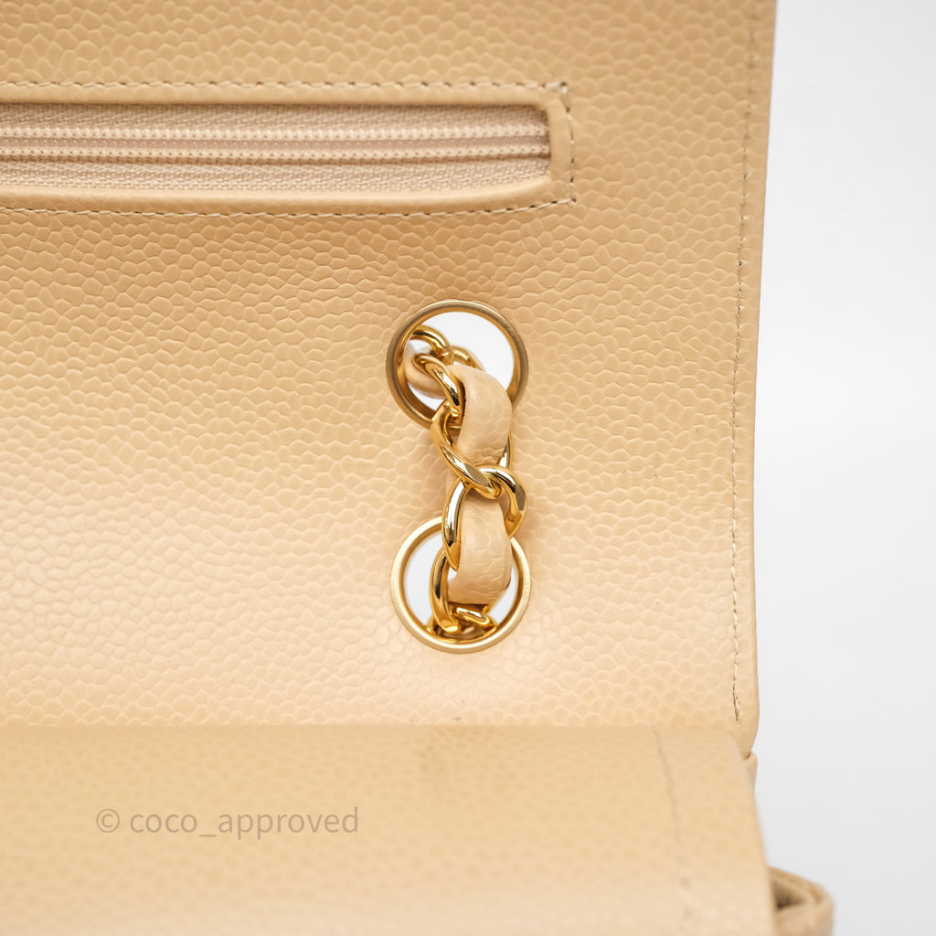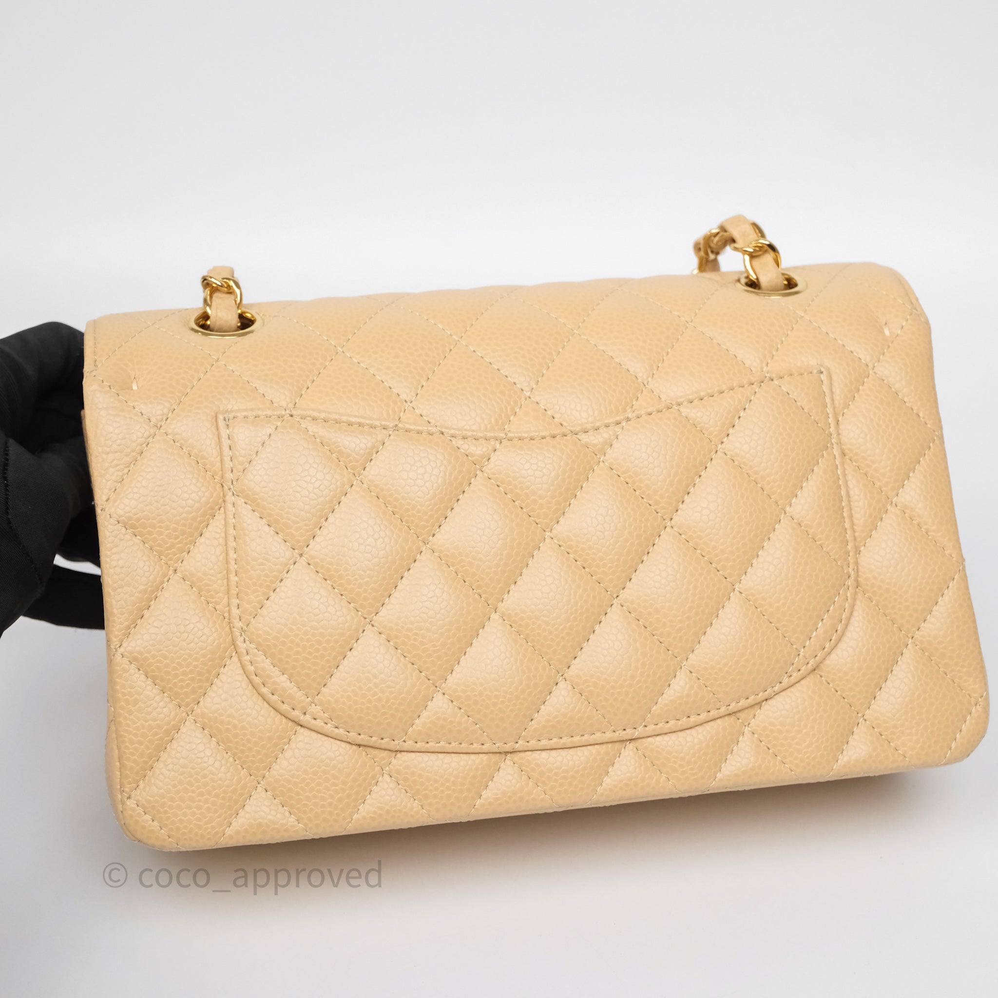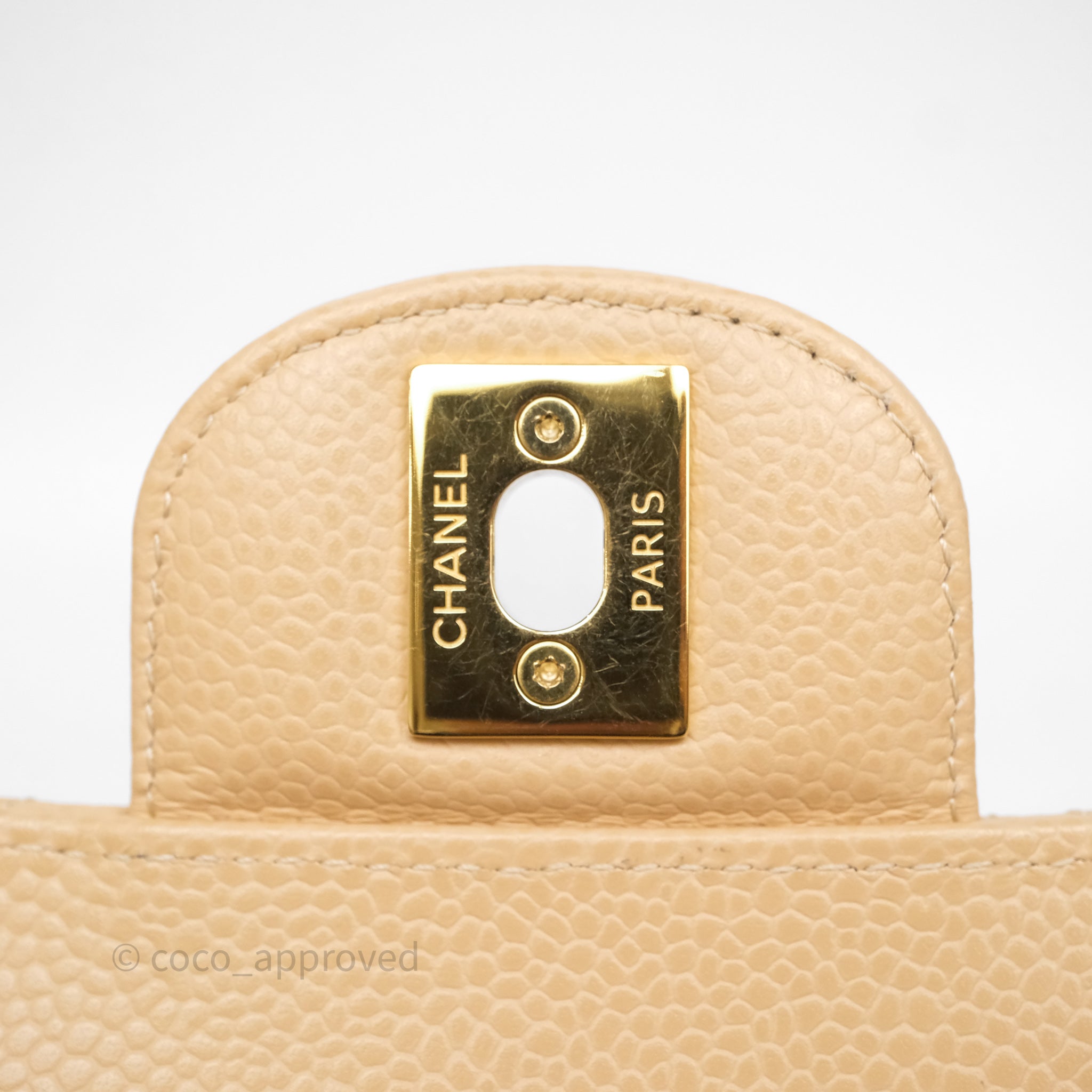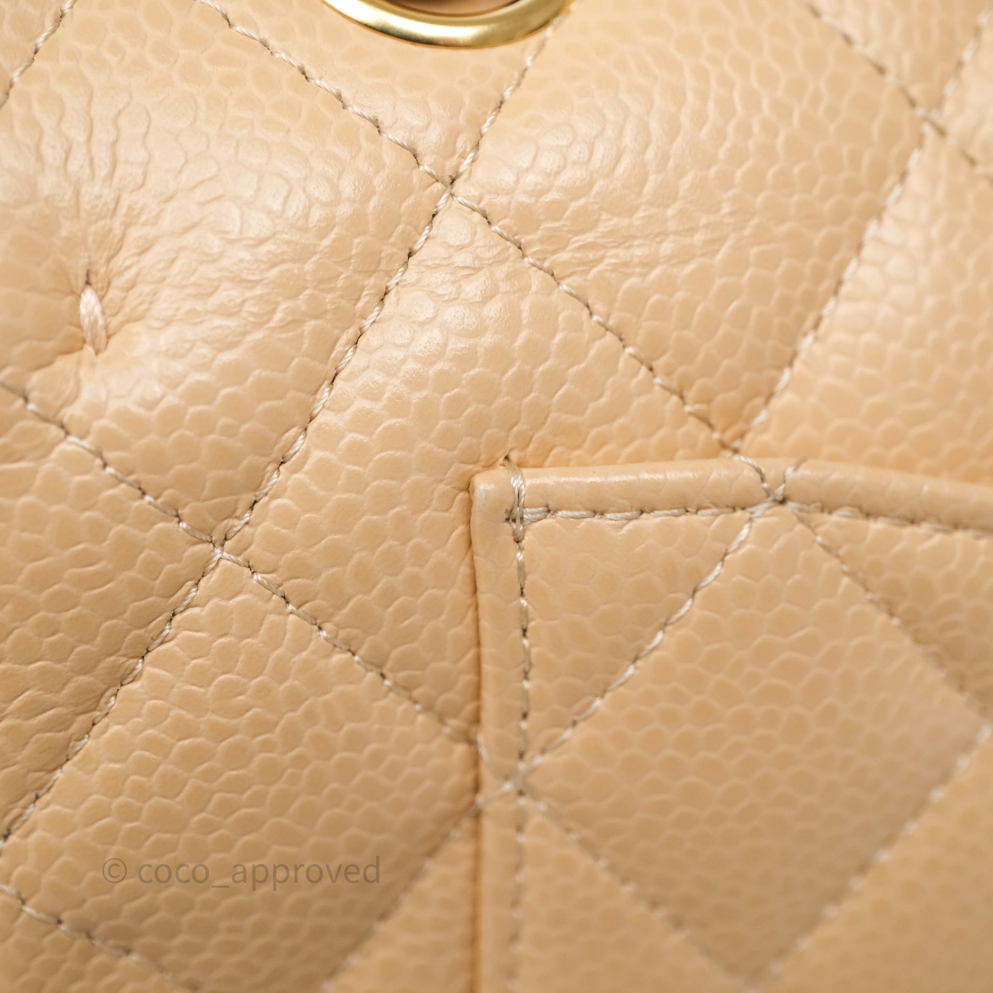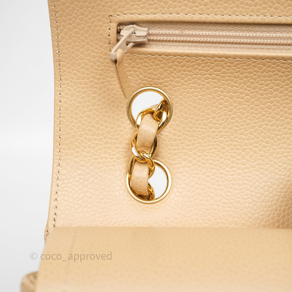 Chanel Small Classic Flap Quilted Beige Caviar Gold Hardware