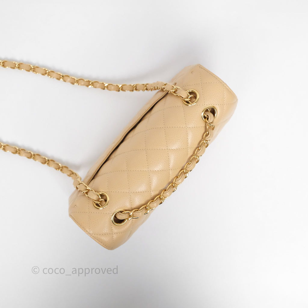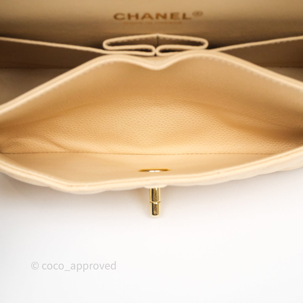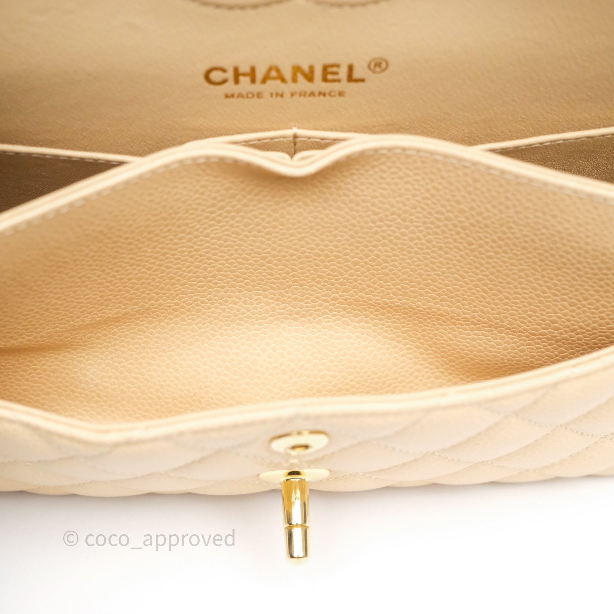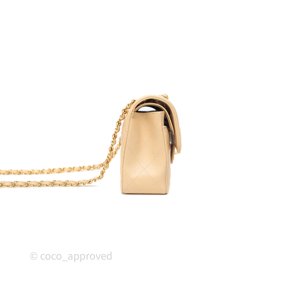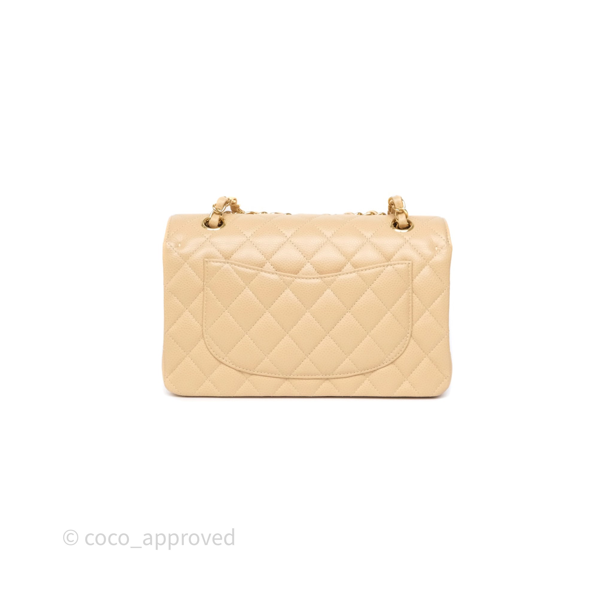 Chanel Small Classic Flap Quilted Beige Caviar Gold Hardware