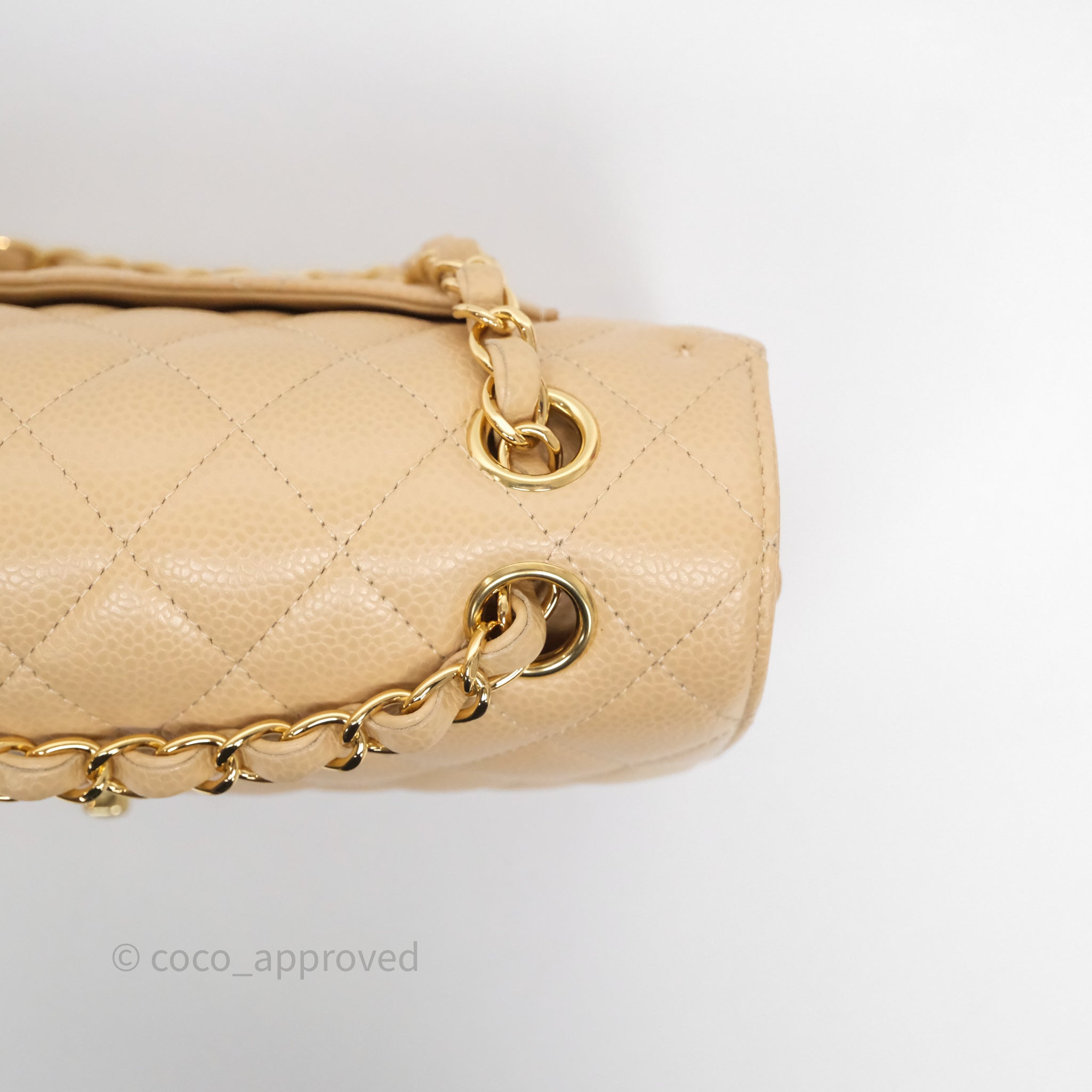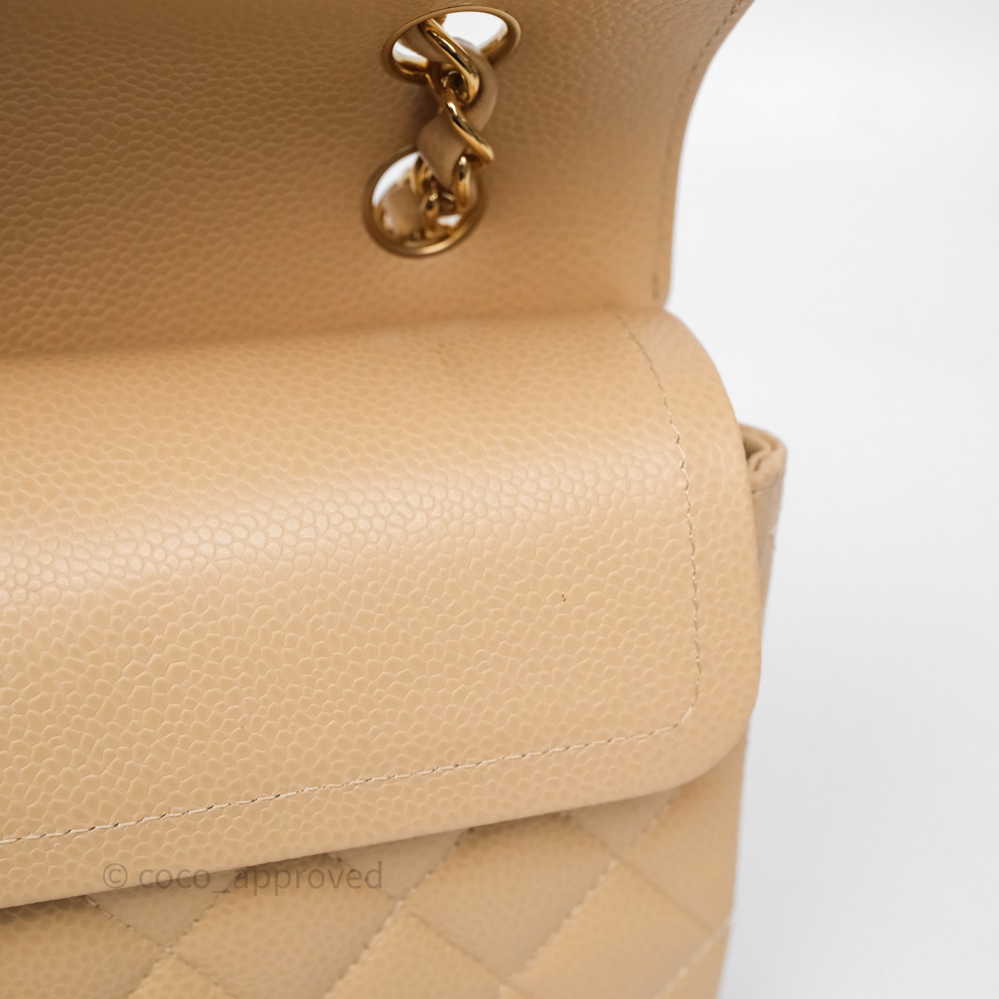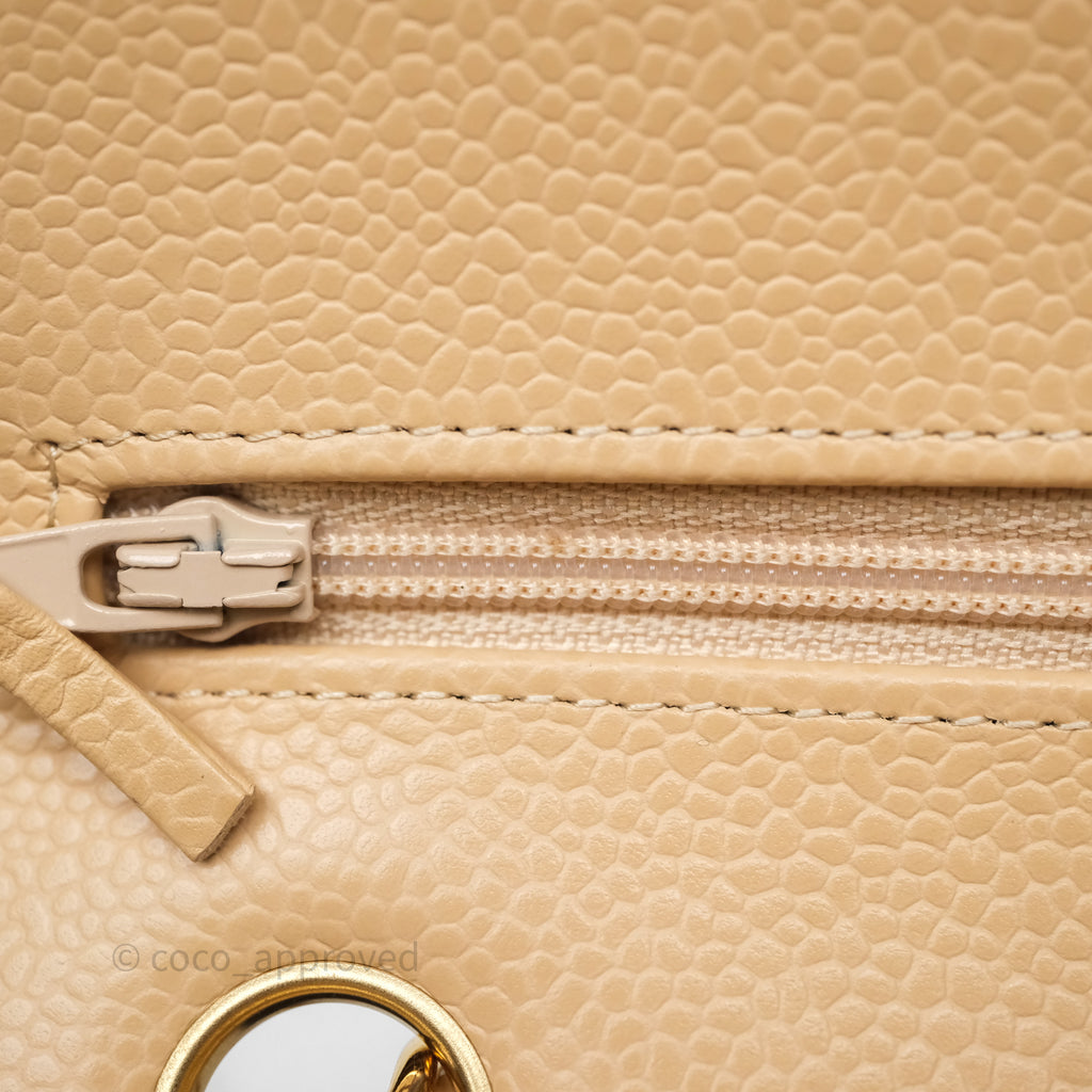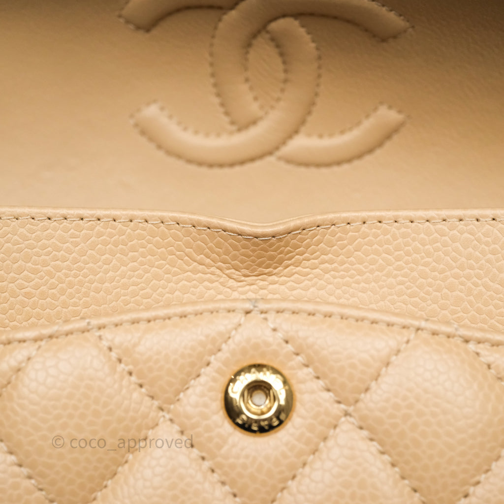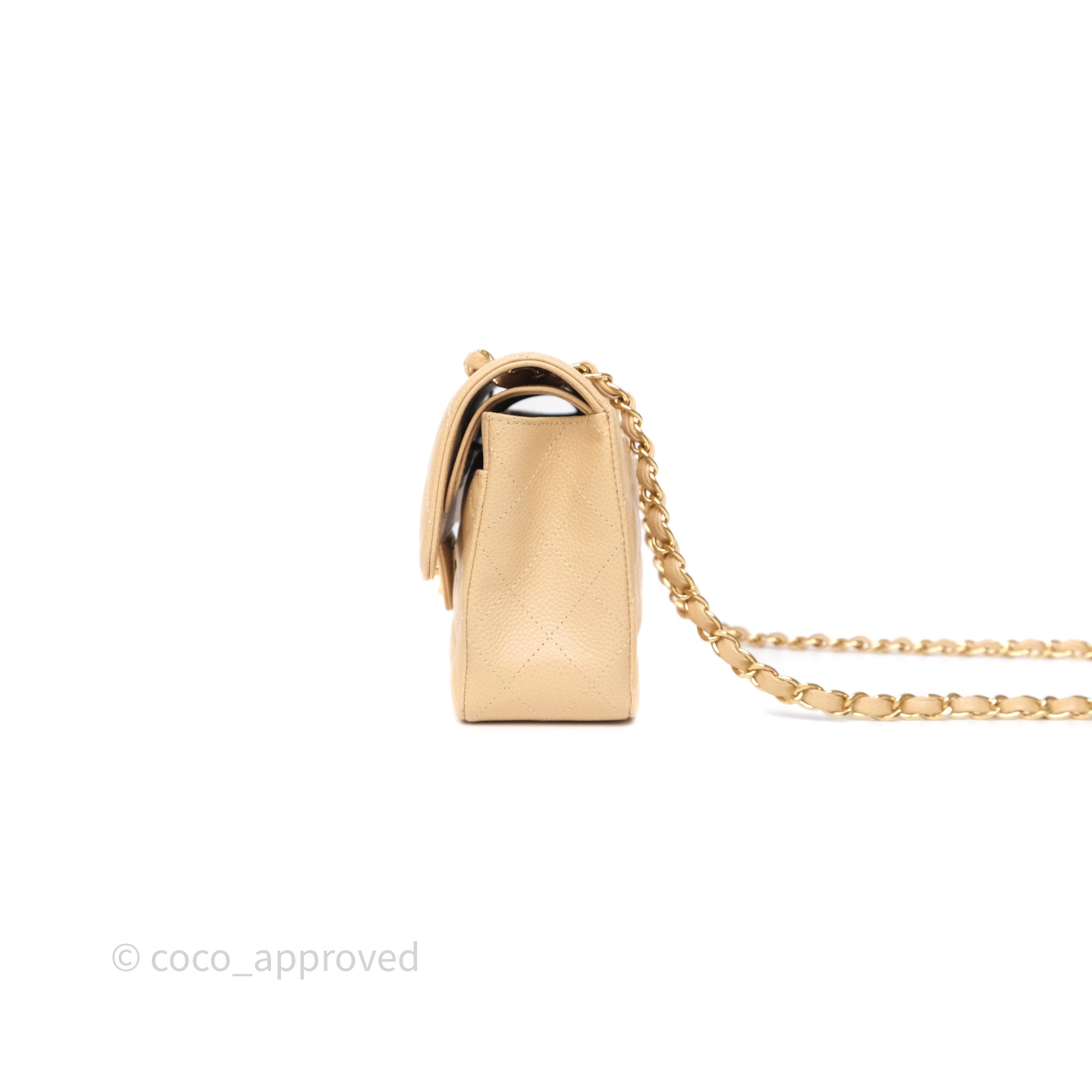 Chanel Small Classic Flap Quilted Beige Caviar Gold Hardware