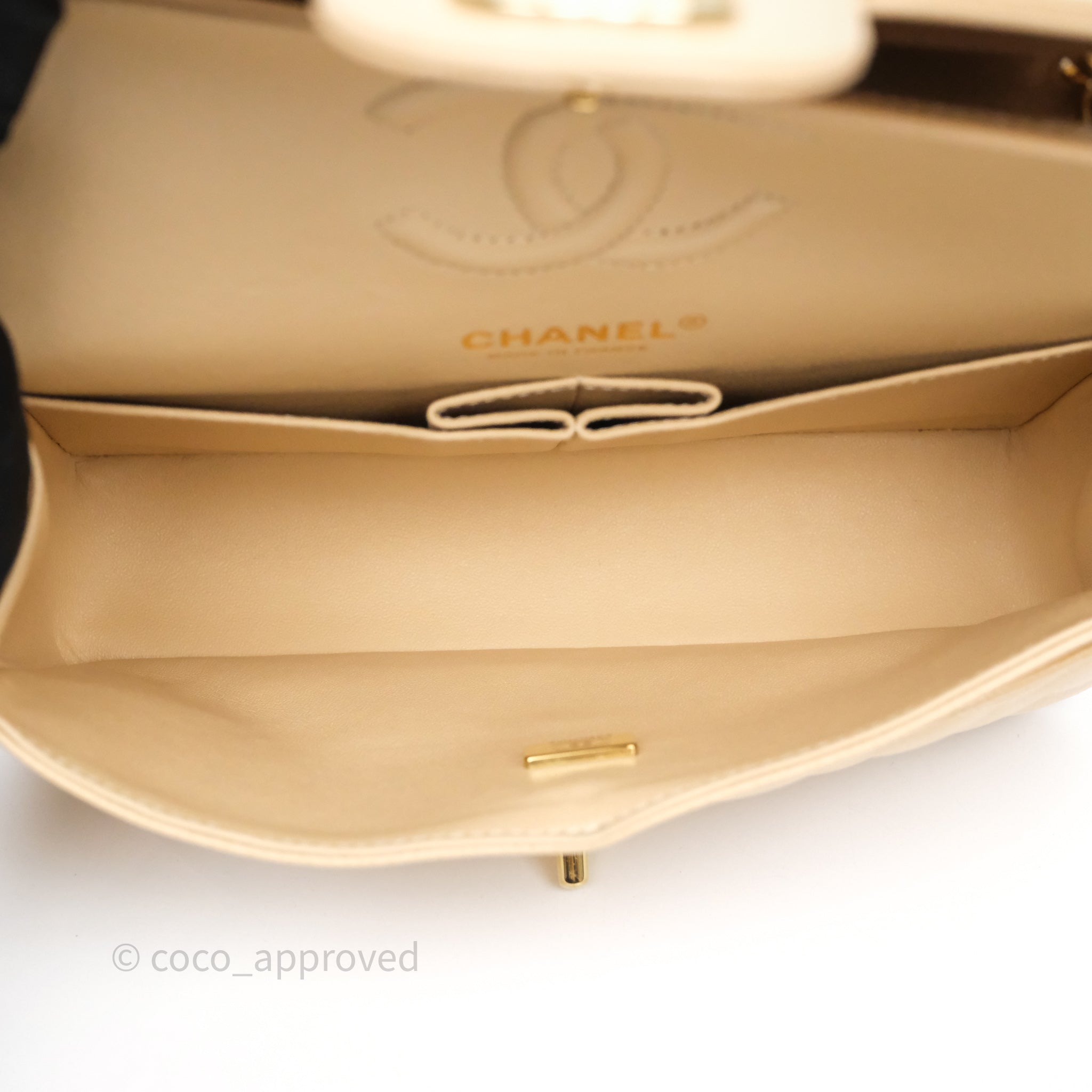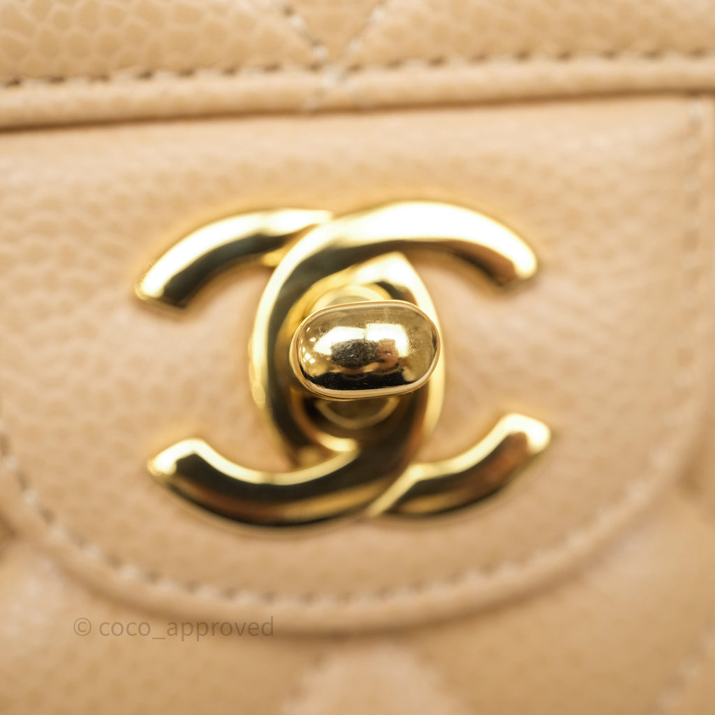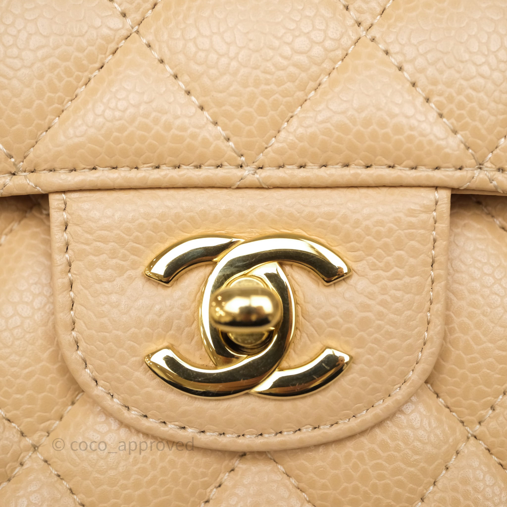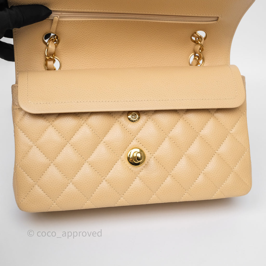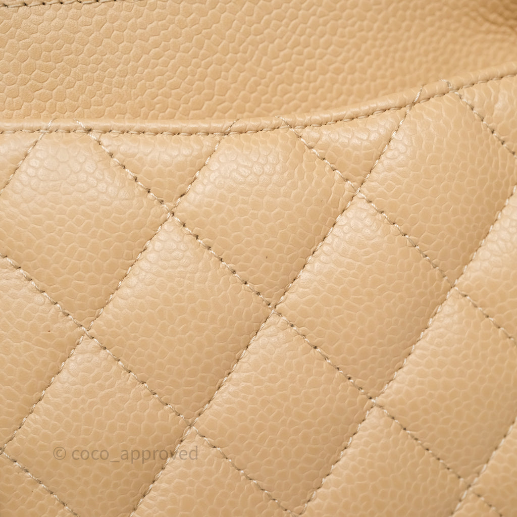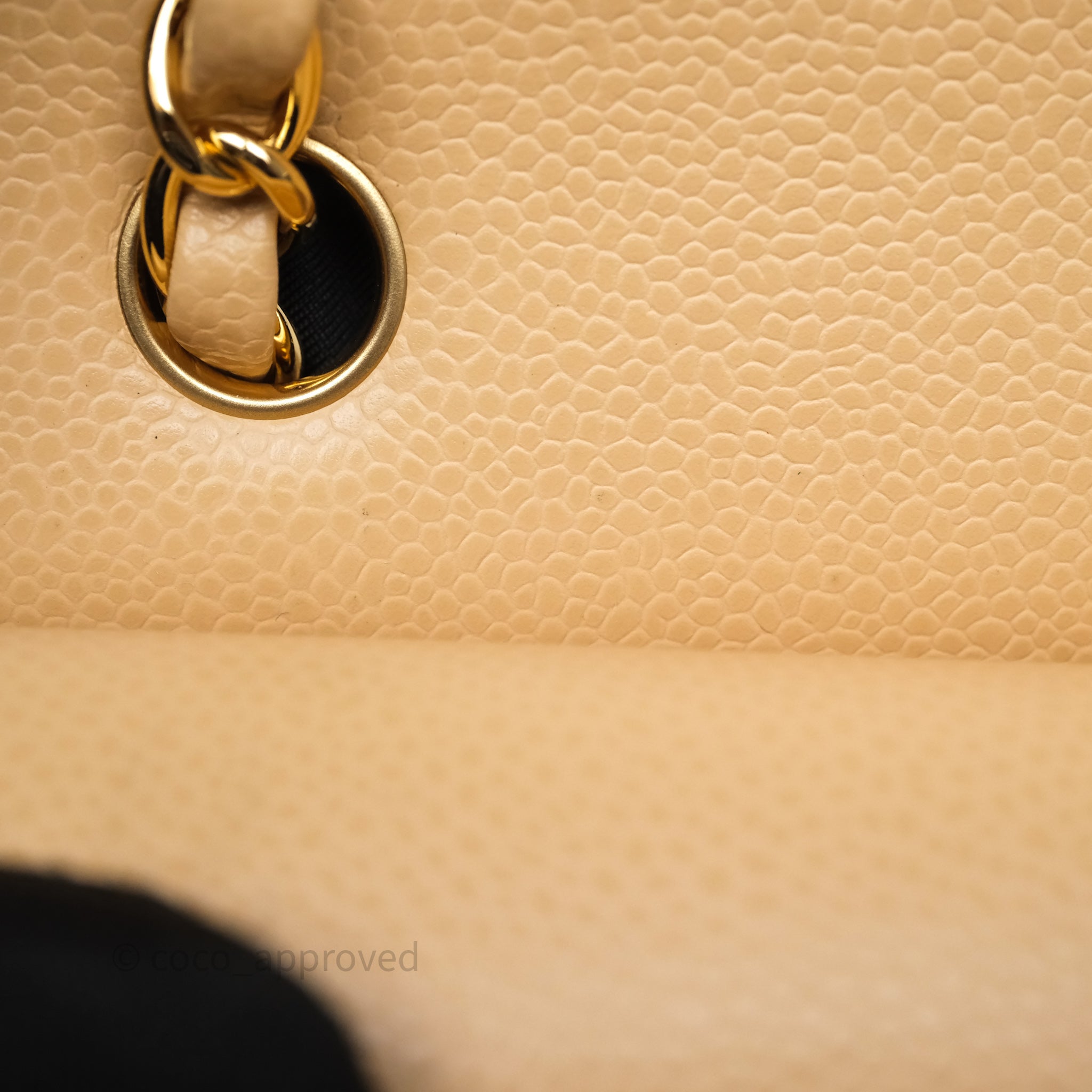 Chanel Small Classic Flap Quilted Beige Caviar Gold Hardware