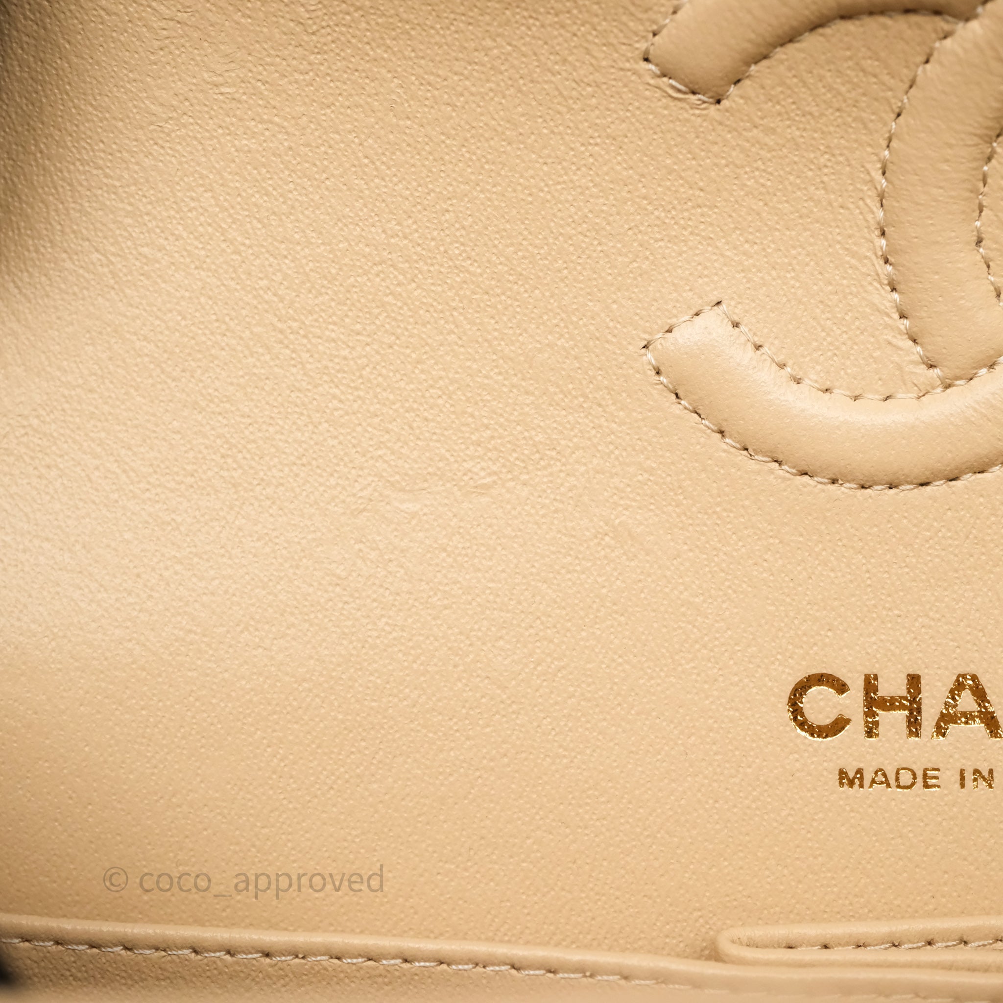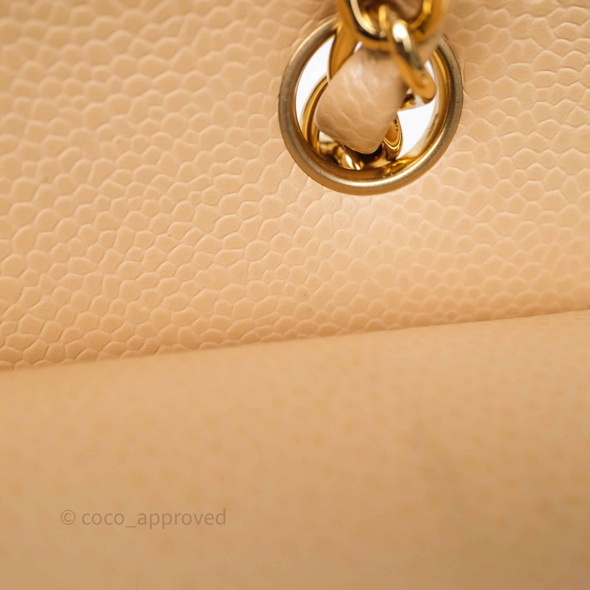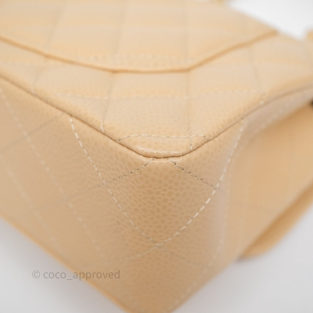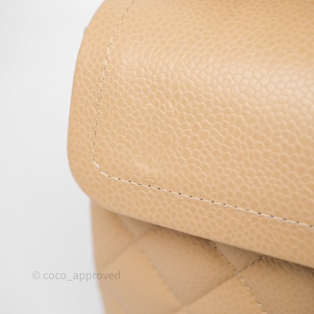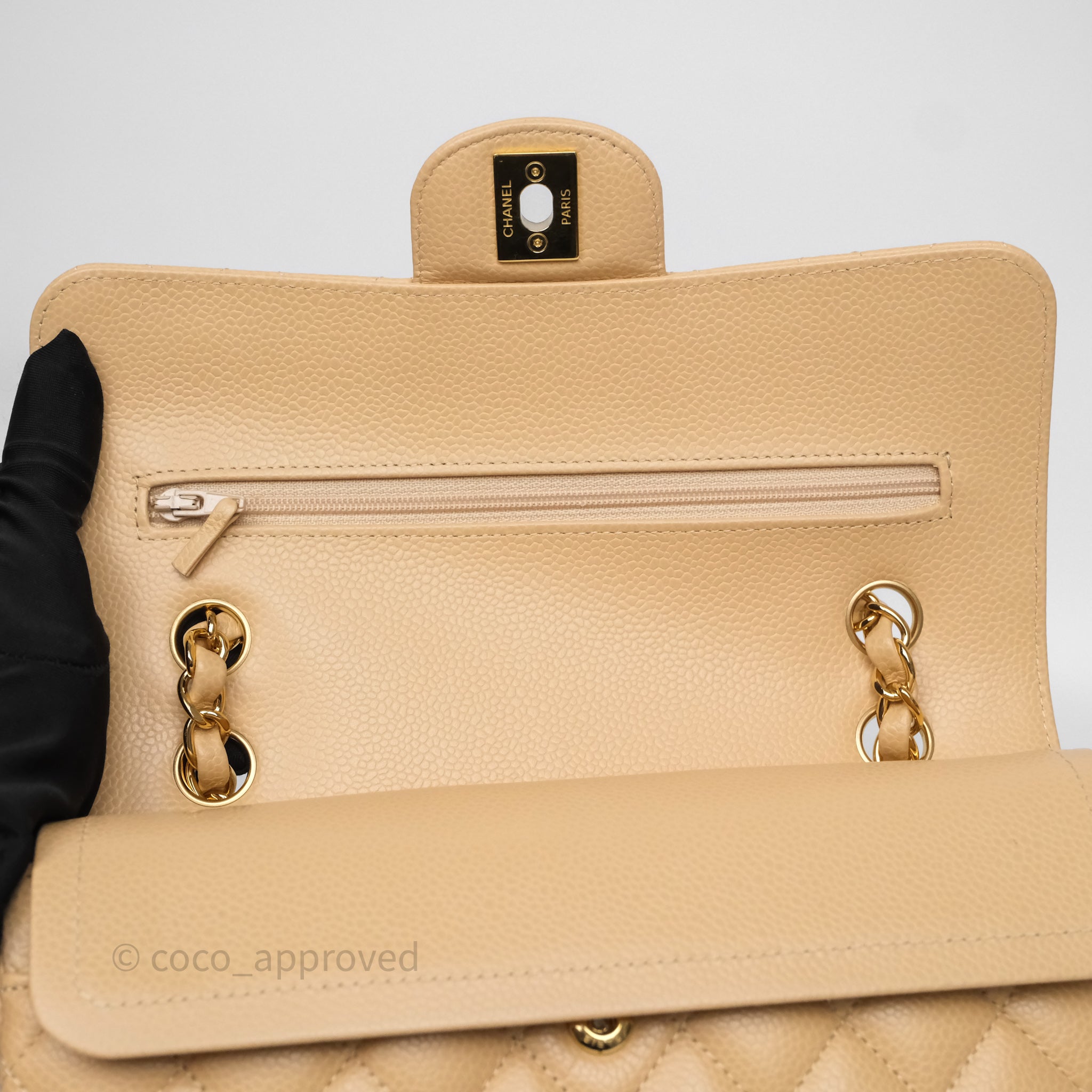 Chanel Small Classic Flap Quilted Beige Caviar Gold Hardware